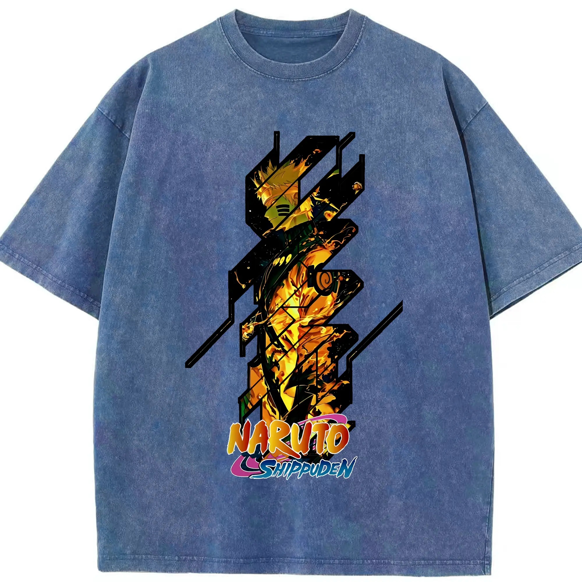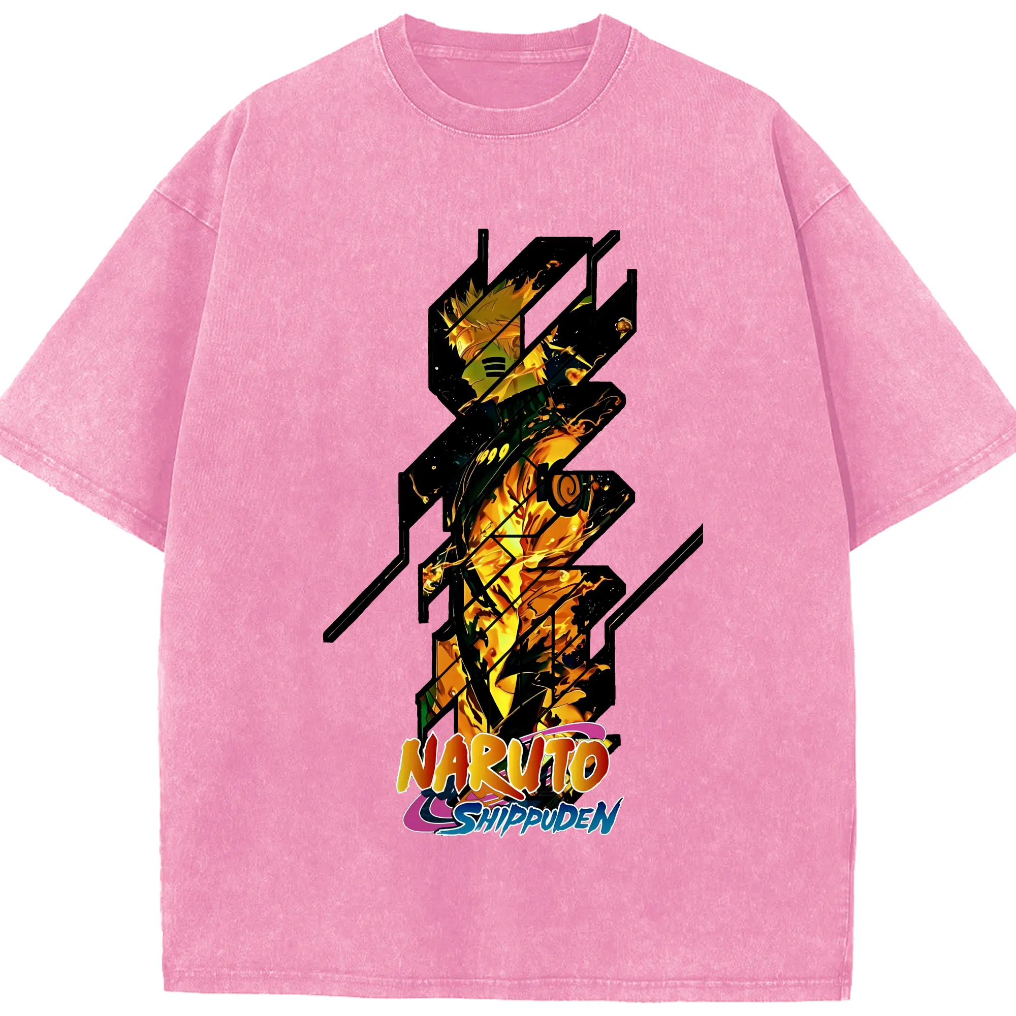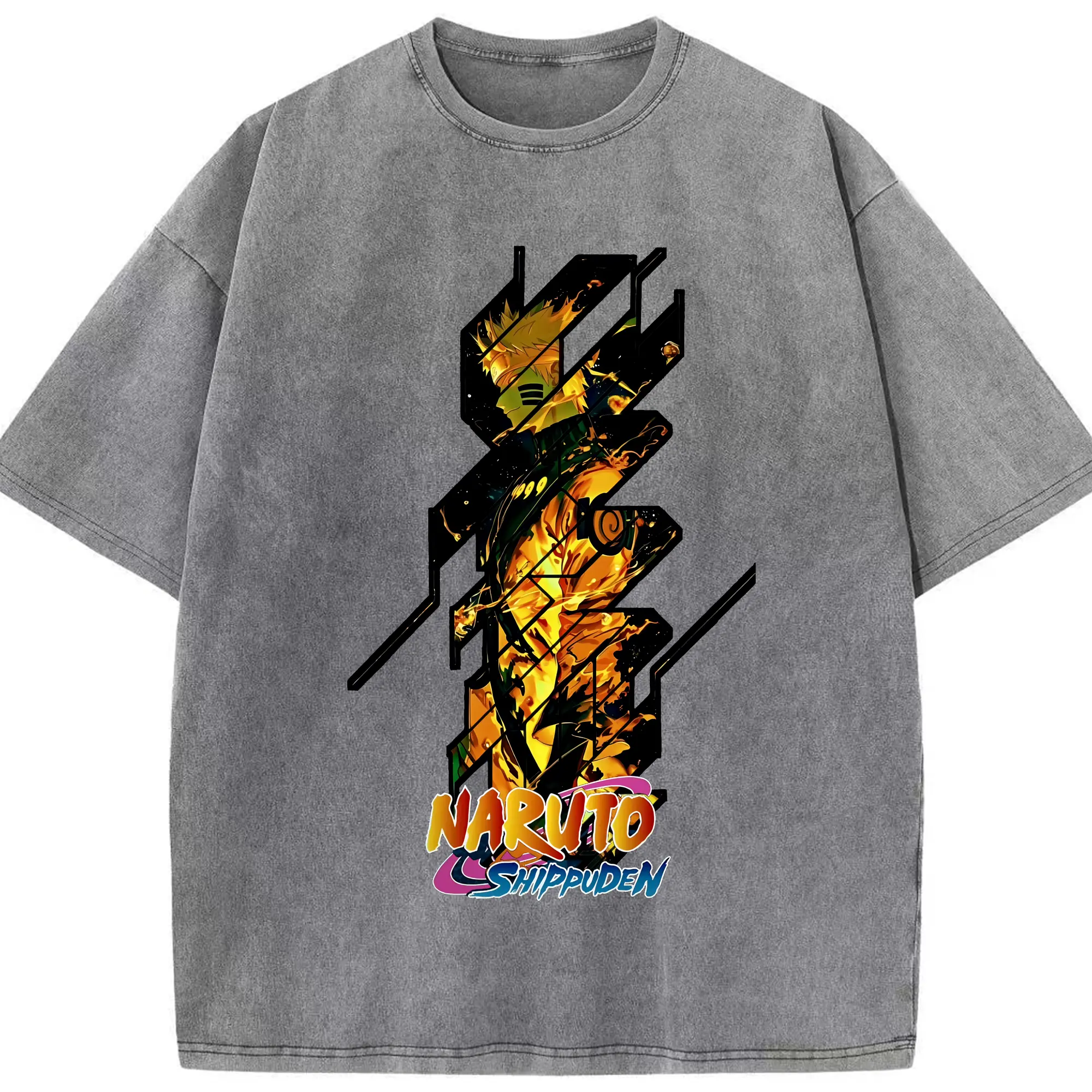 ナルト グッズ うずまき ナルト - 綿100% ヴィンテージ風 半袖Tシャツ ・ 背面プリント ・ 柔らか肌触り ・ 通気性 快適 ・ スポーツ カジュアル 外出用