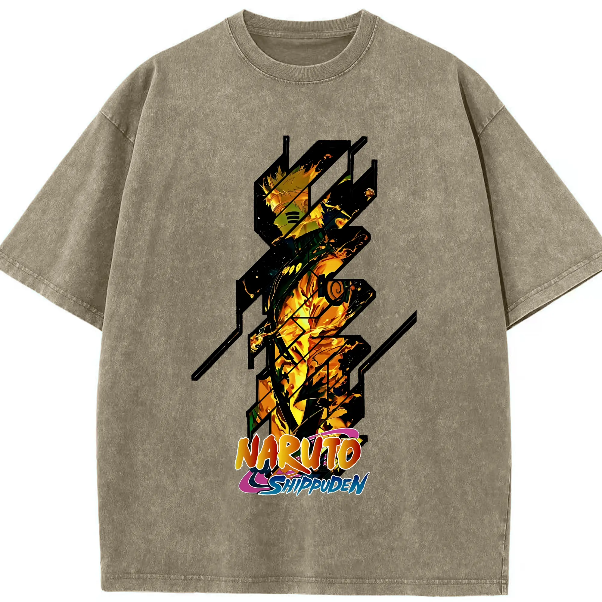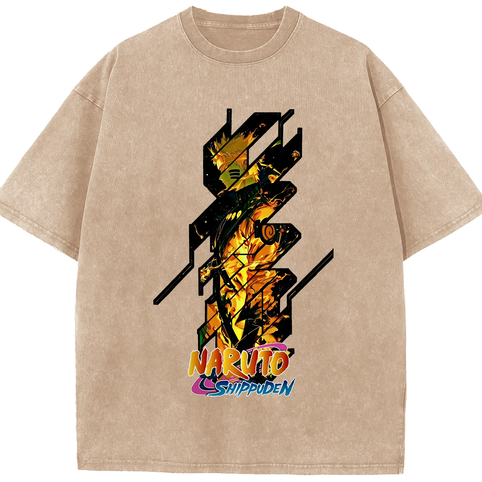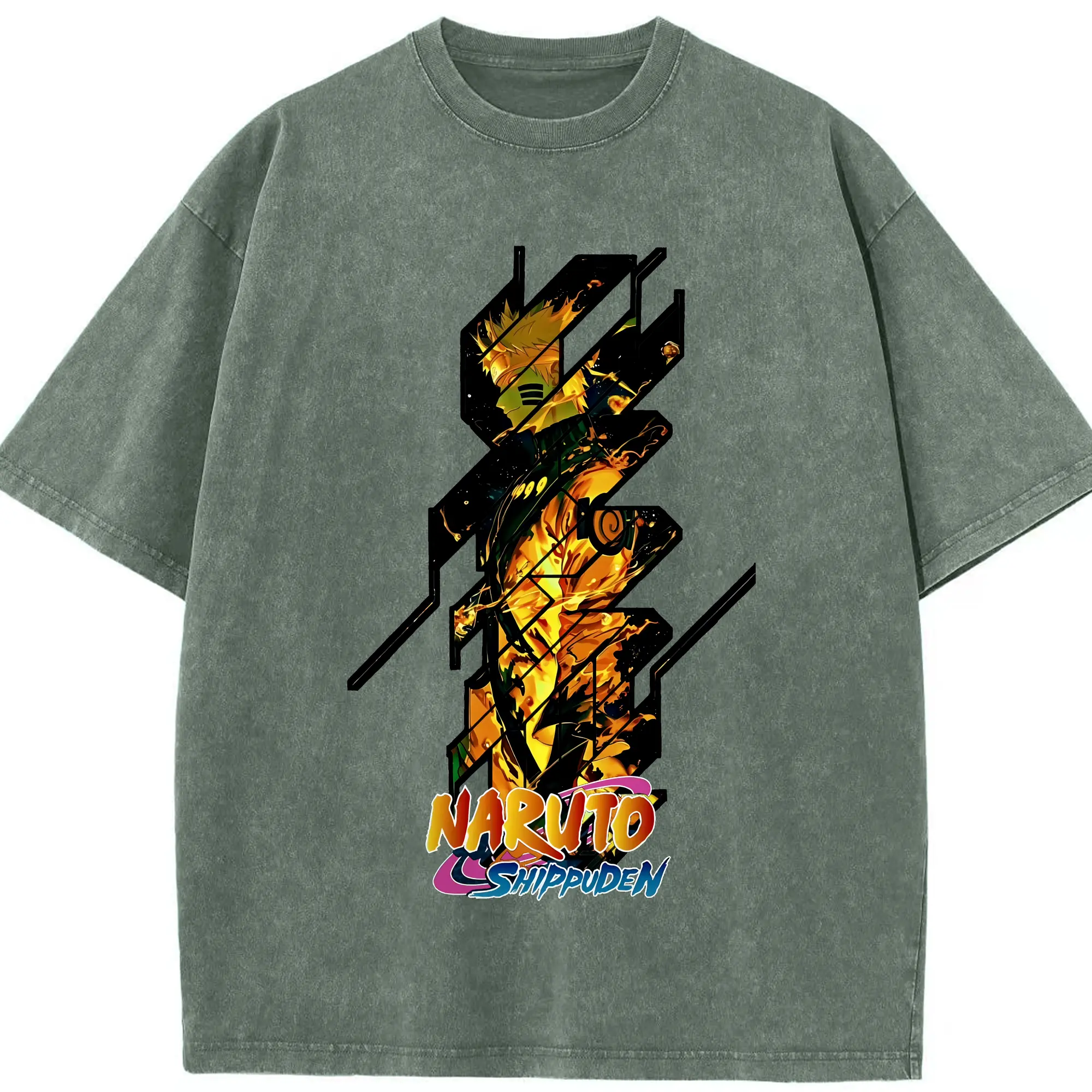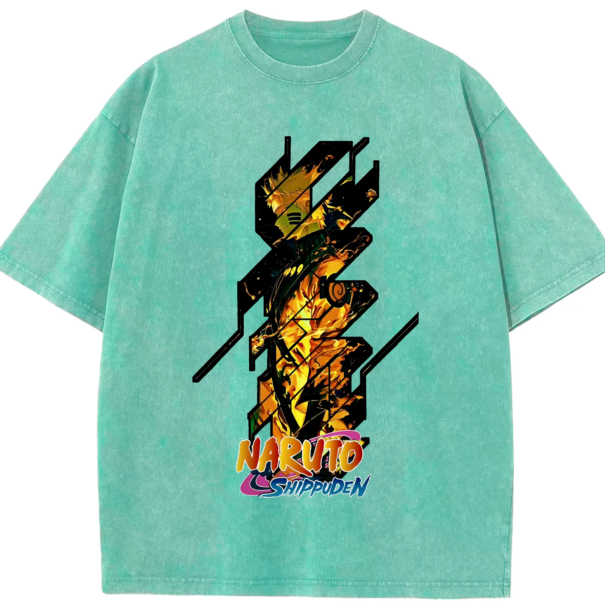 ナルト グッズ うずまき ナルト - 綿100% ヴィンテージ風 半袖Tシャツ ・ 背面プリント ・ 柔らか肌触り ・ 通気性 快適 ・ スポーツ カジュアル 外出用