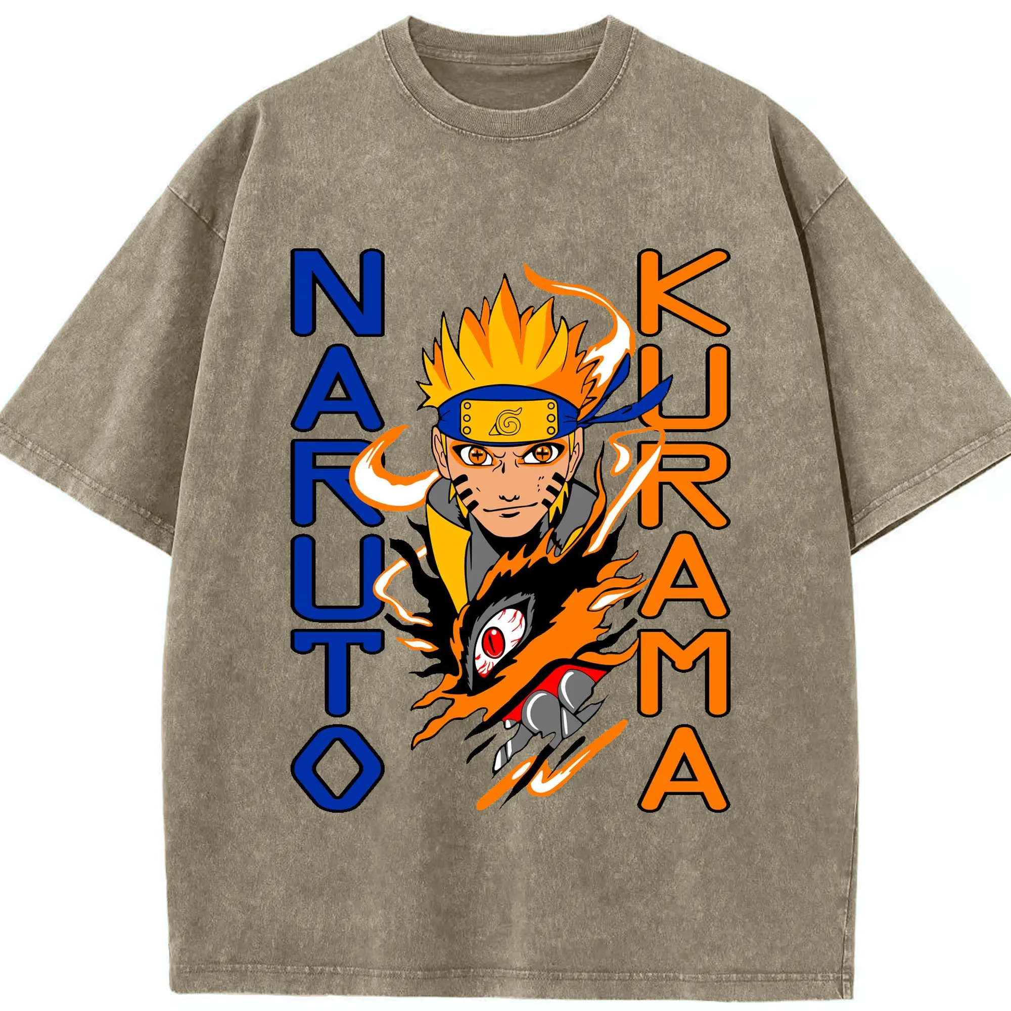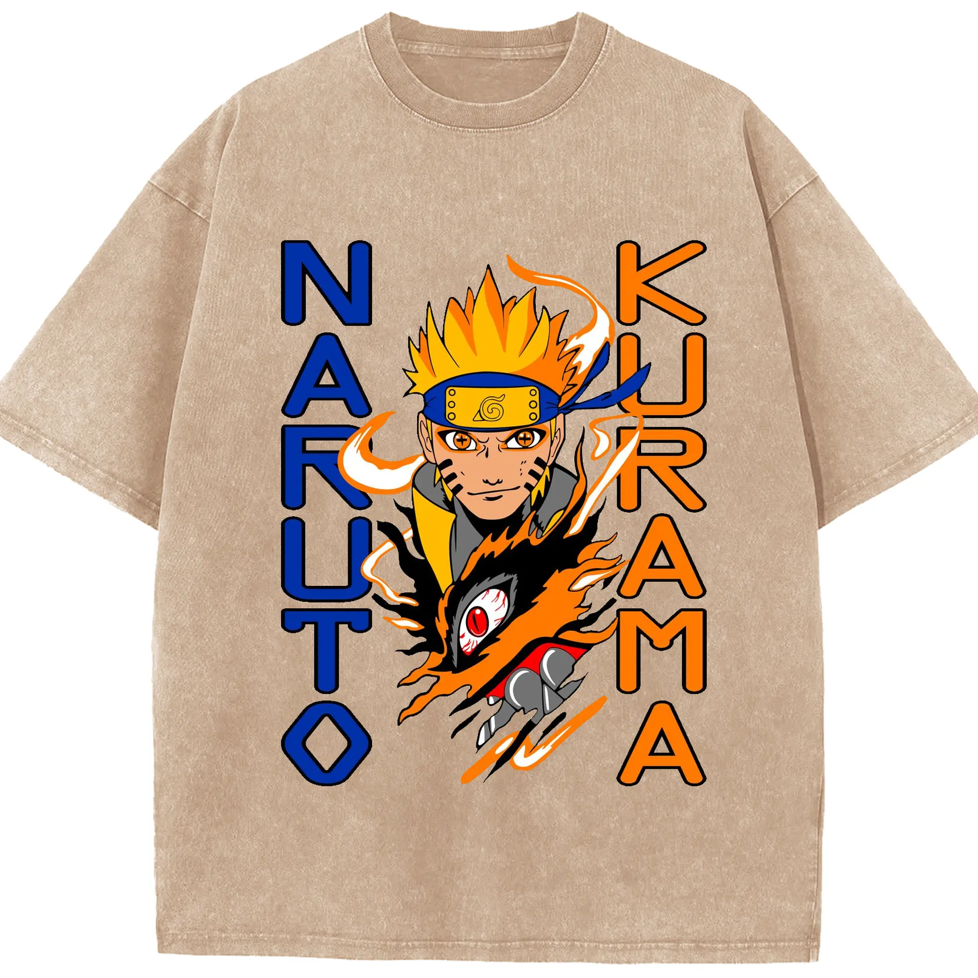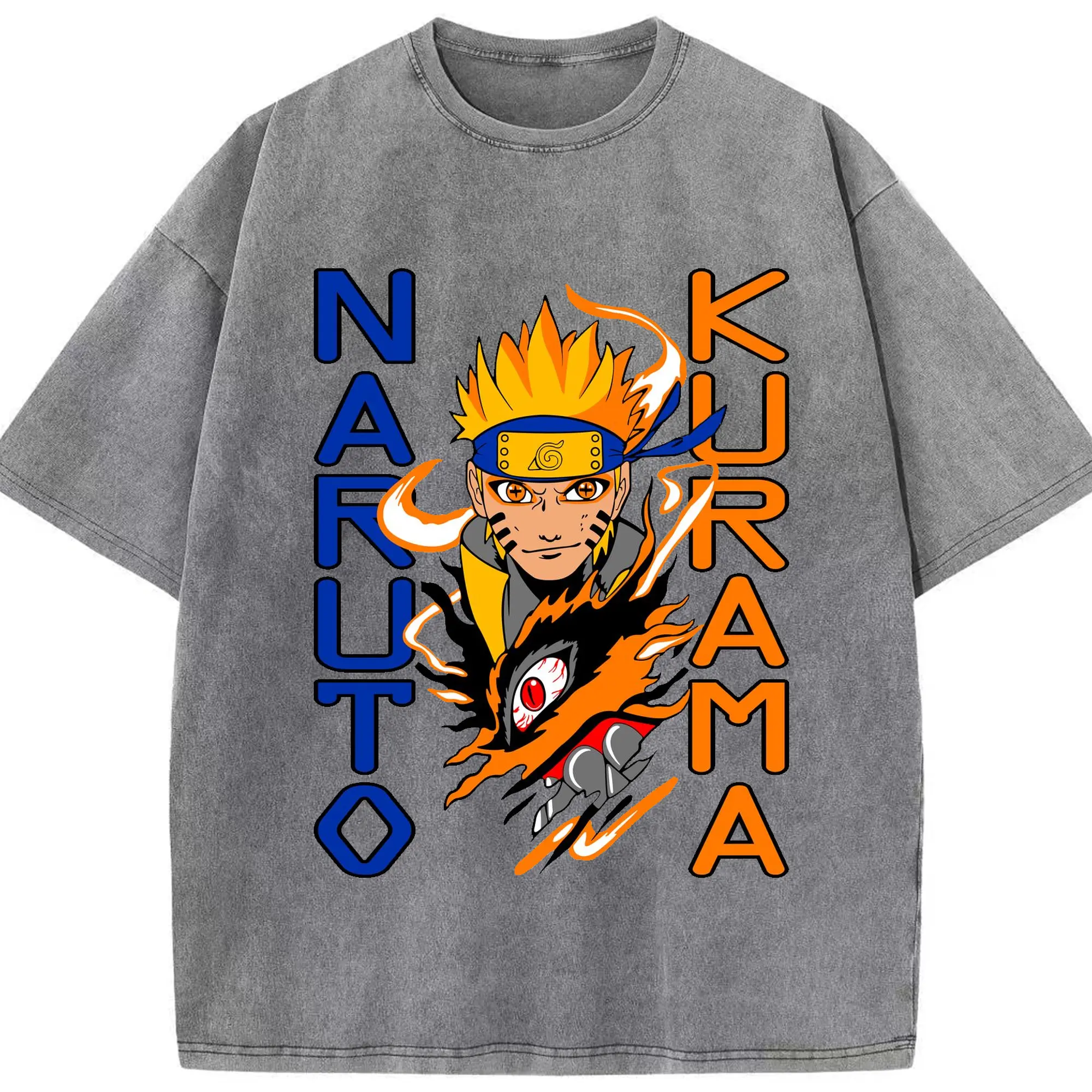 ナルト グッズ うずまき ナルト - 綿100% ヴィンテージ風 半袖Tシャツ ・ 背面プリント ・ 柔らか肌触り ・ 通気性 快適 ・ スポーツ カジュアル 外出用