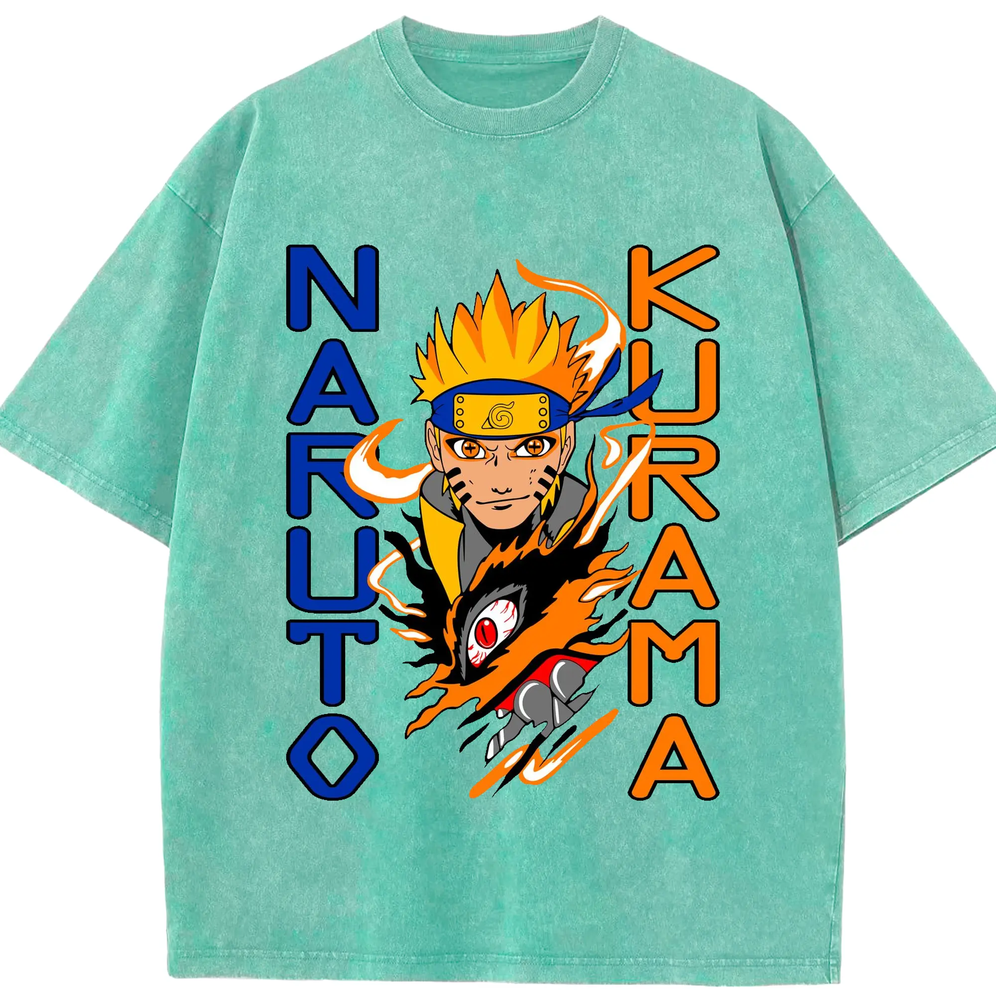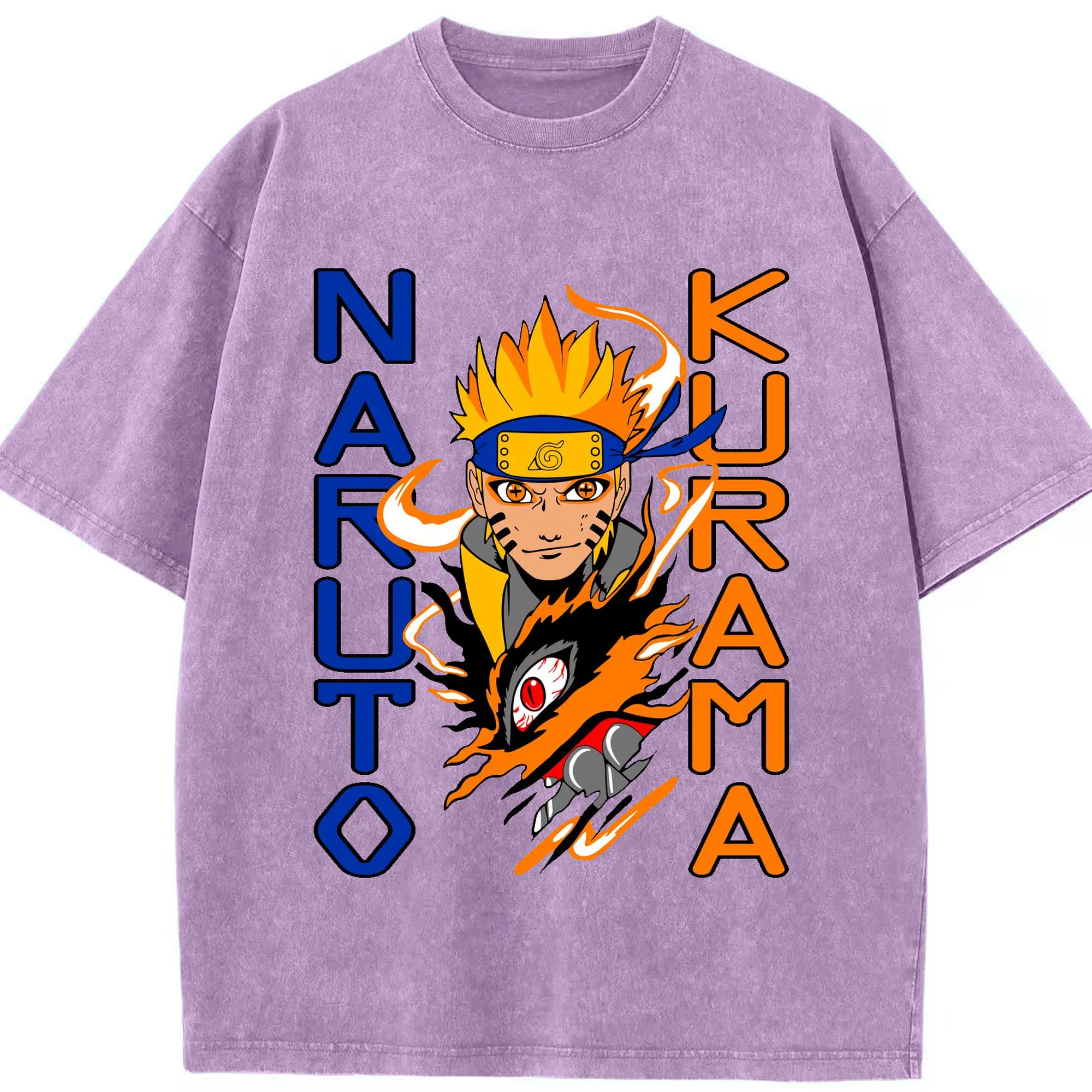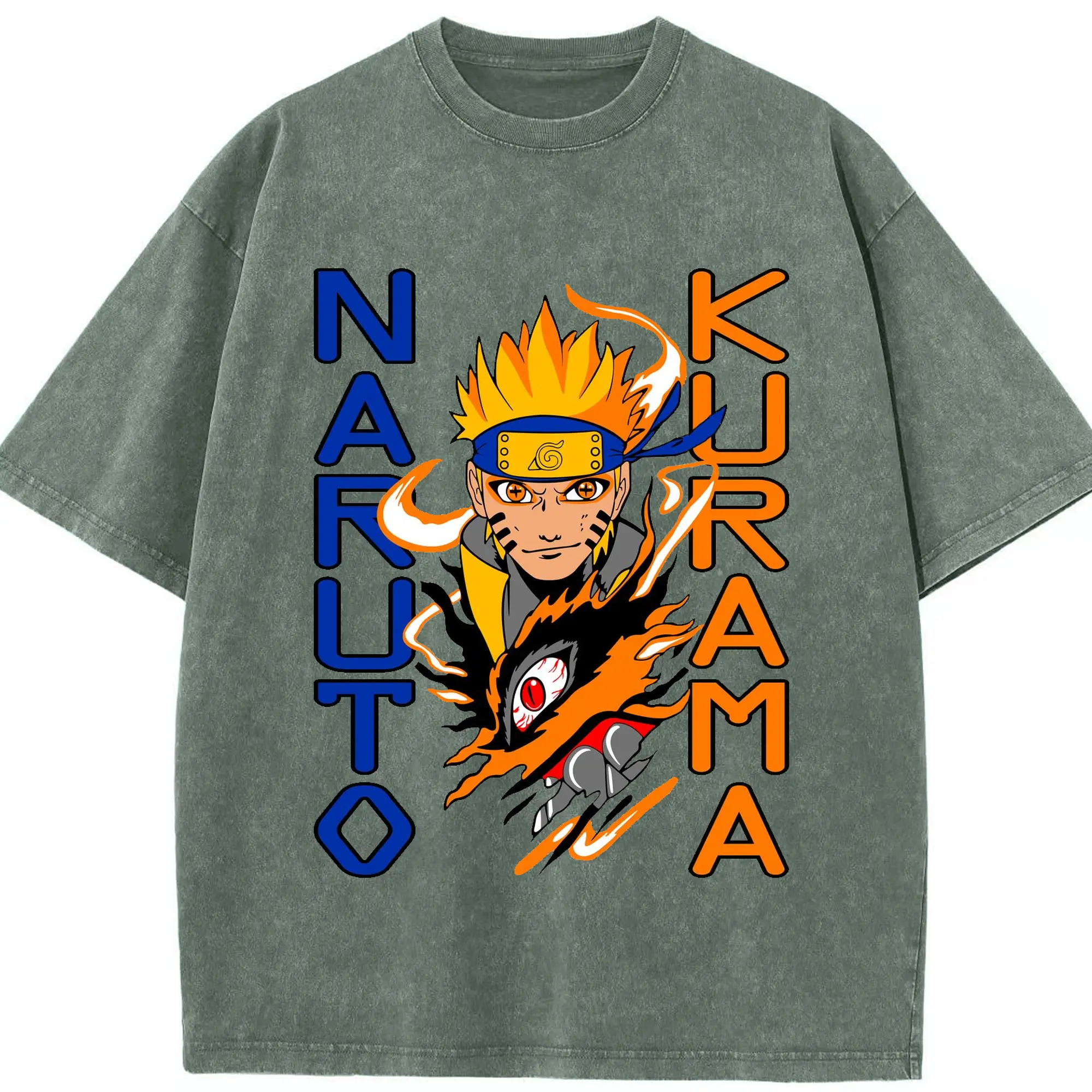 ナルト グッズ うずまき ナルト - 綿100% ヴィンテージ風 半袖Tシャツ ・ 背面プリント ・ 柔らか肌触り ・ 通気性 快適 ・ スポーツ カジュアル 外出用