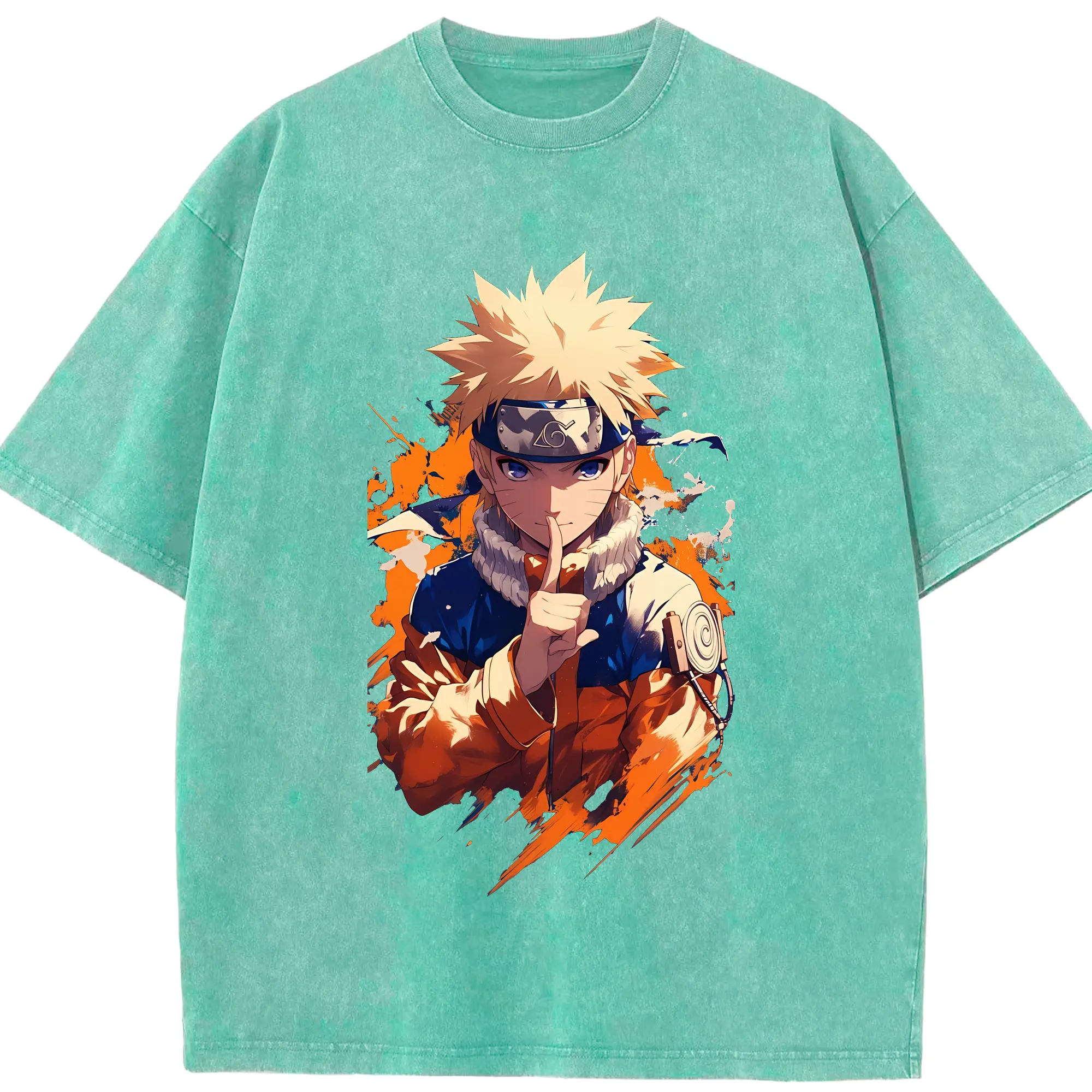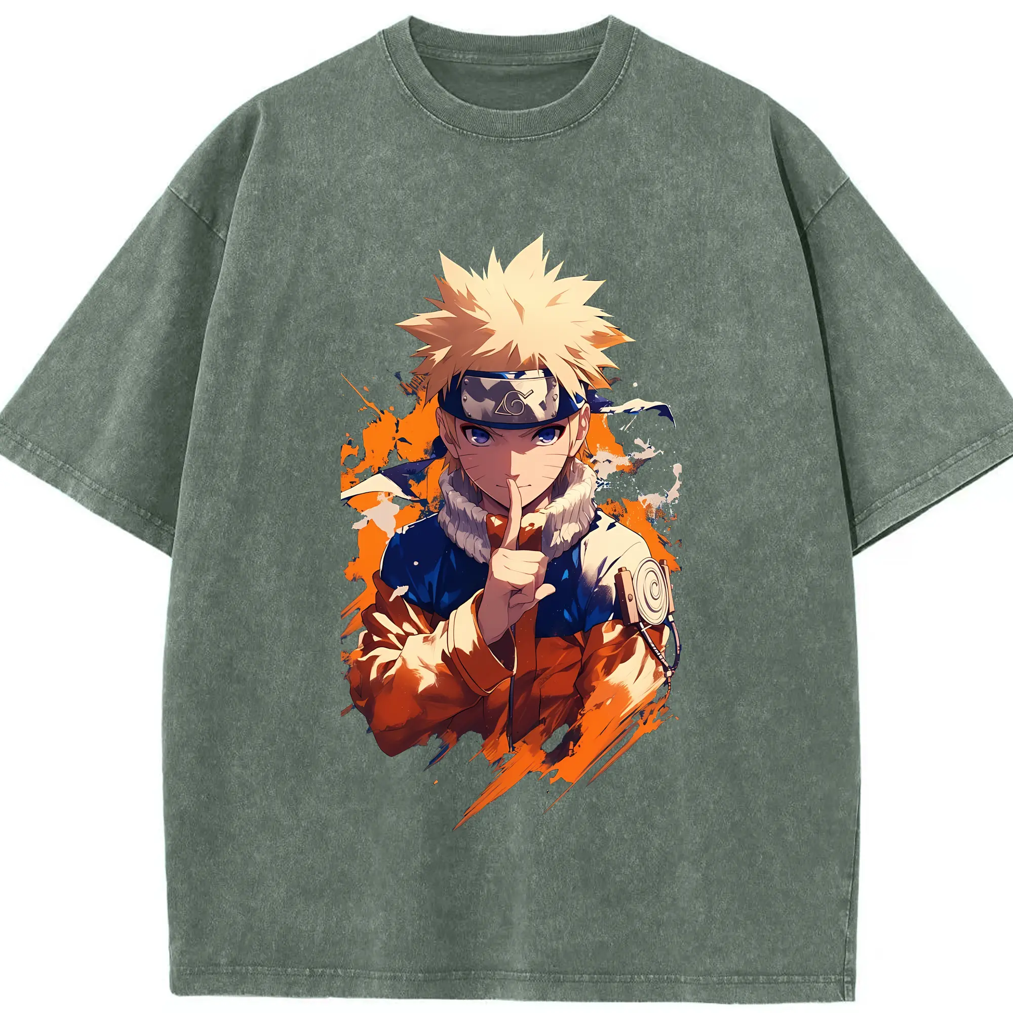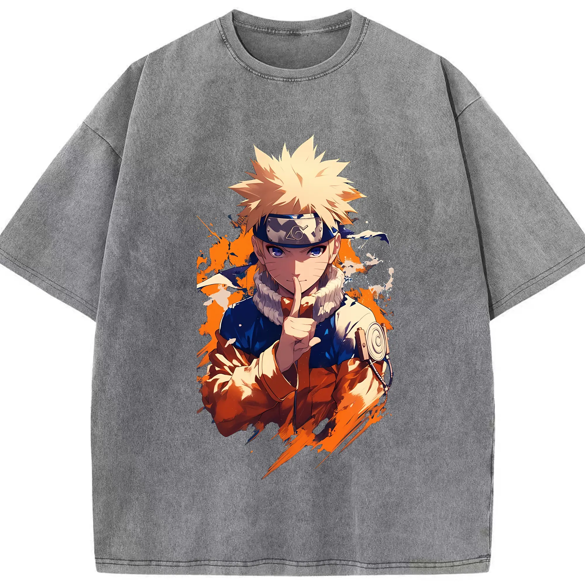 ナルト グッズ うずまき ナルト - 綿100% ヴィンテージ風 半袖Tシャツ ・ 背面プリント ・ 柔らか肌触り ・ 通気性 快適 ・ スポーツ カジュアル 外出用
