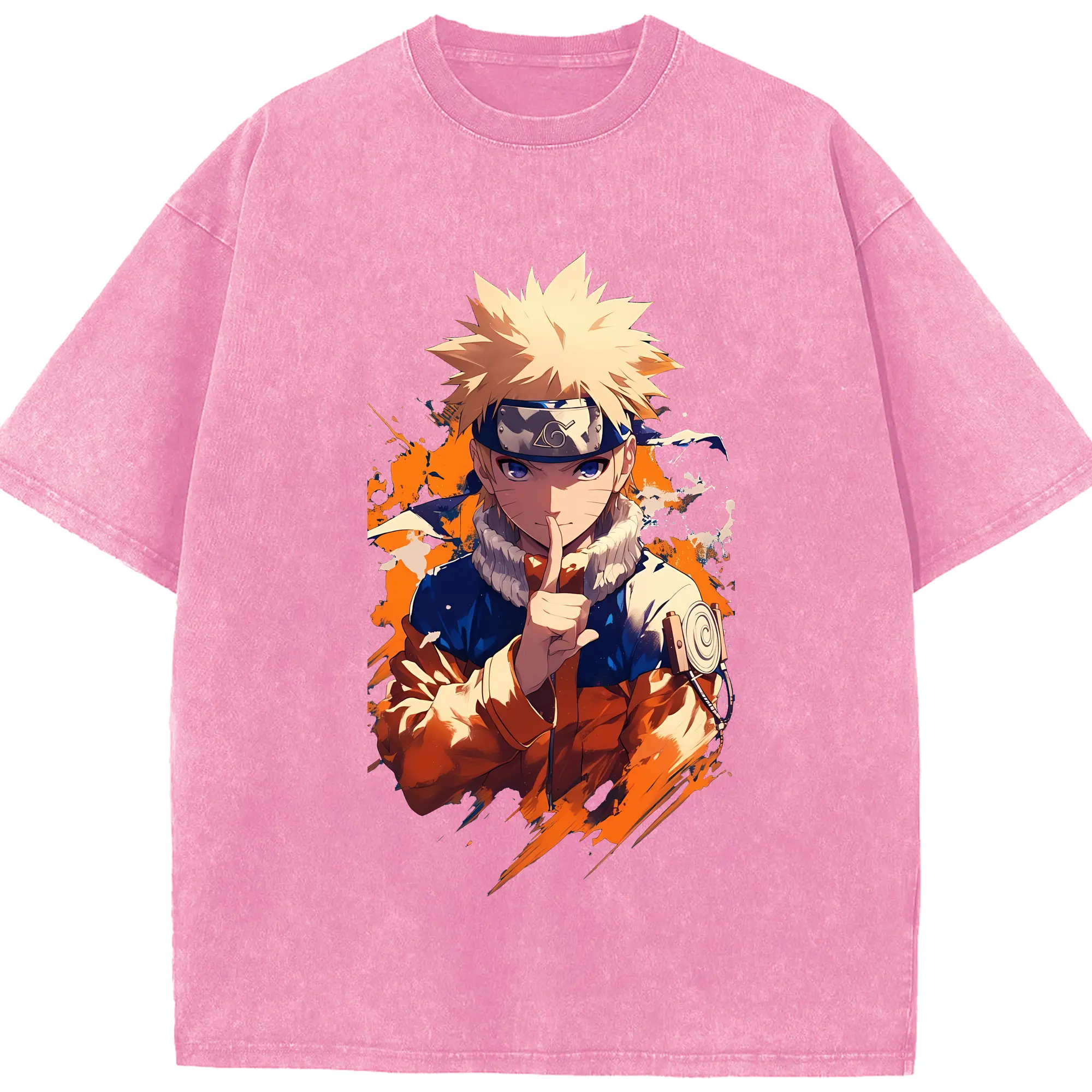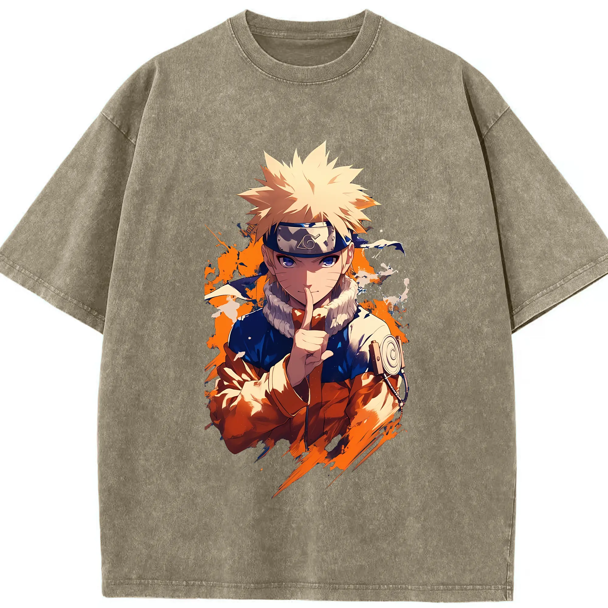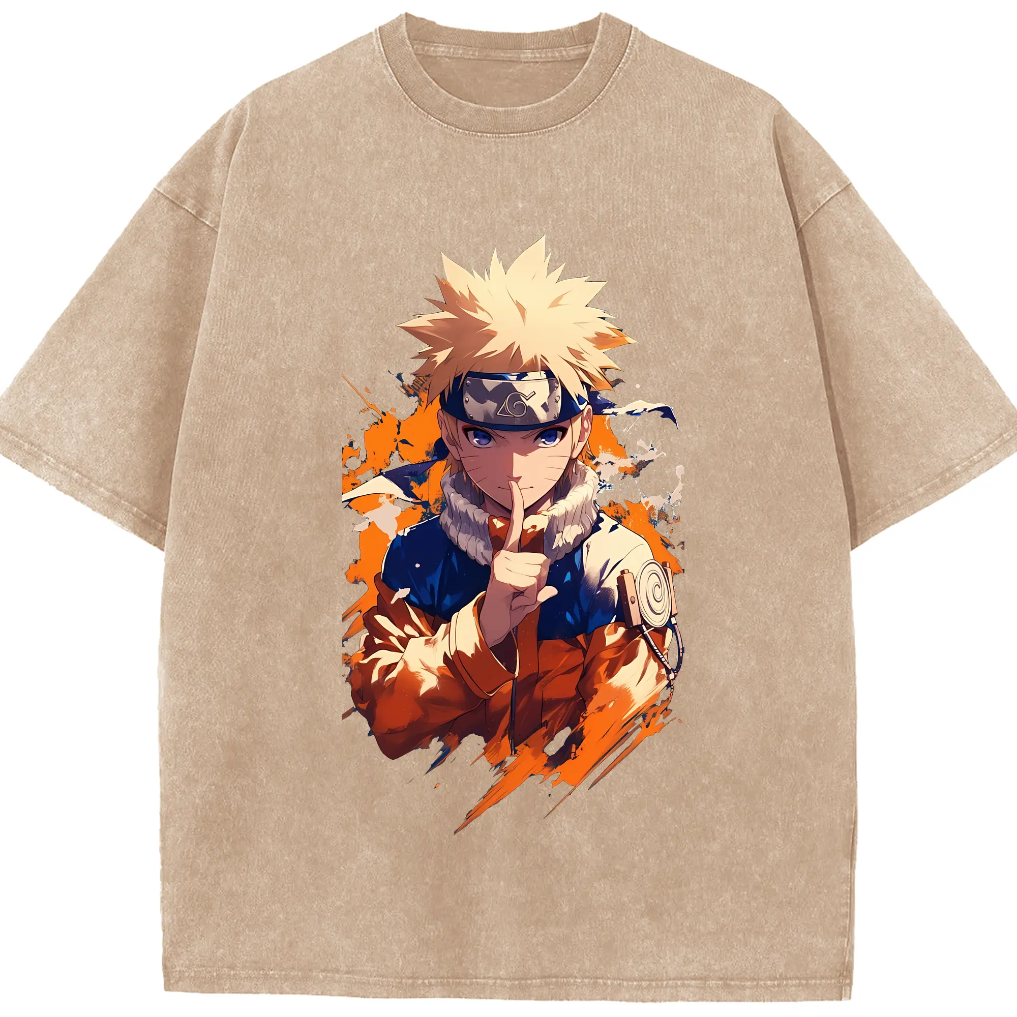 ナルト グッズ うずまき ナルト - 綿100% ヴィンテージ風 半袖Tシャツ ・ 背面プリント ・ 柔らか肌触り ・ 通気性 快適 ・ スポーツ カジュアル 外出用