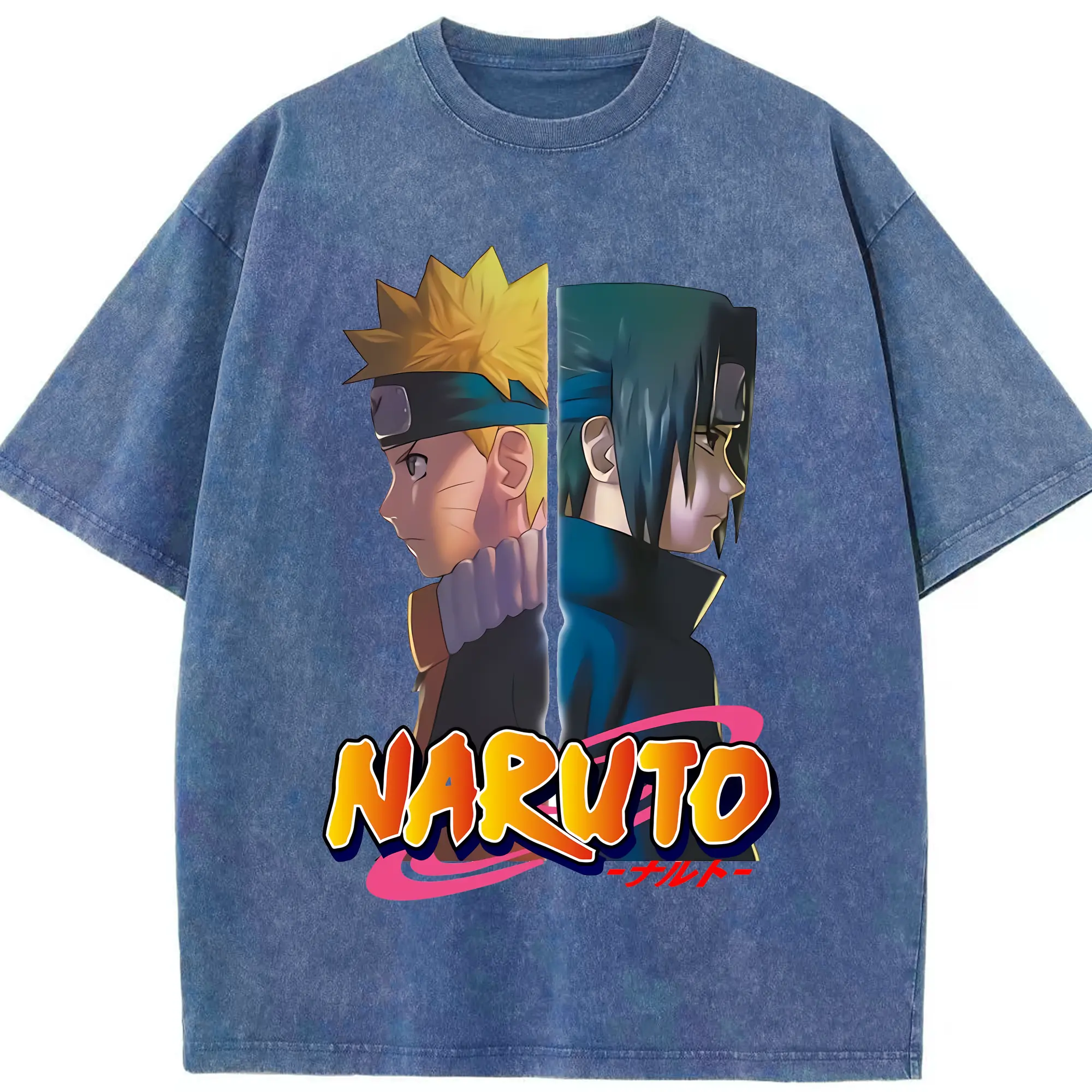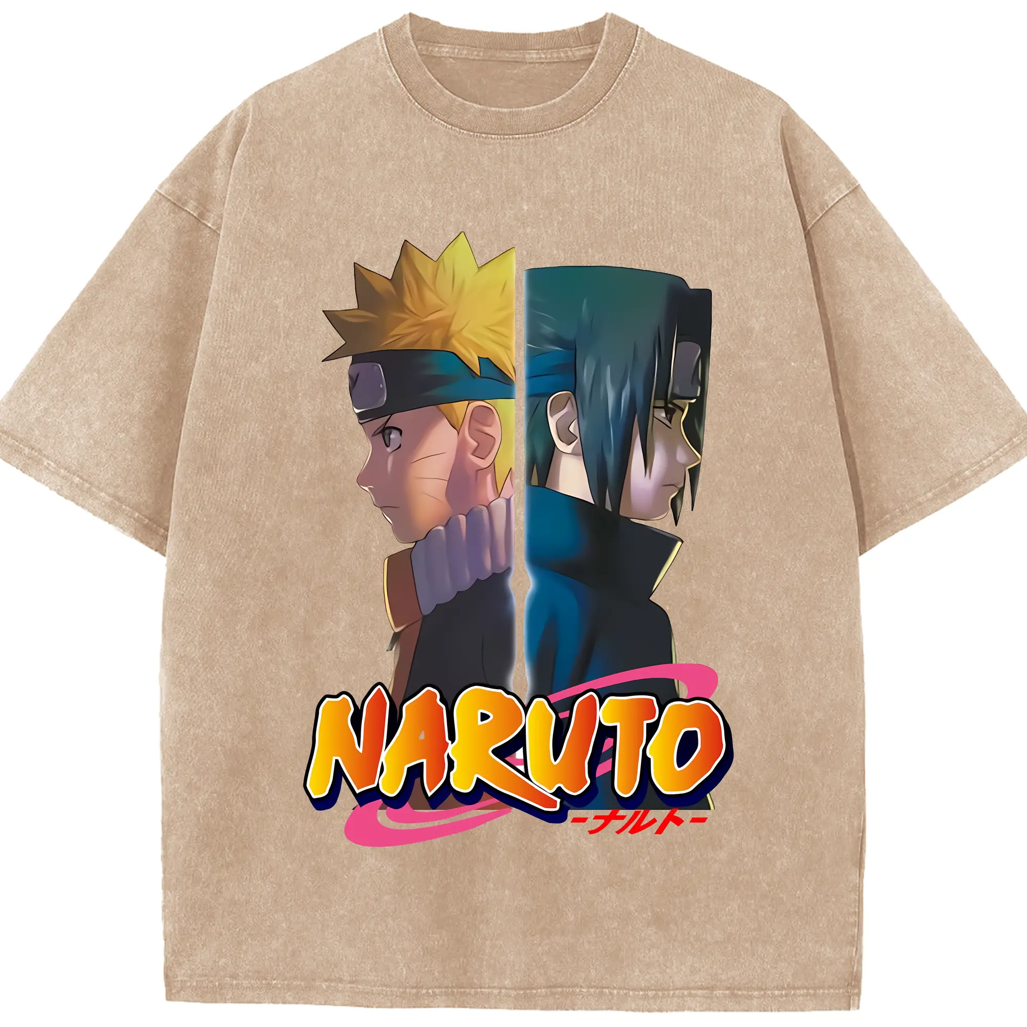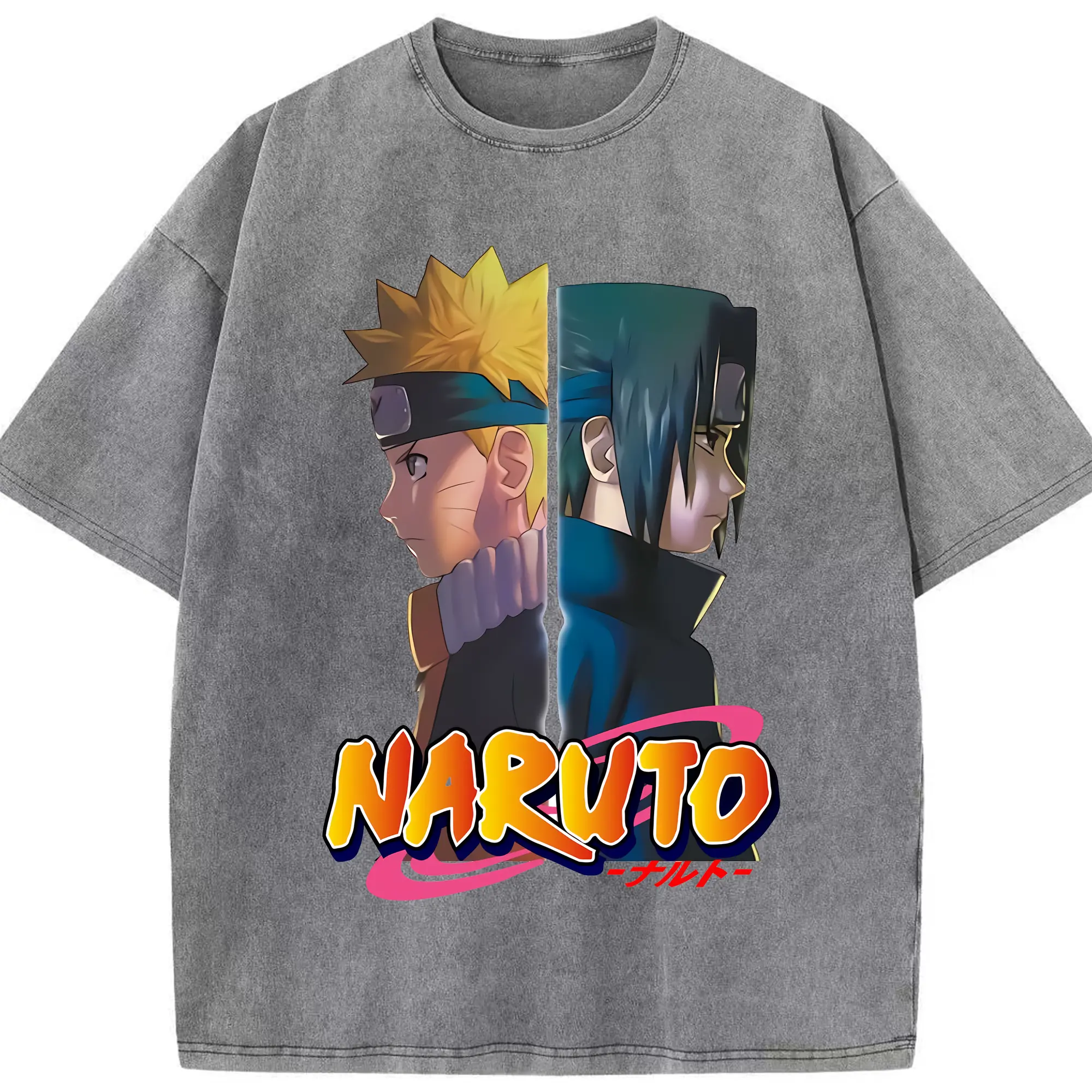ナルト グッズ うずまき ナルト - 綿100% ヴィンテージ風 半袖Tシャツ ・ 背面プリント ・ 柔らか肌触り ・ 通気性 快適 ・ スポーツ カジュアル 外出用