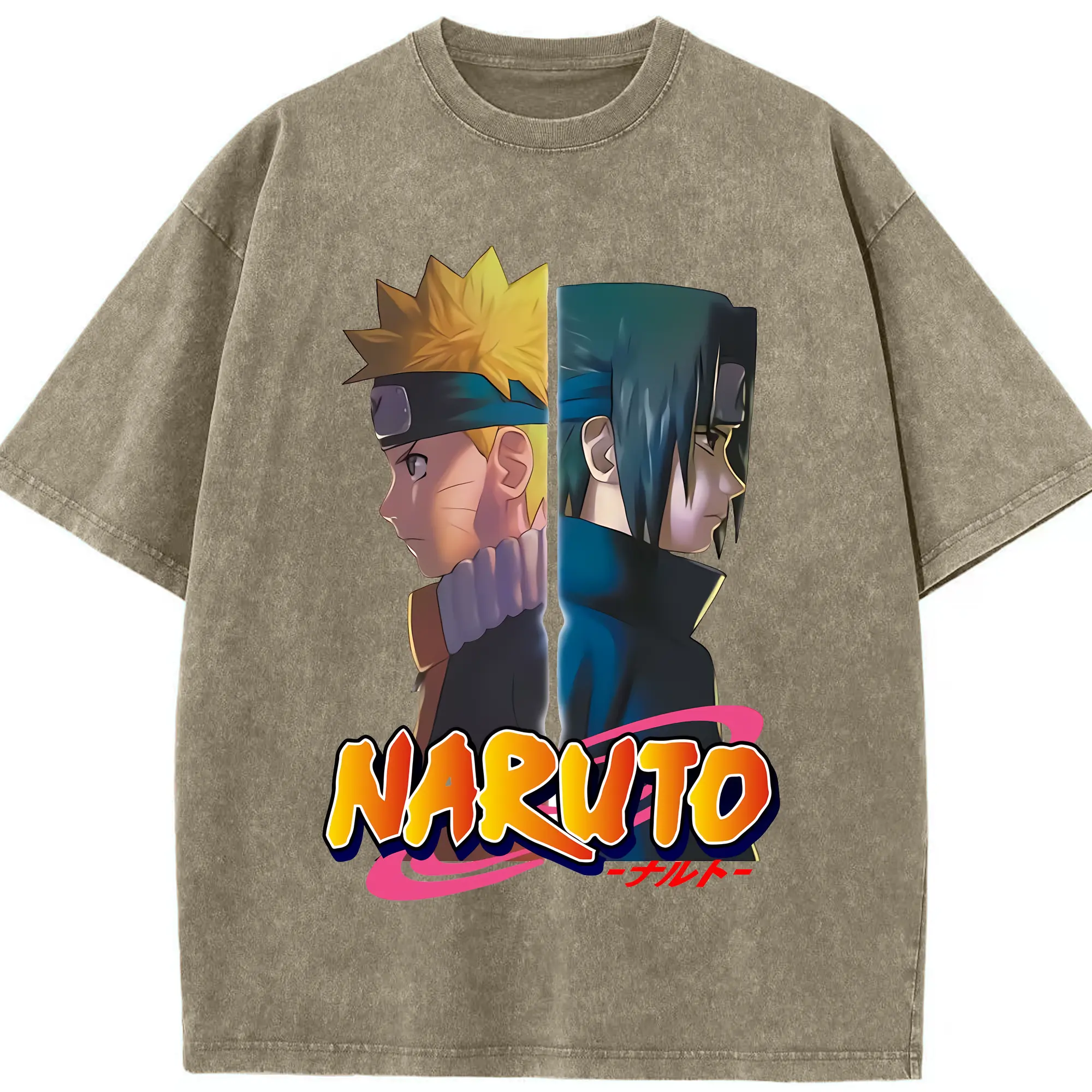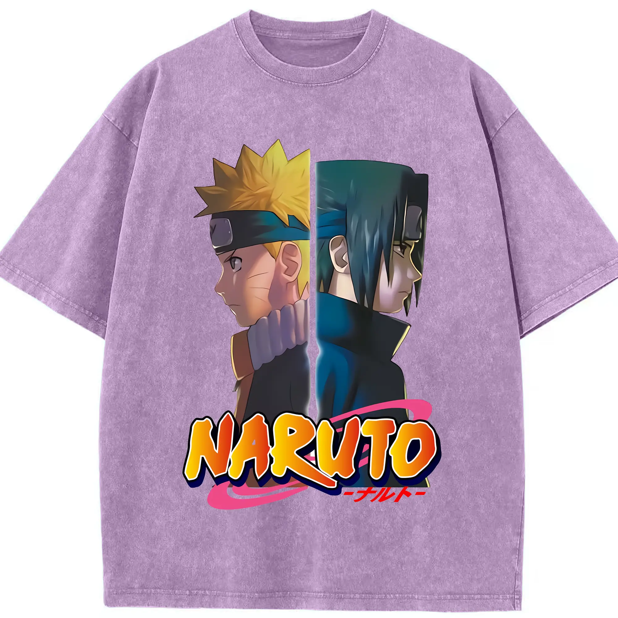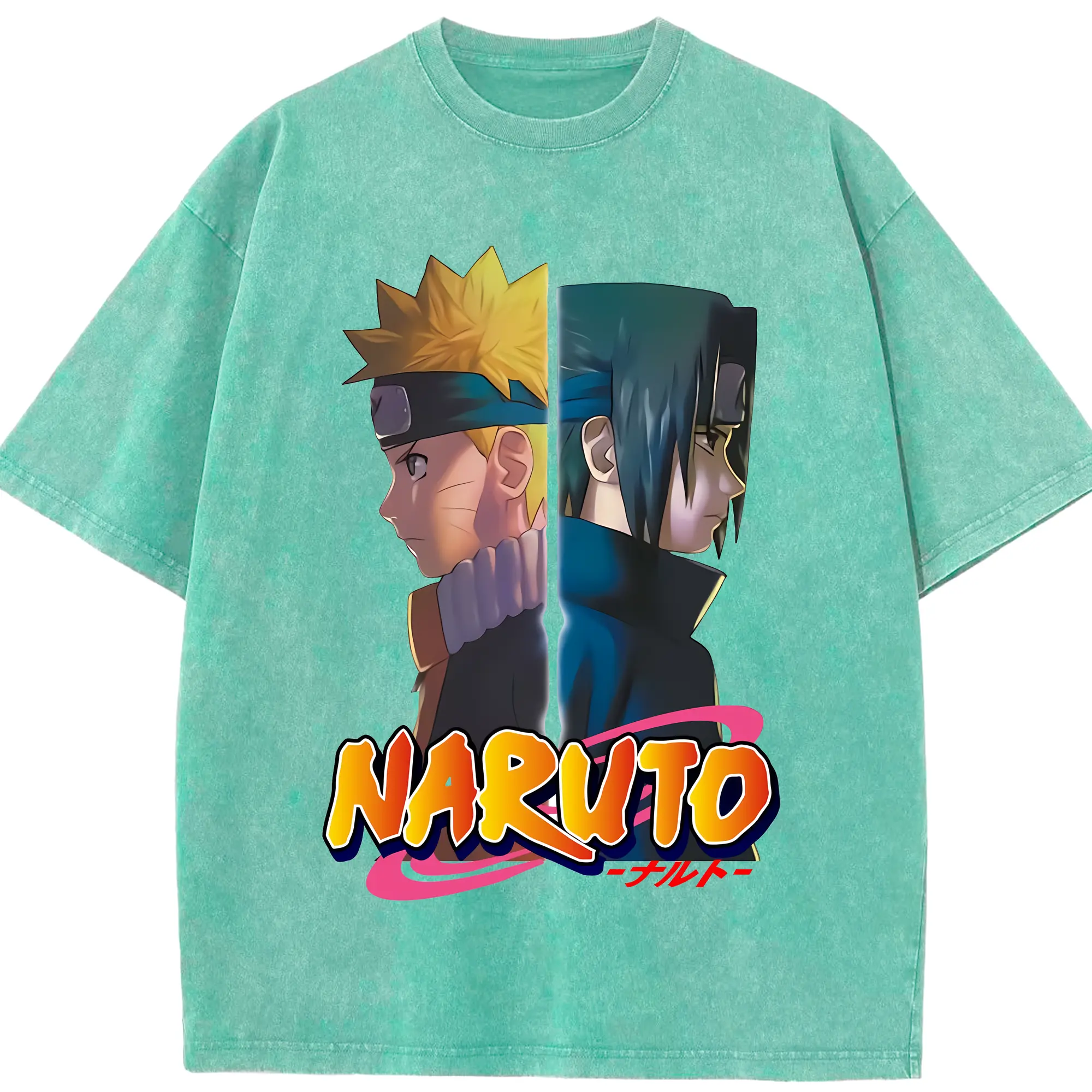 ナルト グッズ うずまき ナルト - 綿100% ヴィンテージ風 半袖Tシャツ ・ 背面プリント ・ 柔らか肌触り ・ 通気性 快適 ・ スポーツ カジュアル 外出用