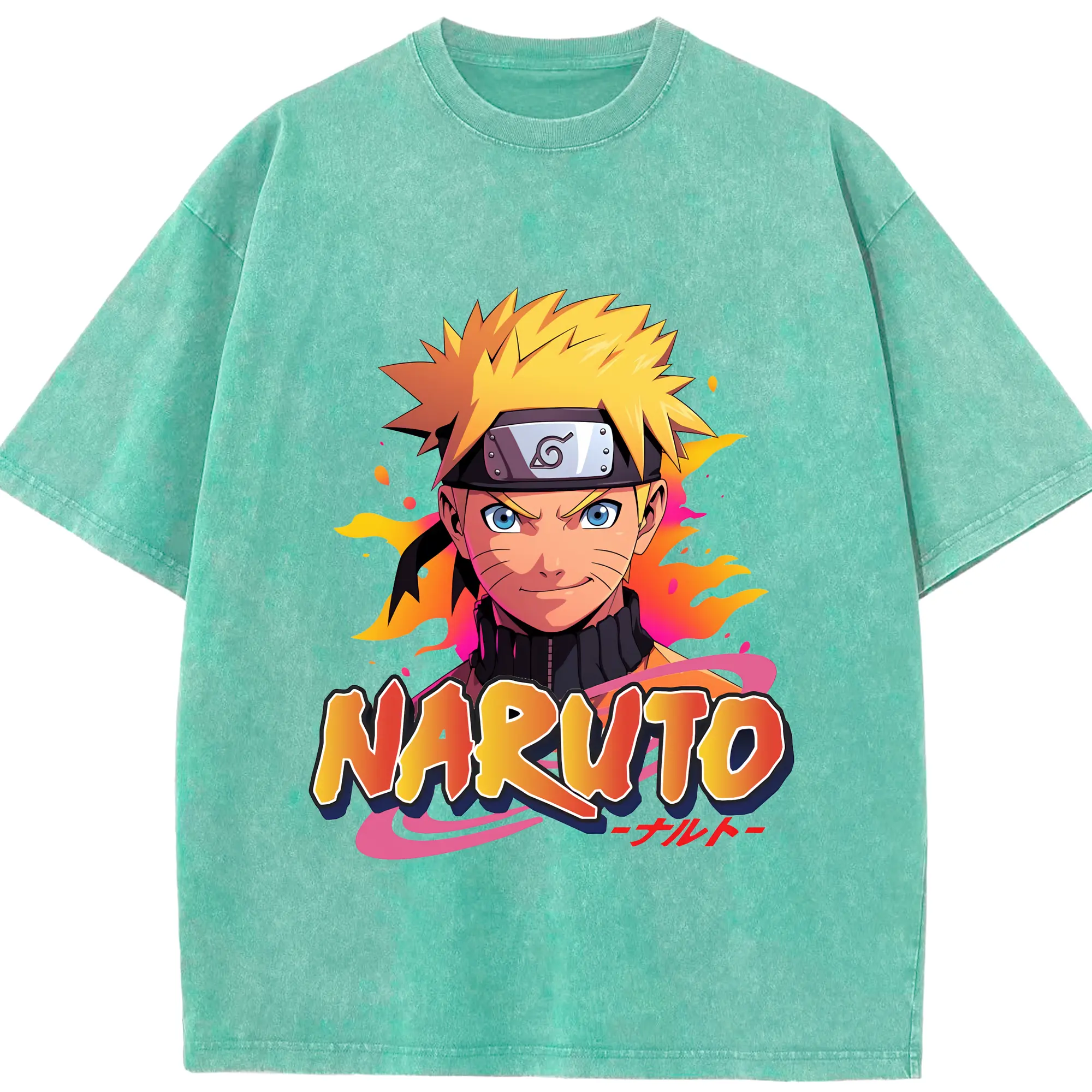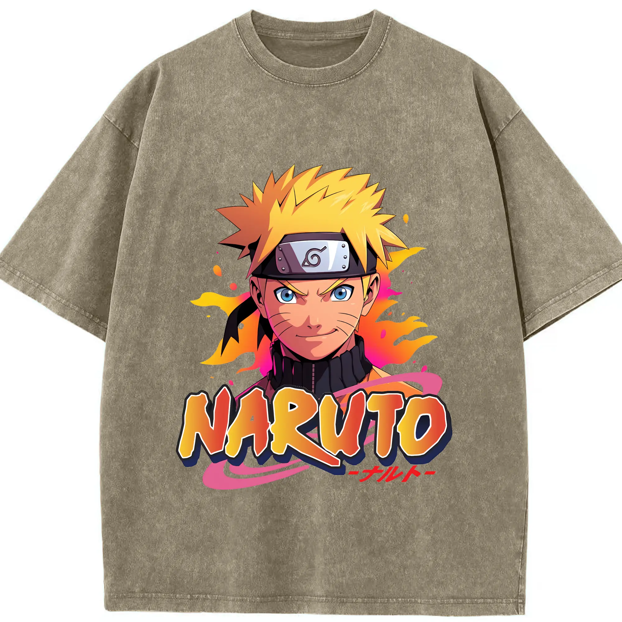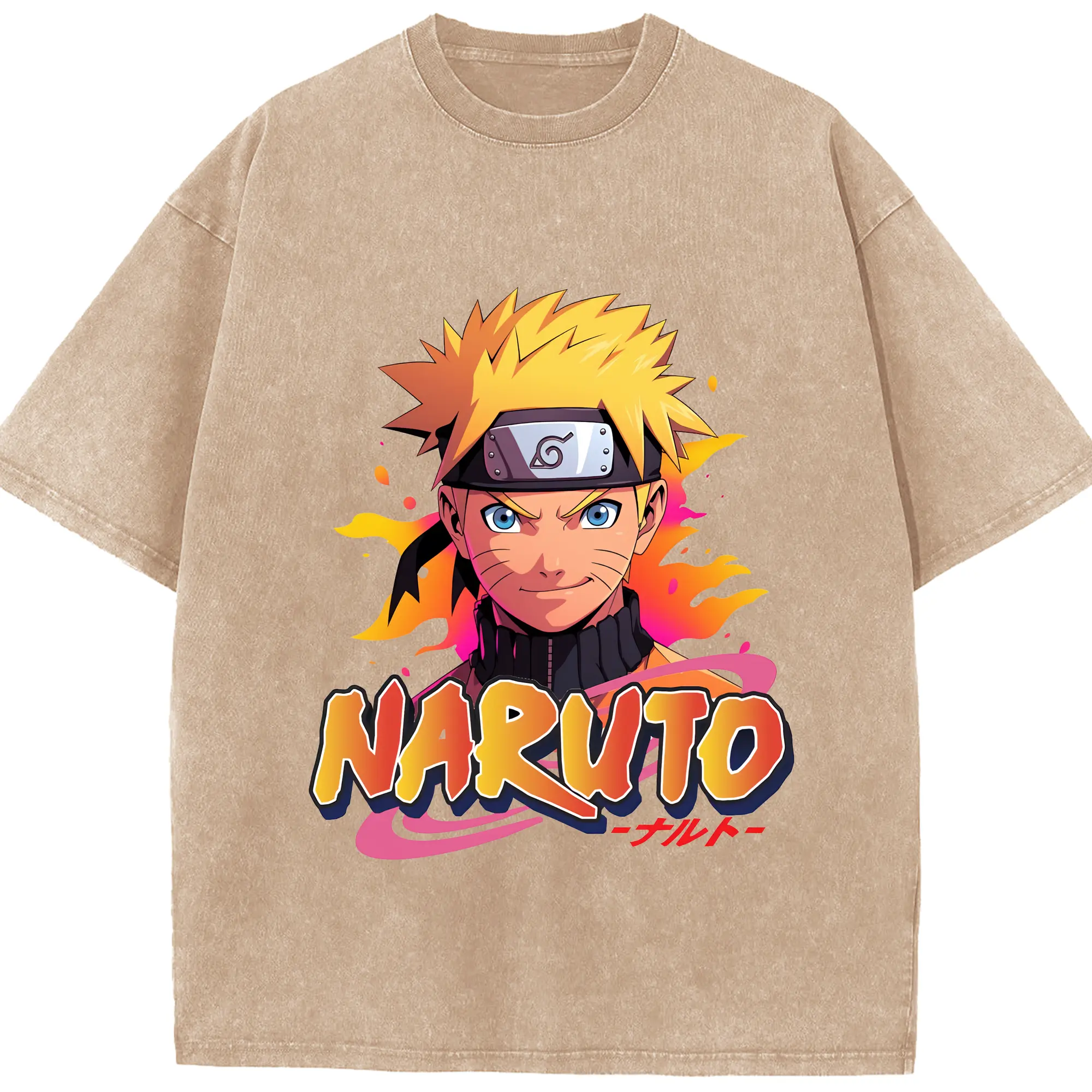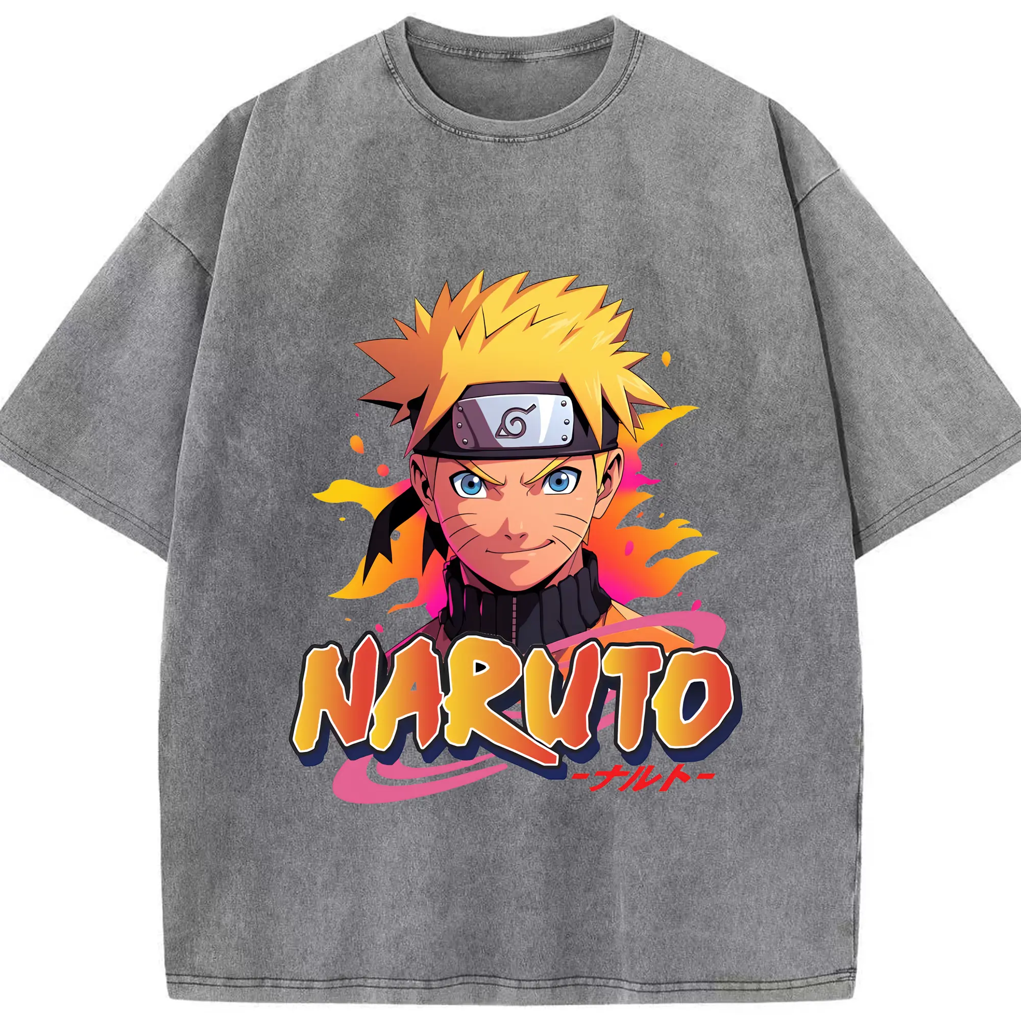ナルト グッズ うずまき ナルト - 綿100% ヴィンテージ風 半袖Tシャツ ・ 背面プリント ・ 柔らか肌触り ・ 通気性 快適 ・ スポーツ カジュアル 外出用