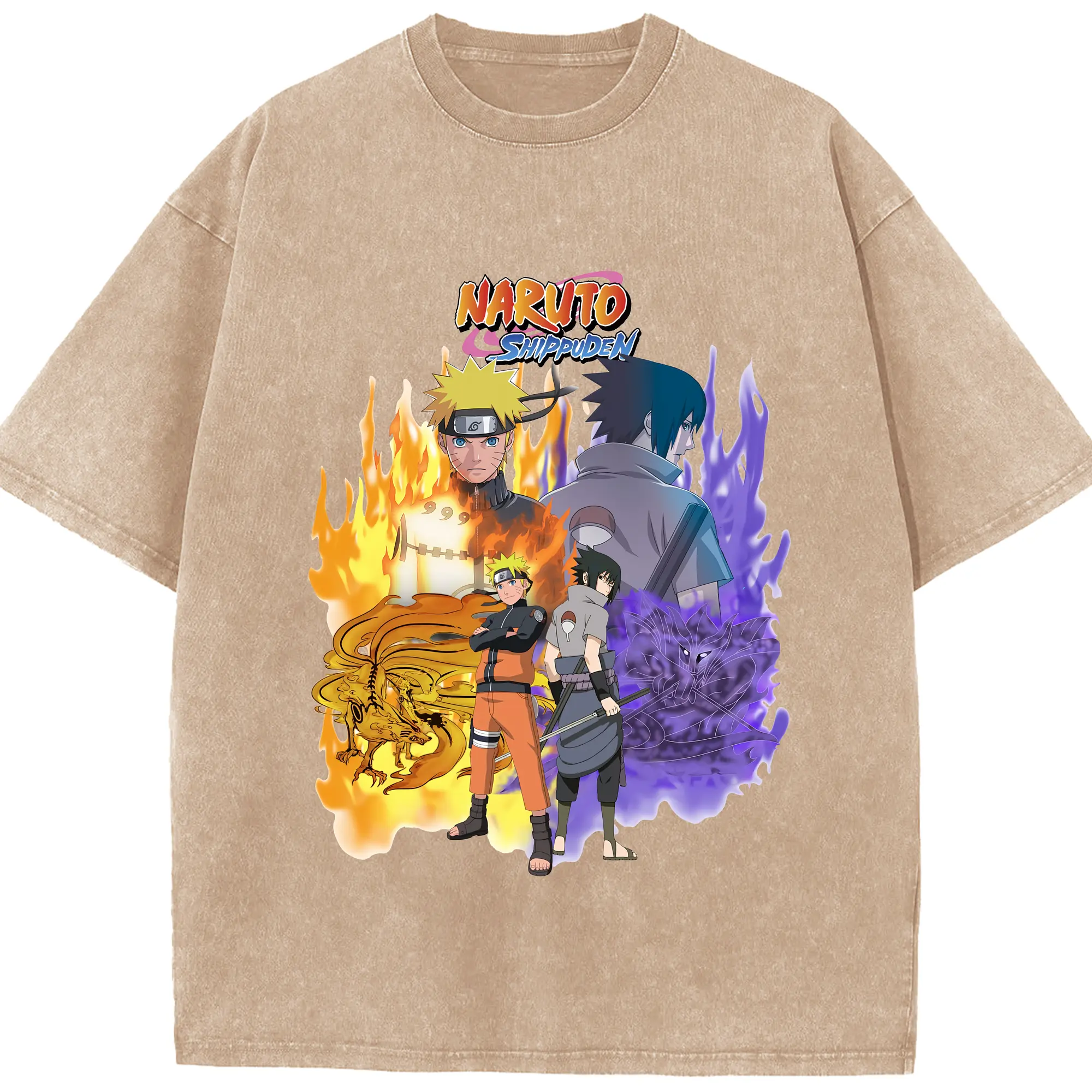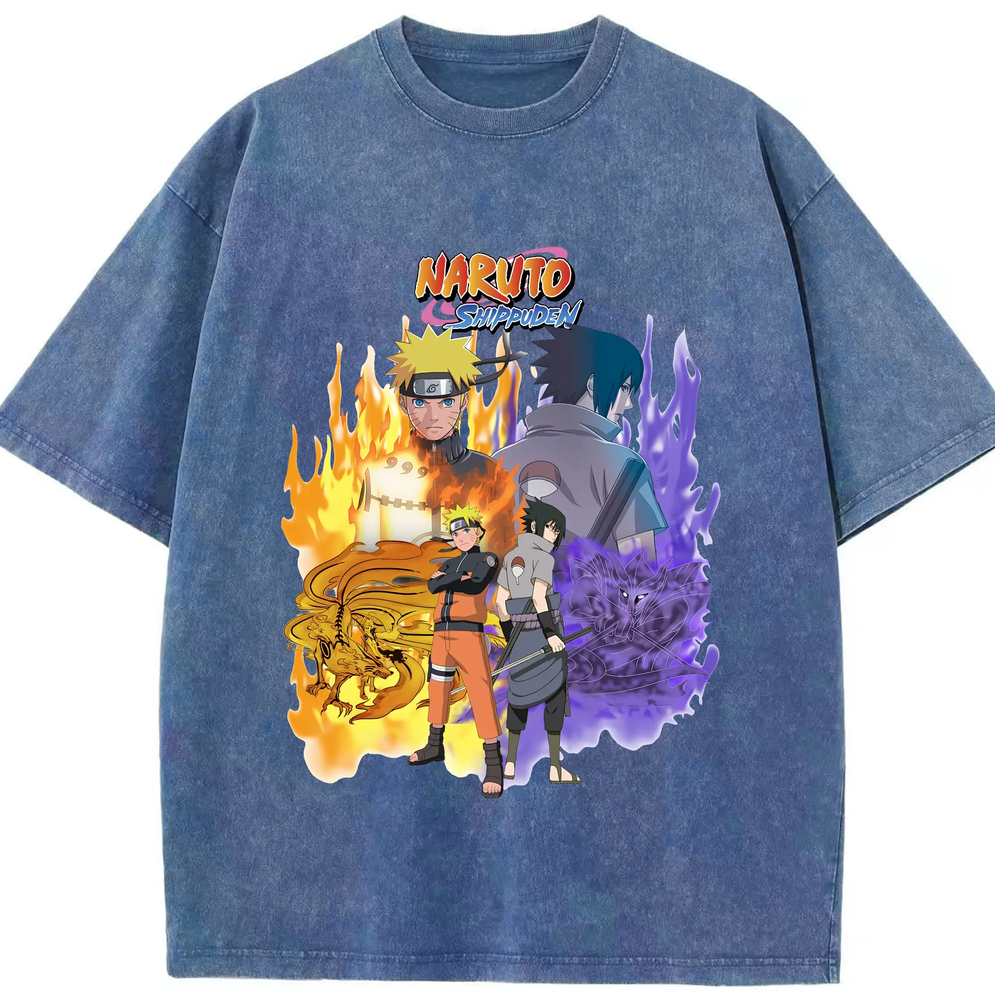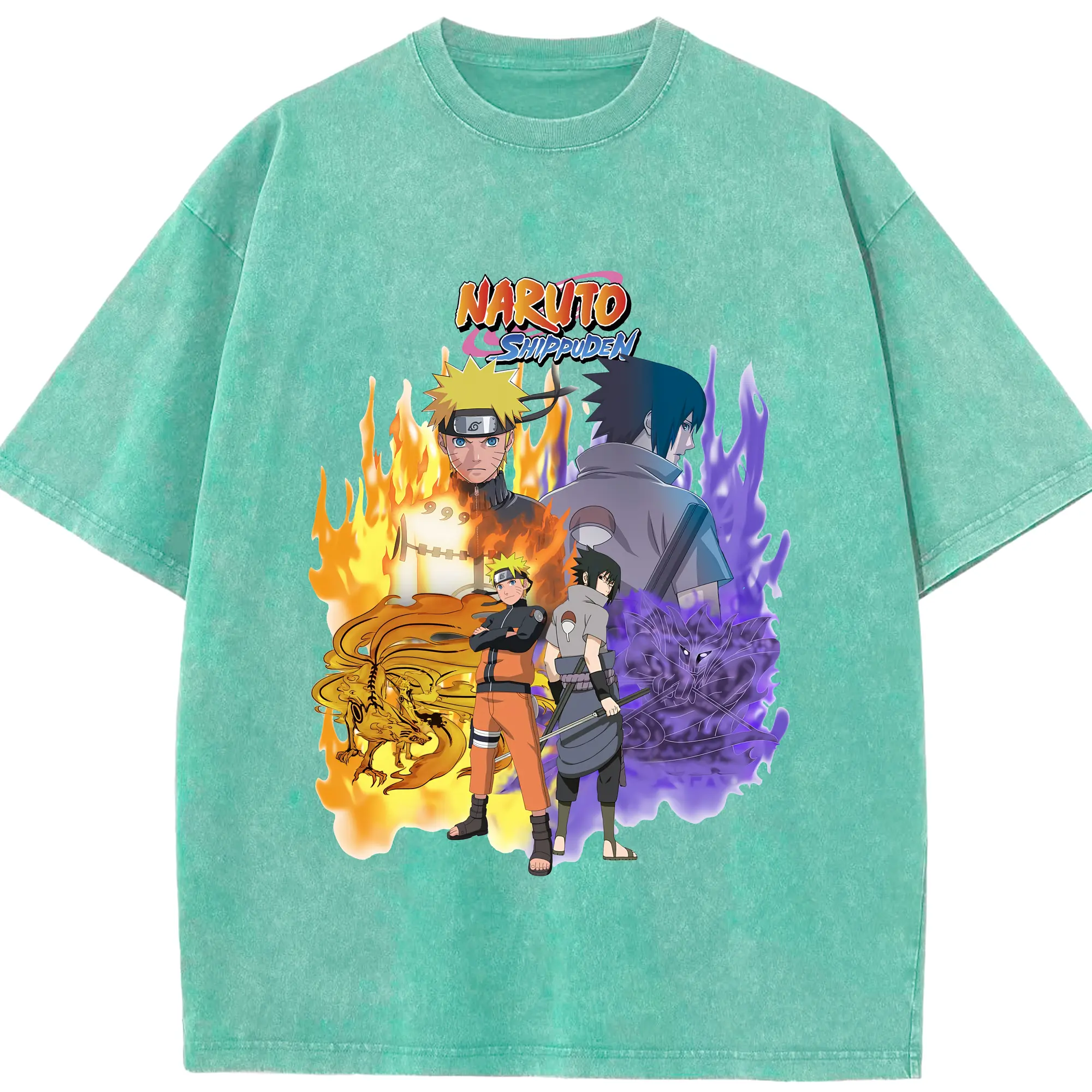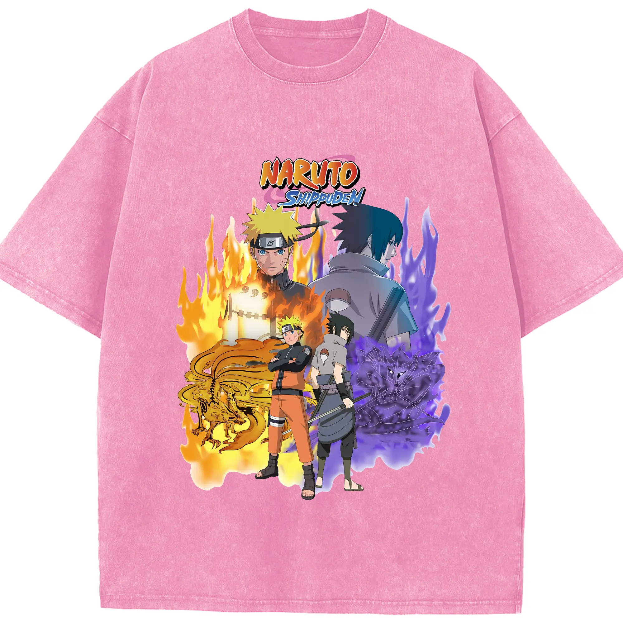 ナルト グッズ うずまき ナルト - 綿100% ヴィンテージ風 半袖Tシャツ ・ 背面プリント ・ 柔らか肌触り ・ 通気性 快適 ・ スポーツ カジュアル 外出用