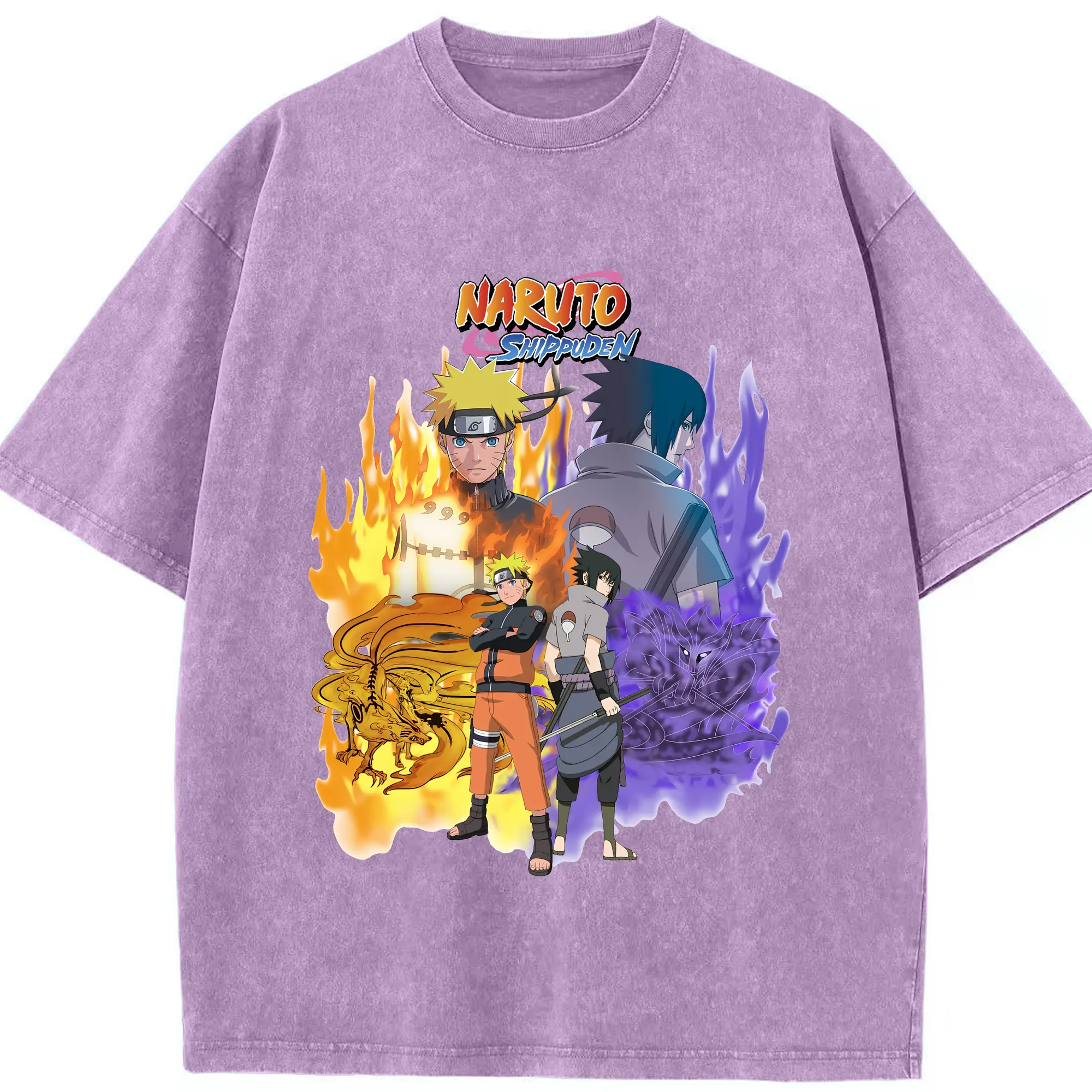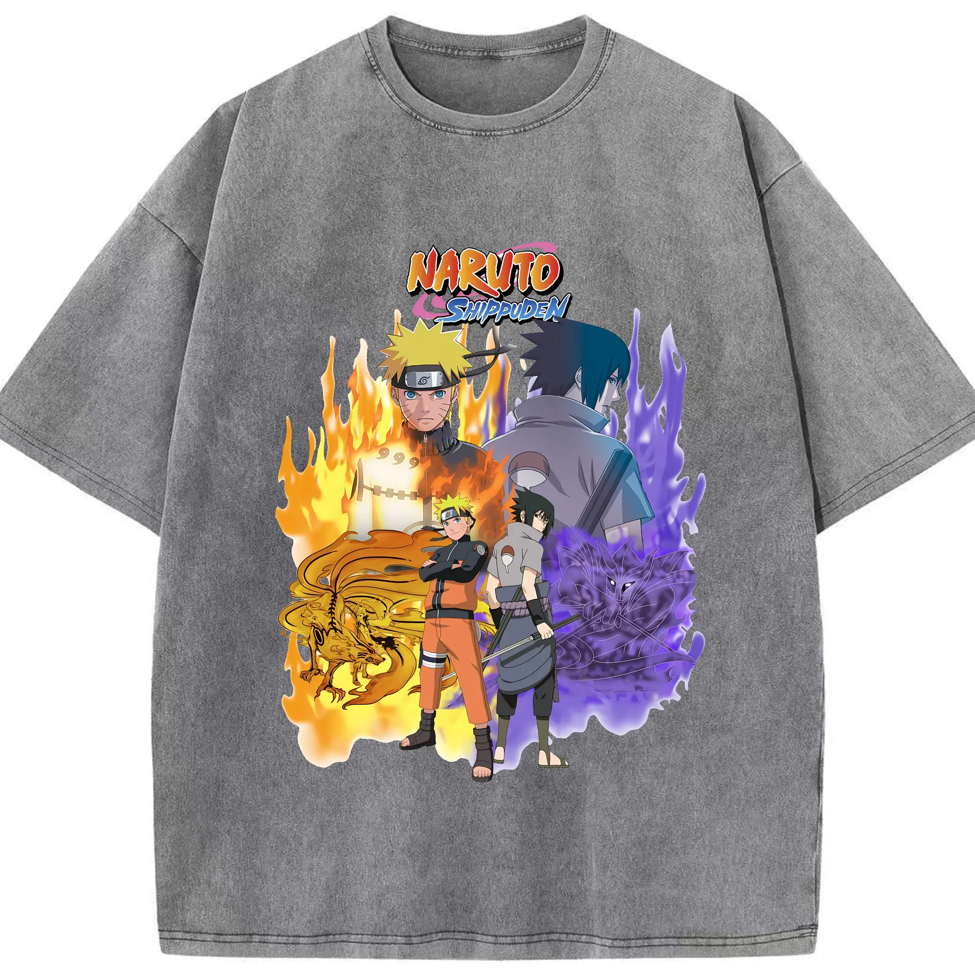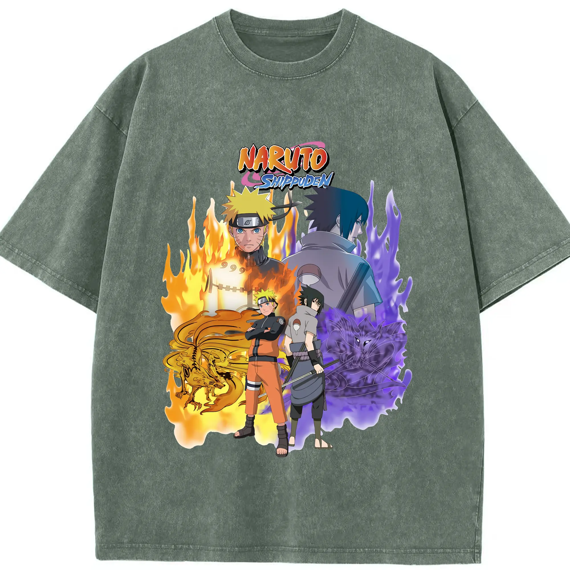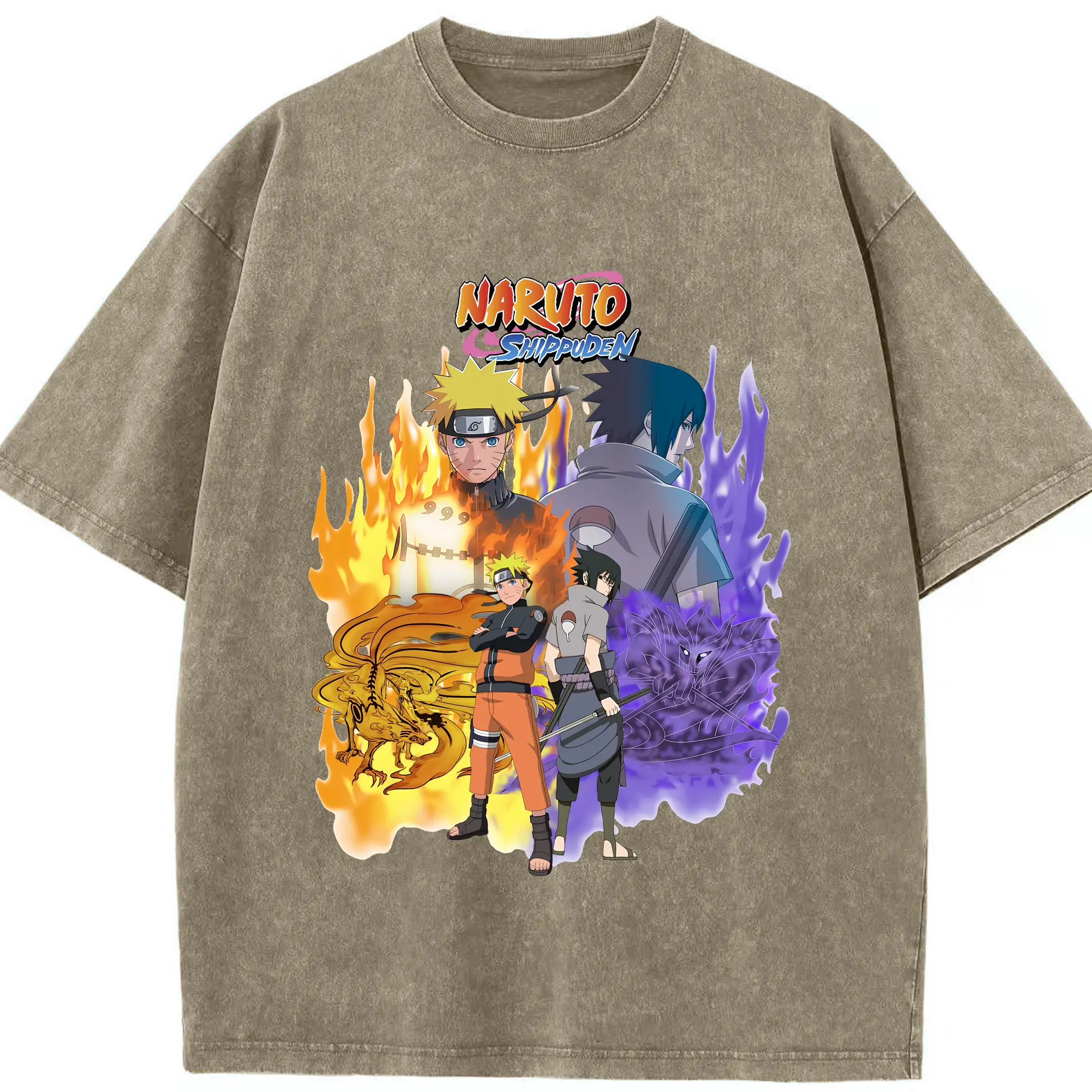ナルト グッズ うずまき ナルト - 綿100% ヴィンテージ風 半袖Tシャツ ・ 背面プリント ・ 柔らか肌触り ・ 通気性 快適 ・ スポーツ カジュアル 外出用
