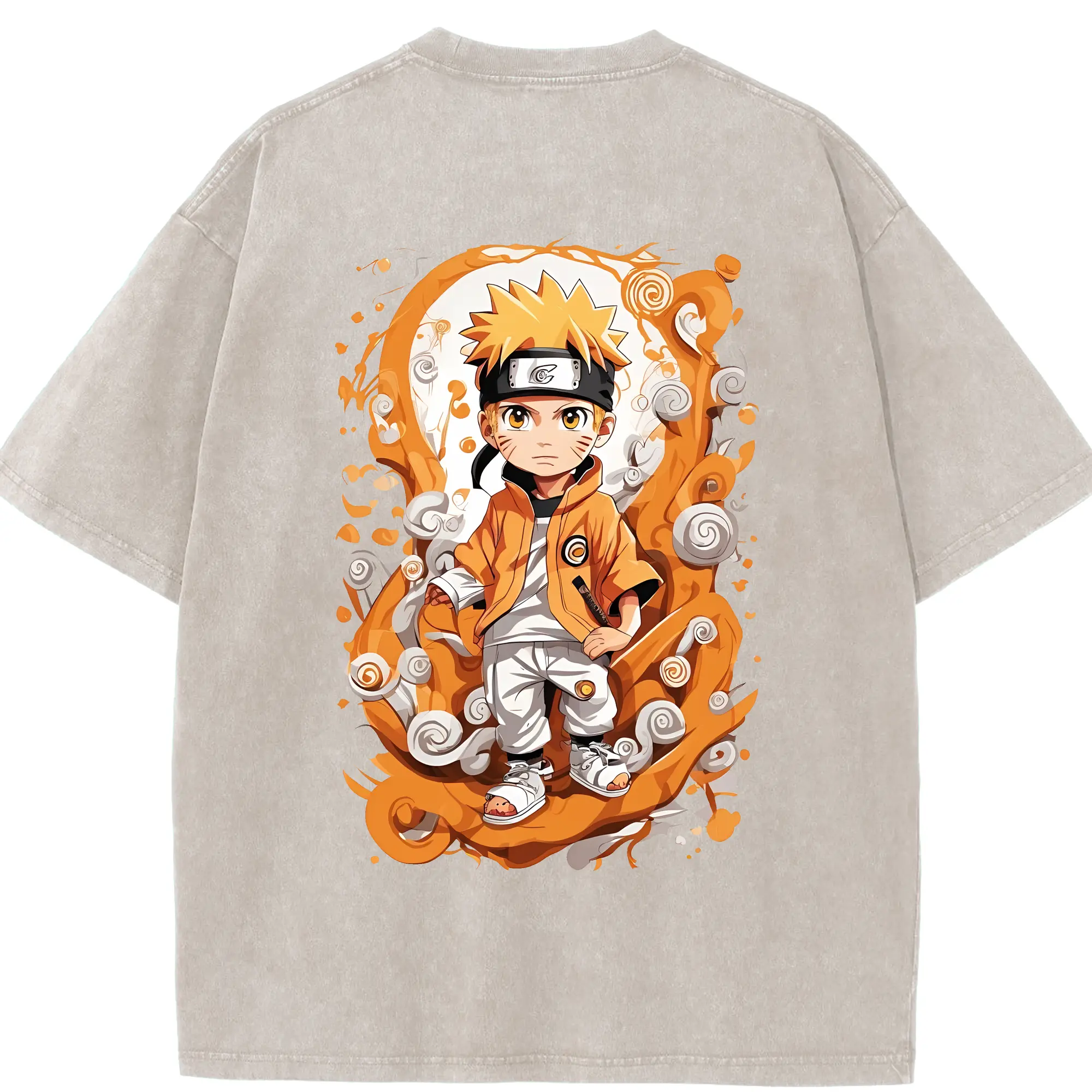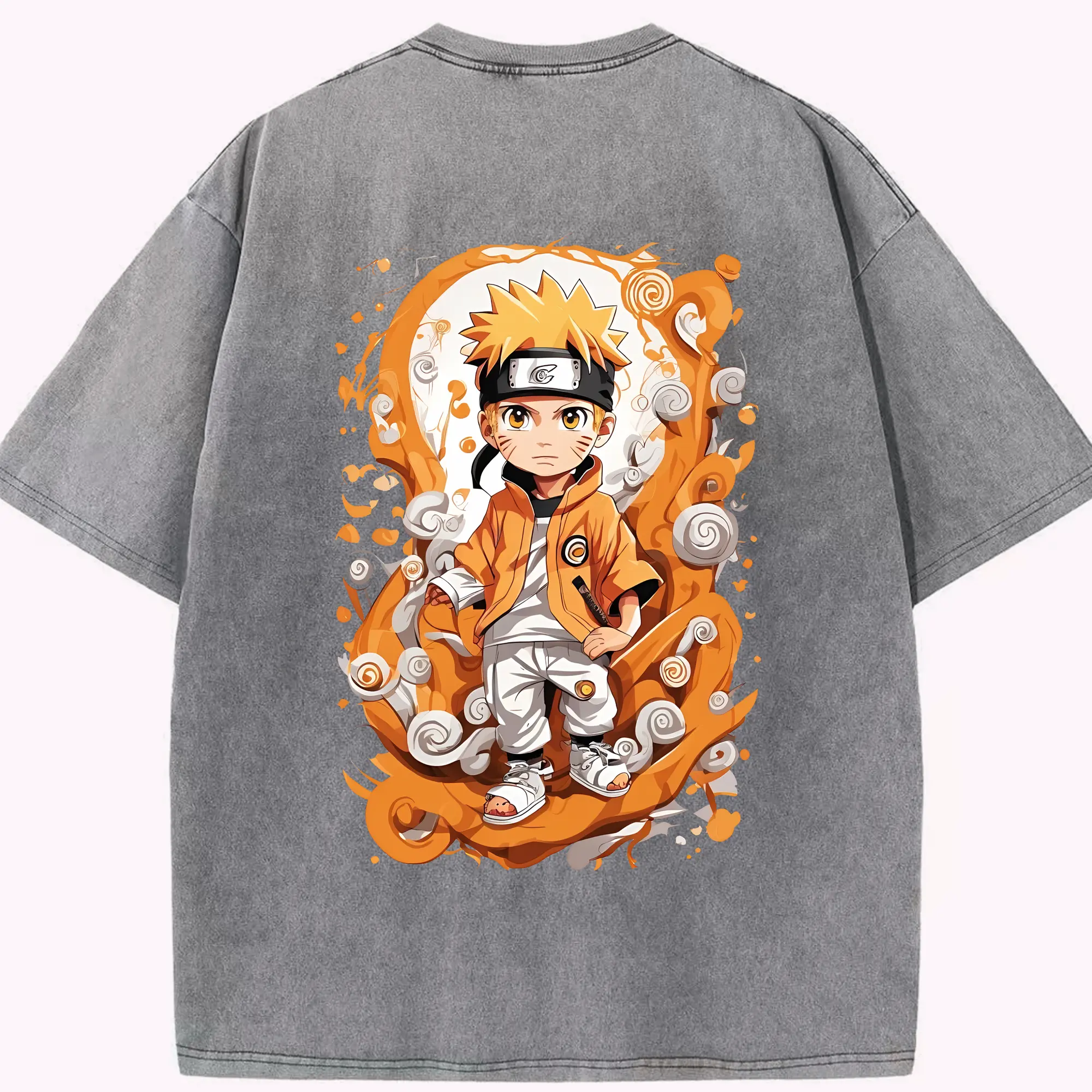 ナルト グッズ うずまき ナルト - 綿100% ヴィンテージ風 半袖Tシャツ ・ 背面プリント ・ 柔らか肌触り ・ 通気性 快適 ・ スポーツ カジュアル 外出用