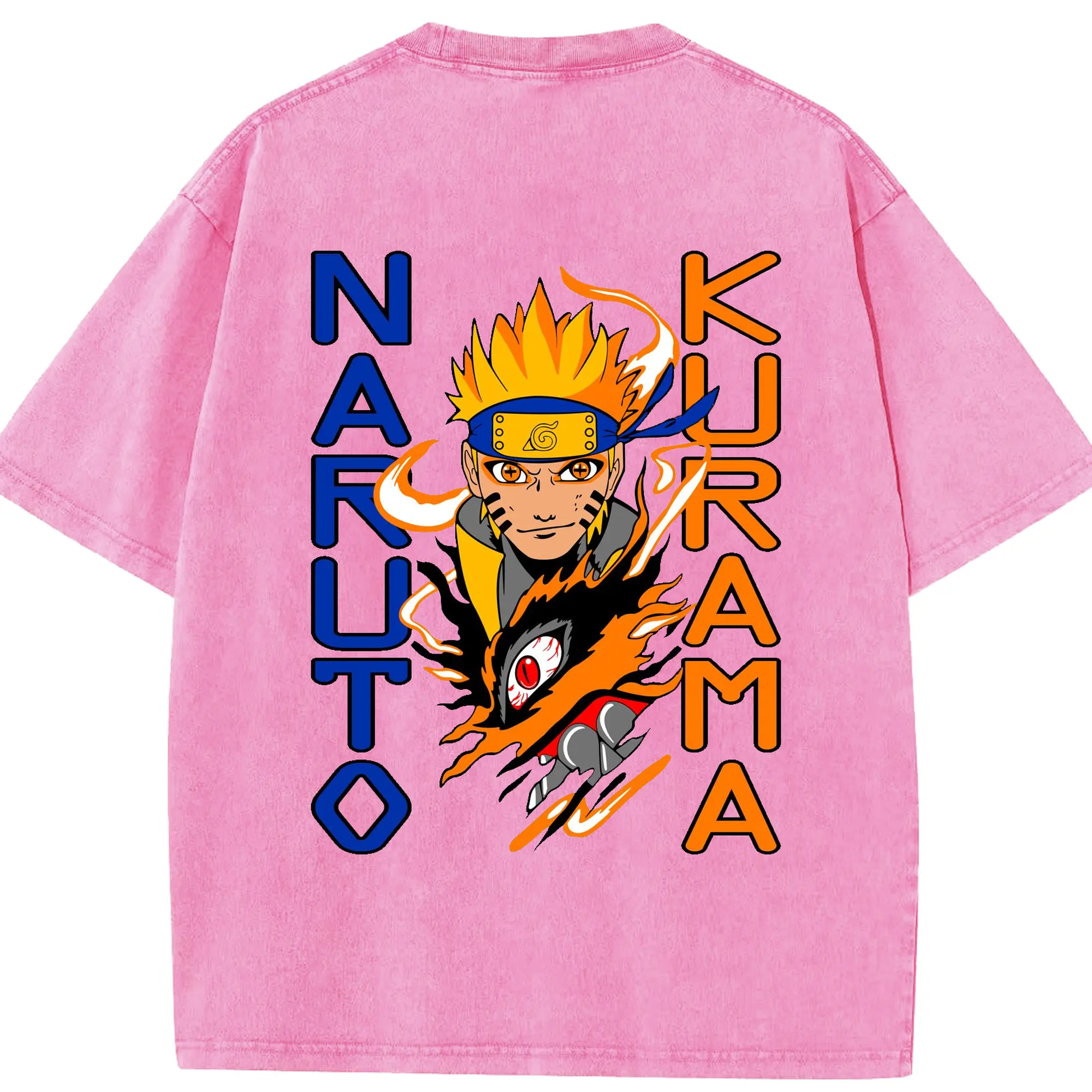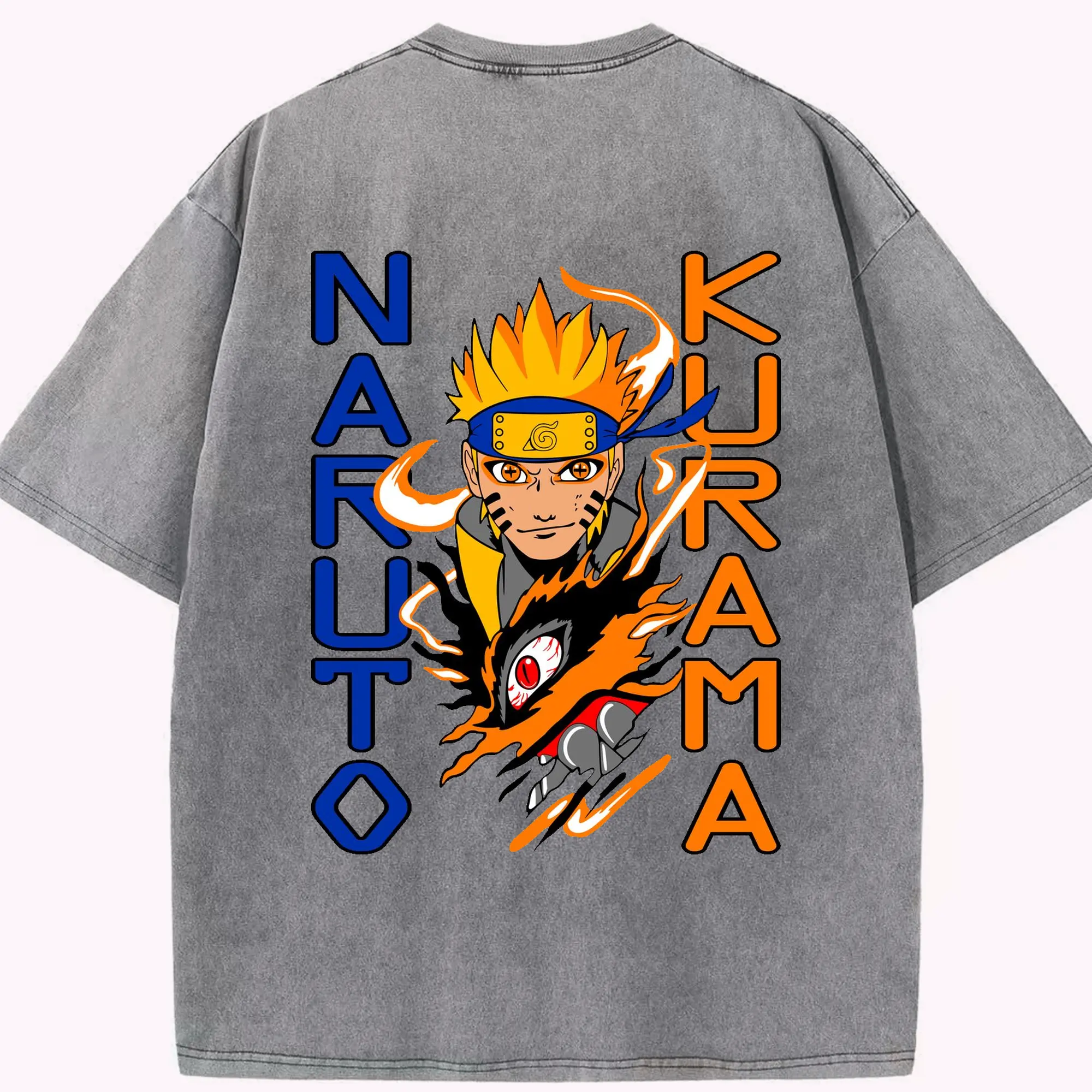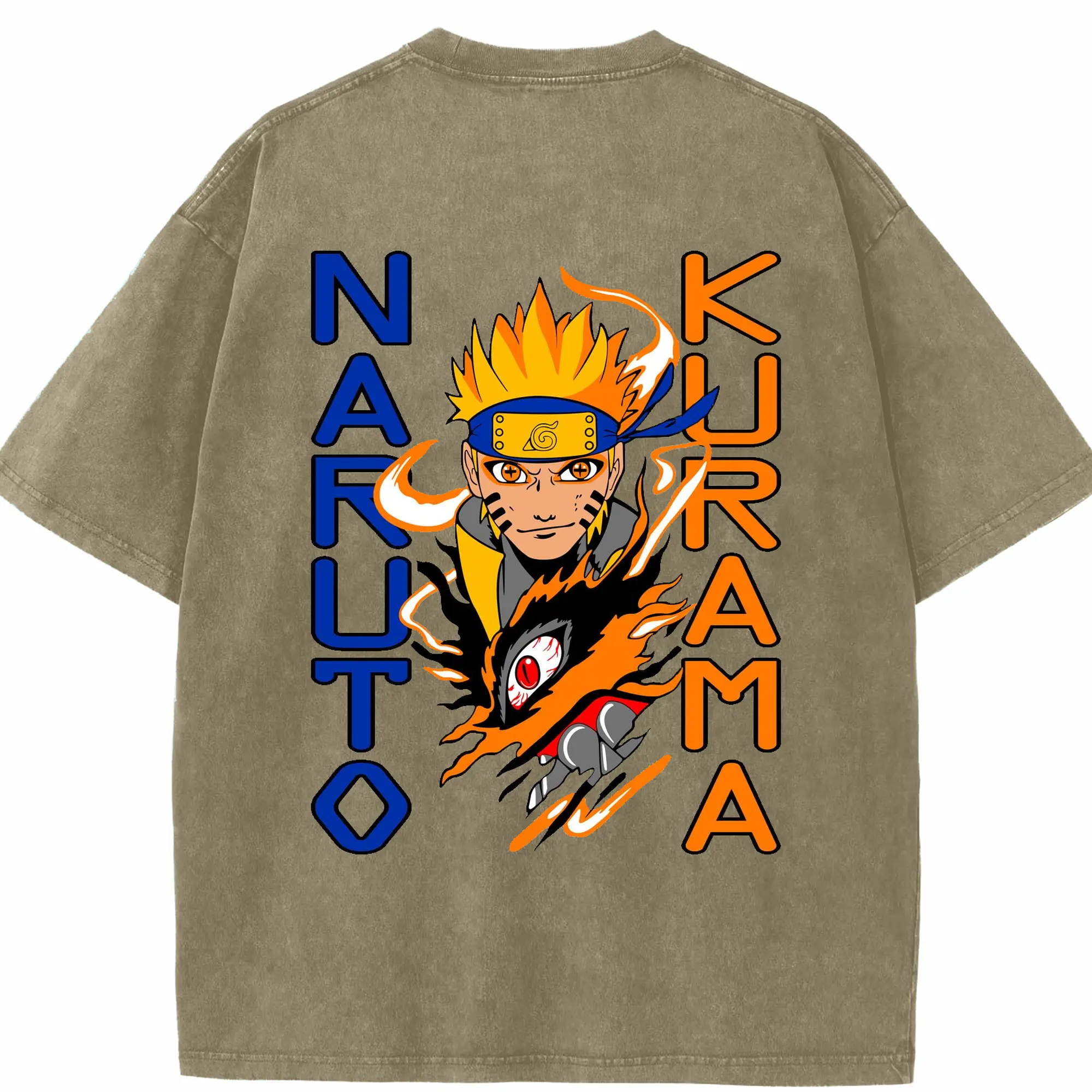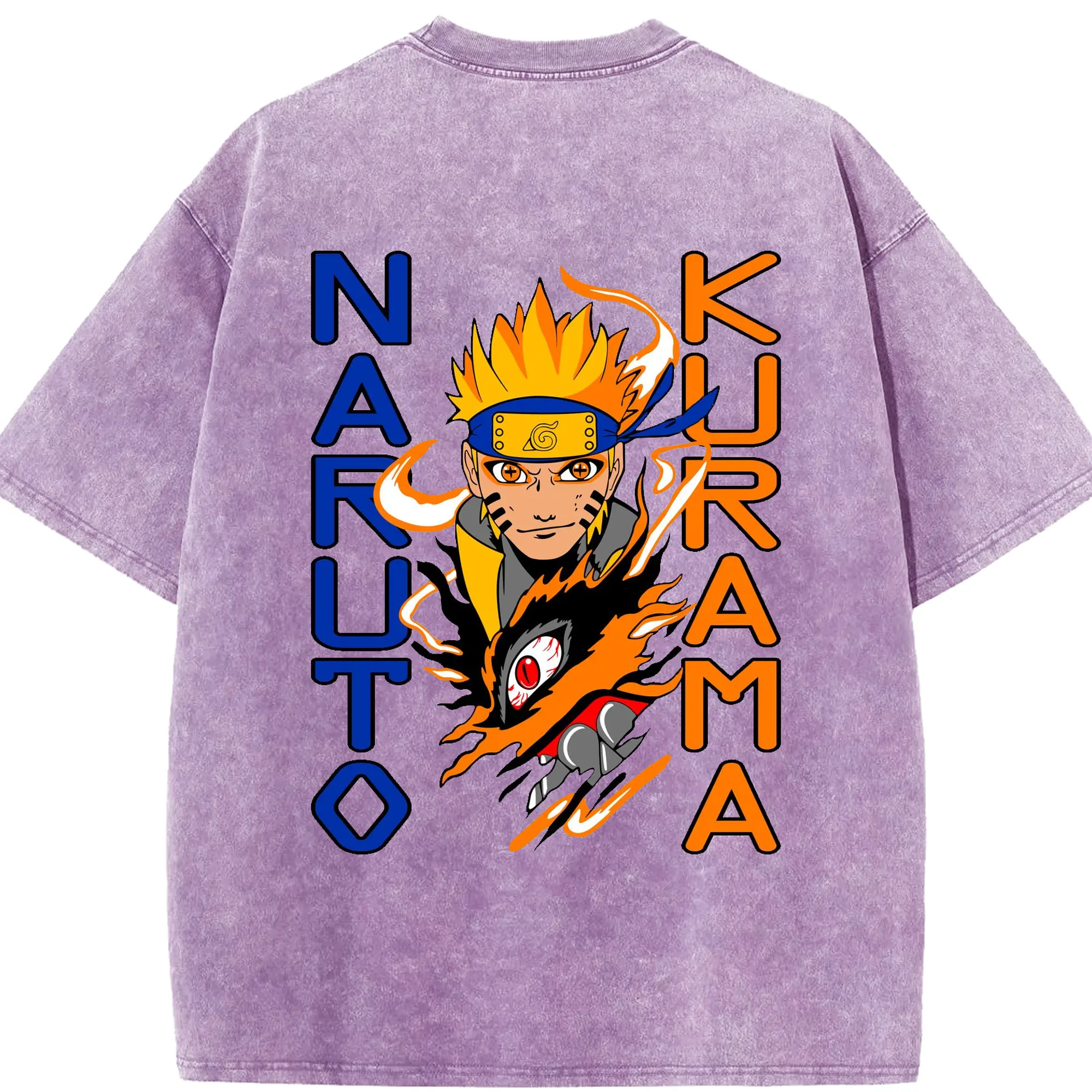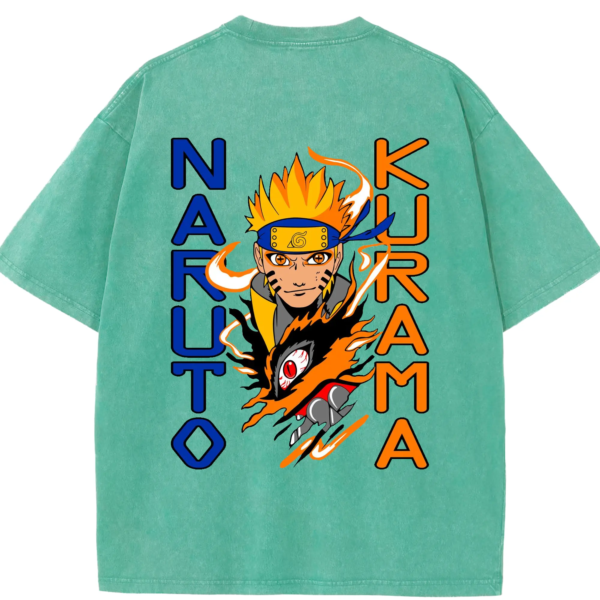 ナルト グッズ うずまき ナルト - 綿100% ヴィンテージ風 半袖Tシャツ ・ フロントプリント ・ 柔らか肌触り ・ 通気性 快適 ・ スポーツ カジュアル 外出用