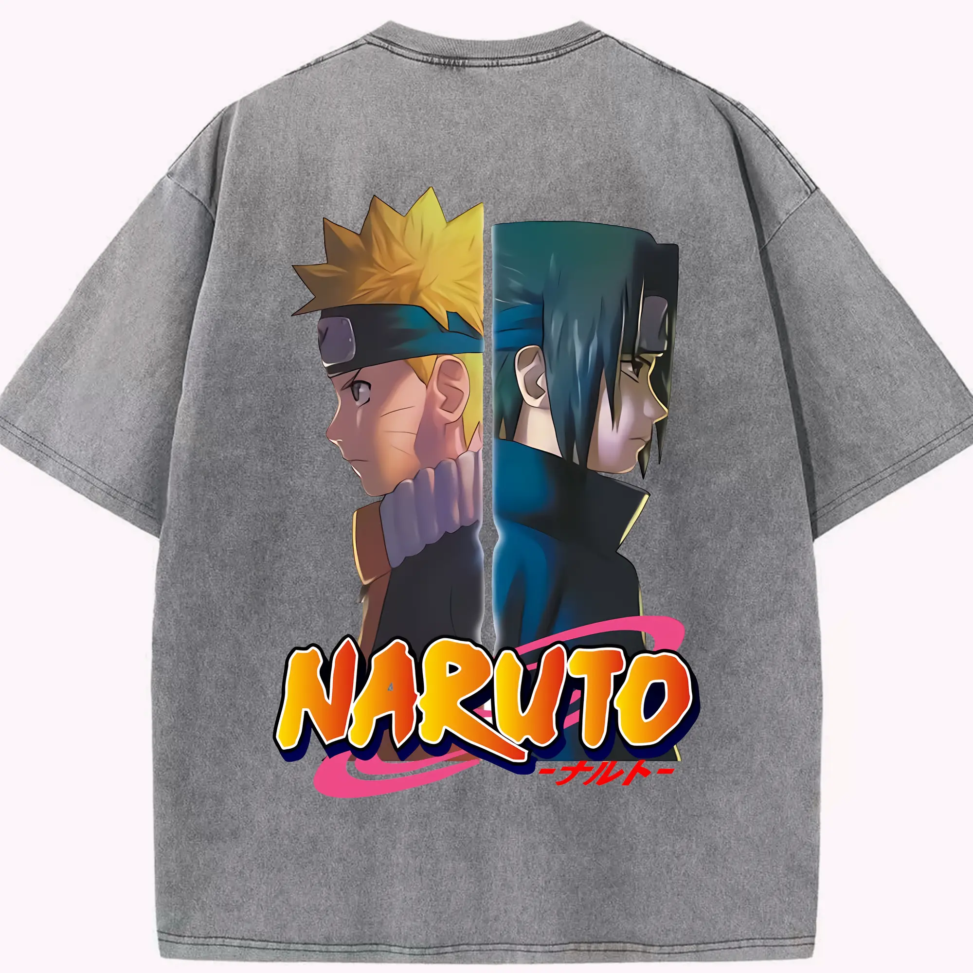 ナルト グッズ うずまき ナルト - 綿100% ヴィンテージ風 半袖Tシャツ ・ フロントプリント ・ 柔らか肌触り ・ 通気性 快適 ・ スポーツ カジュアル 外出用