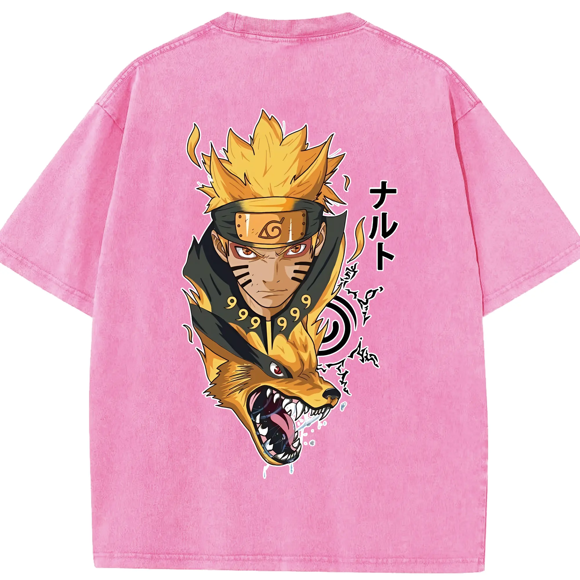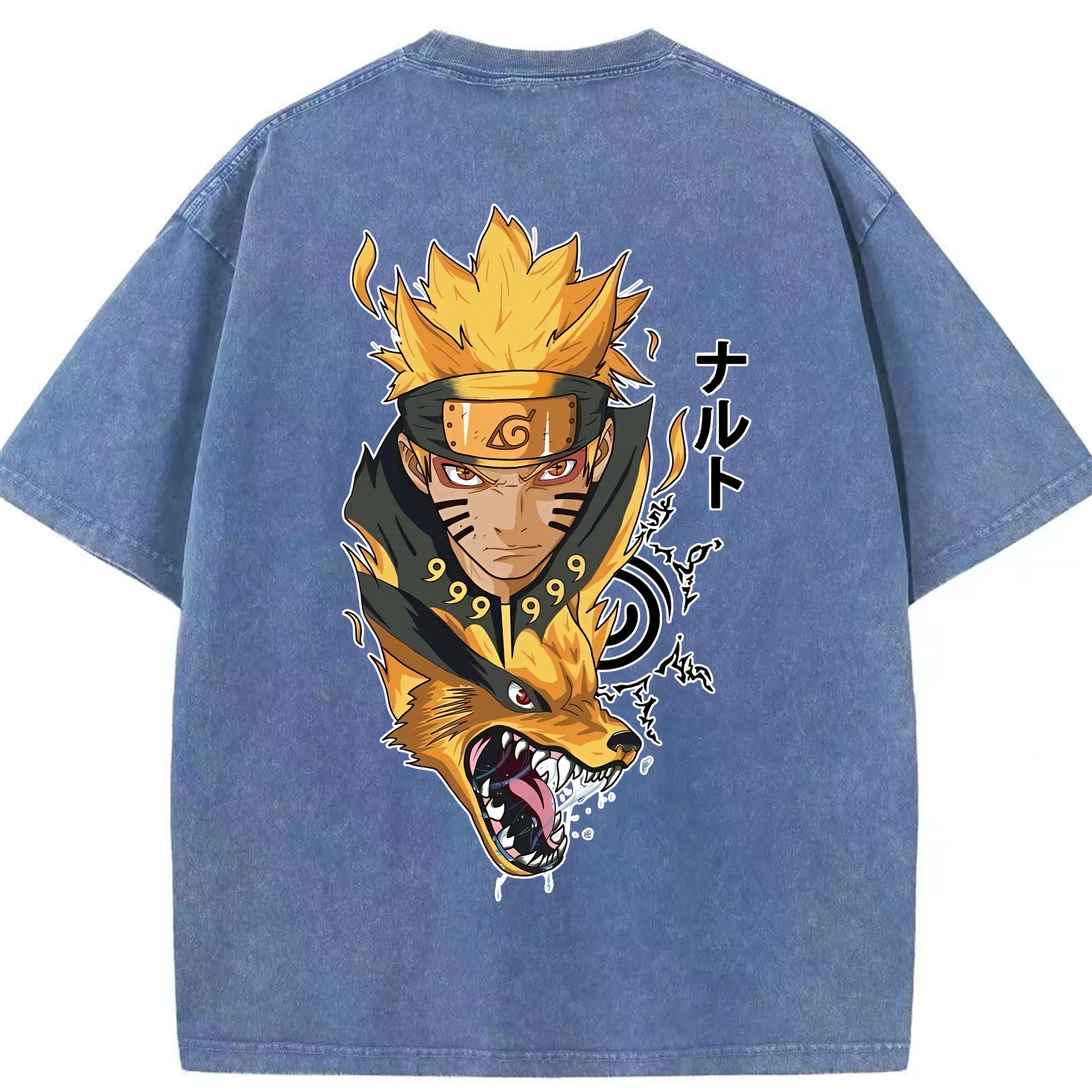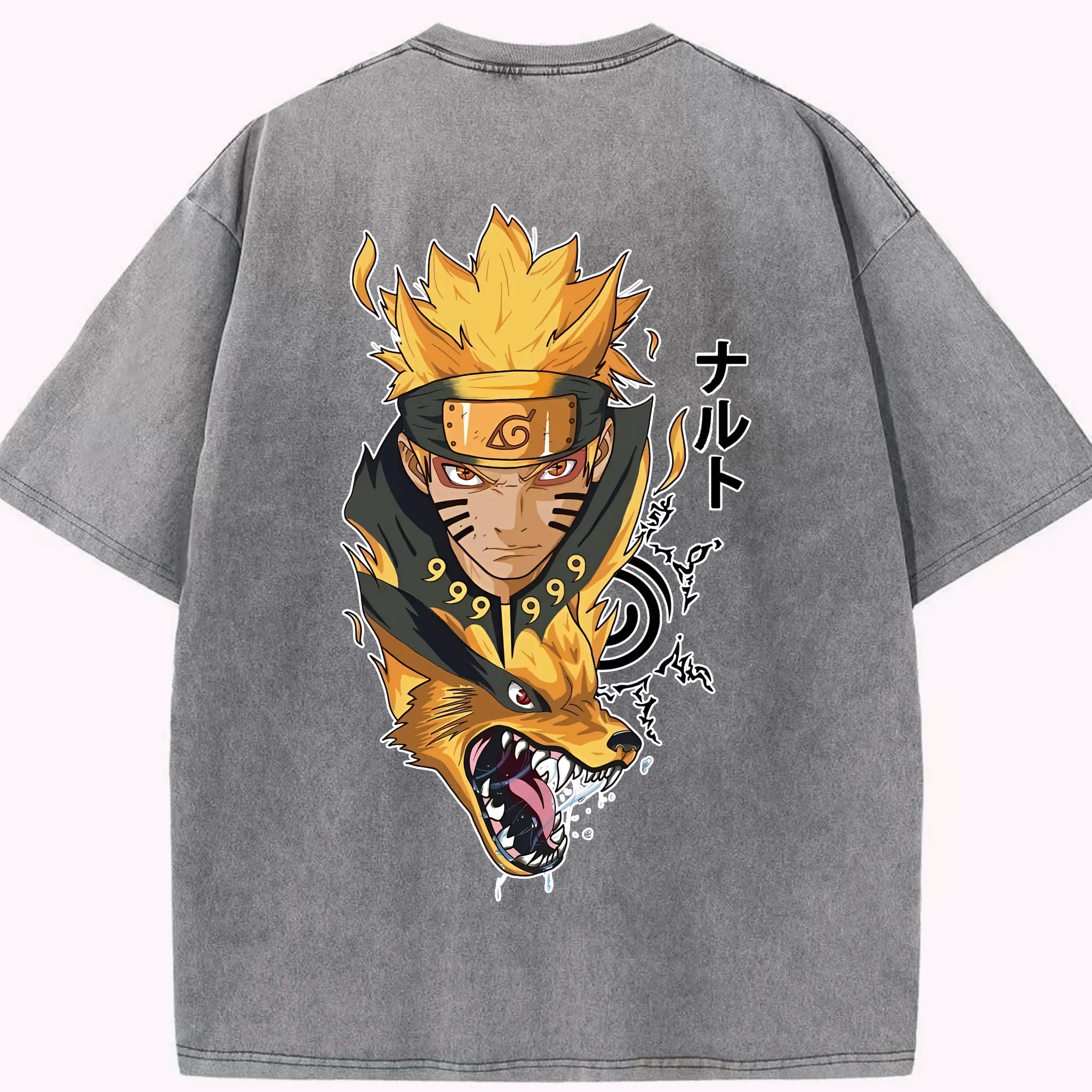 ナルト グッズ うずまき ナルト - 綿100% ヴィンテージ風 半袖Tシャツ ・ フロントプリント ・ 柔らか肌触り ・ 通気性 快適 ・ スポーツ カジュアル 外出用