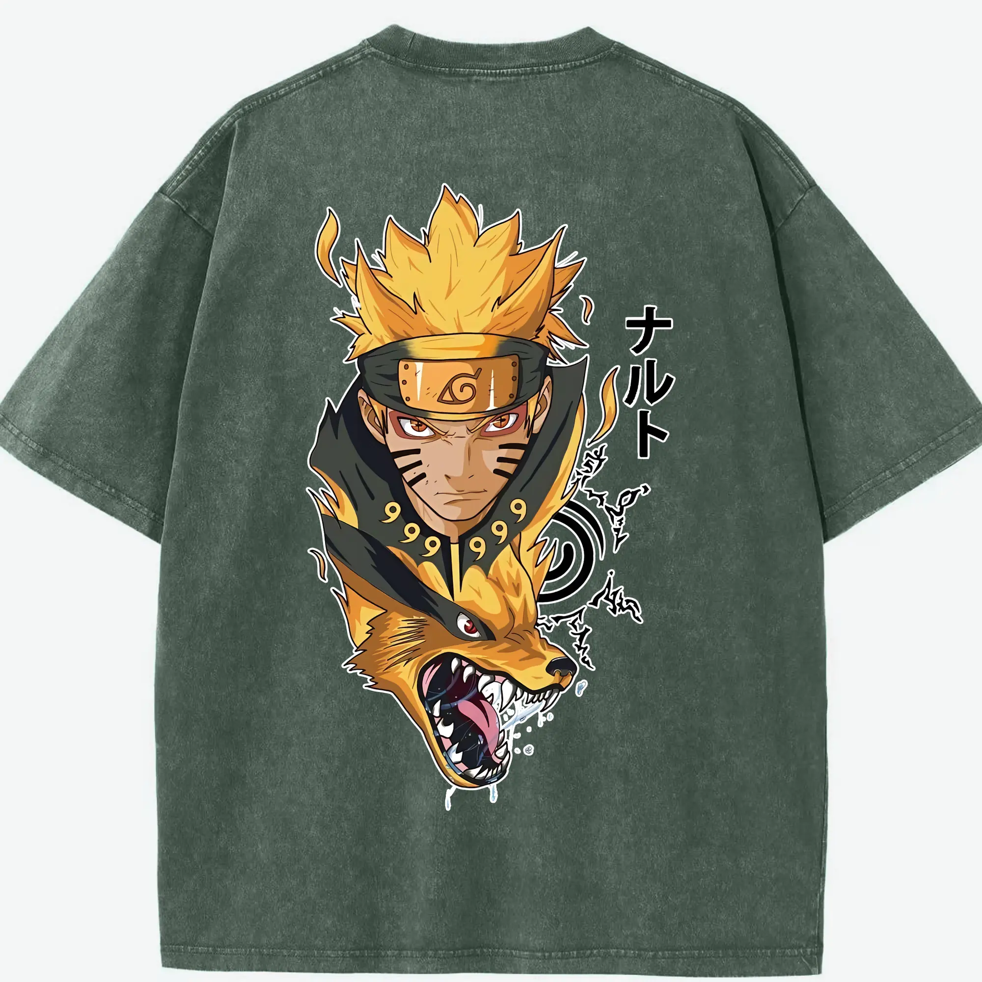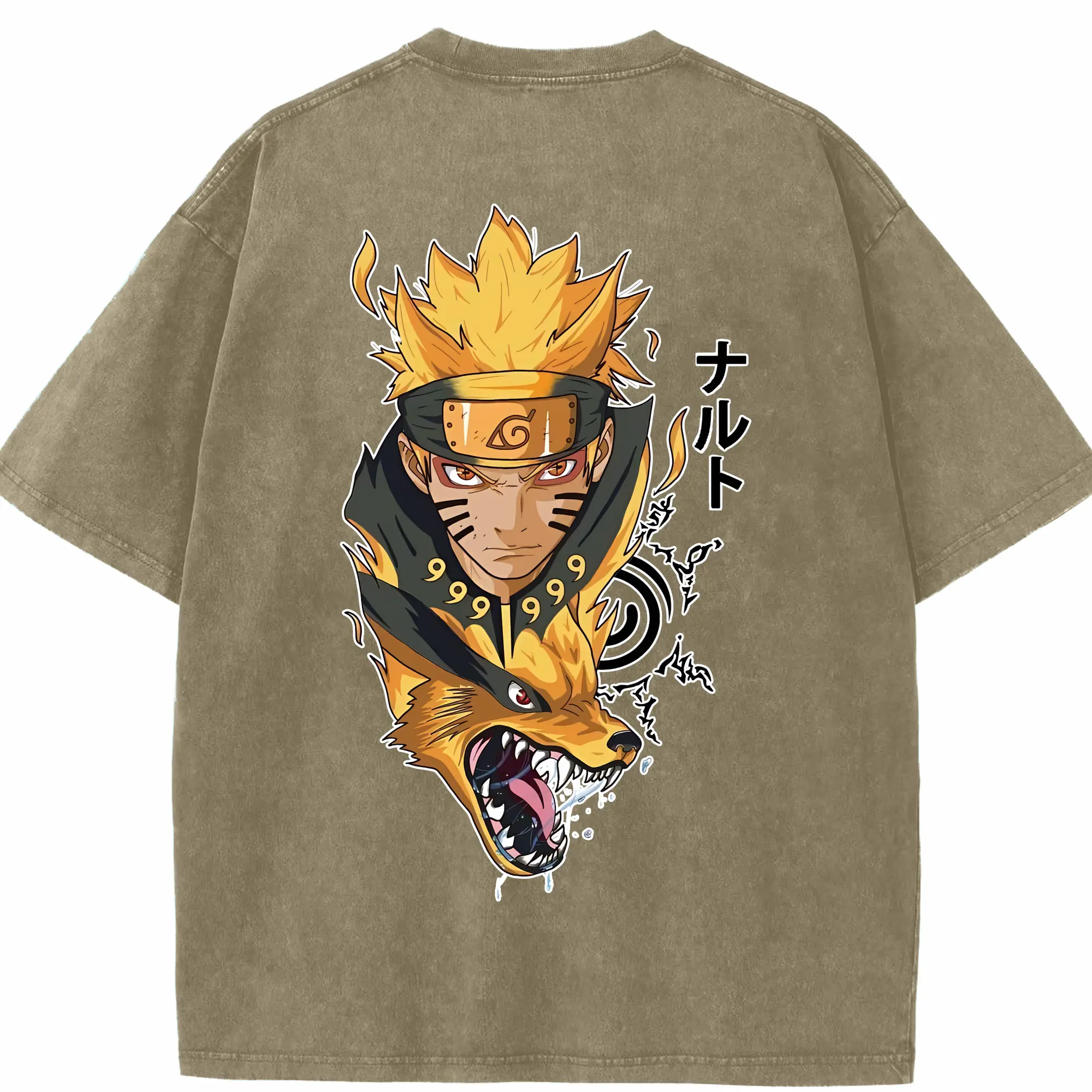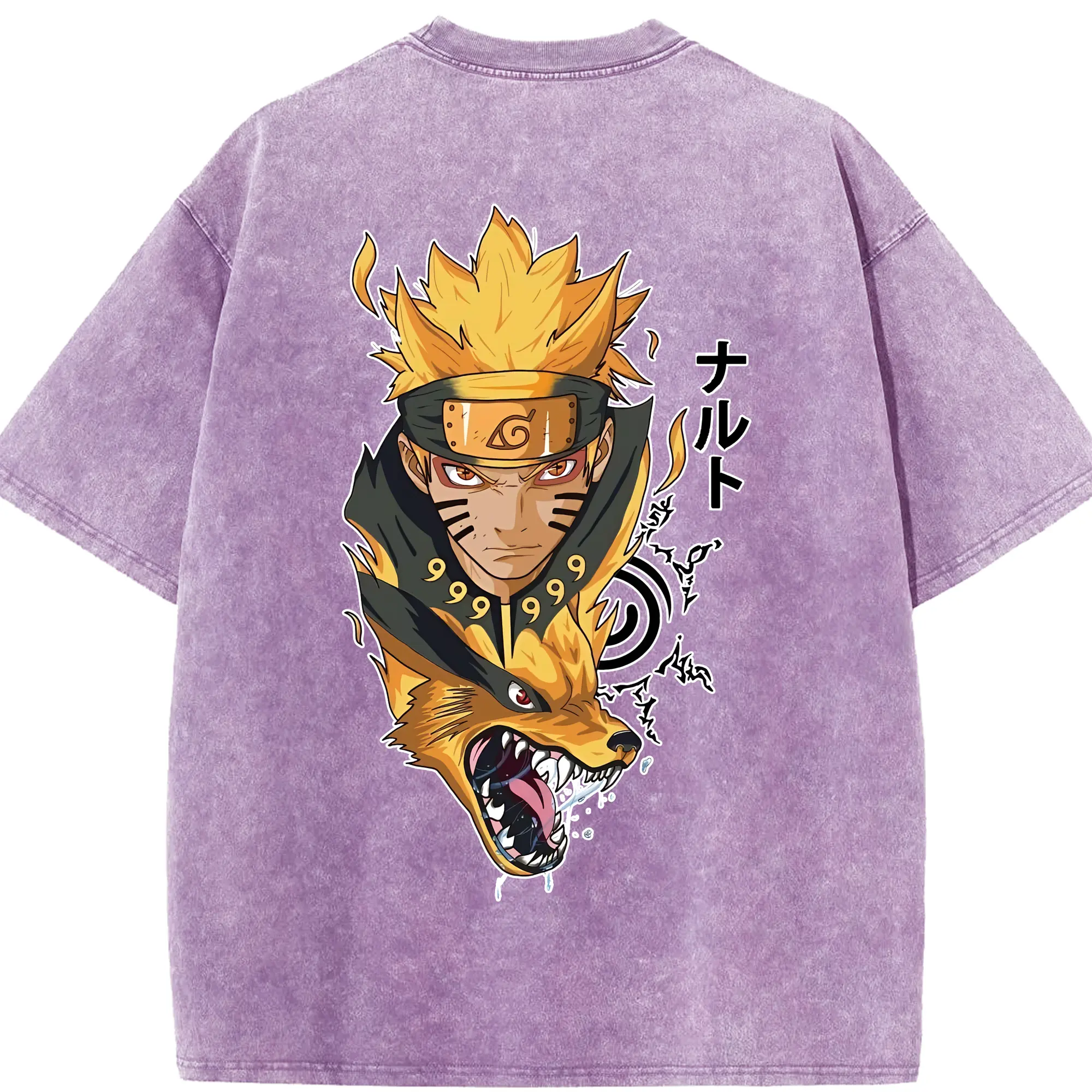 ナルト グッズ うずまき ナルト - 綿100% ヴィンテージ風 半袖Tシャツ ・ フロントプリント ・ 柔らか肌触り ・ 通気性 快適 ・ スポーツ カジュアル 外出用
