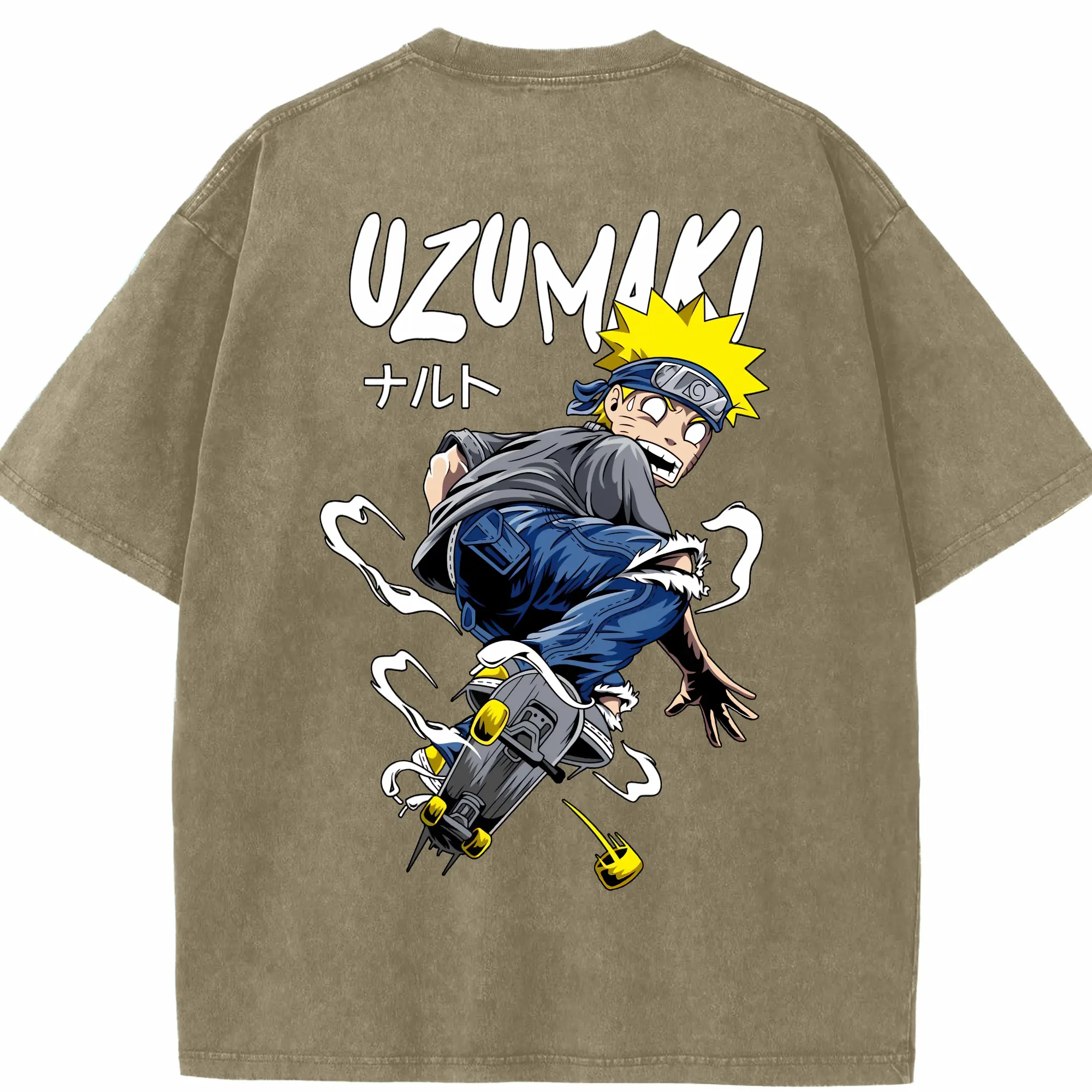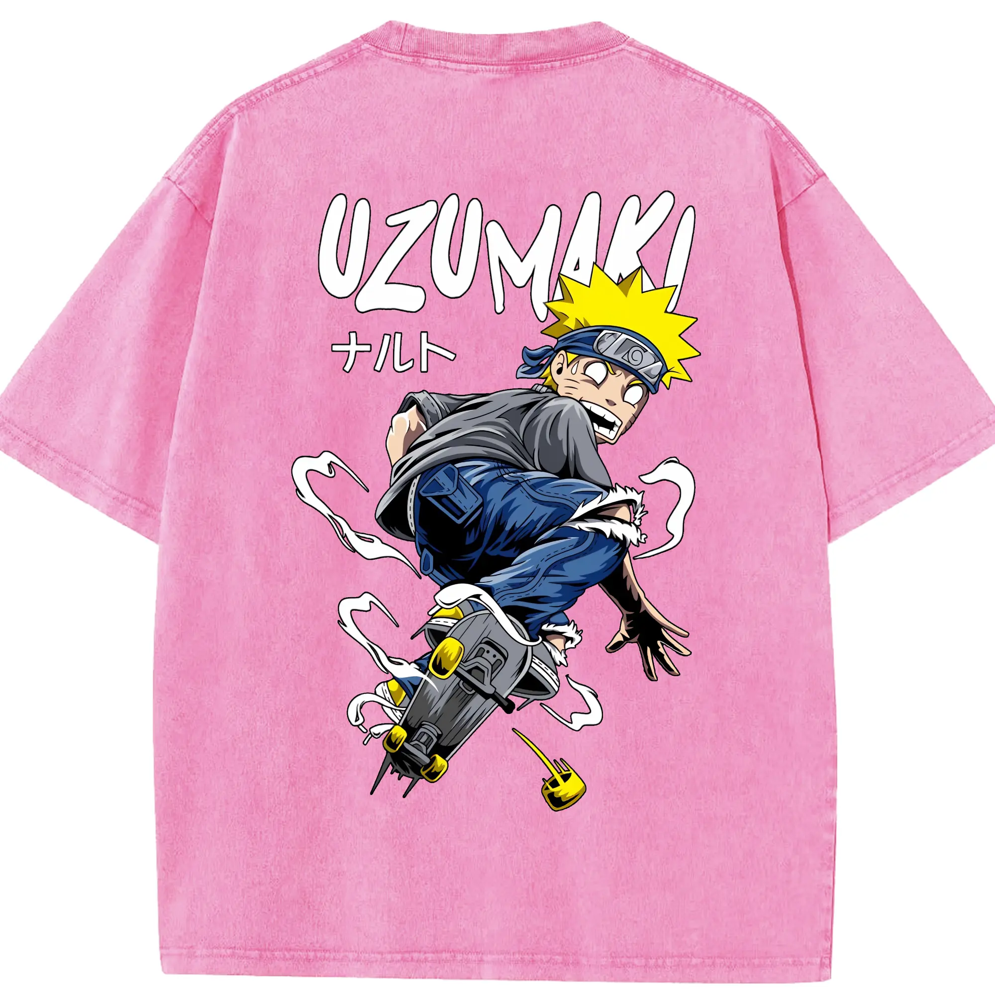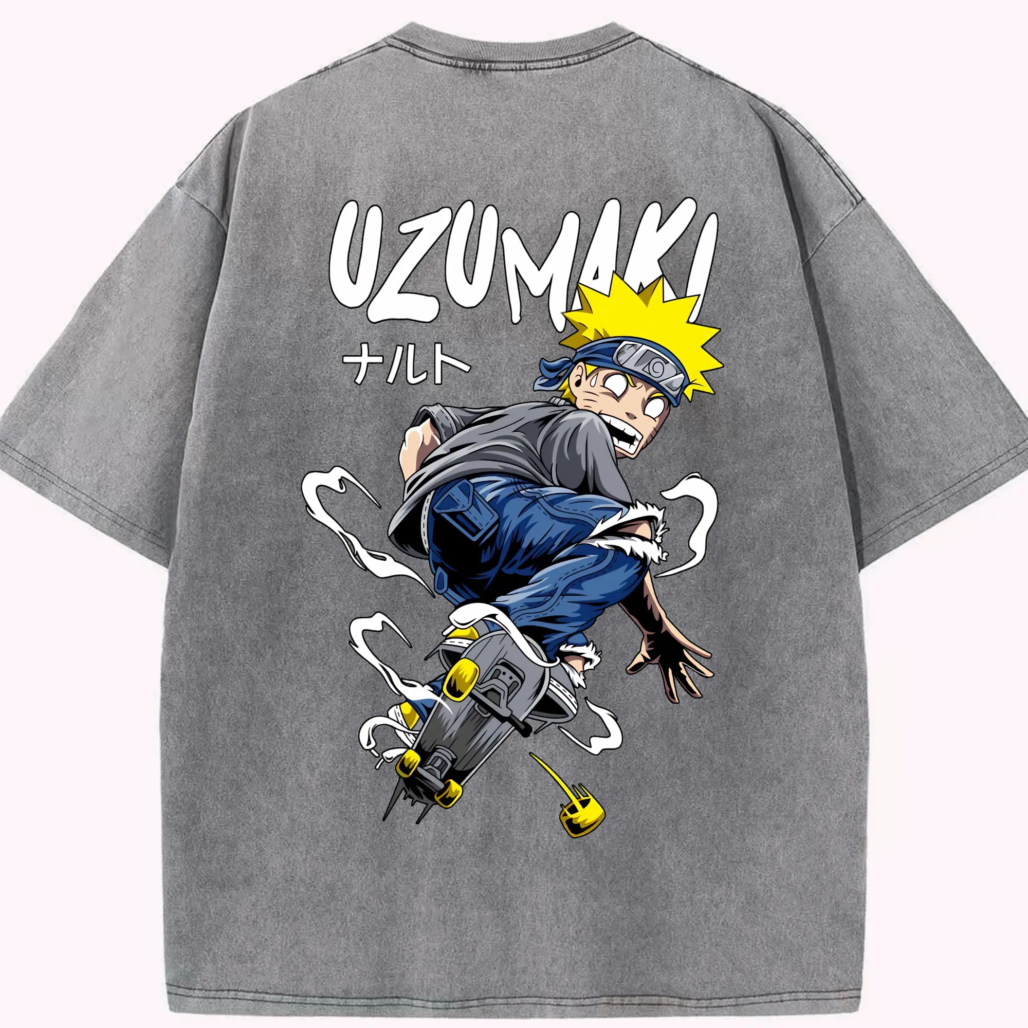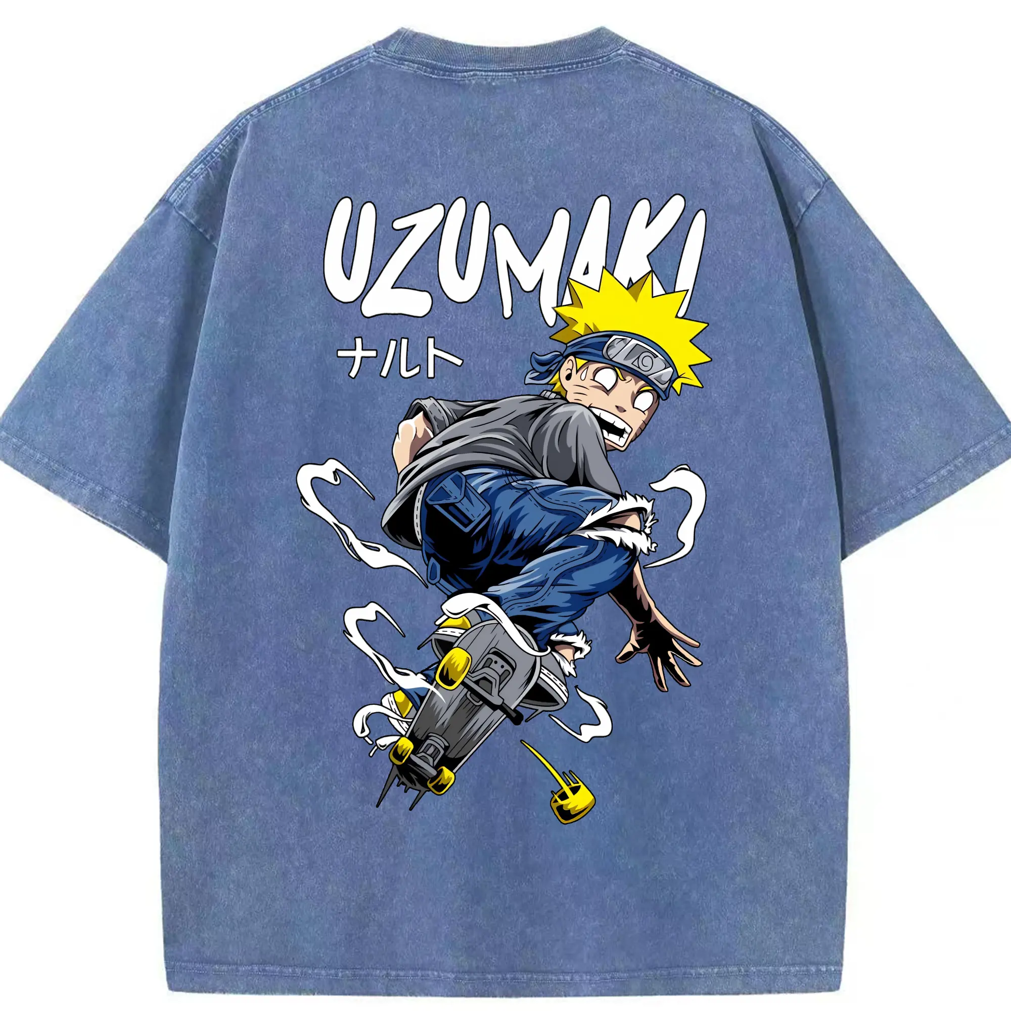 ナルト グッズ うずまき ナルト - 綿100% ヴィンテージ風 半袖Tシャツ ・ フロントプリント ・ 柔らか肌触り ・ 通気性 快適 ・ スポーツ カジュアル 外出用