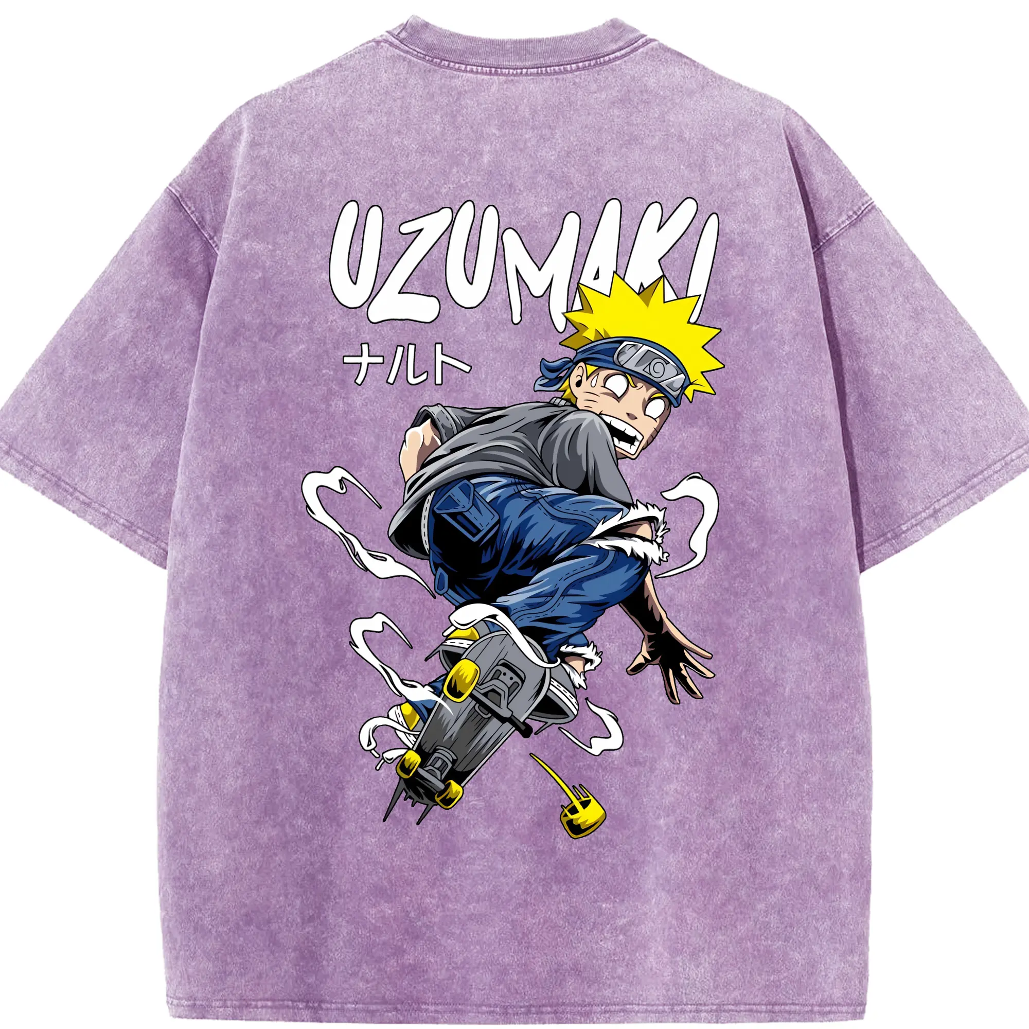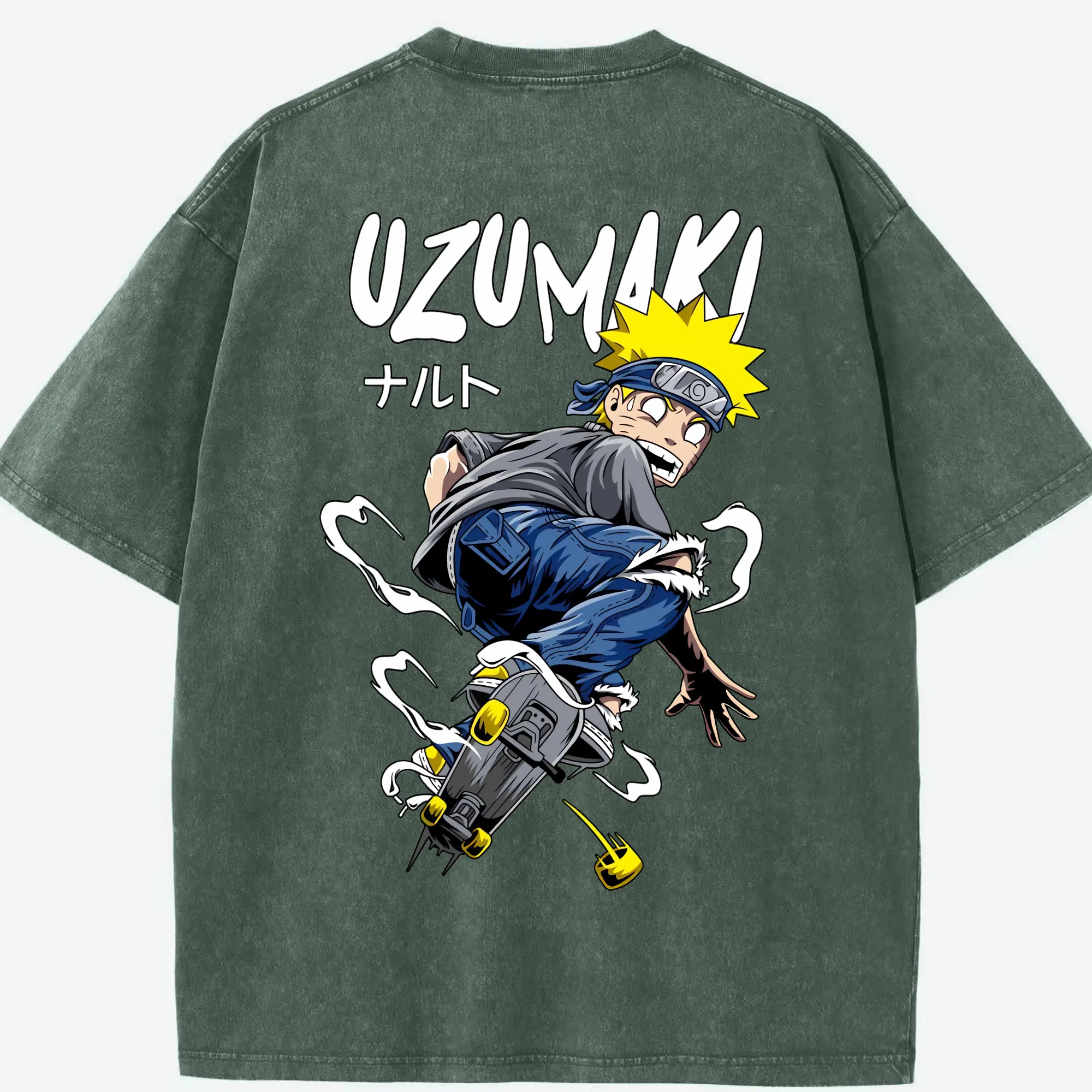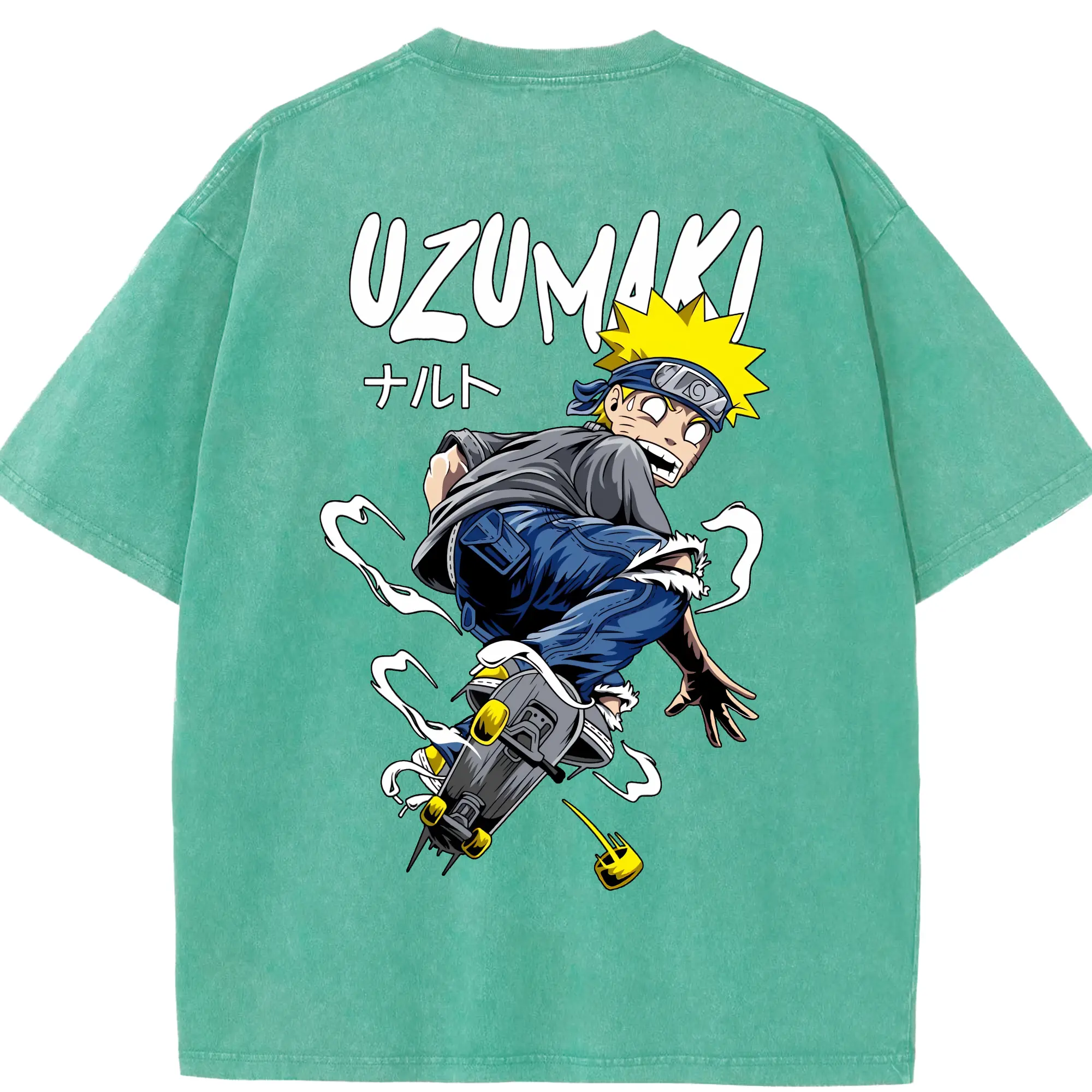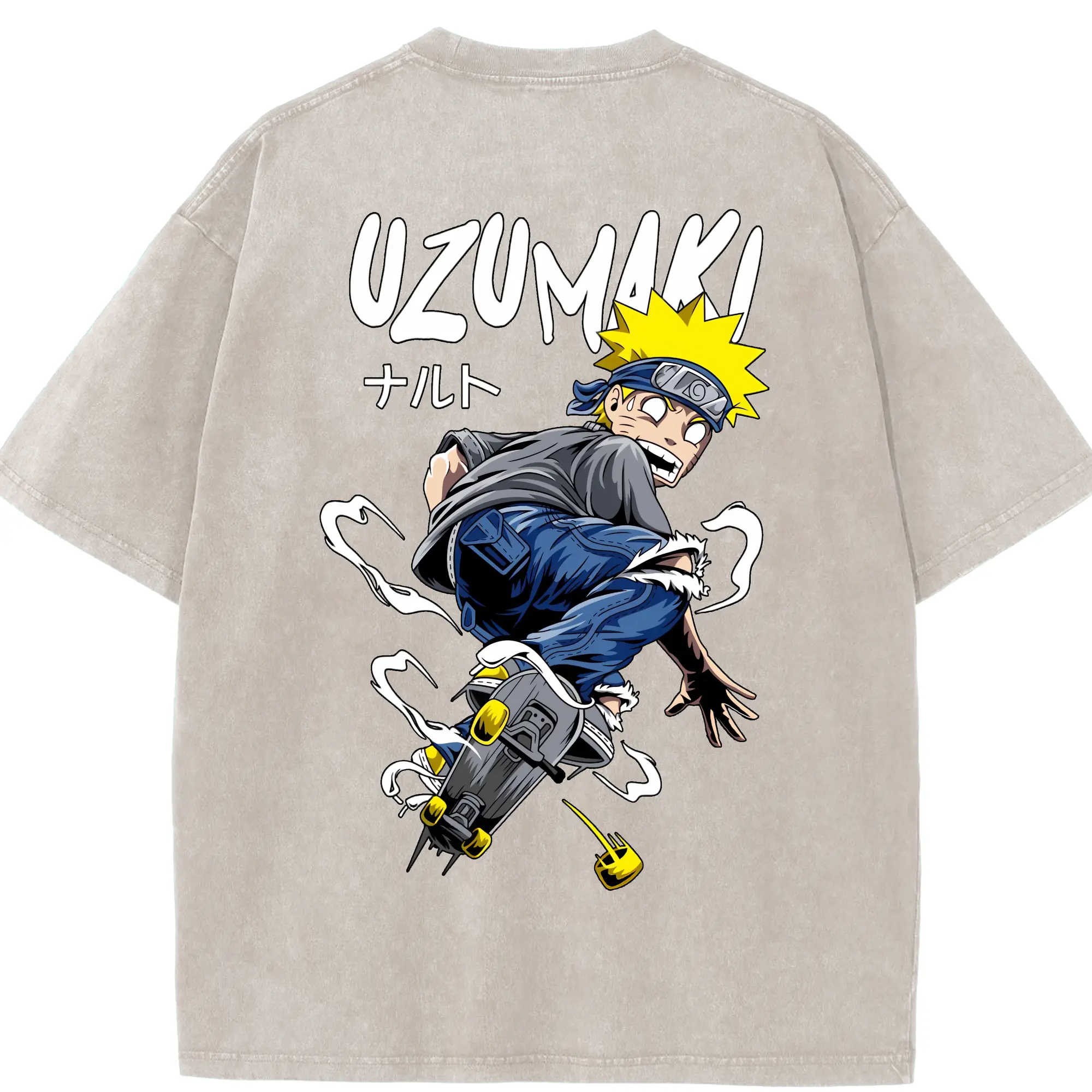 ナルト グッズ うずまき ナルト - 綿100% ヴィンテージ風 半袖Tシャツ ・ フロントプリント ・ 柔らか肌触り ・ 通気性 快適 ・ スポーツ カジュアル 外出用