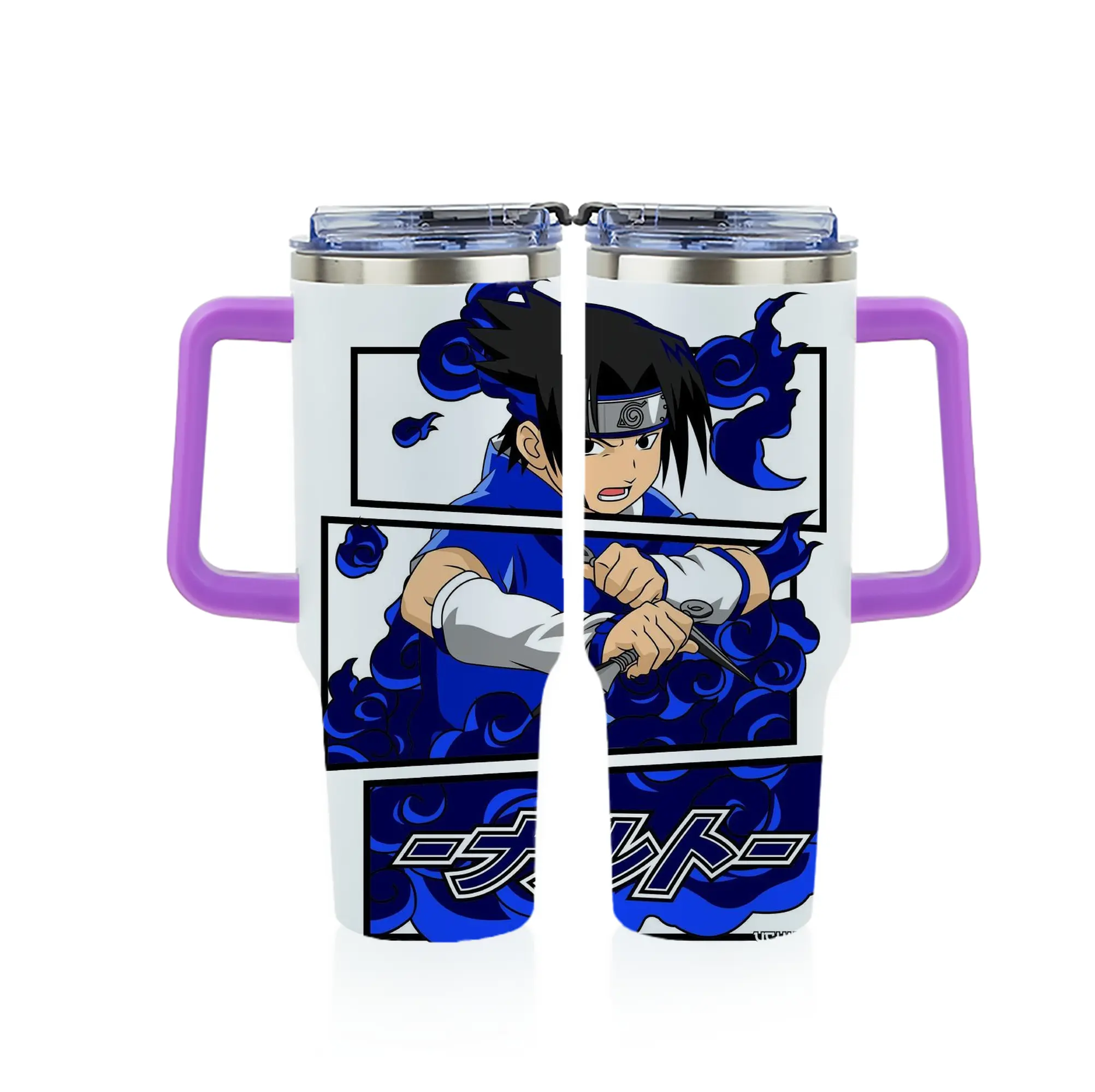 ナルト グッズ うちは サスケ - 1200mL フルプリント車用タンブラー ・ 304ステンレス 内側 ・ 201ステンレス 外側 ・ 保温 保冷 ・ 通勤 ドライブ アウトドア用