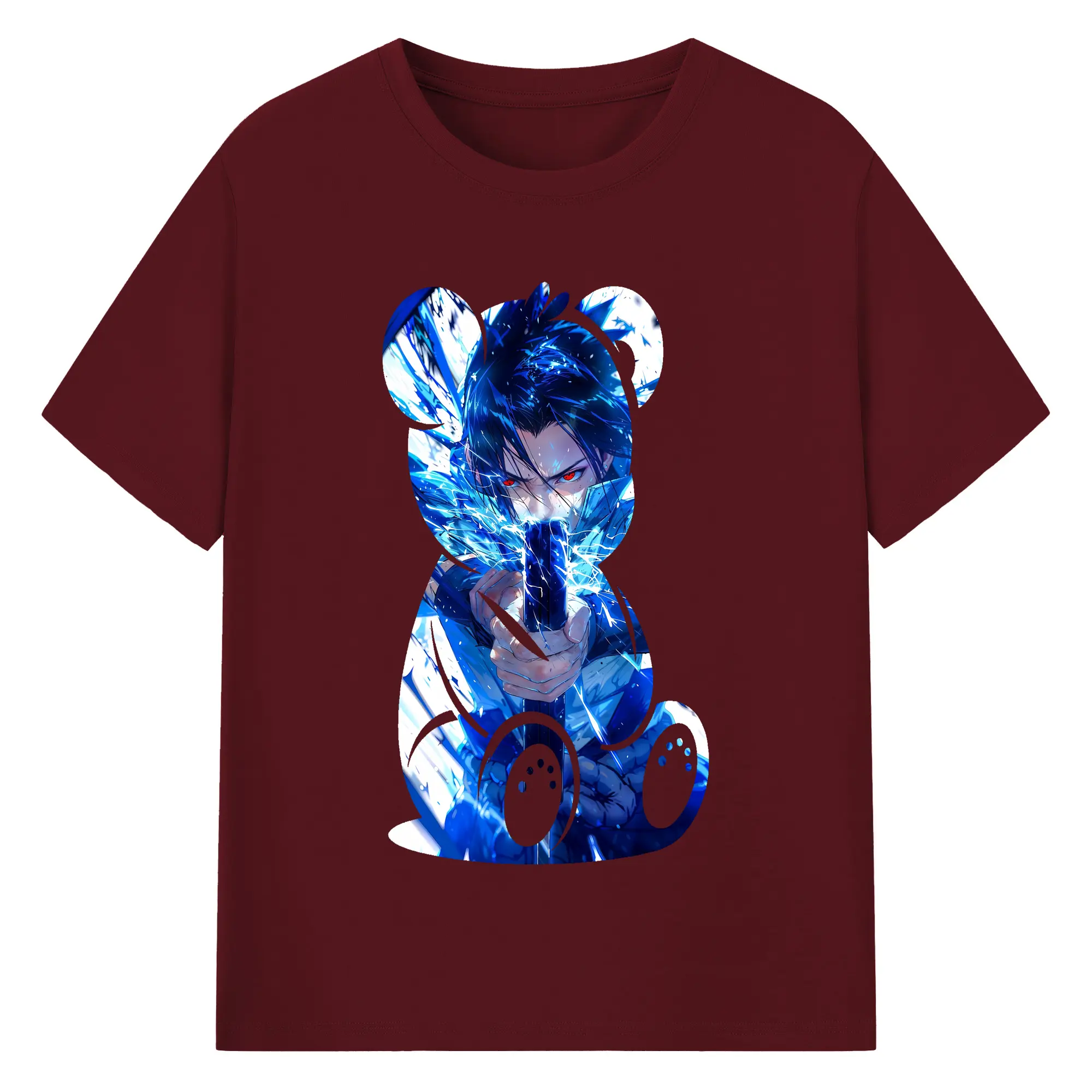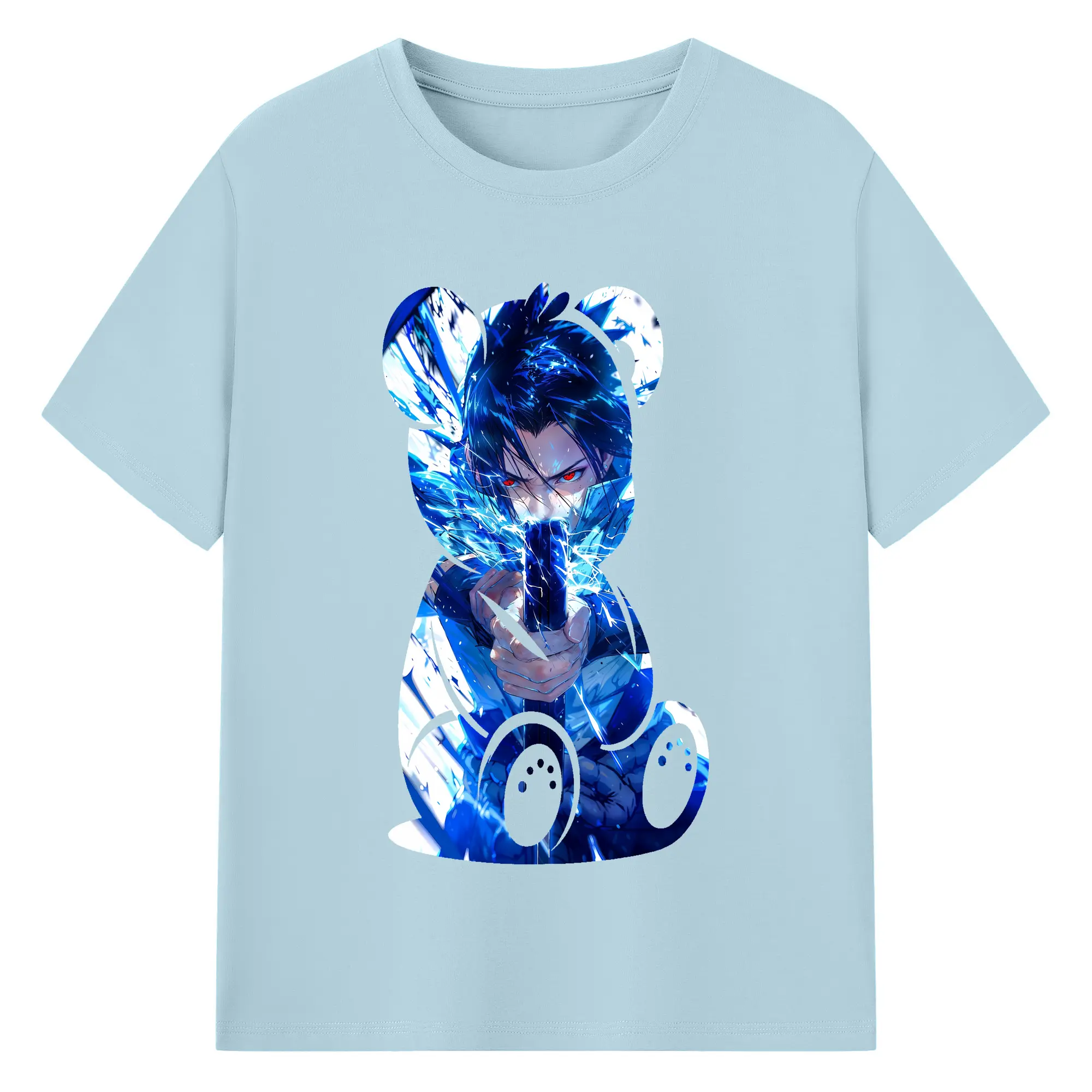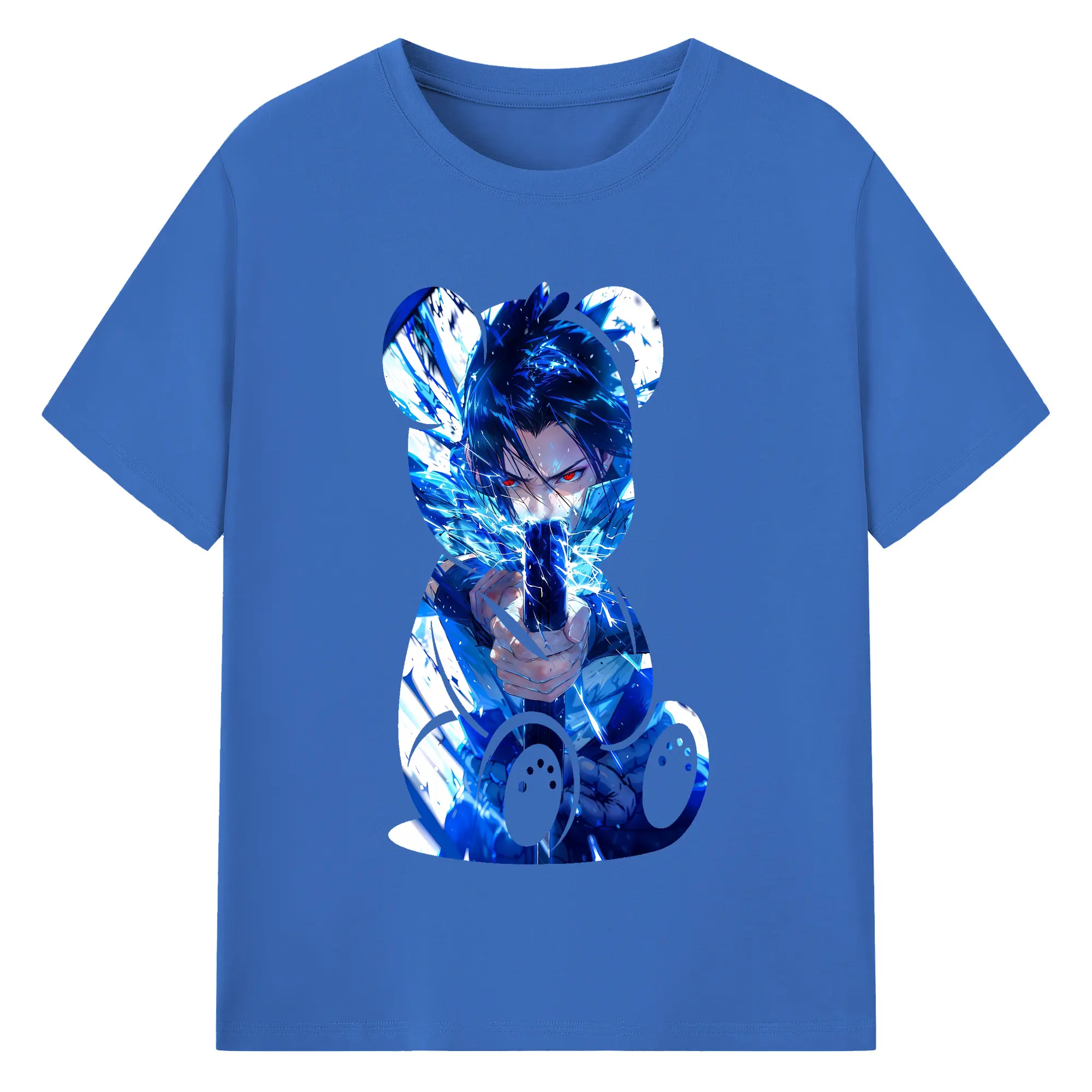 ナルト グッズ うちは サスケ - 綿100% 半袖Tシャツ ・ バックプリント ・ 快適 通気性 ・ 日常使い 散歩 スポーツ用
