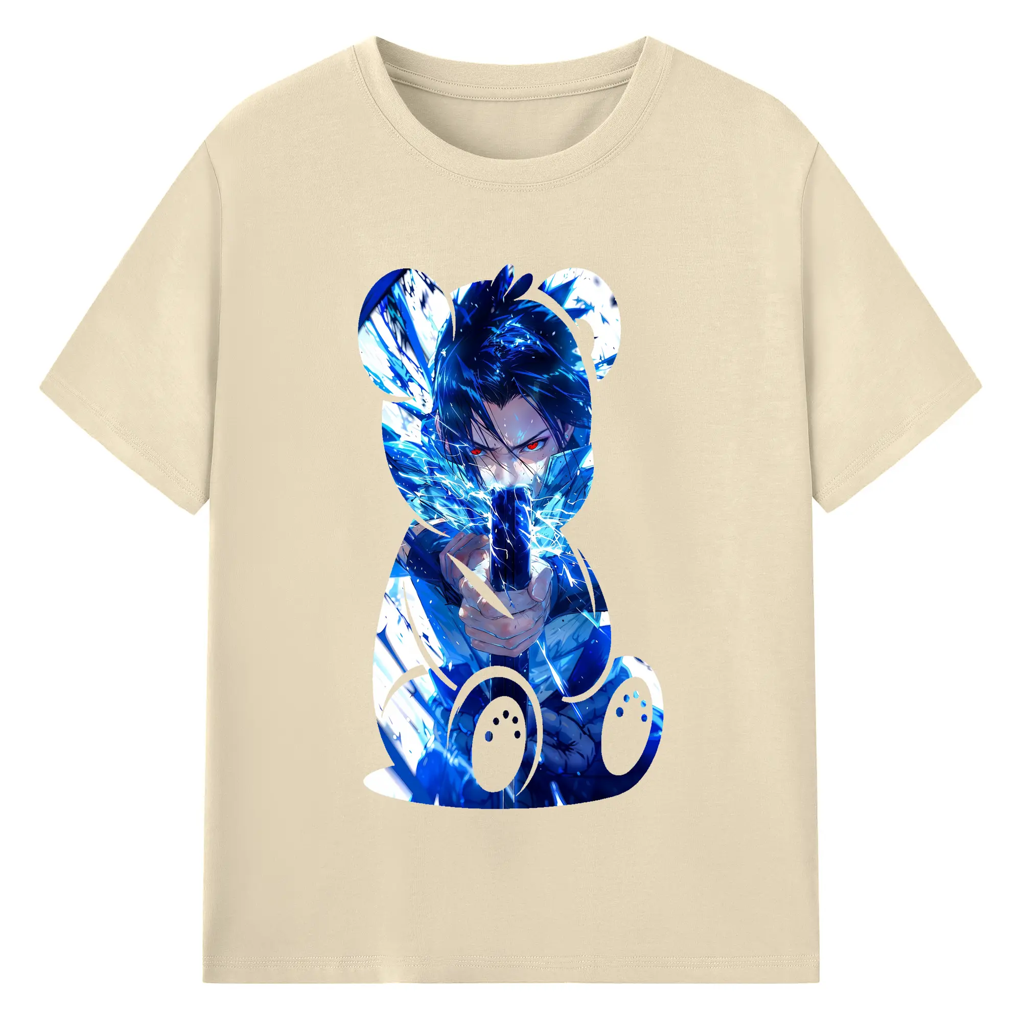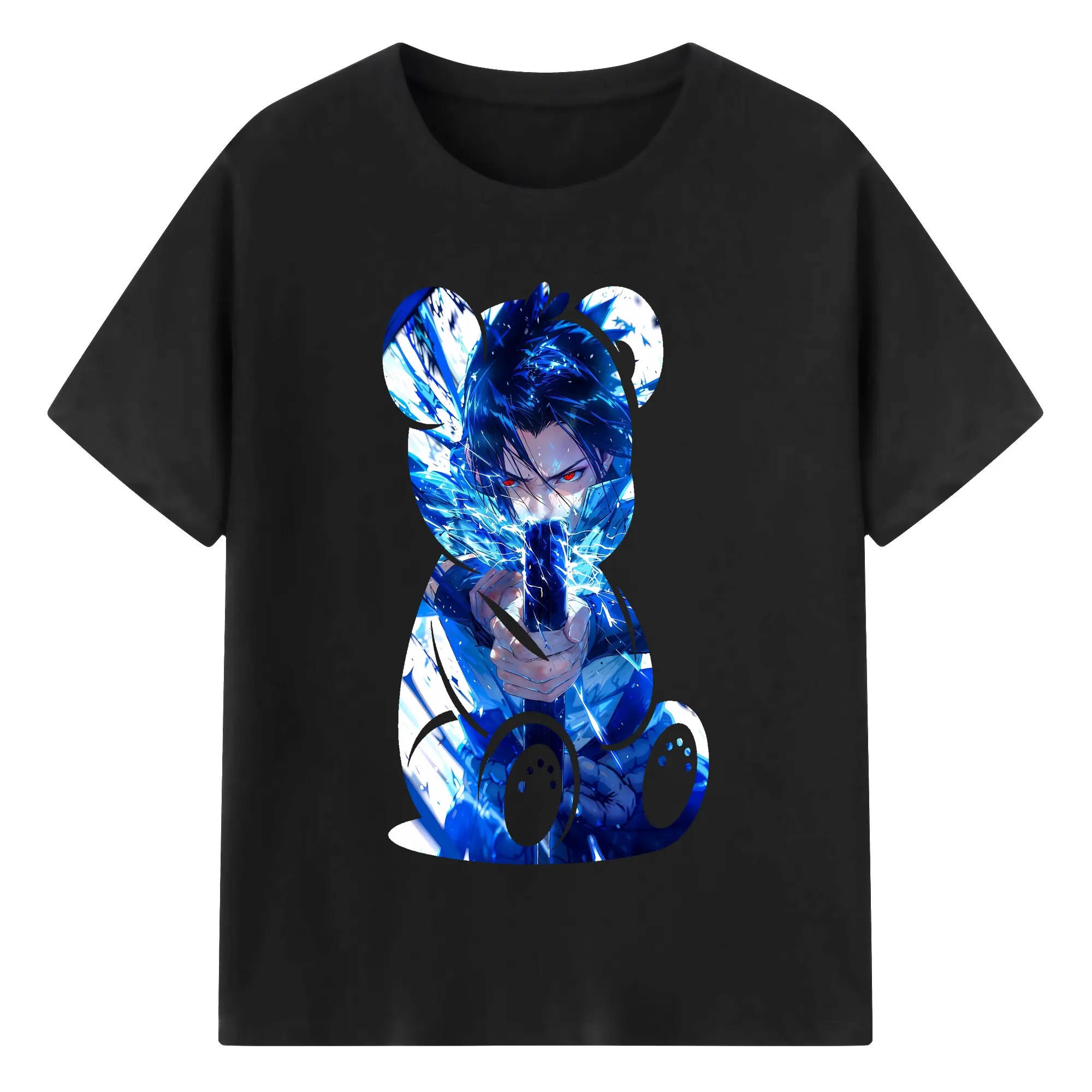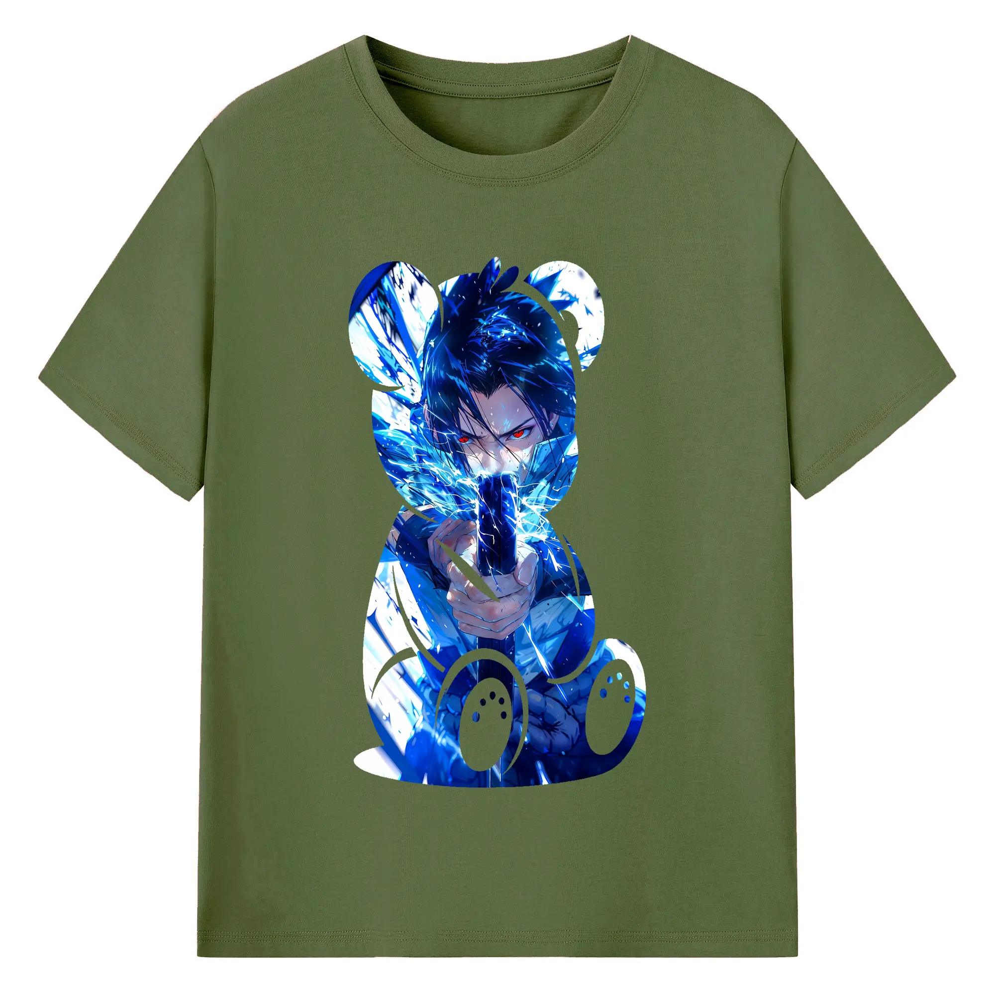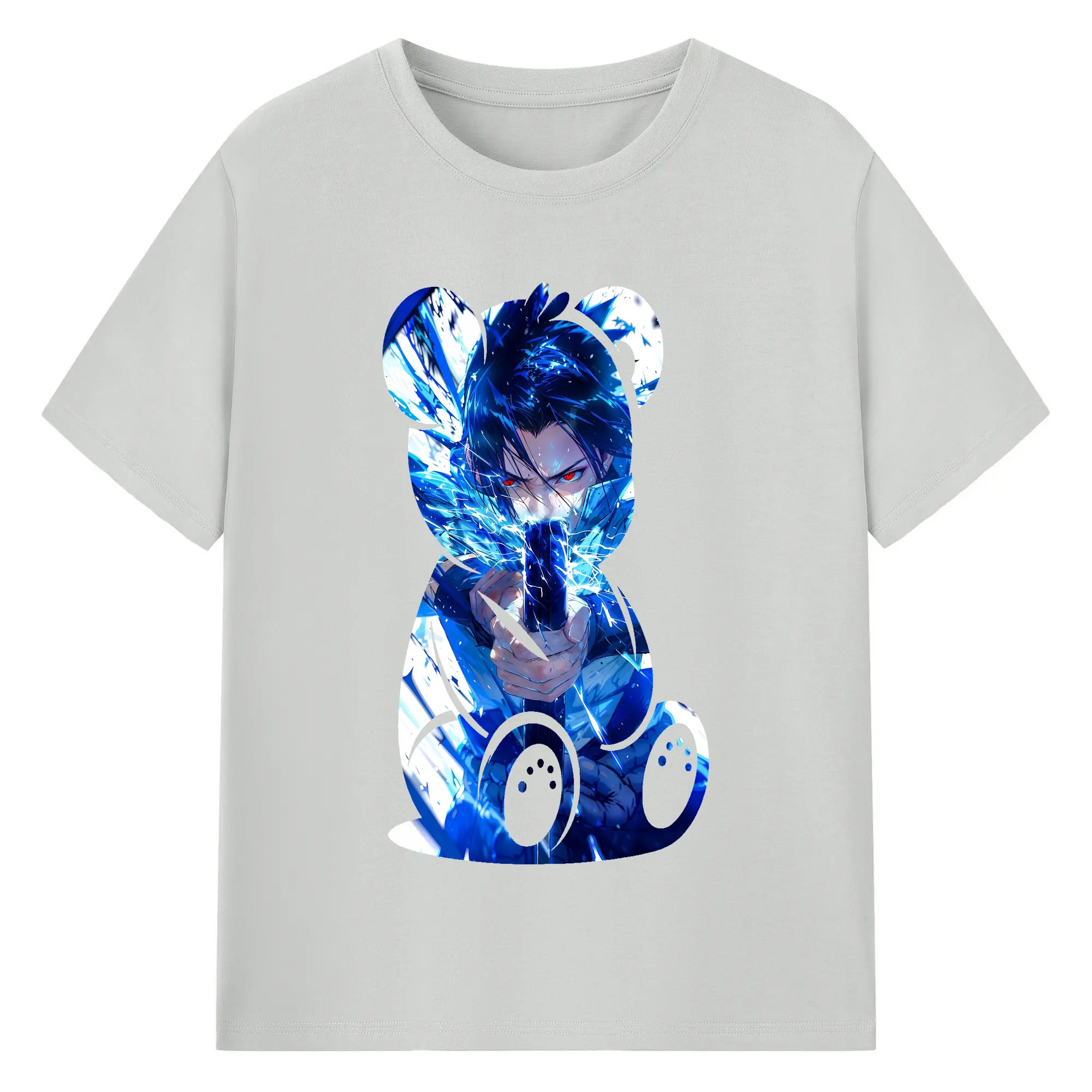 ナルト グッズ うちは サスケ - 綿100% 半袖Tシャツ ・ バックプリント ・ 快適 通気性 ・ 日常使い 散歩 スポーツ用