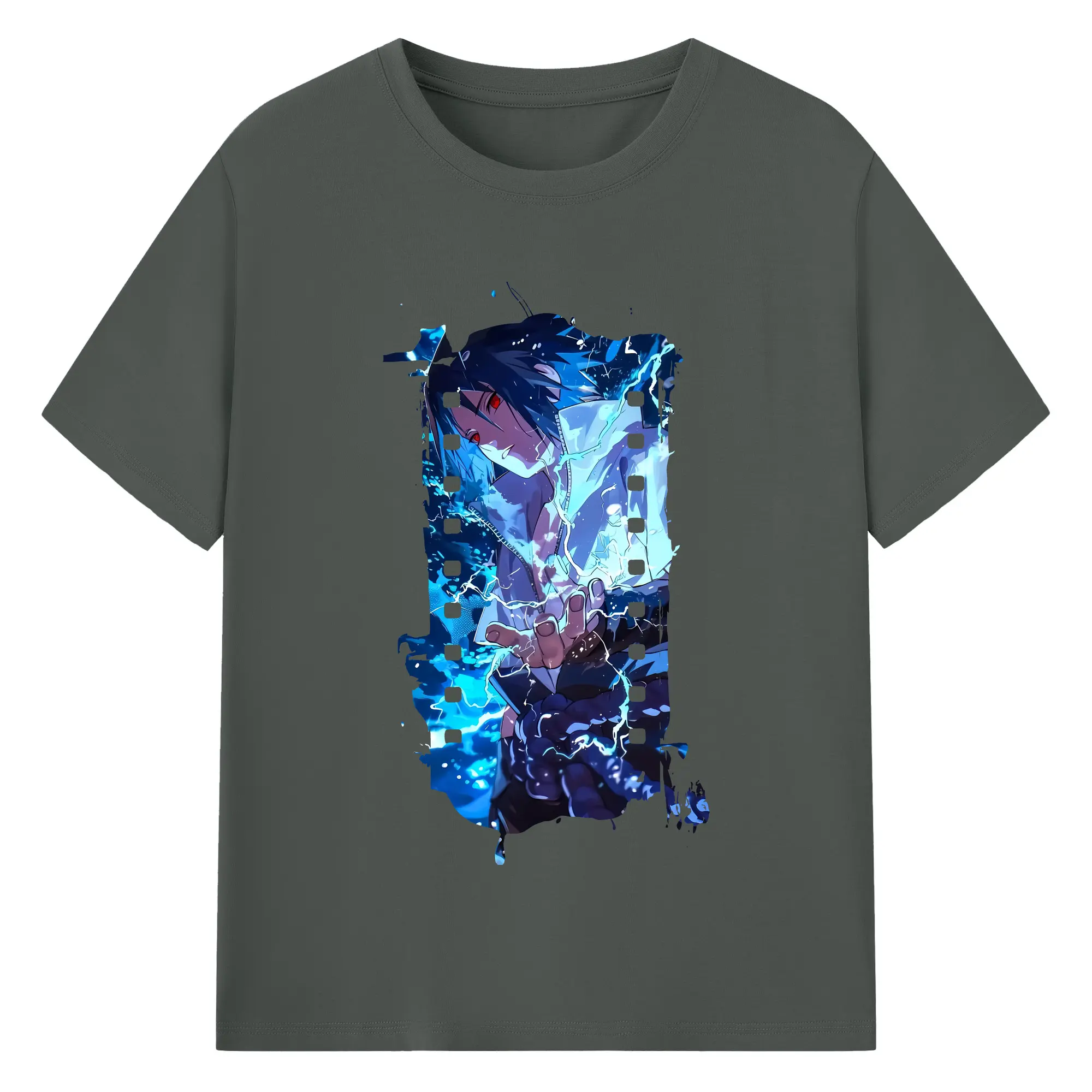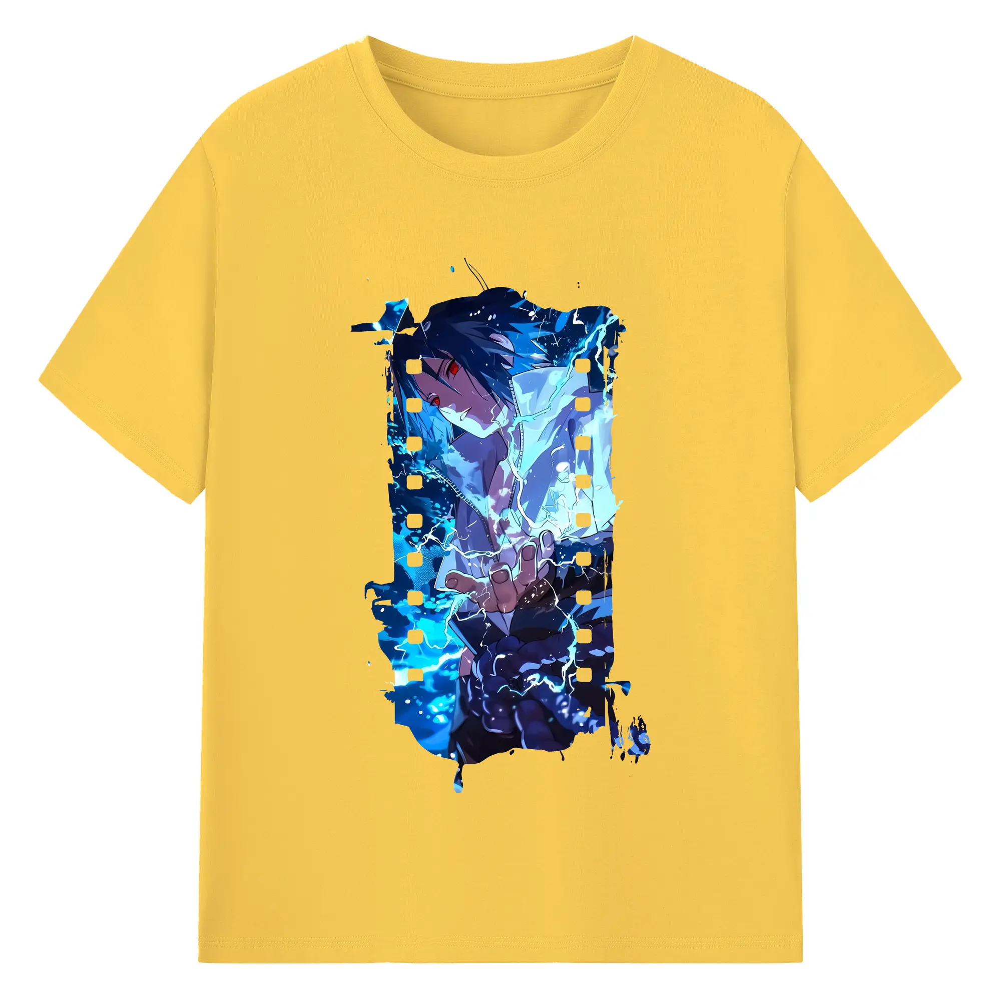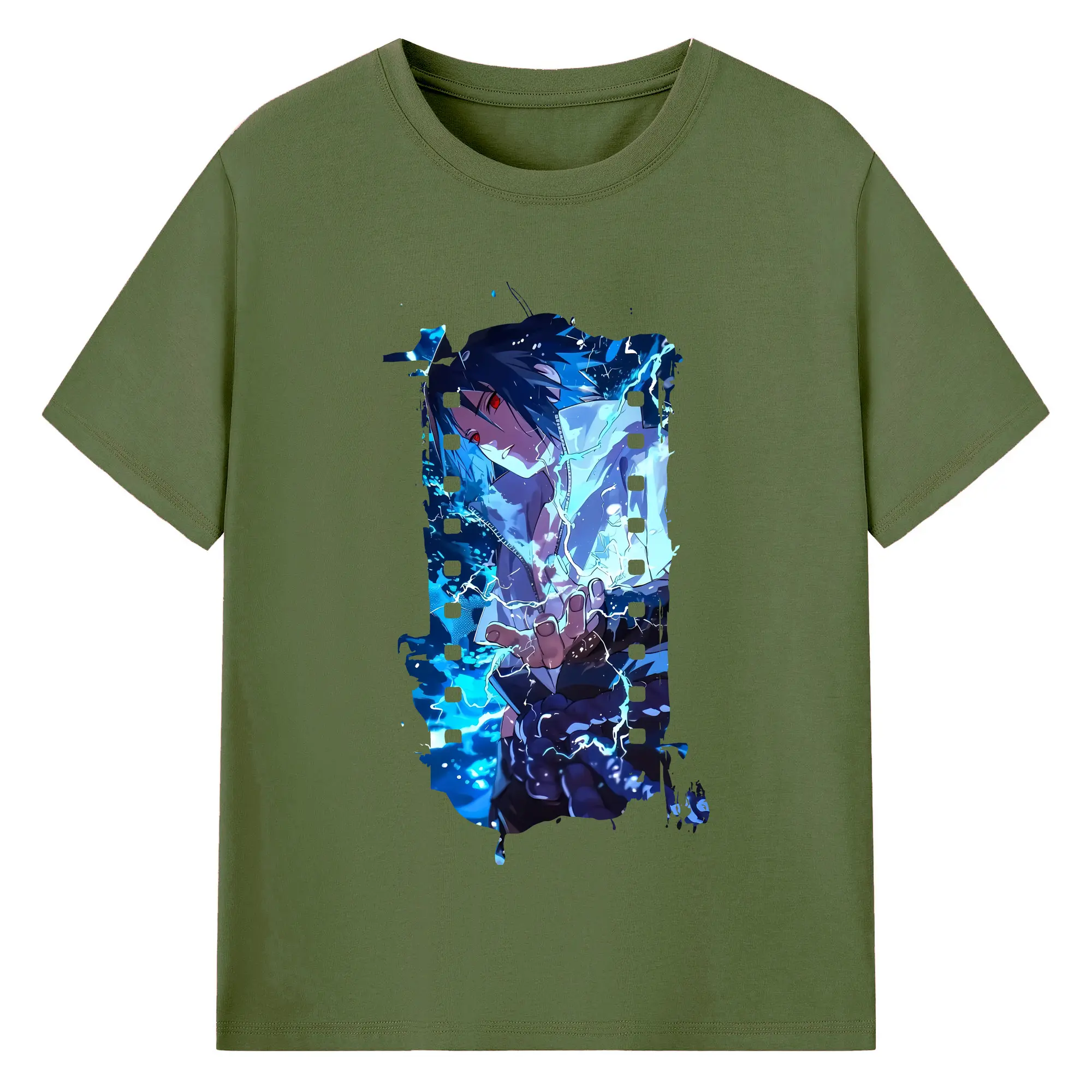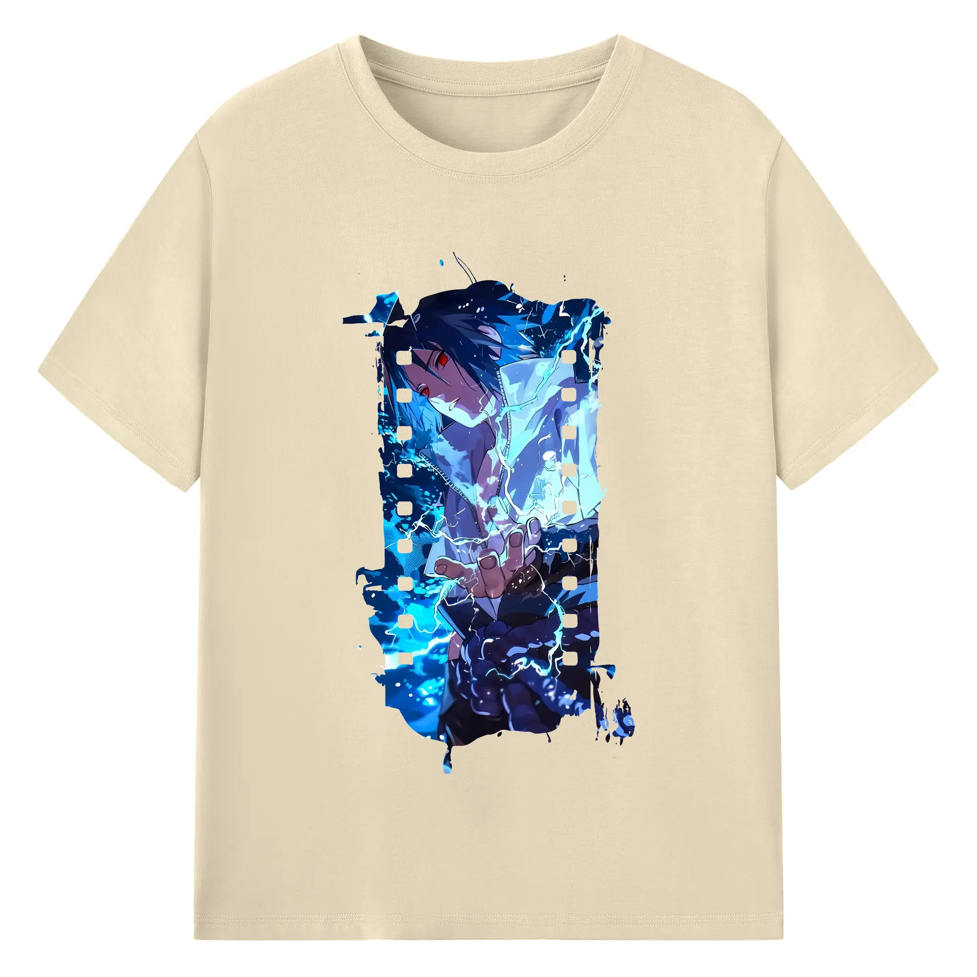 ナルト グッズ うちは サスケ - 綿100% ヴィンテージ風 半袖Tシャツ ・ フロントプリント ・ 柔らか肌触り ・ 通気性 快適 ・ スポーツ カジュアル 外出用