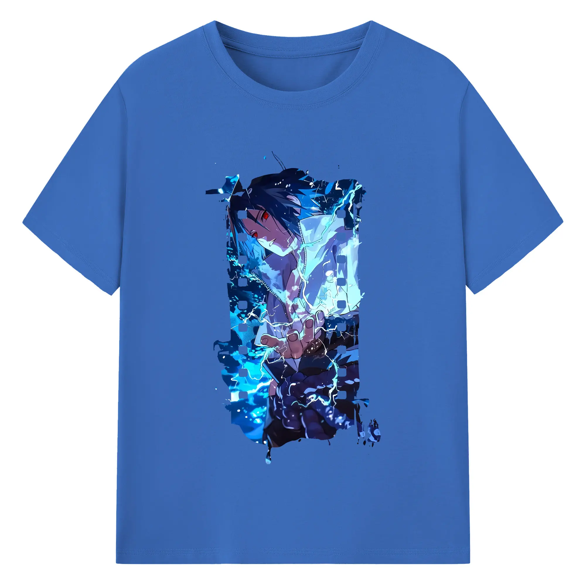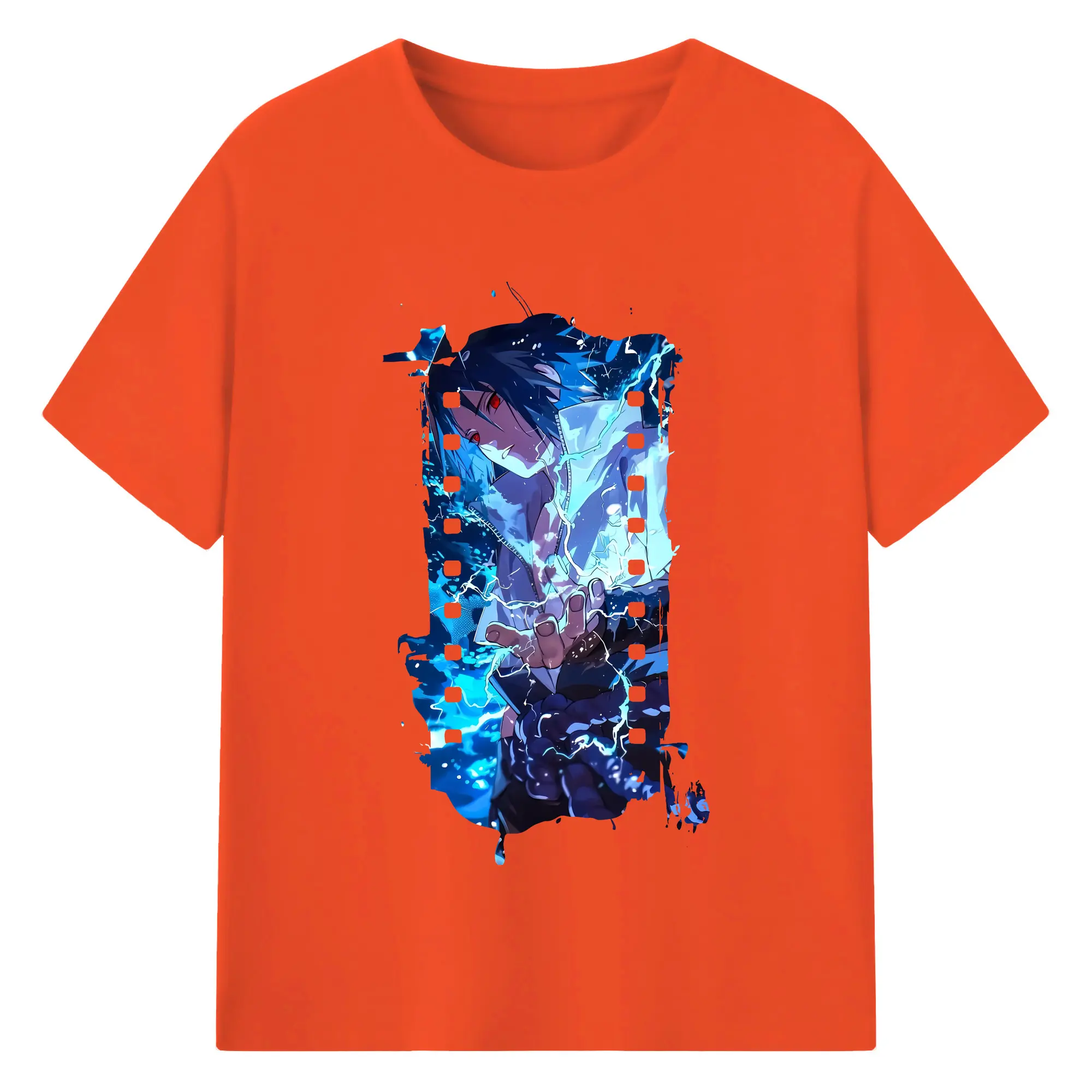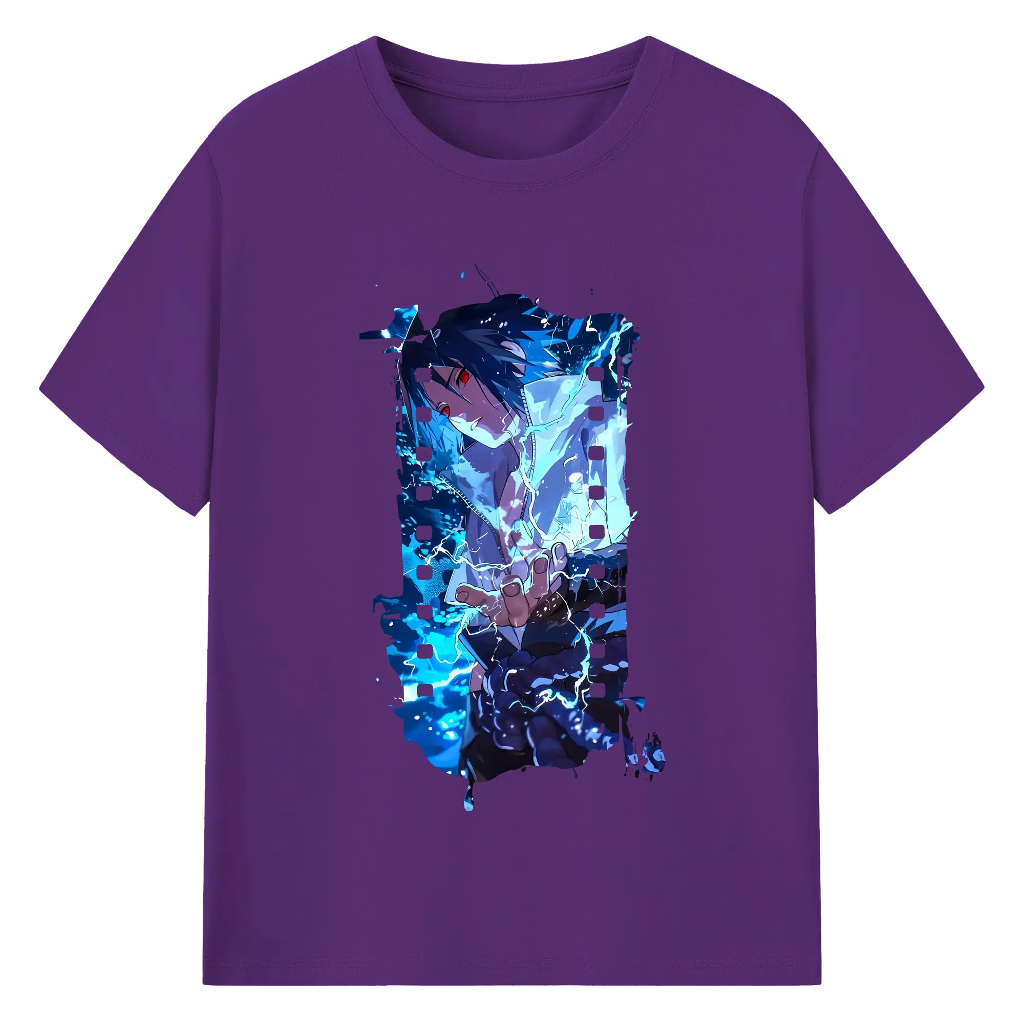 ナルト グッズ うちは サスケ - 綿100% 半袖Tシャツ ・ バックプリント ・ 快適 通気性 ・ 日常使い 散歩 スポーツ用