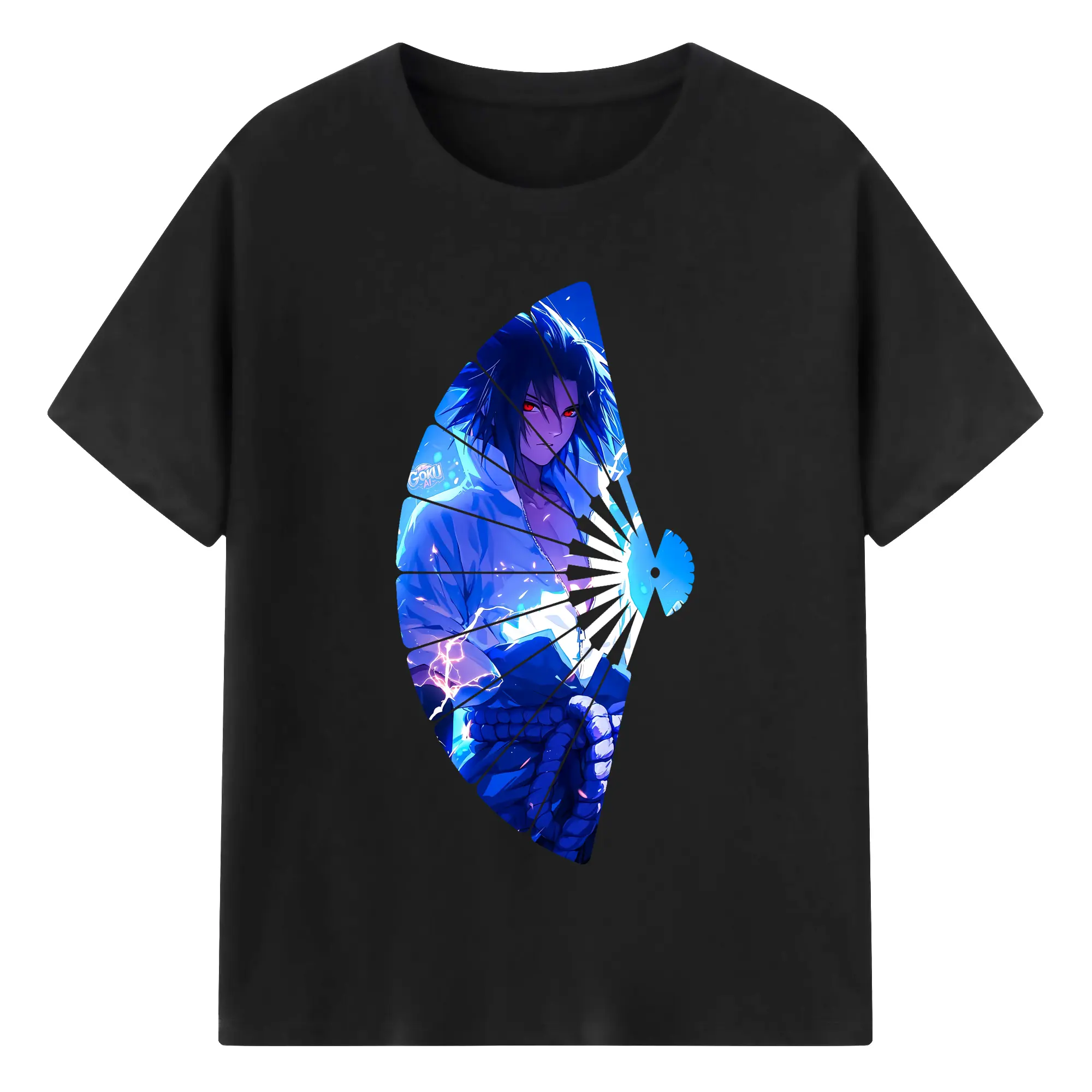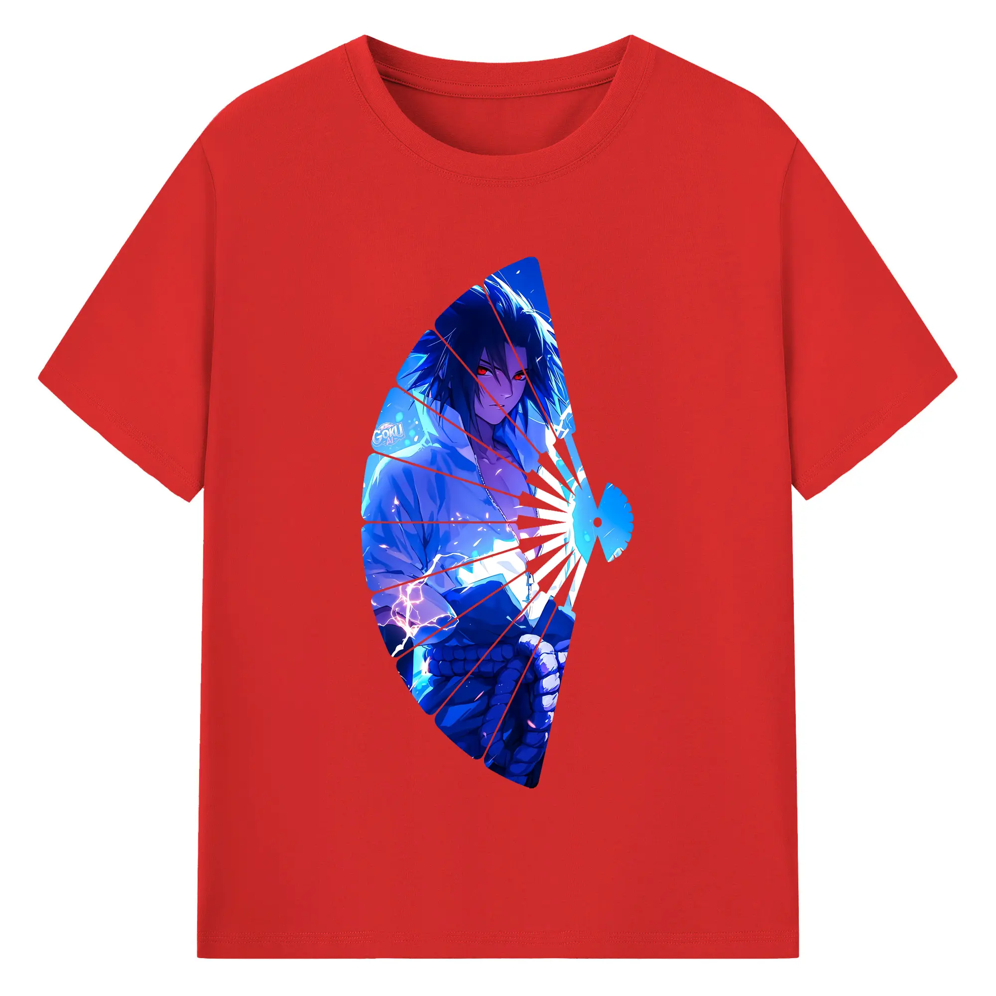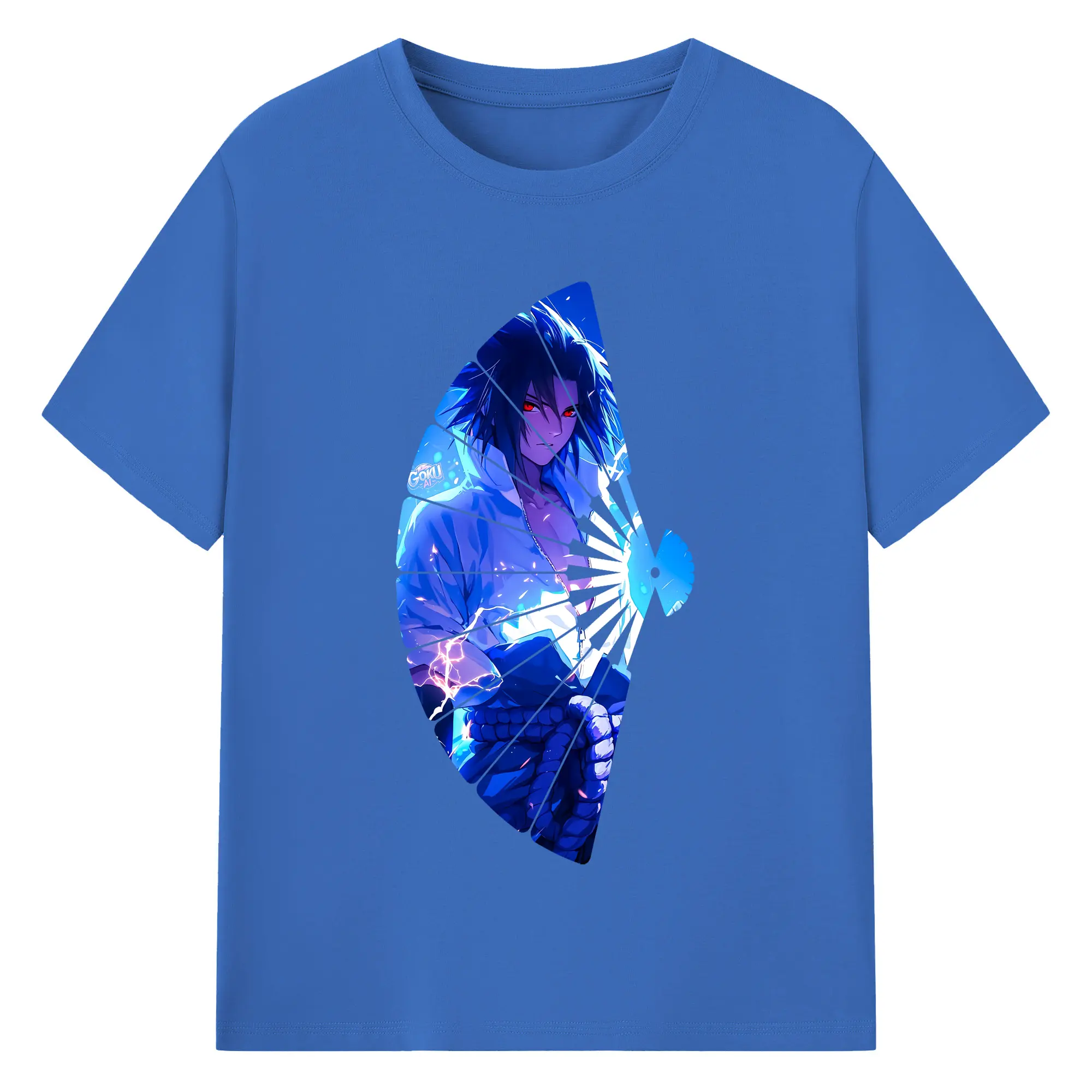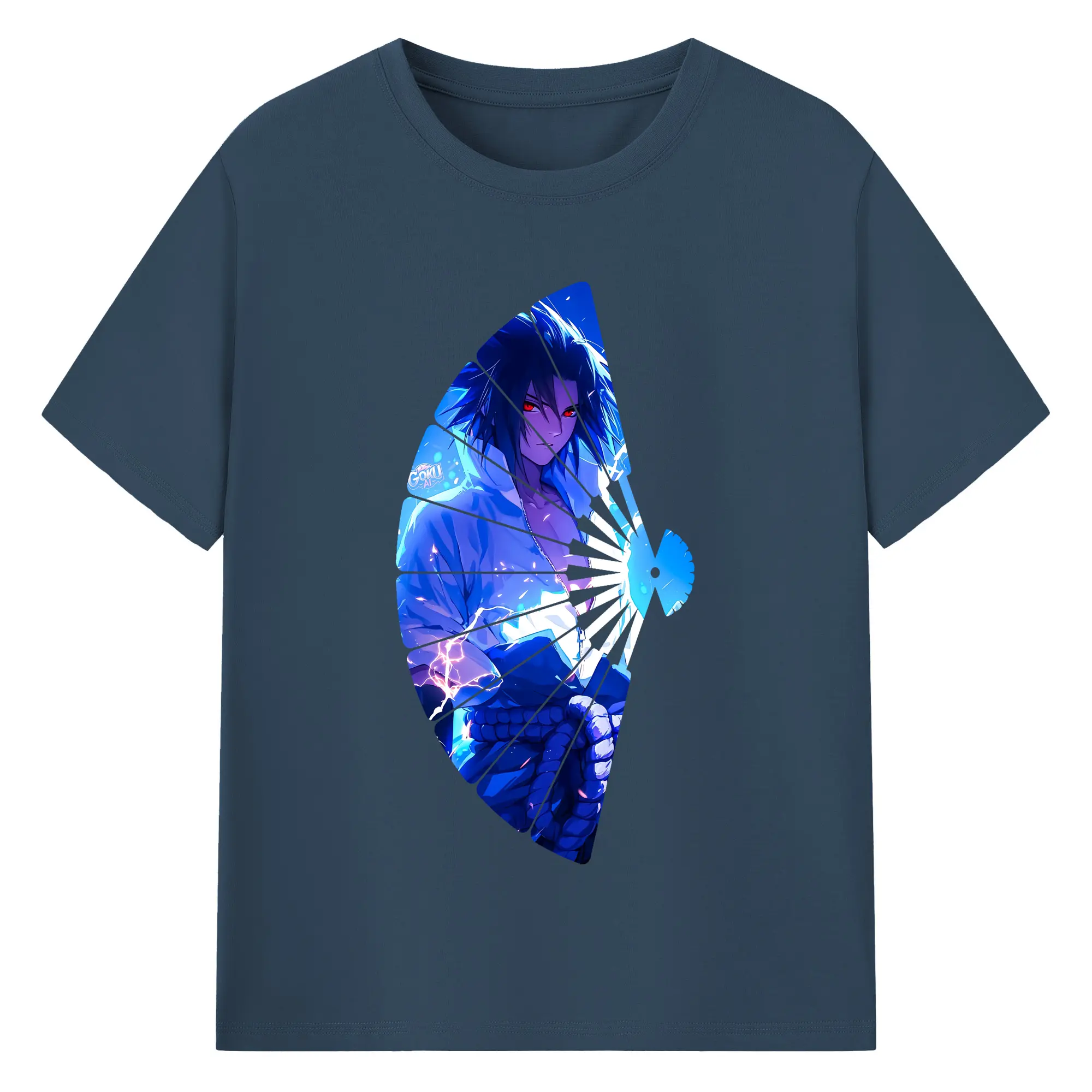 ナルト グッズ うちは サスケ - 綿100% 半袖Tシャツ ・ バックプリント ・ 快適 通気性 ・ 日常使い 散歩 スポーツ用