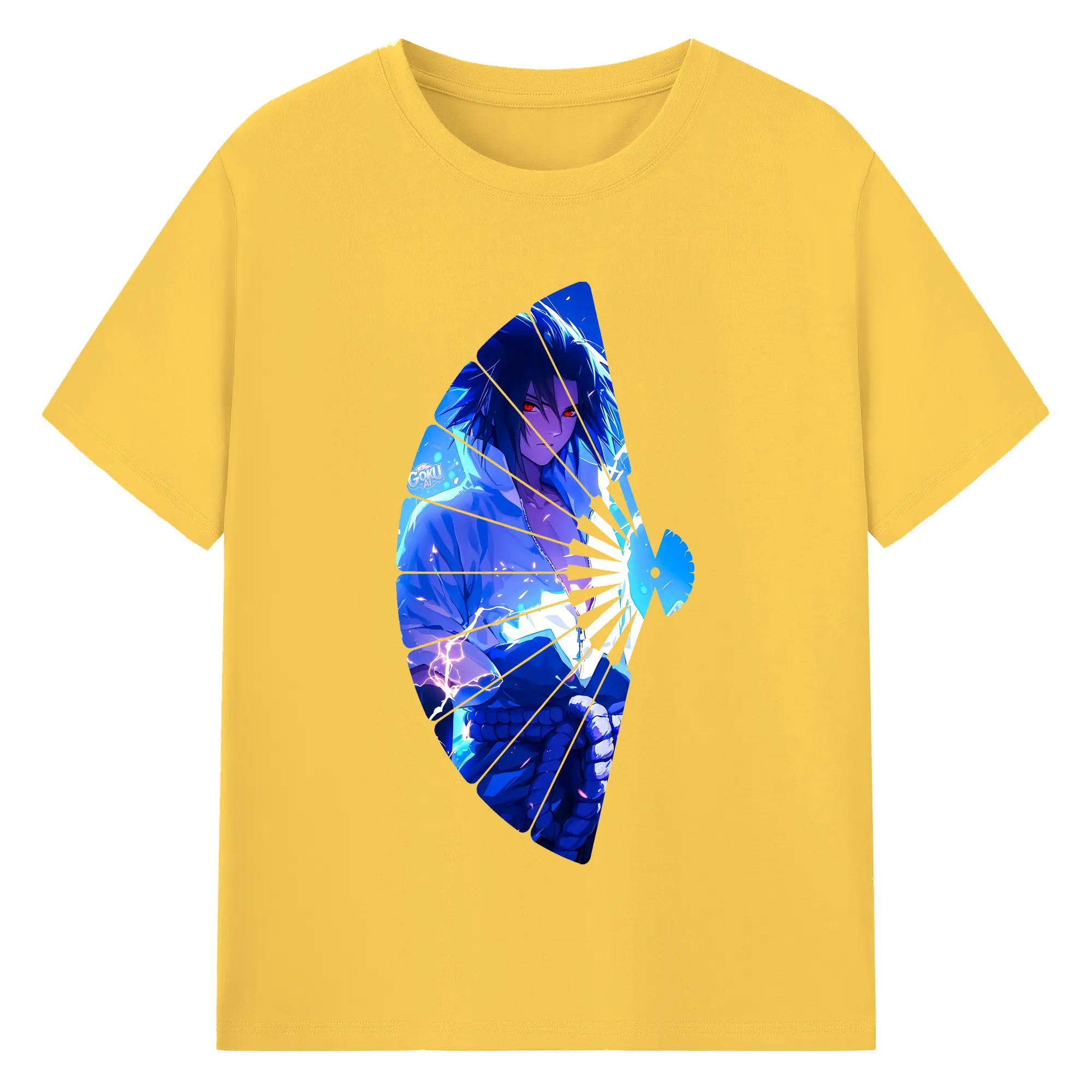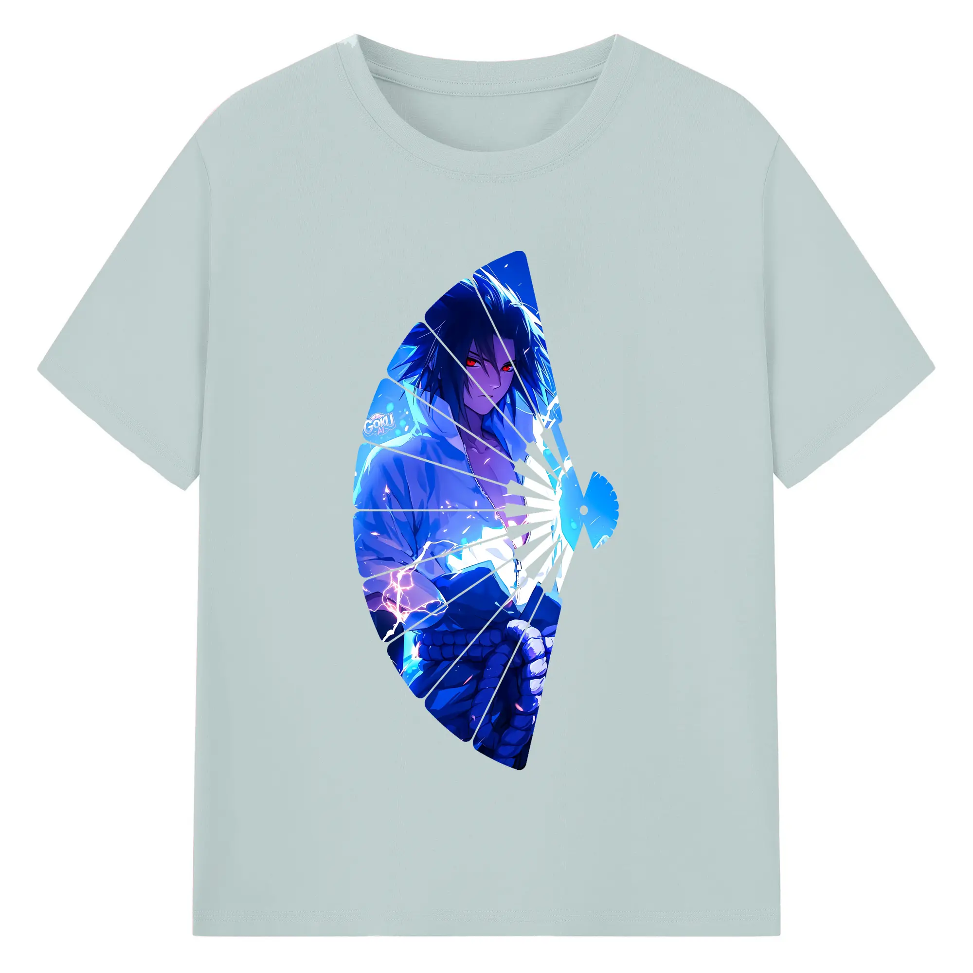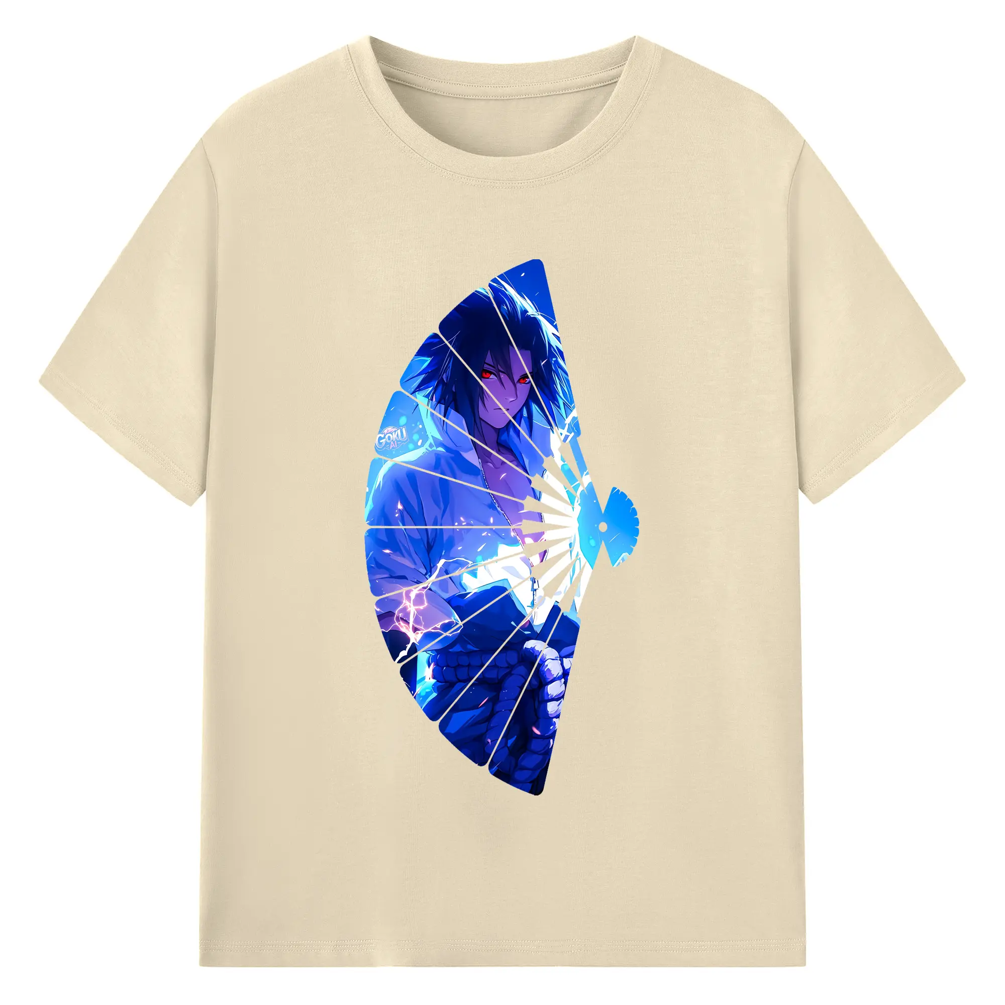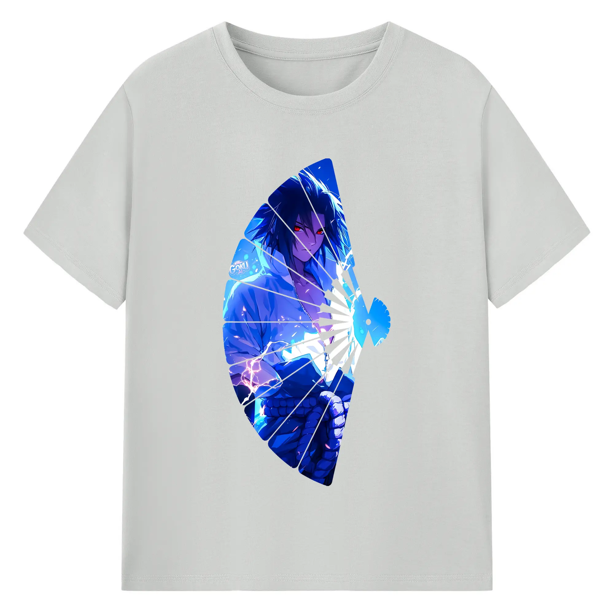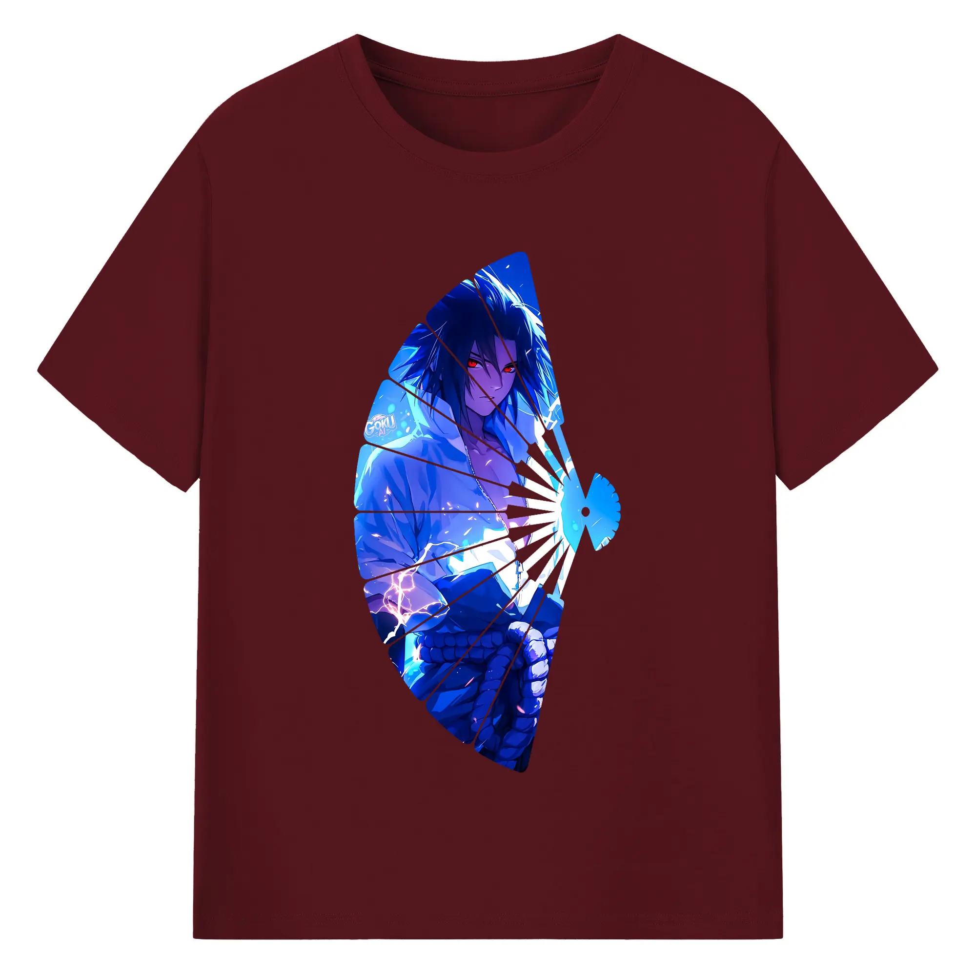 ナルト グッズ うちは サスケ - 綿100% 半袖Tシャツ ・ バックプリント ・ 快適 通気性 ・ 日常使い 散歩 スポーツ用