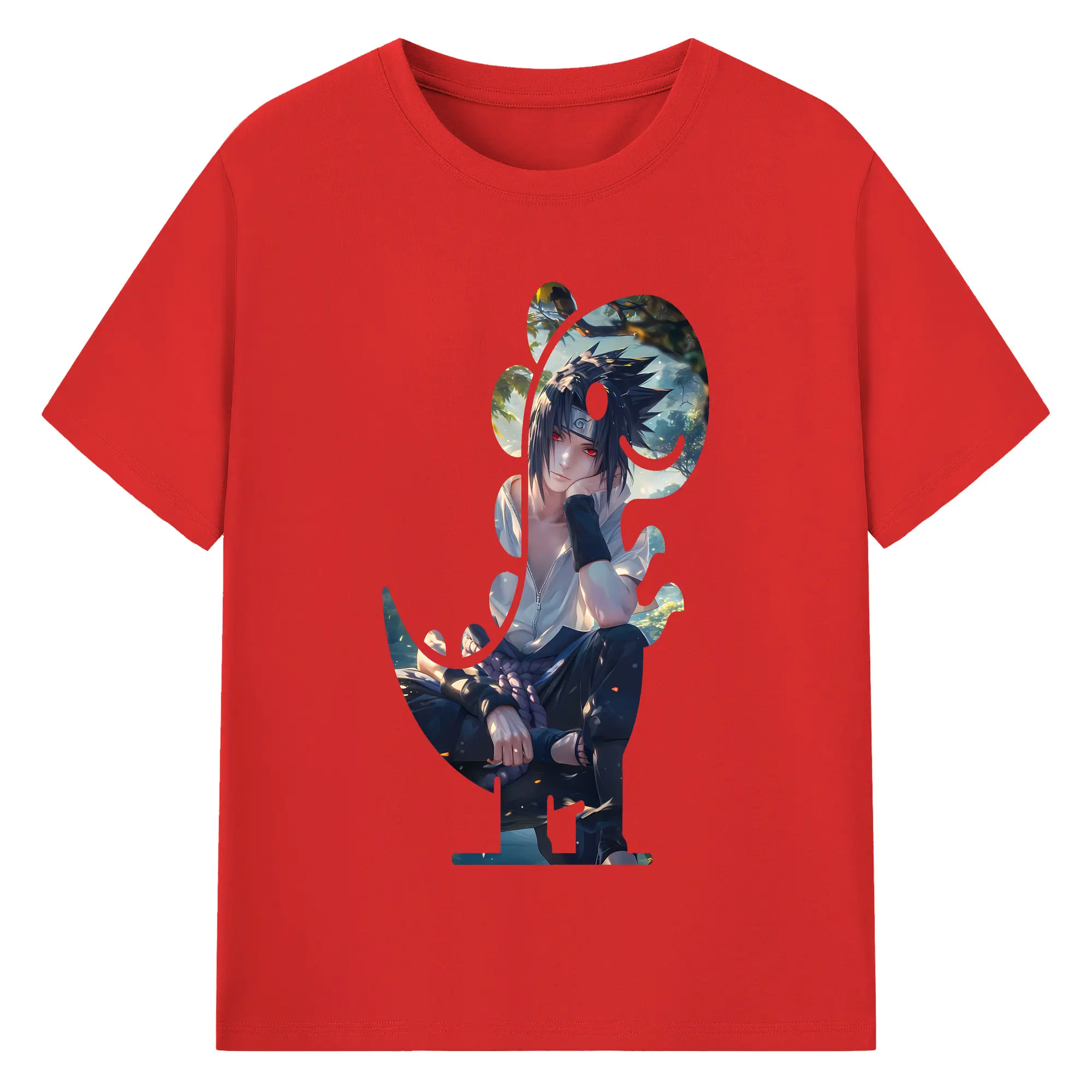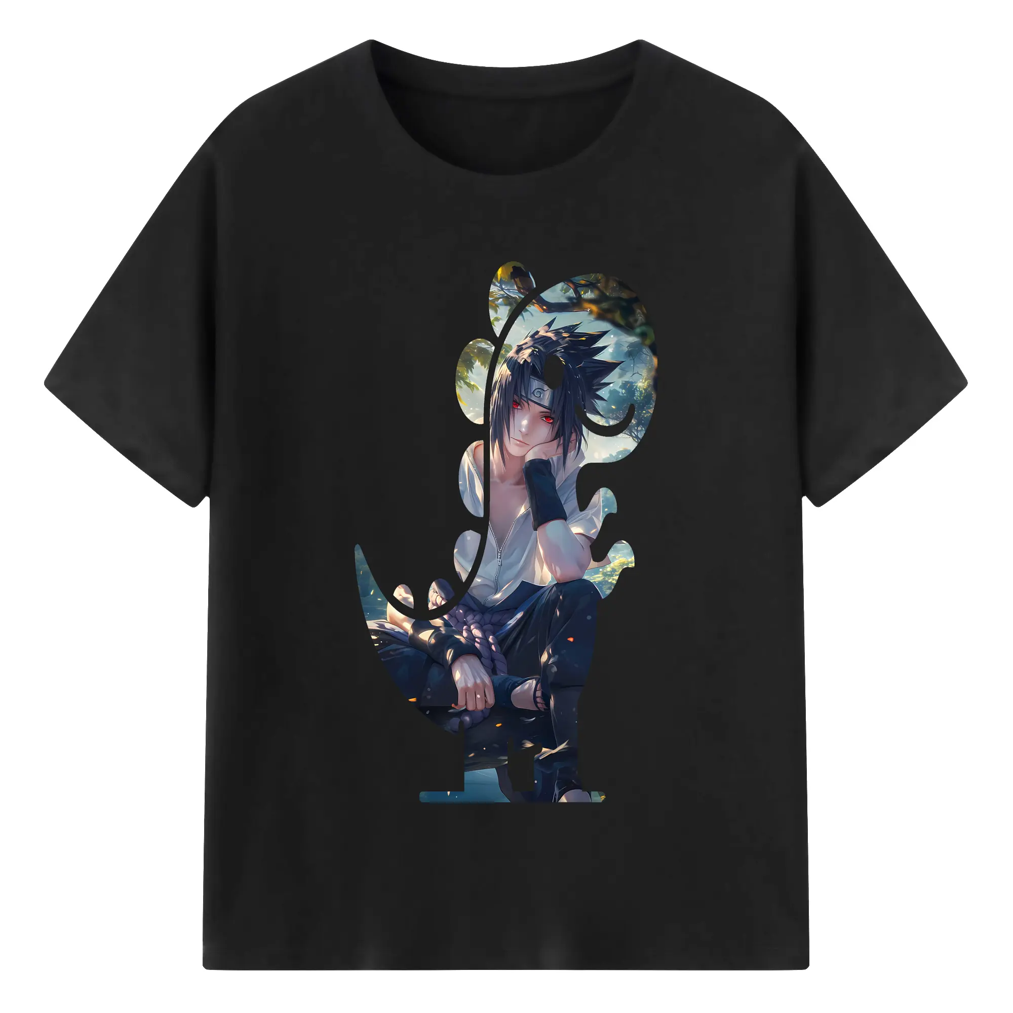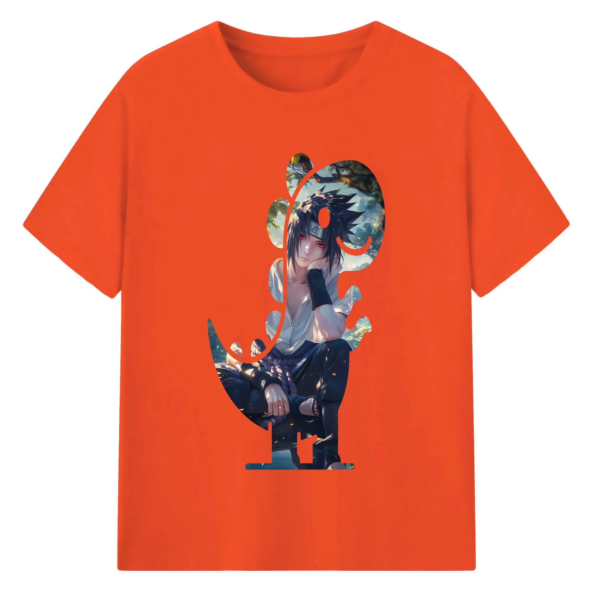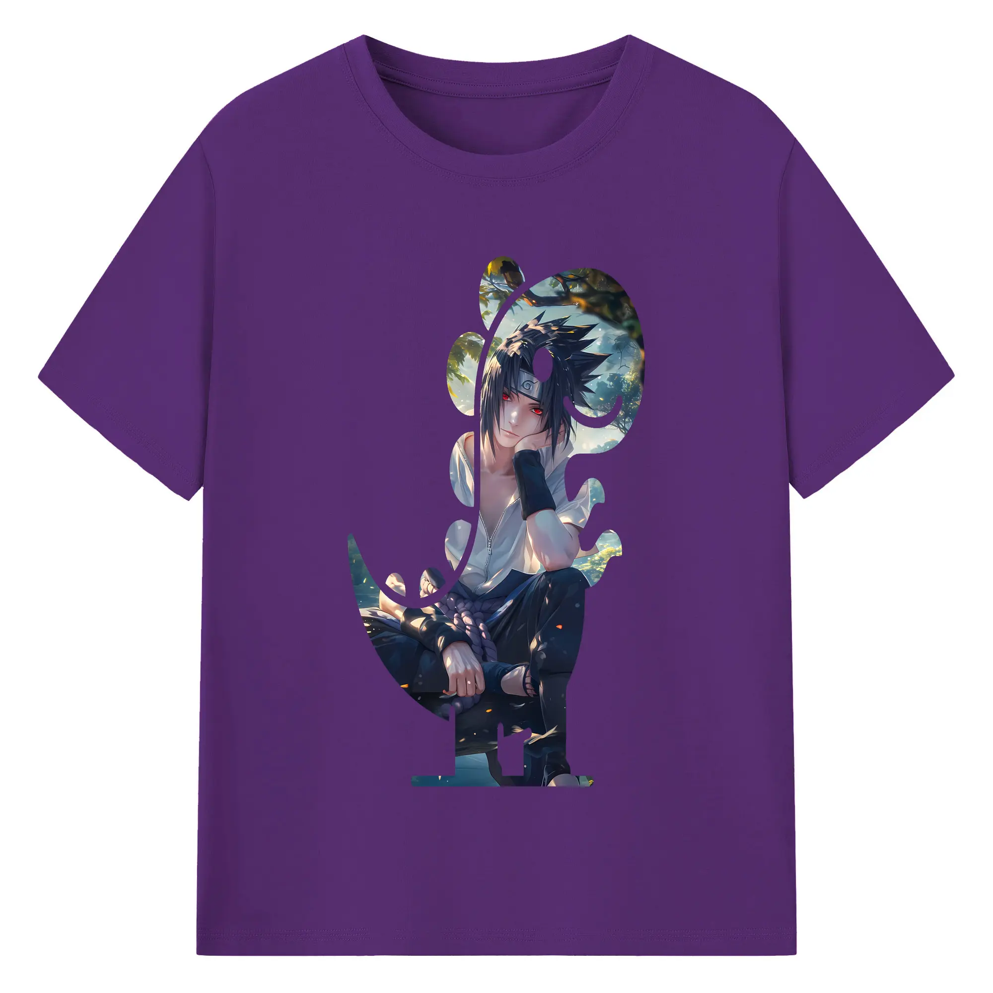 ナルト グッズ うちは サスケ - 綿100% 半袖Tシャツ ・ バックプリント ・ 快適 通気性 ・ 日常使い 散歩 スポーツ用