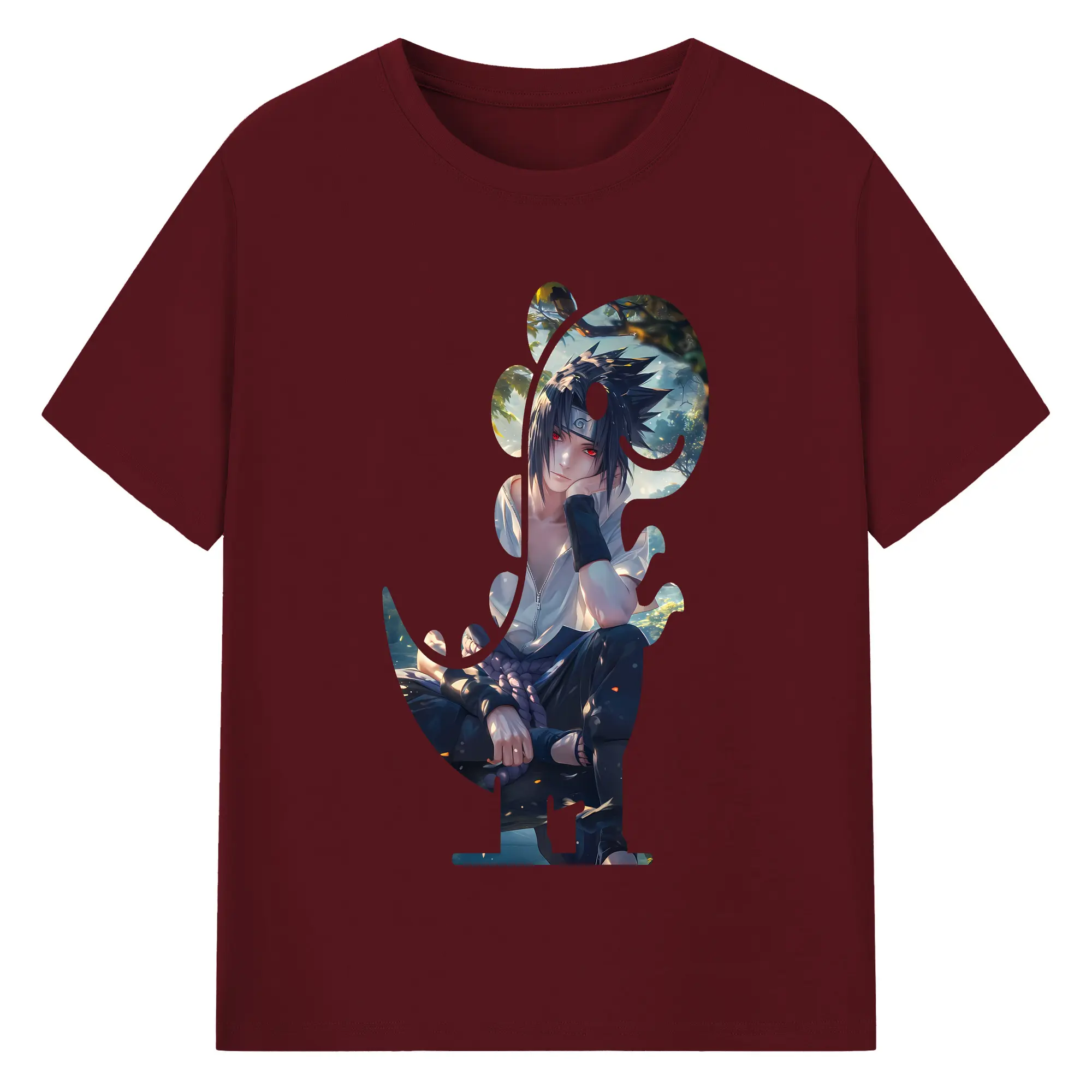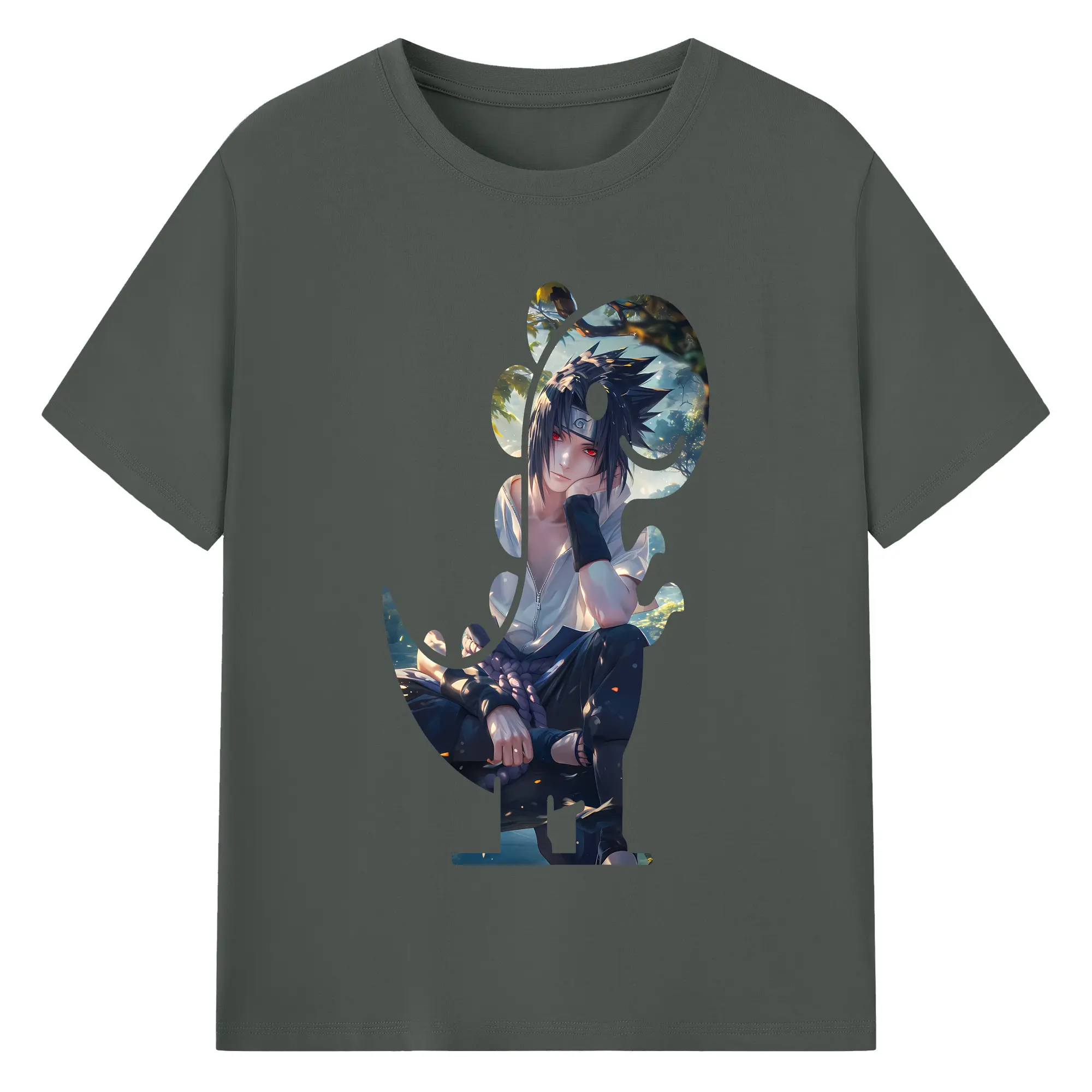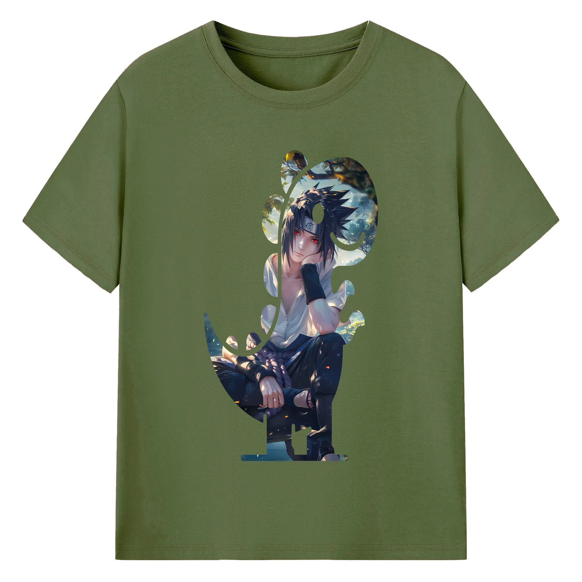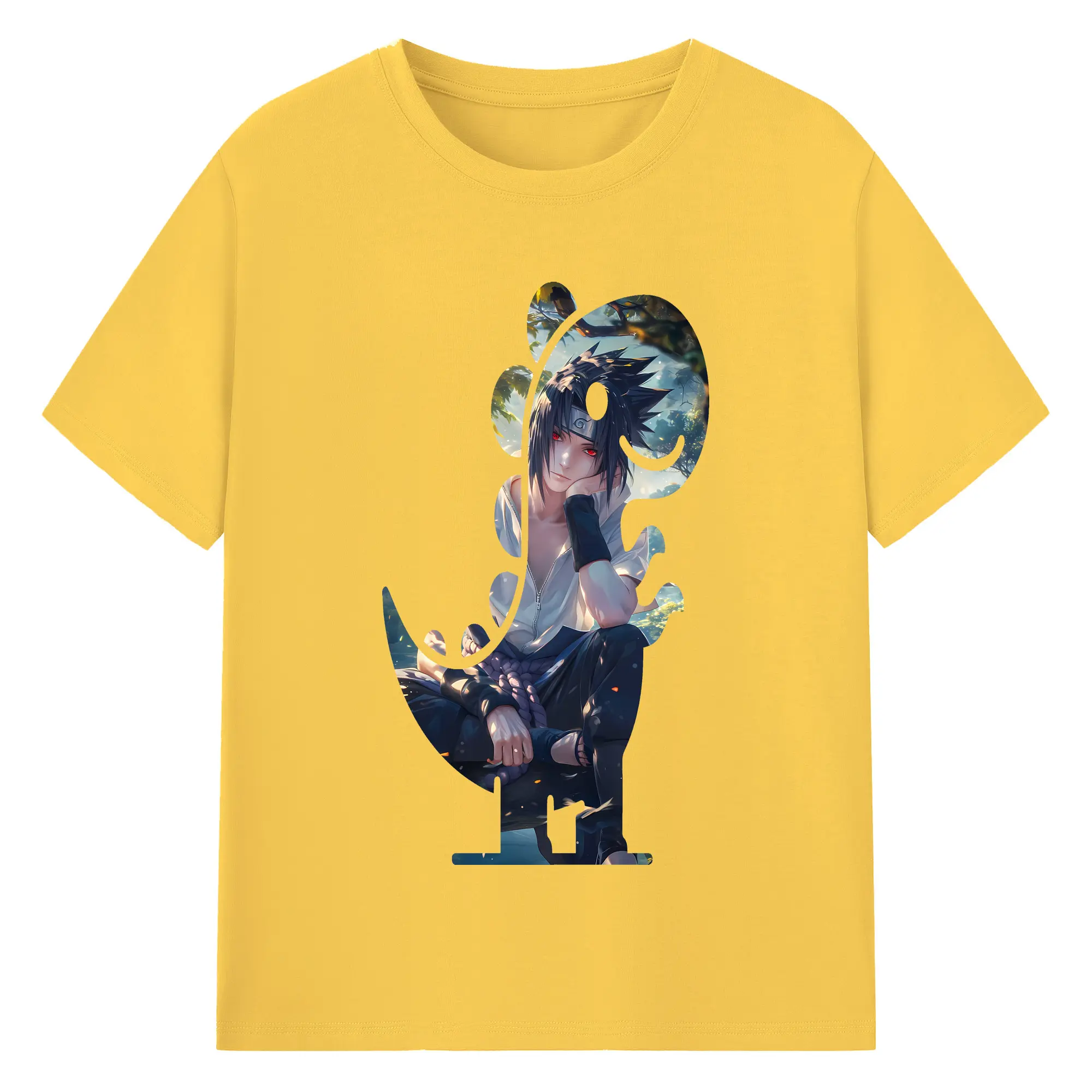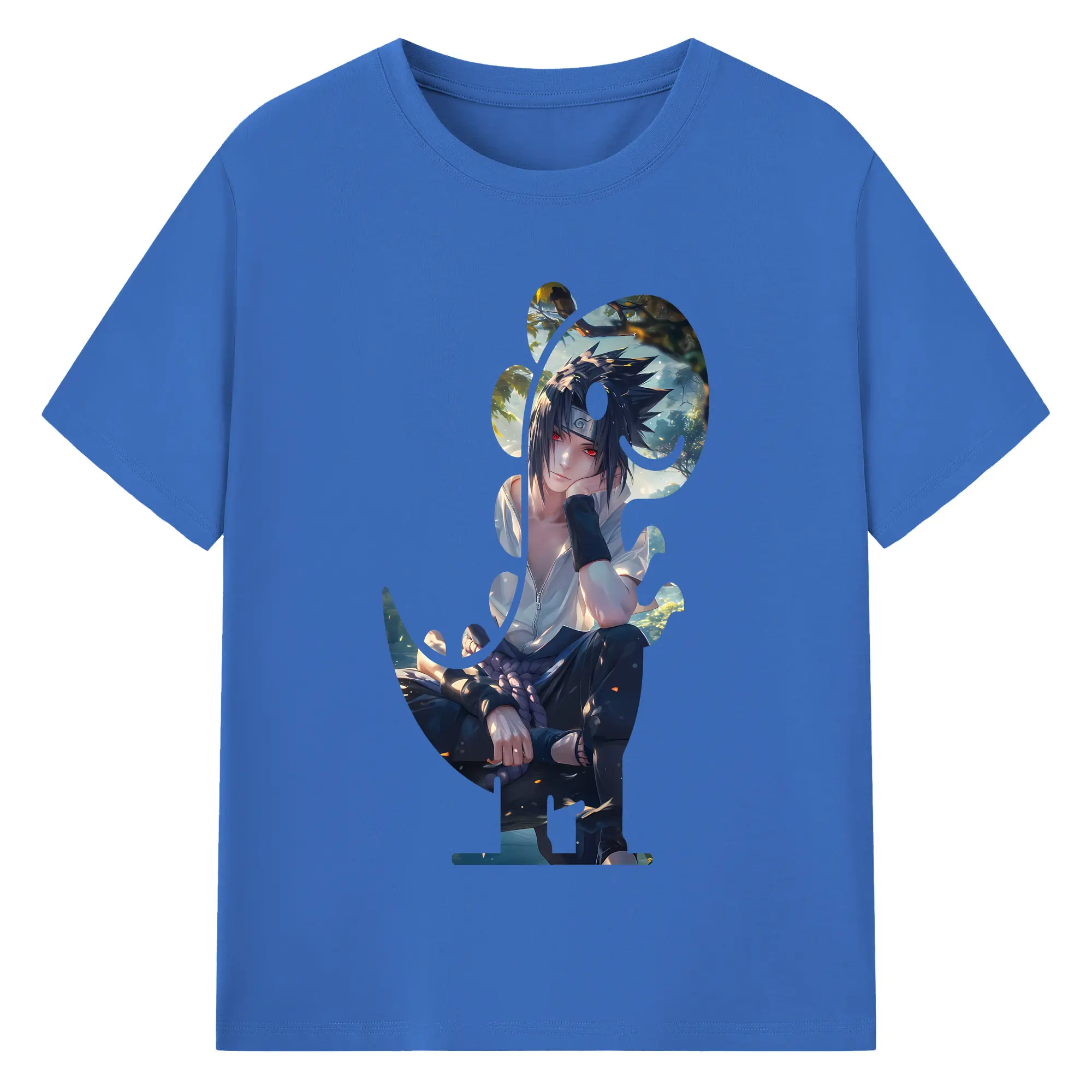 ナルト グッズ うちは サスケ - 綿100% 半袖Tシャツ ・ バックプリント ・ 快適 通気性 ・ 日常使い 散歩 スポーツ用
