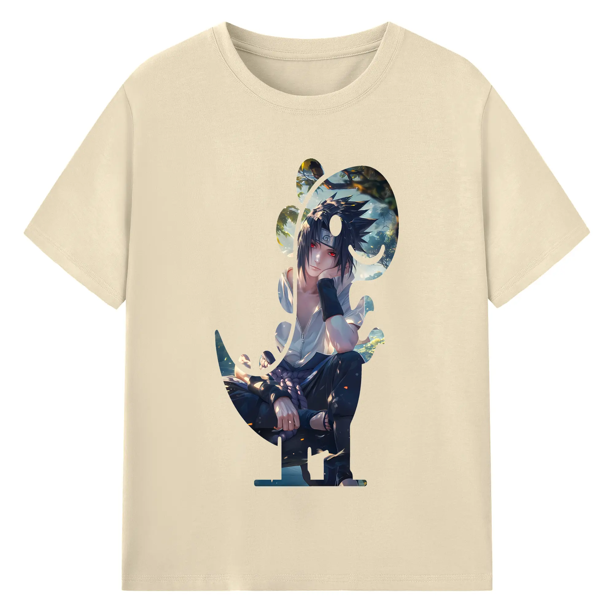 ナルト グッズ うちは サスケ - 綿100% ヴィンテージ風 半袖Tシャツ ・ フロントプリント ・ 柔らか肌触り ・ 通気性 快適 ・ スポーツ カジュアル 外出用