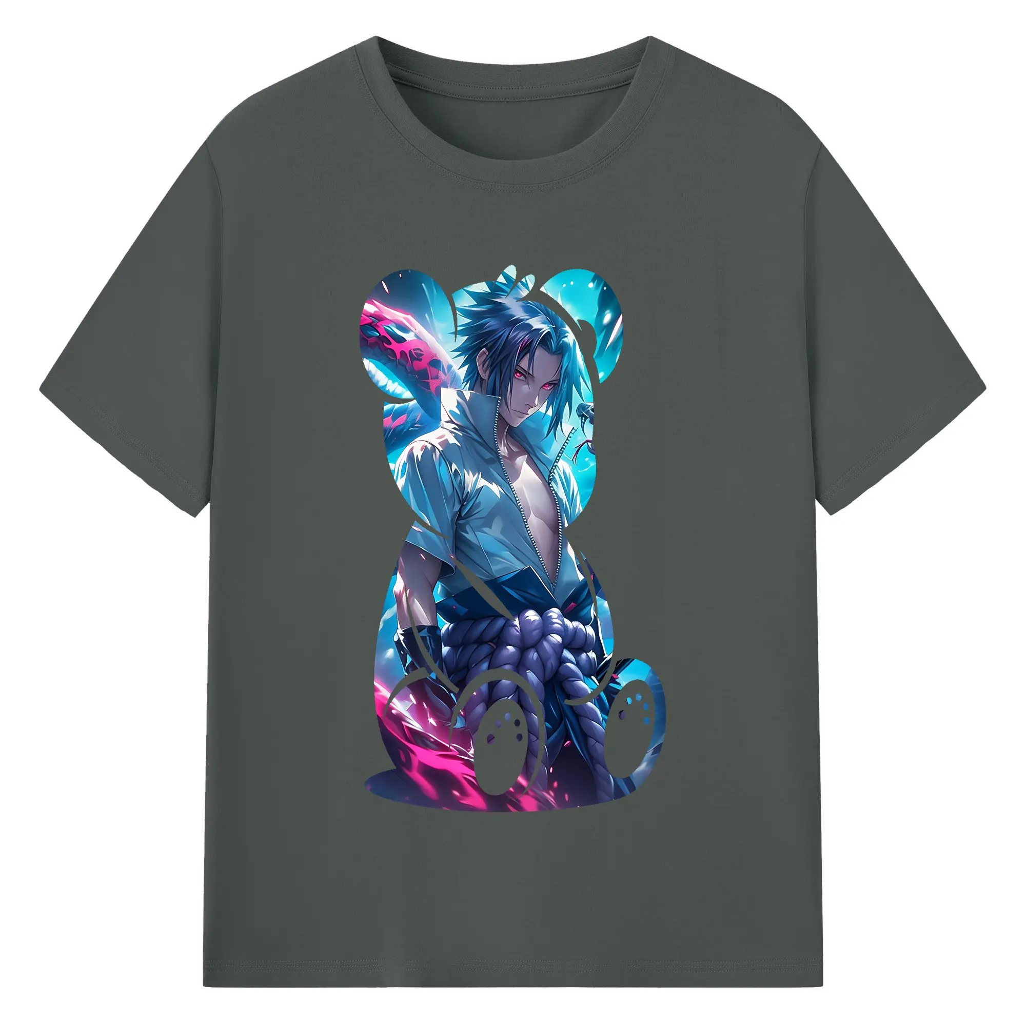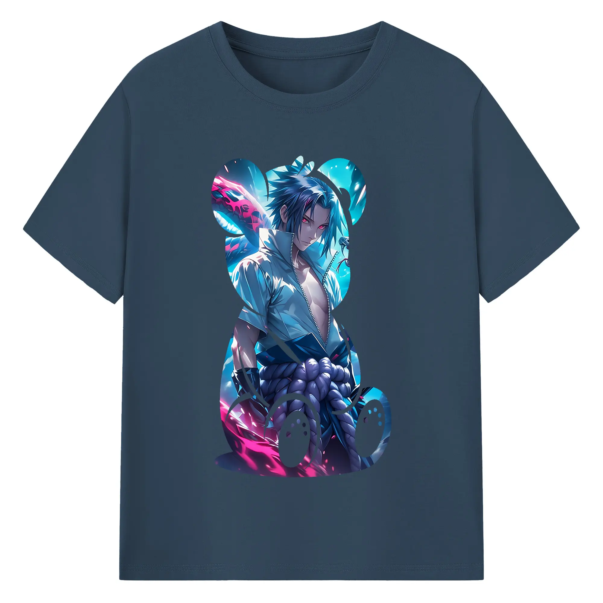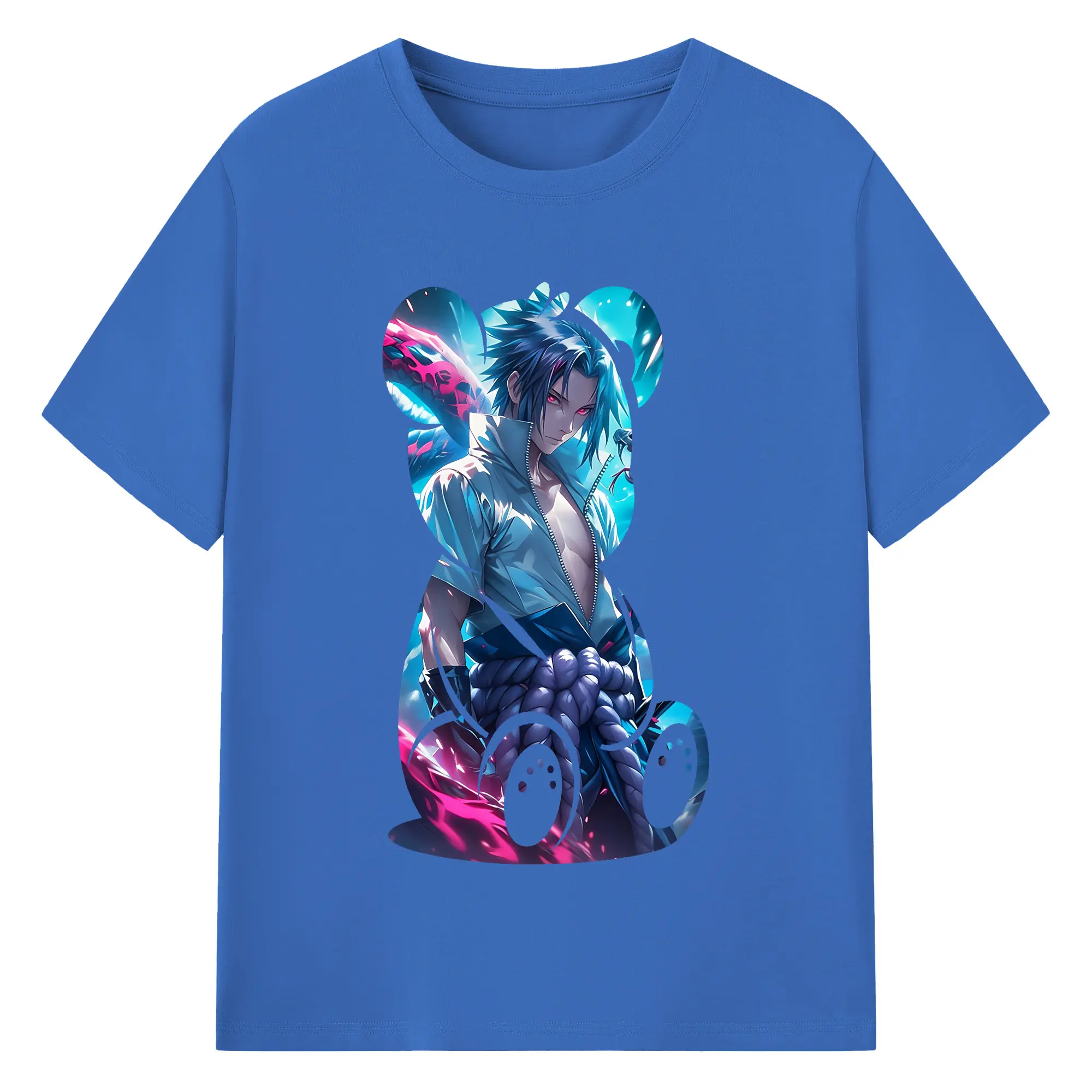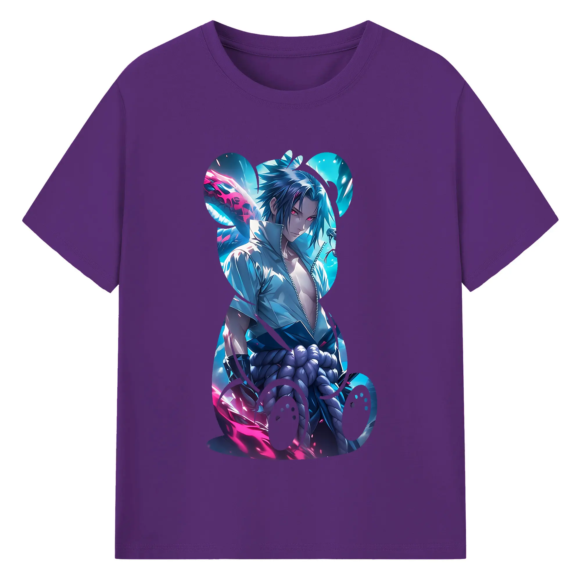 ナルト グッズ うちは サスケ - 綿100% 半袖Tシャツ ・ バックプリント ・ 快適 通気性 ・ 日常使い 散歩 スポーツ用