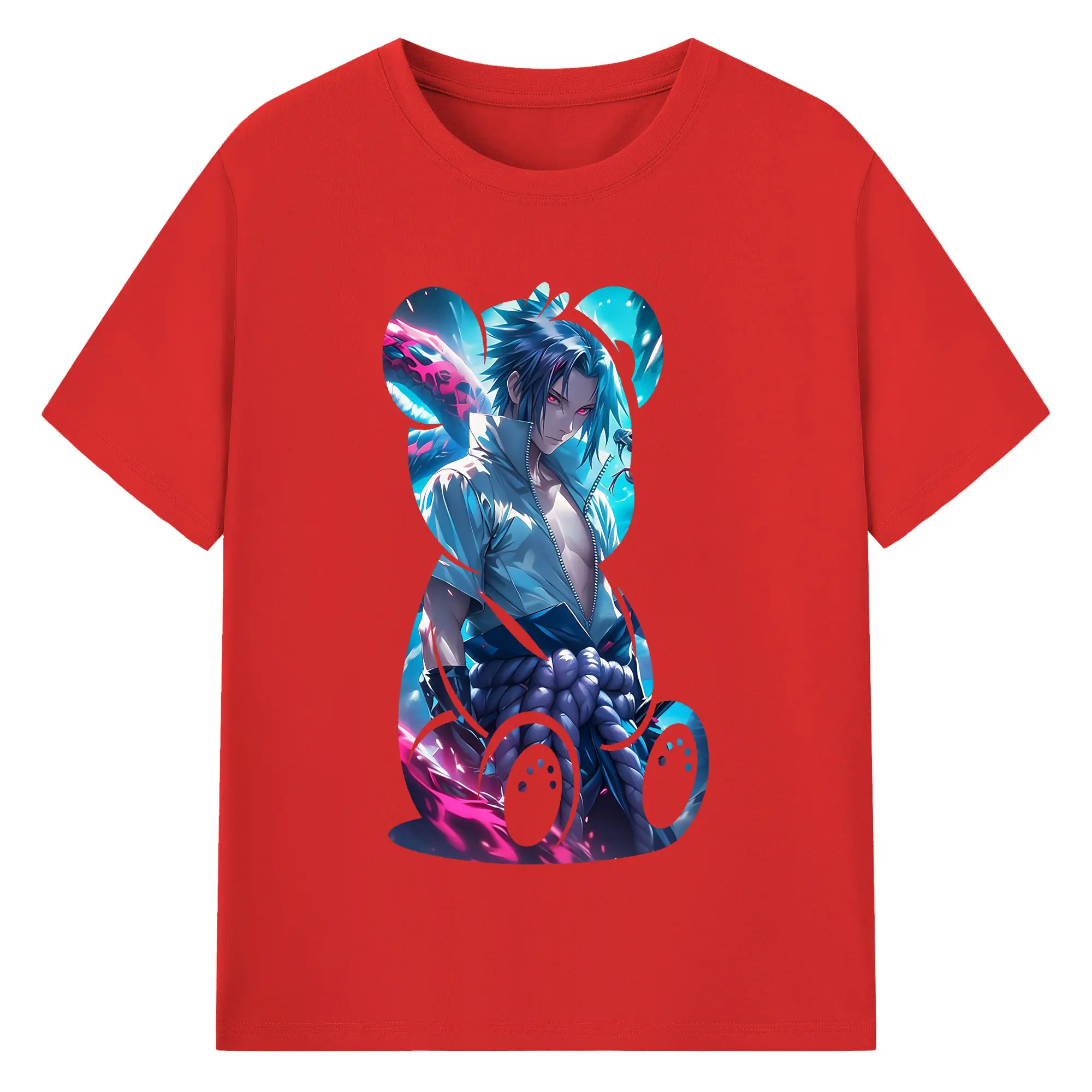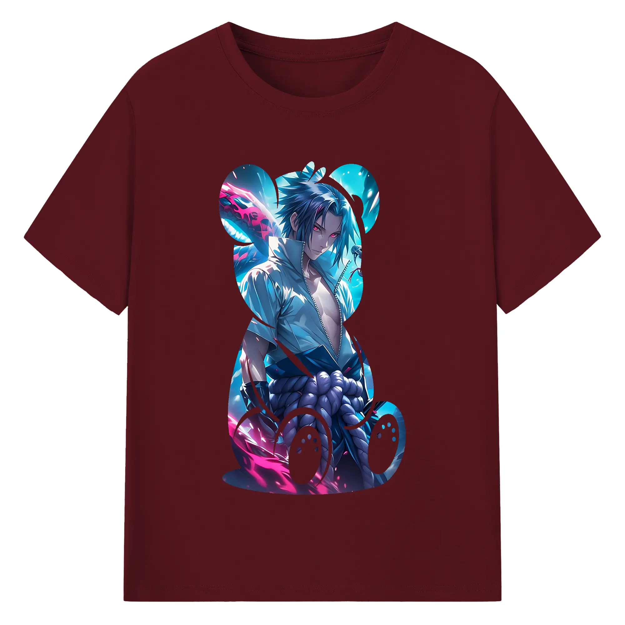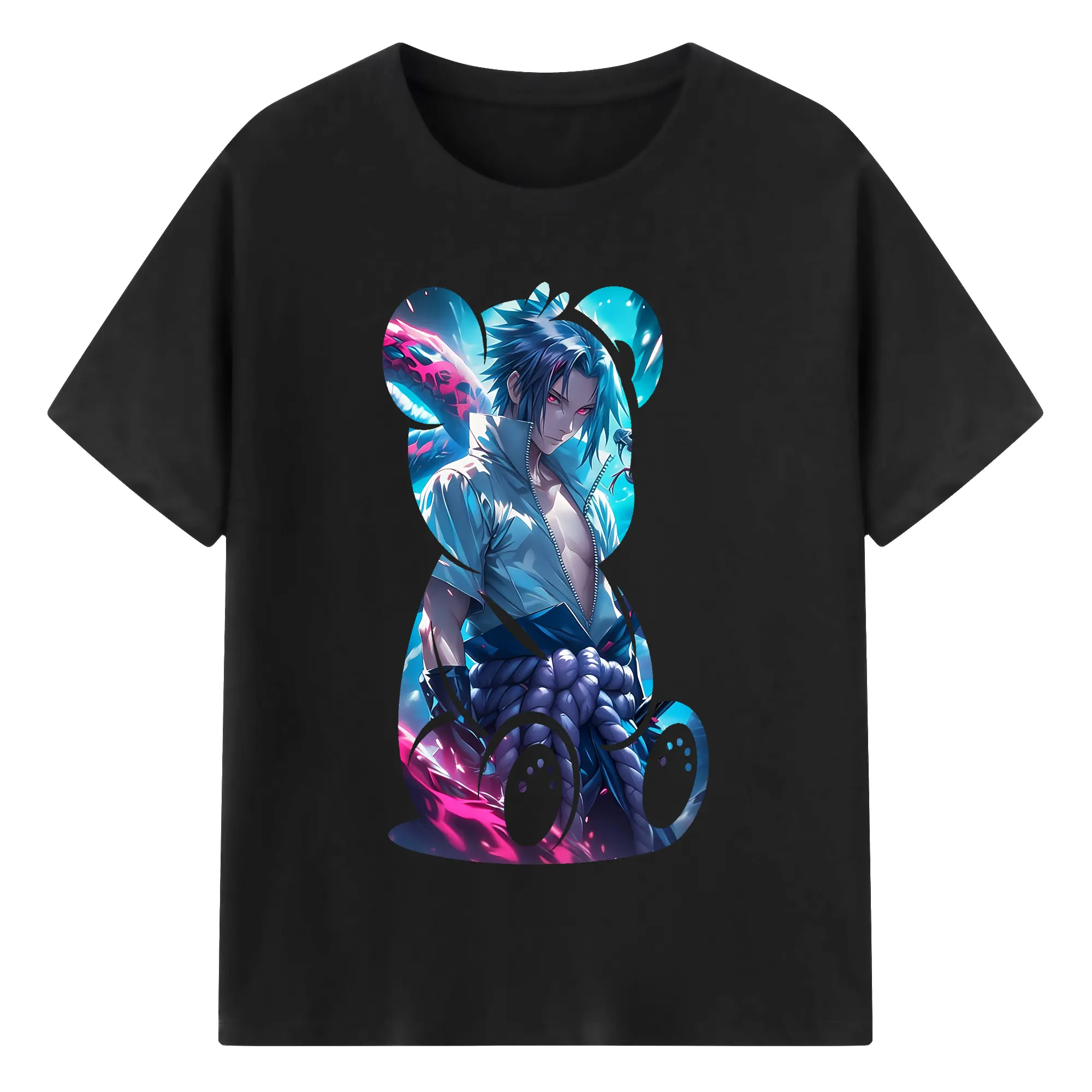 ナルト グッズ うちは サスケ - 綿100% 半袖Tシャツ ・ バックプリント ・ 快適 通気性 ・ 日常使い 散歩 スポーツ用