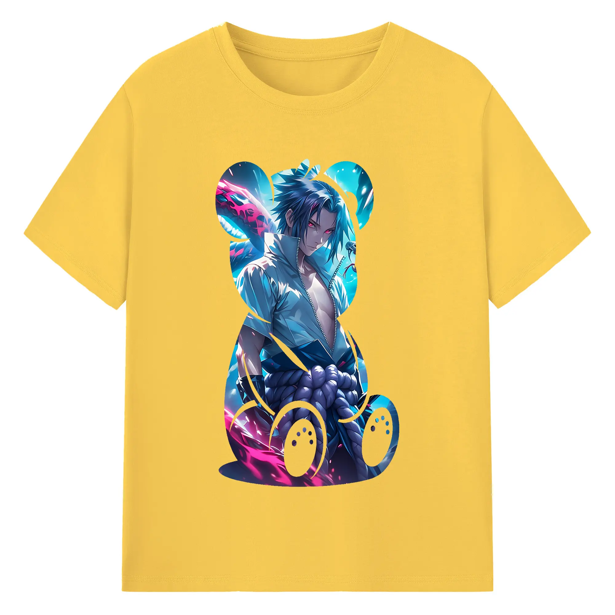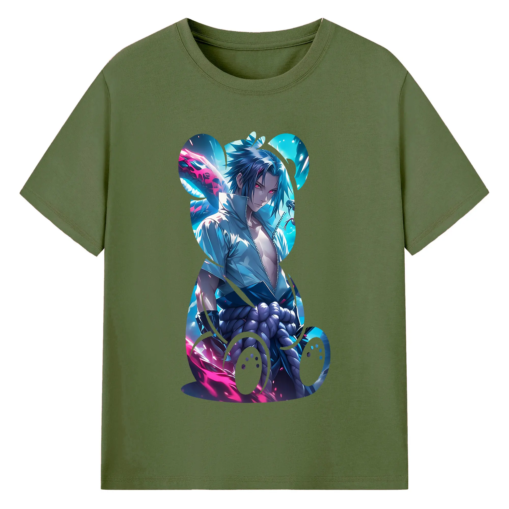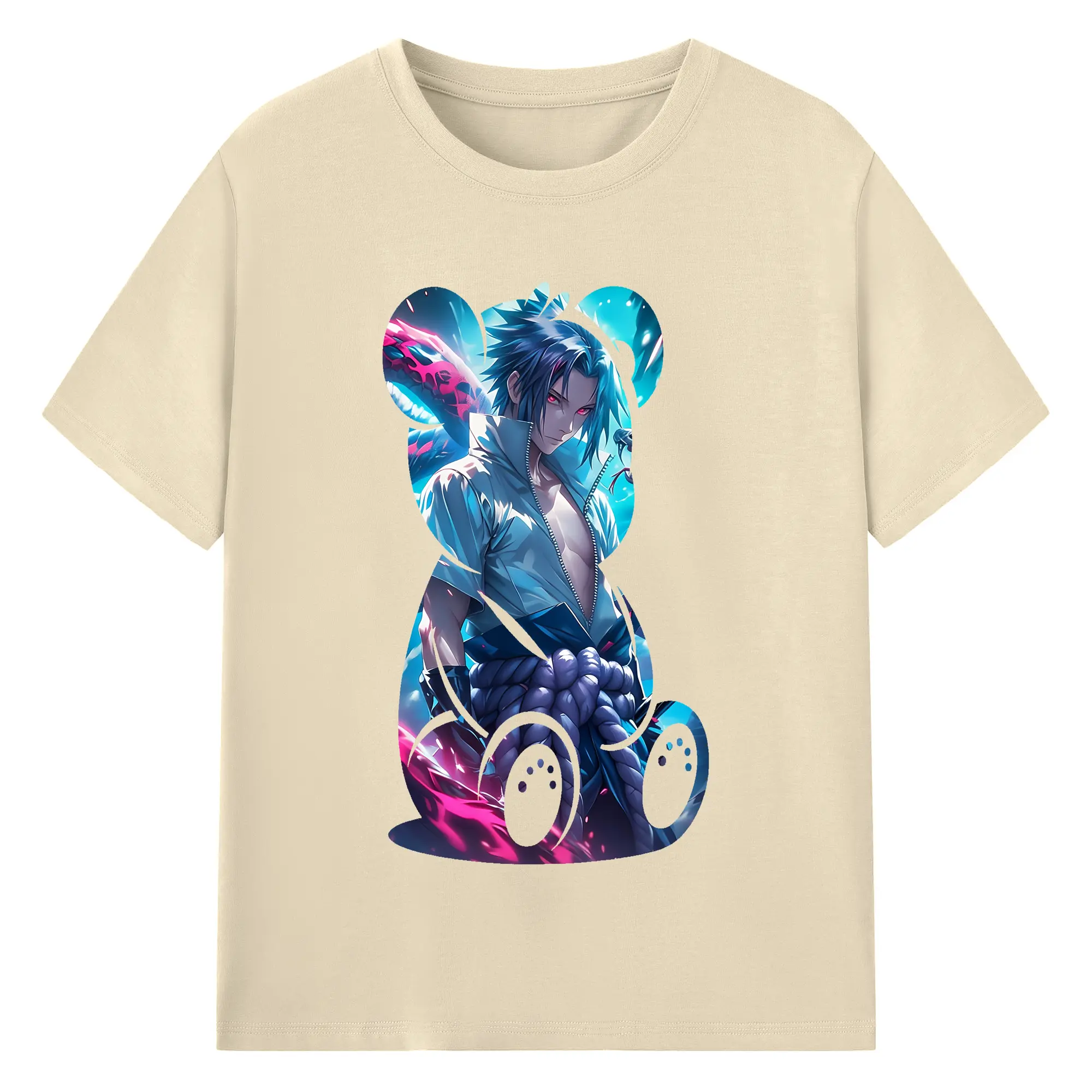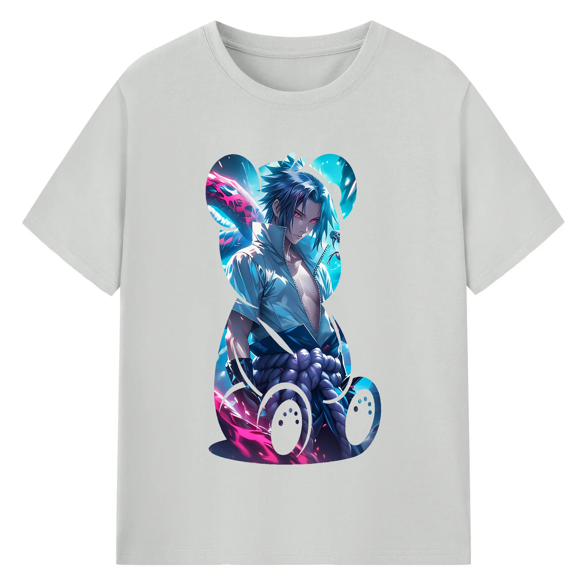 ナルト グッズ うちは サスケ - 綿100% 半袖Tシャツ ・ バックプリント ・ 快適 通気性 ・ 日常使い 散歩 スポーツ用