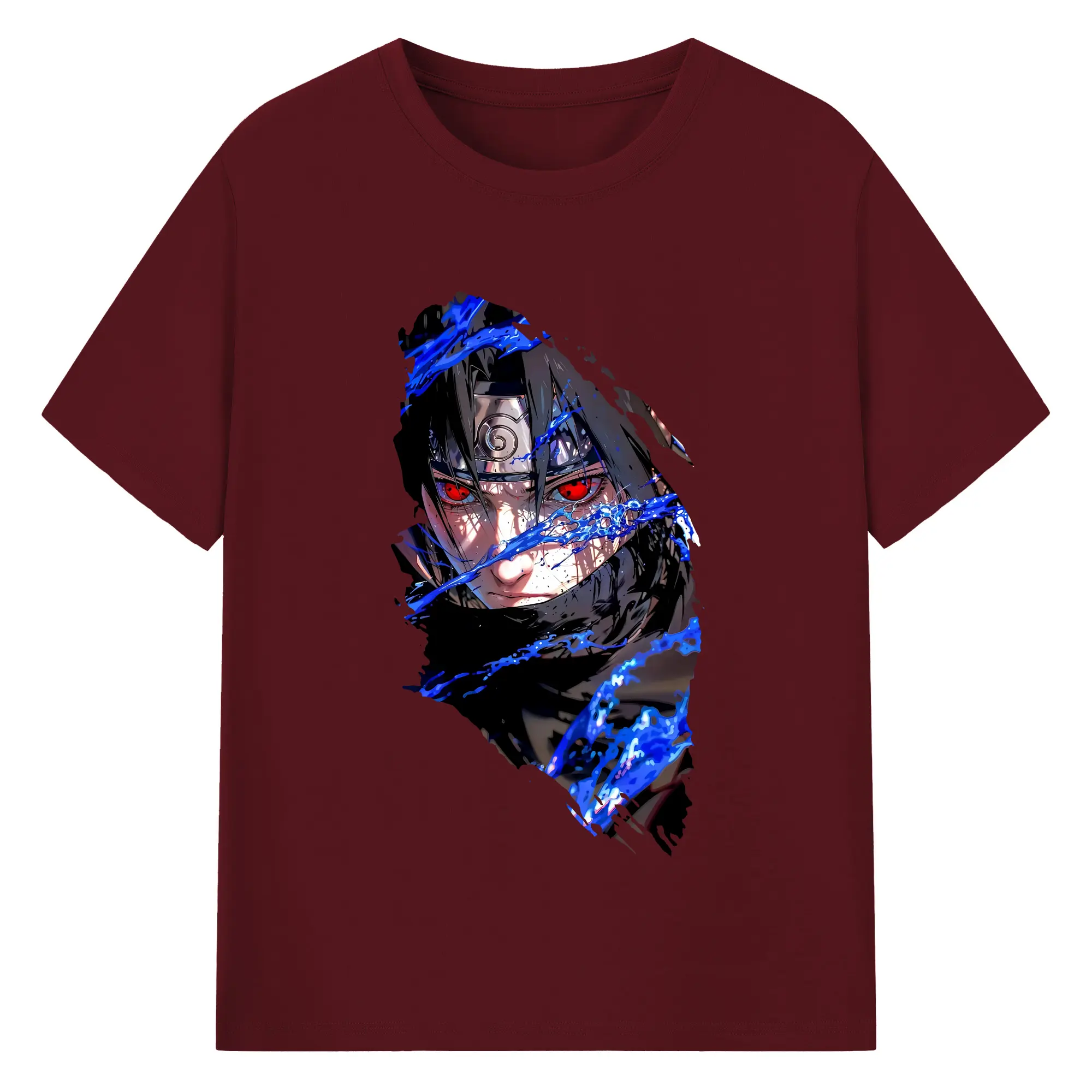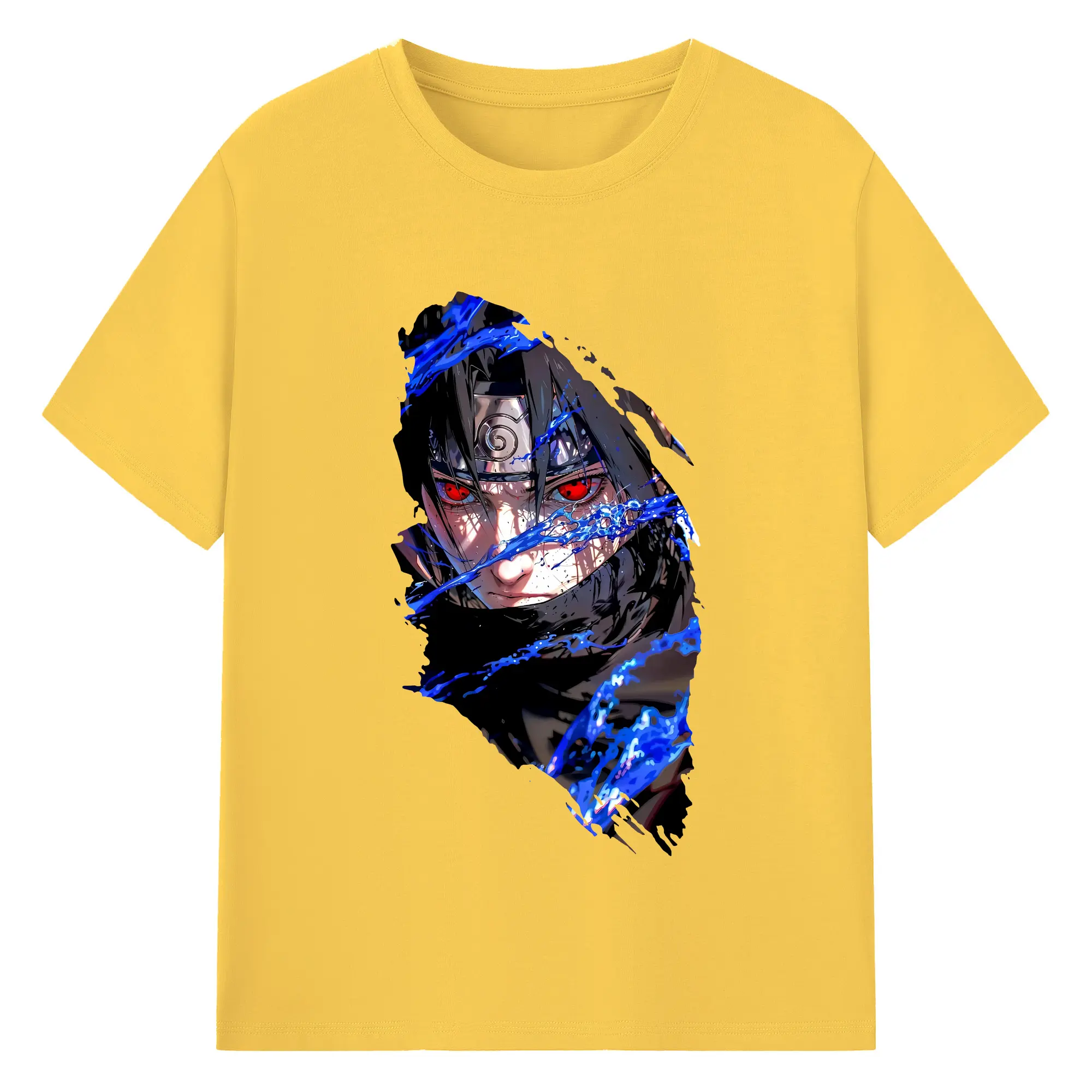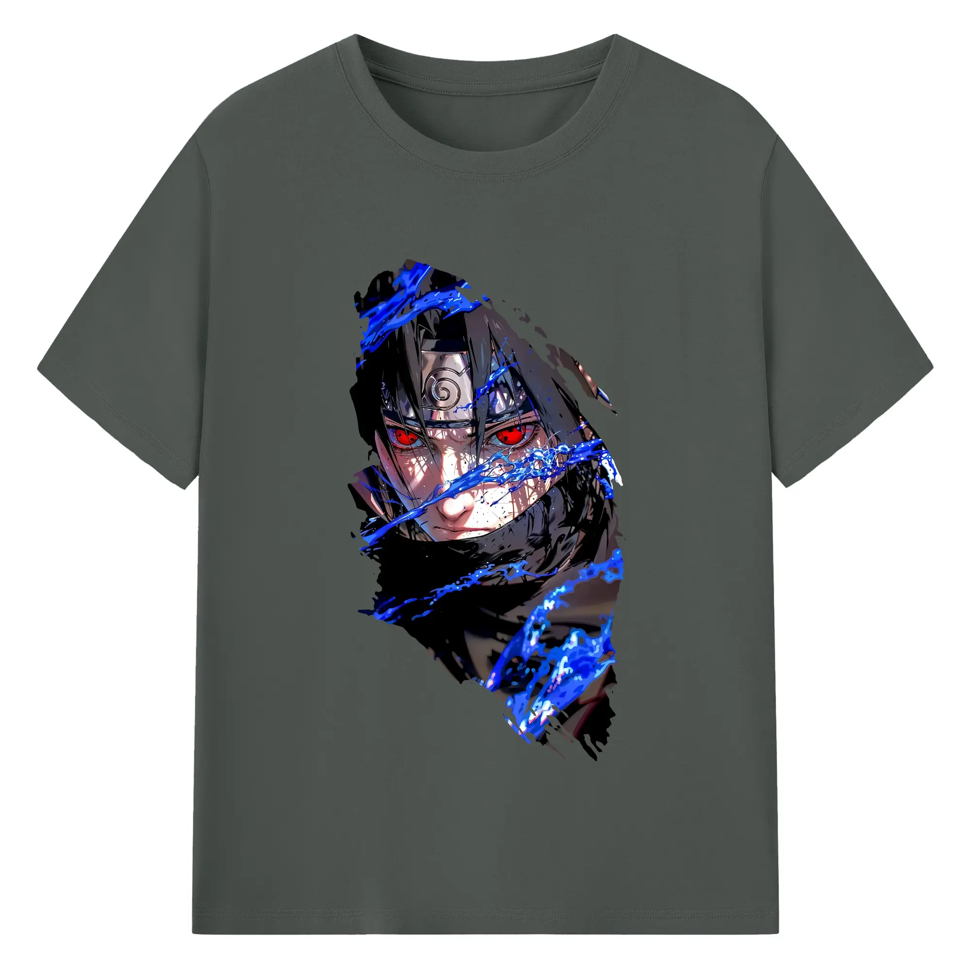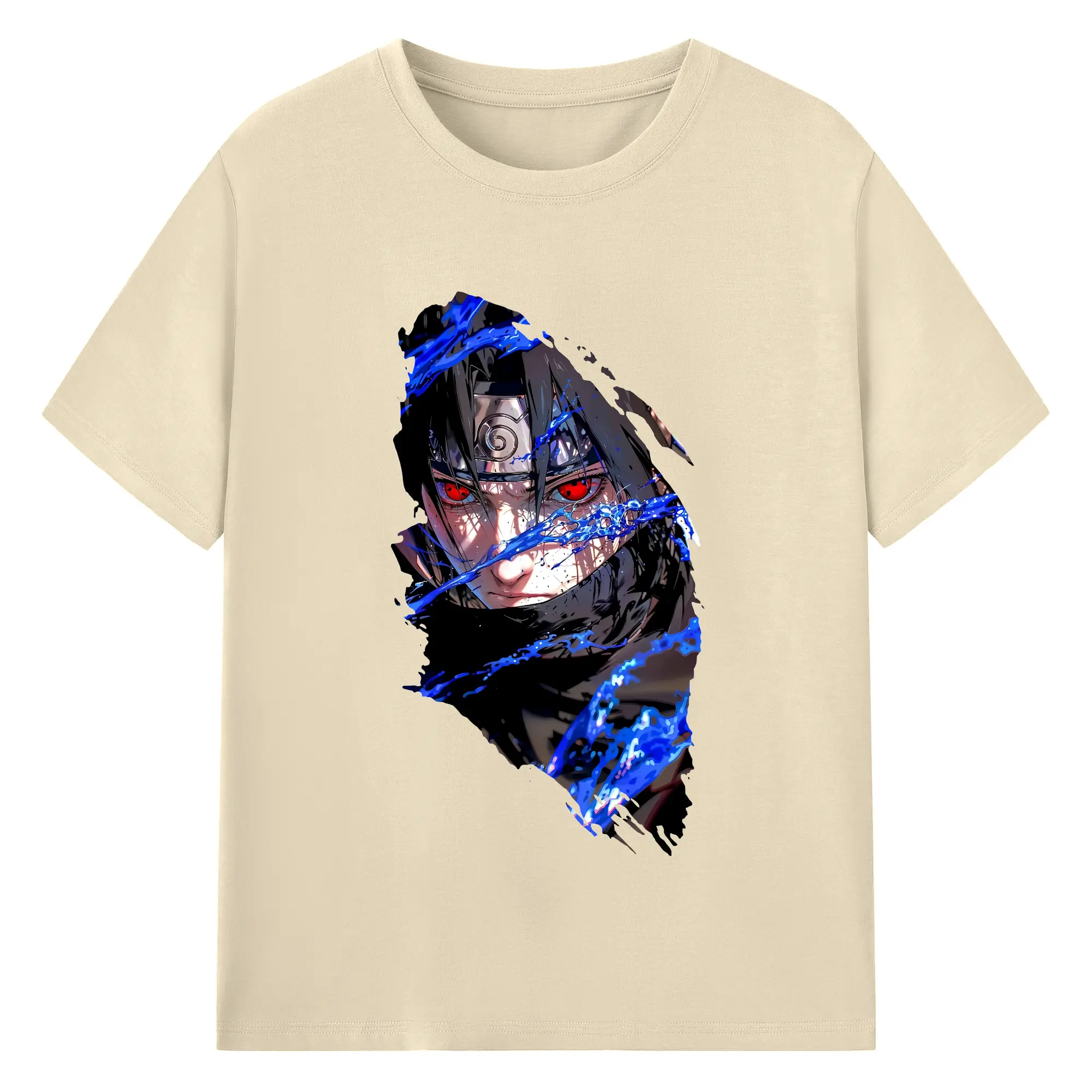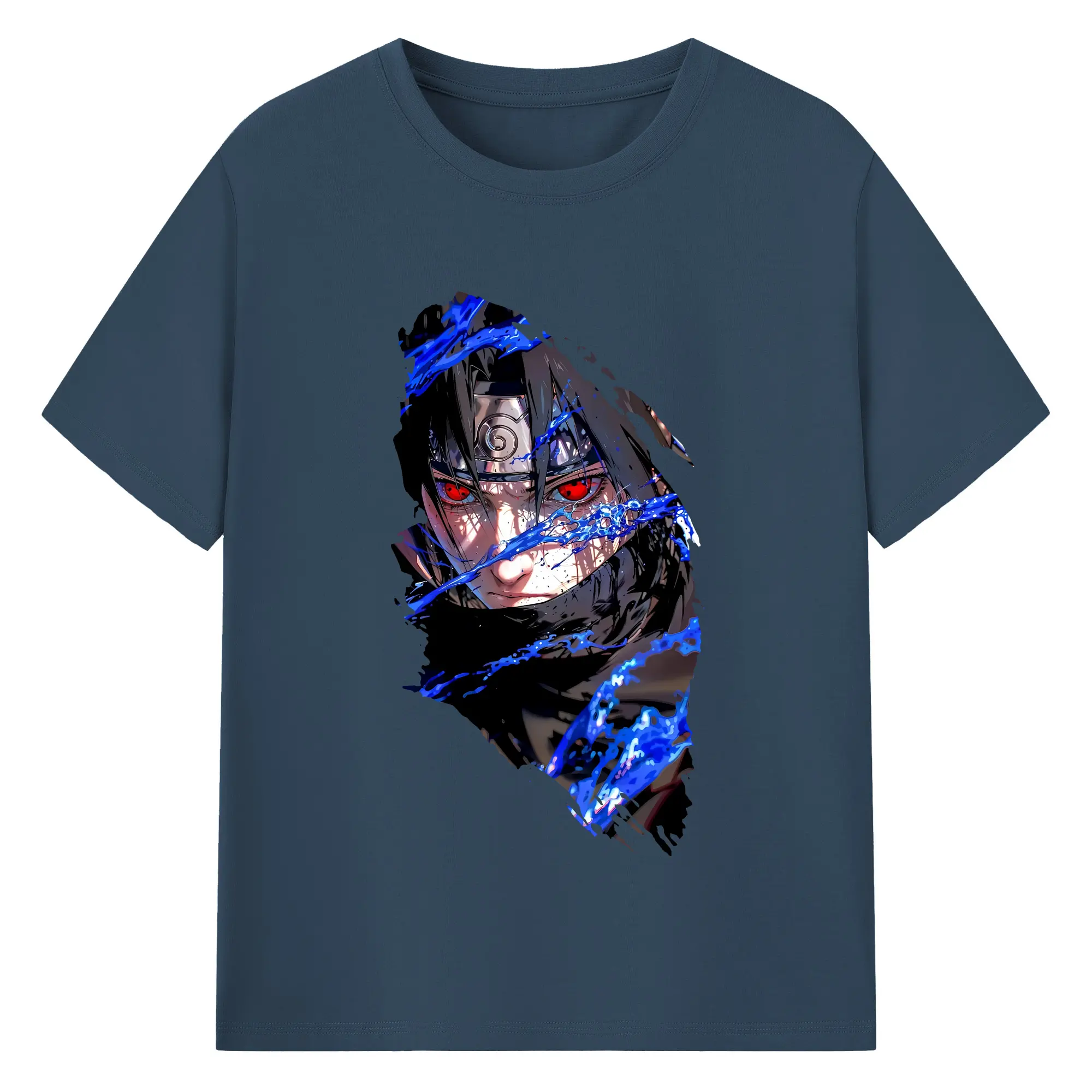 ナルト グッズ うちは サスケ - 綿100% ヴィンテージ風 半袖Tシャツ ・ フロントプリント ・ 柔らか肌触り ・ 通気性 快適 ・ スポーツ カジュアル 外出用