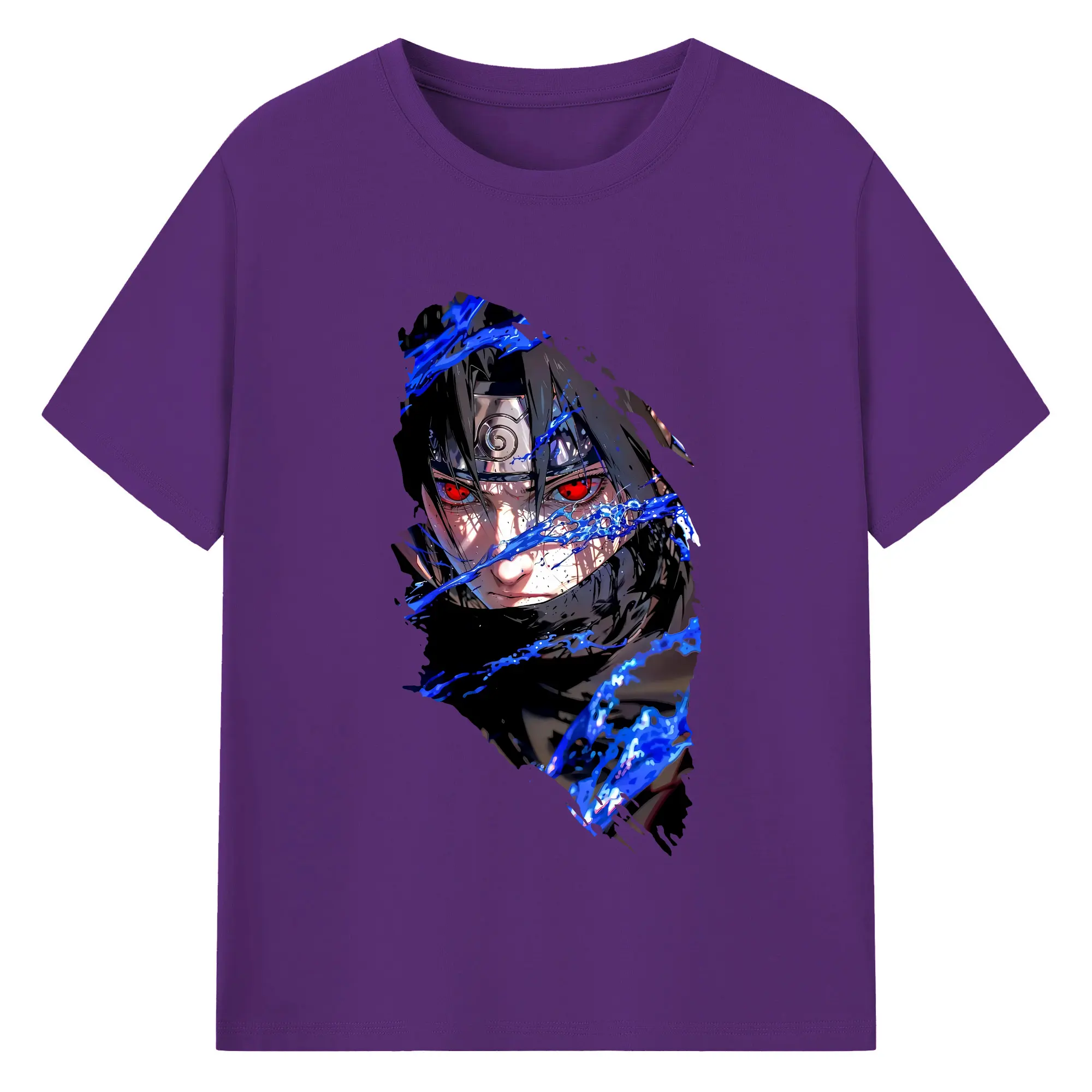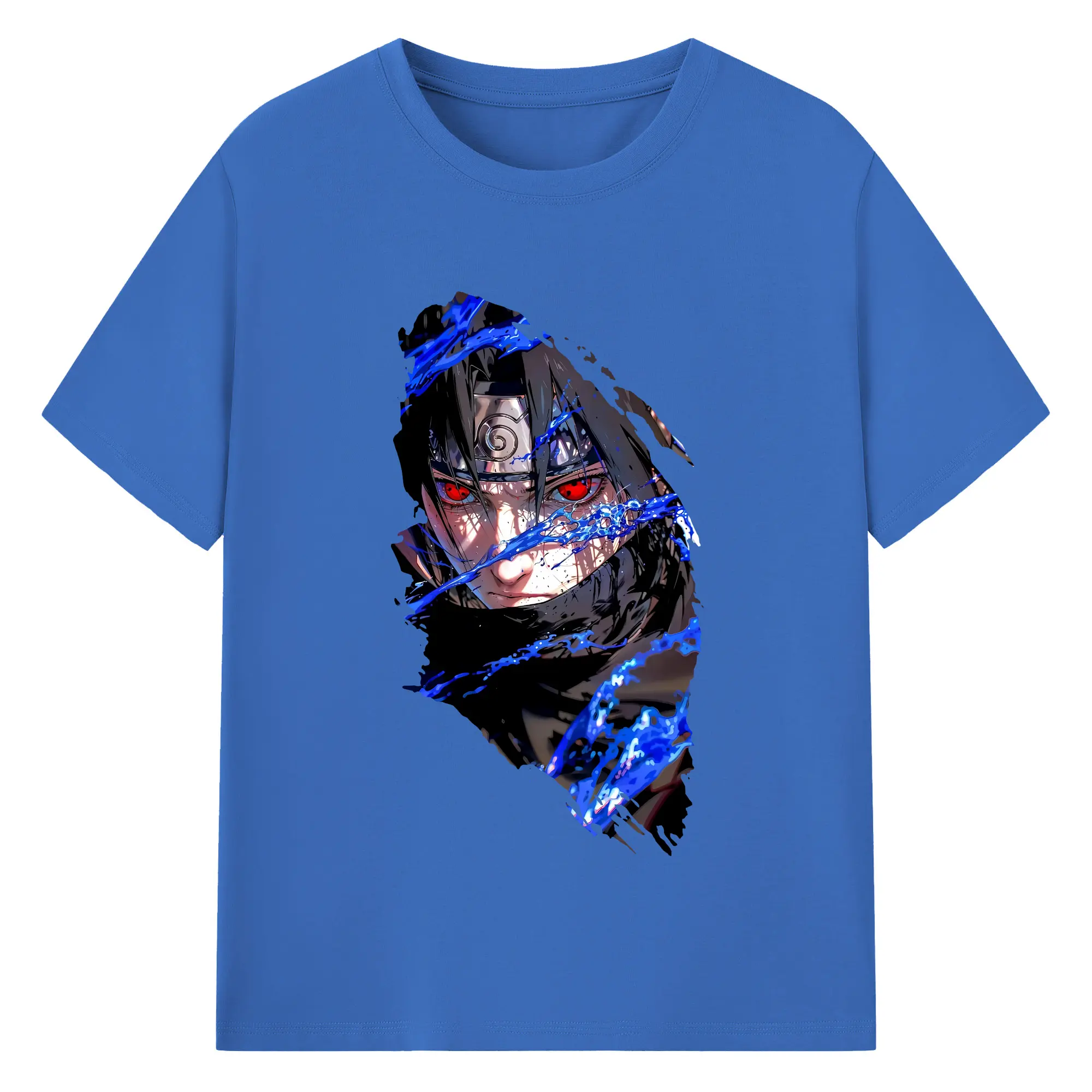 ナルト グッズ うちは サスケ - 綿100% 半袖Tシャツ ・ バックプリント ・ 快適 通気性 ・ 日常使い 散歩 スポーツ用