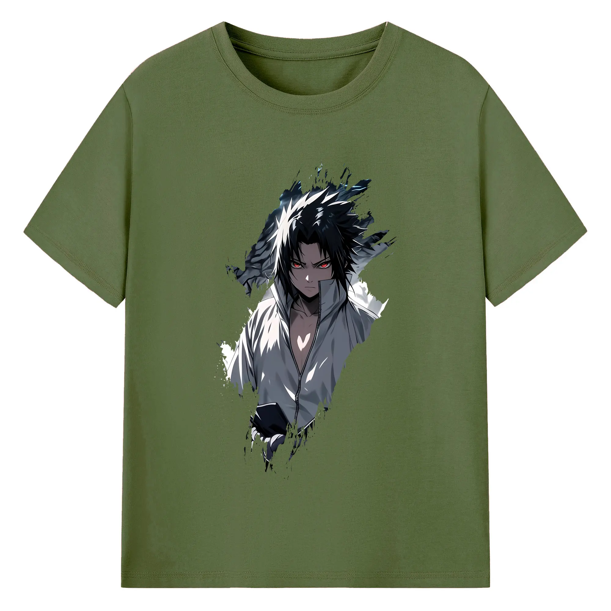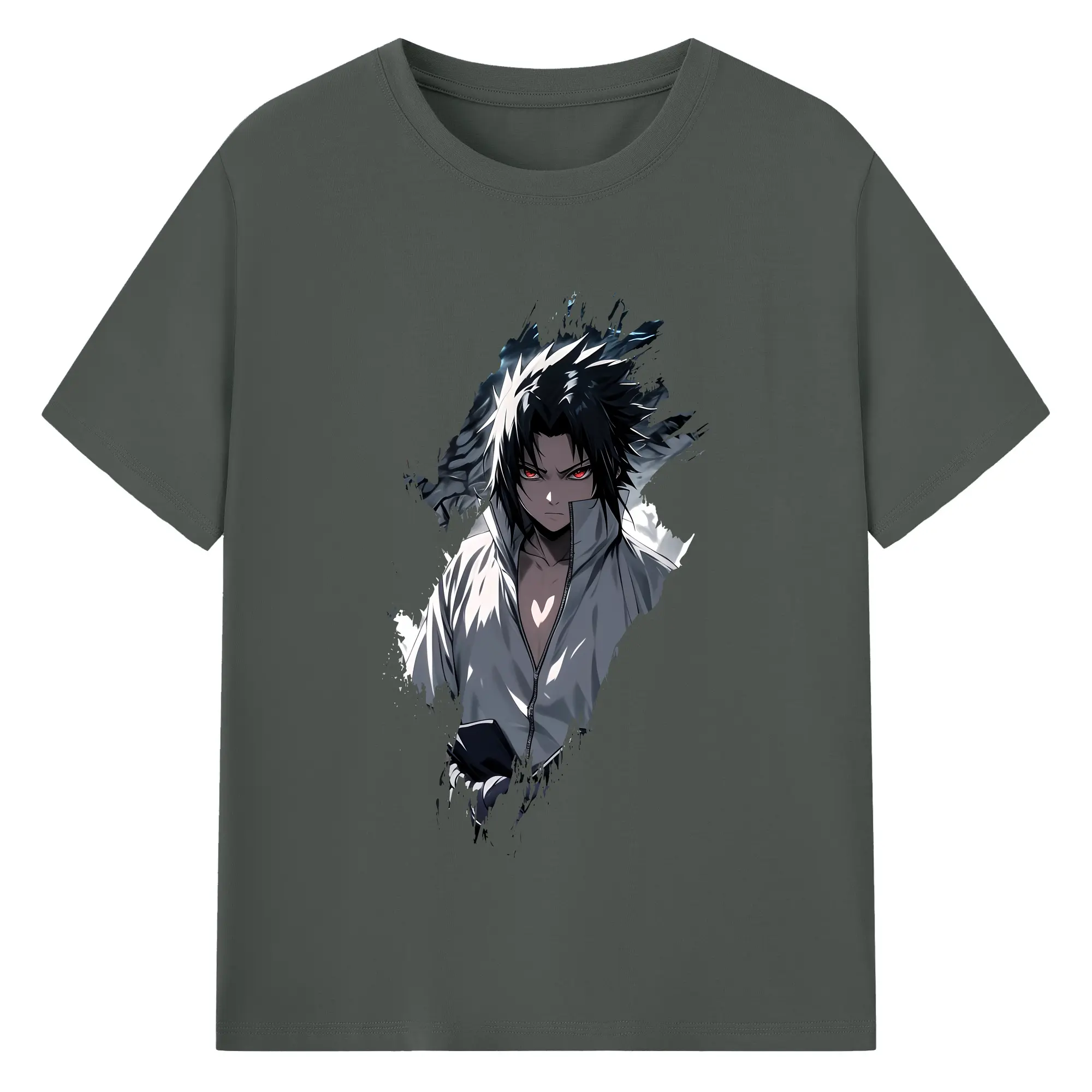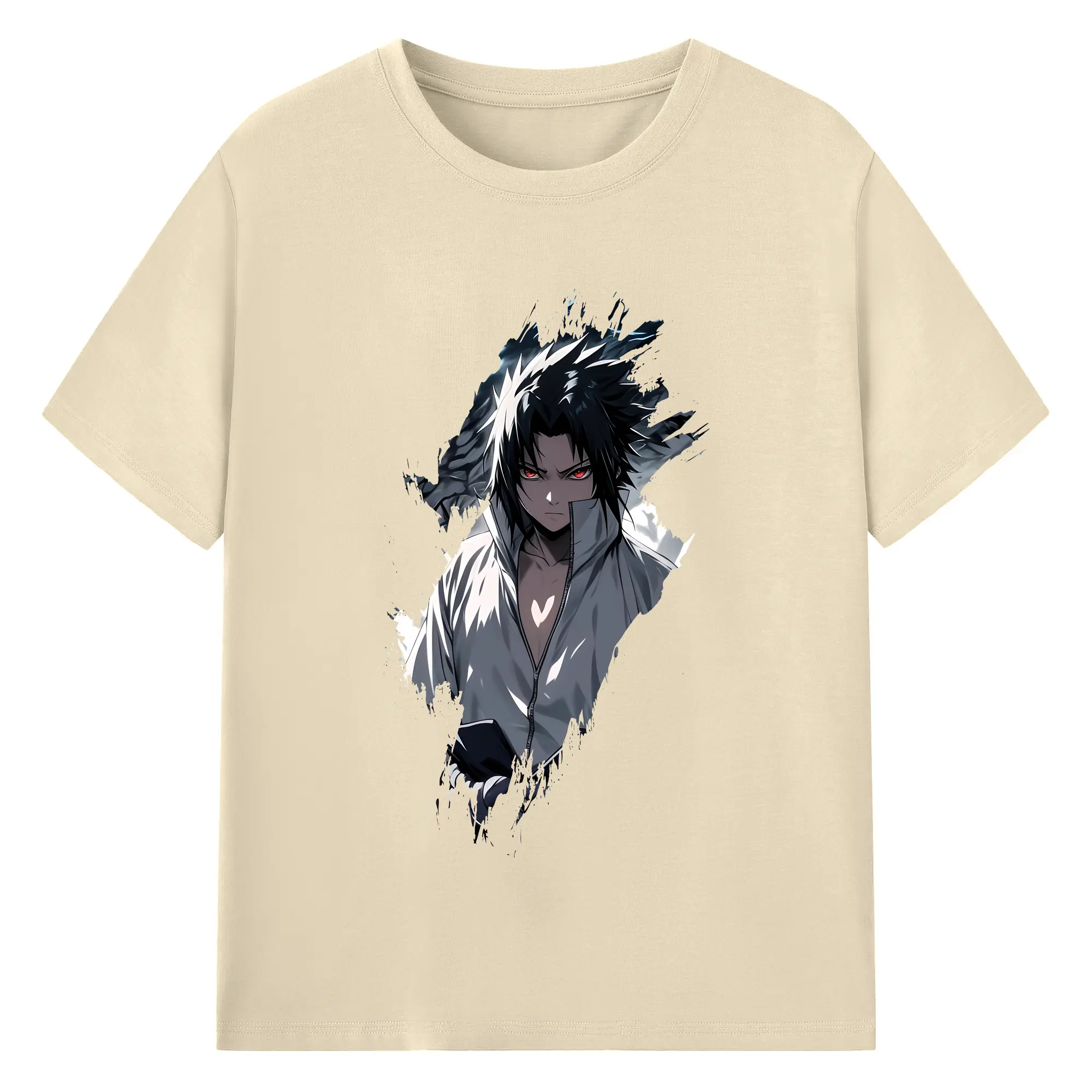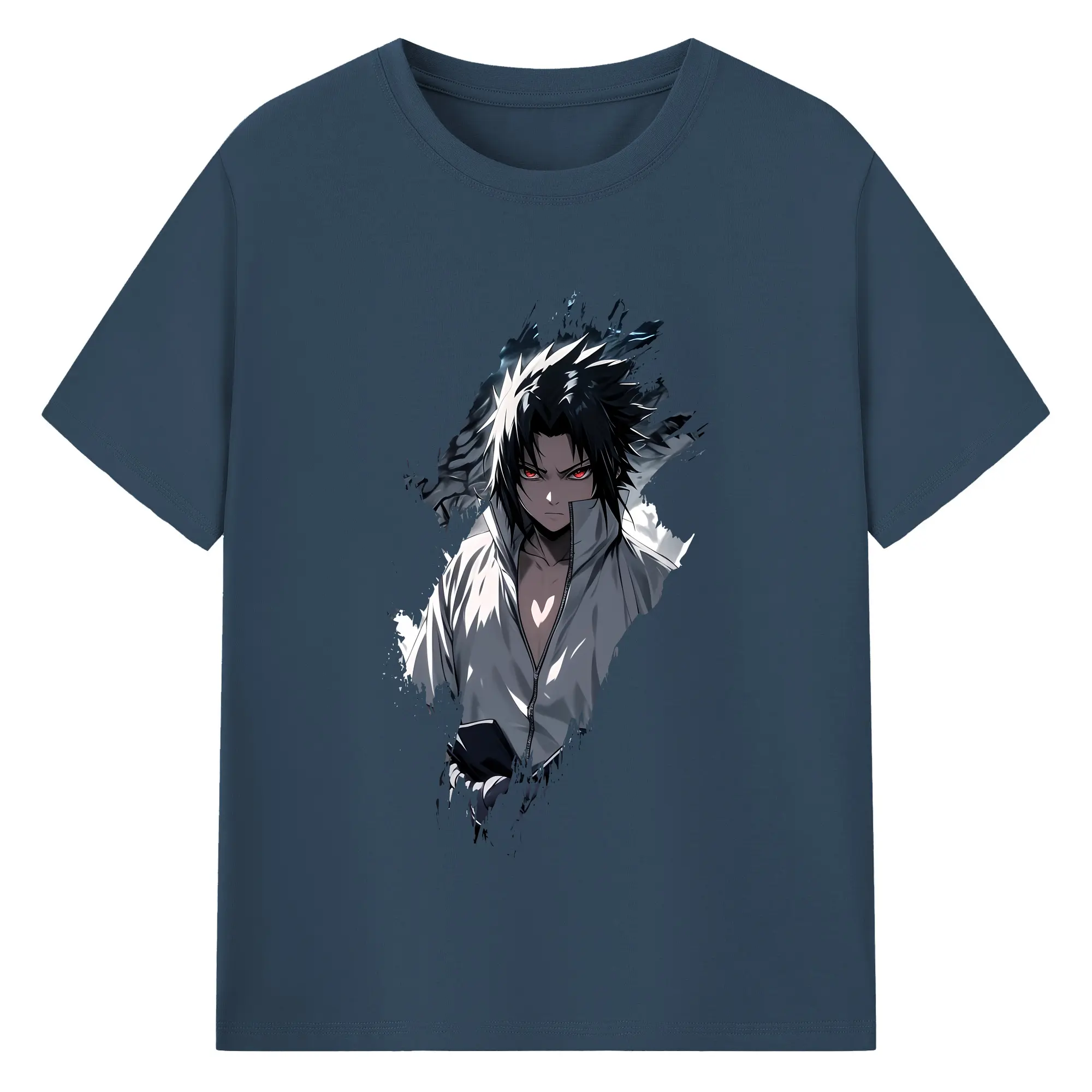 ナルト グッズ うちは サスケ - 綿100% ヴィンテージ風 半袖Tシャツ ・ フロントプリント ・ 柔らか肌触り ・ 通気性 快適 ・ スポーツ カジュアル 外出用