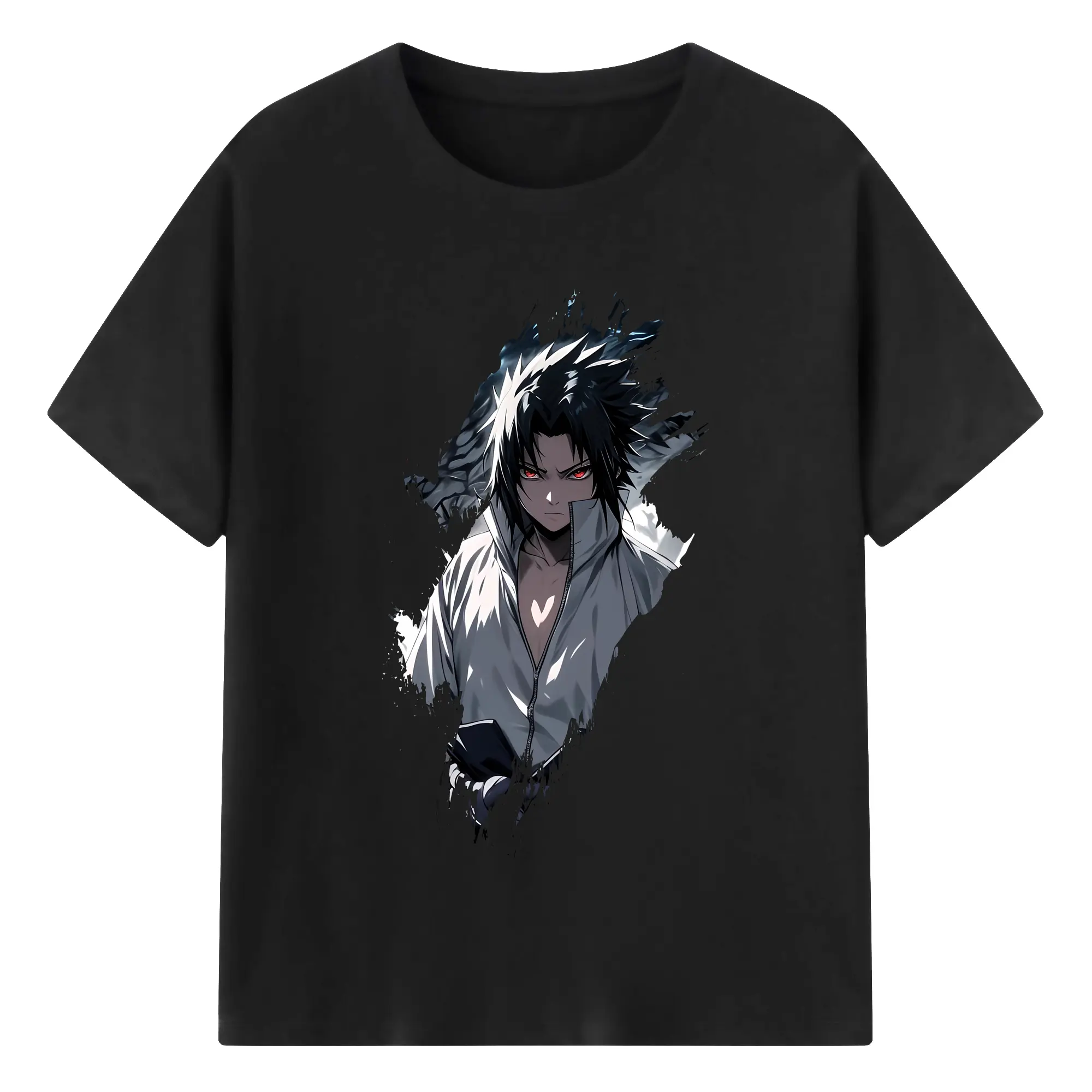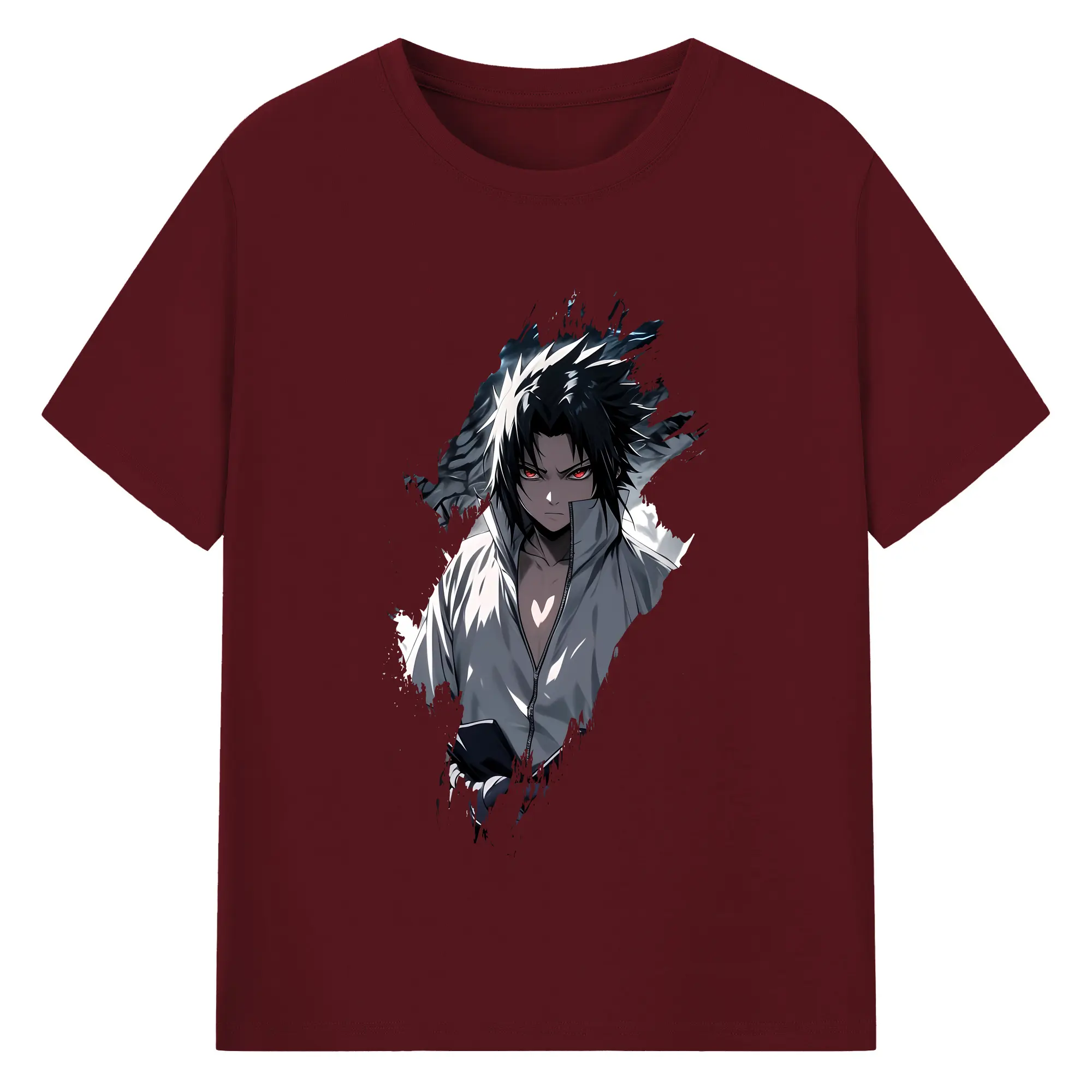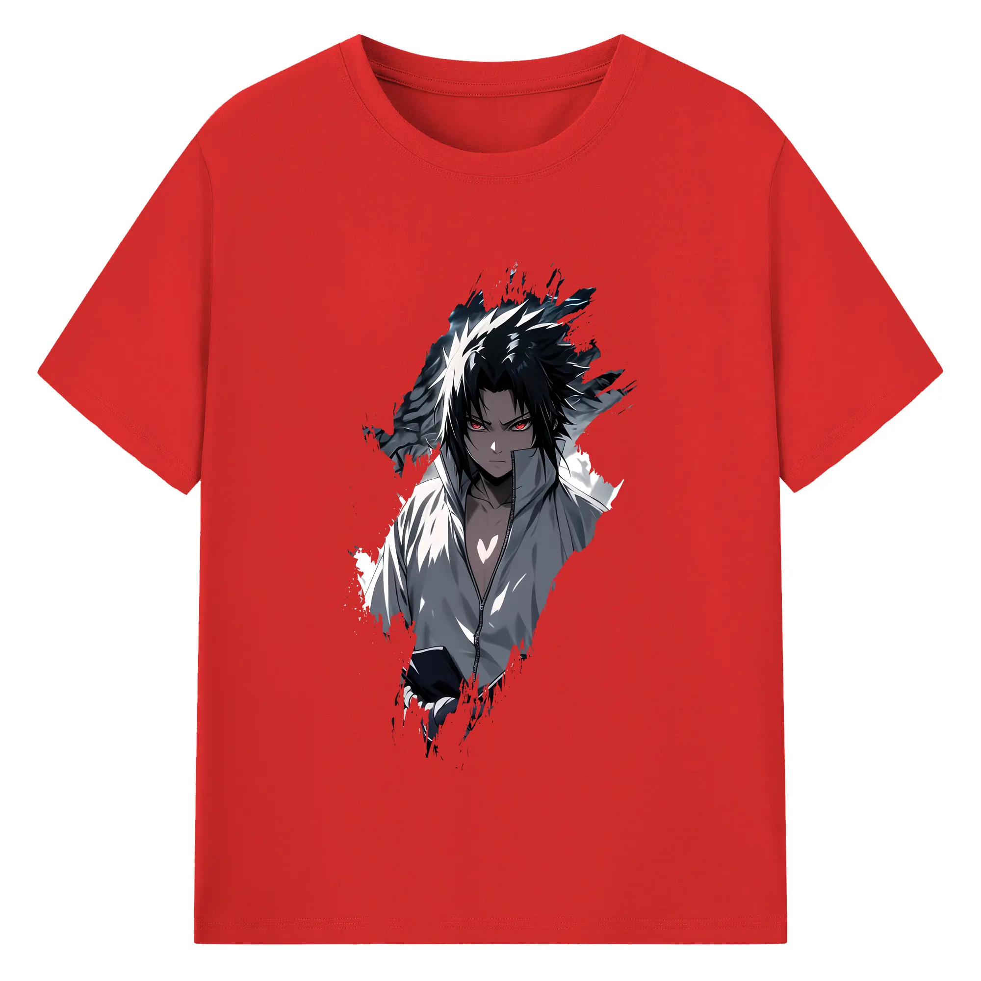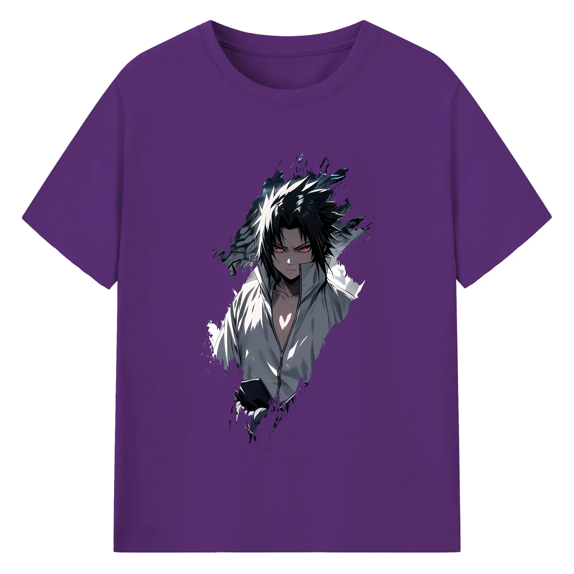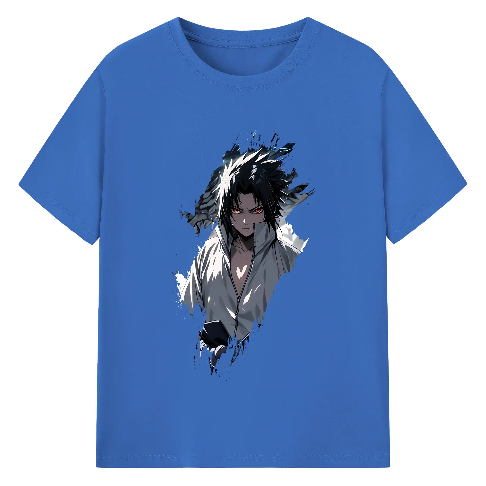ナルト グッズ うちは サスケ - 綿100% 半袖Tシャツ ・ バックプリント ・ 快適 通気性 ・ 日常使い 散歩 スポーツ用