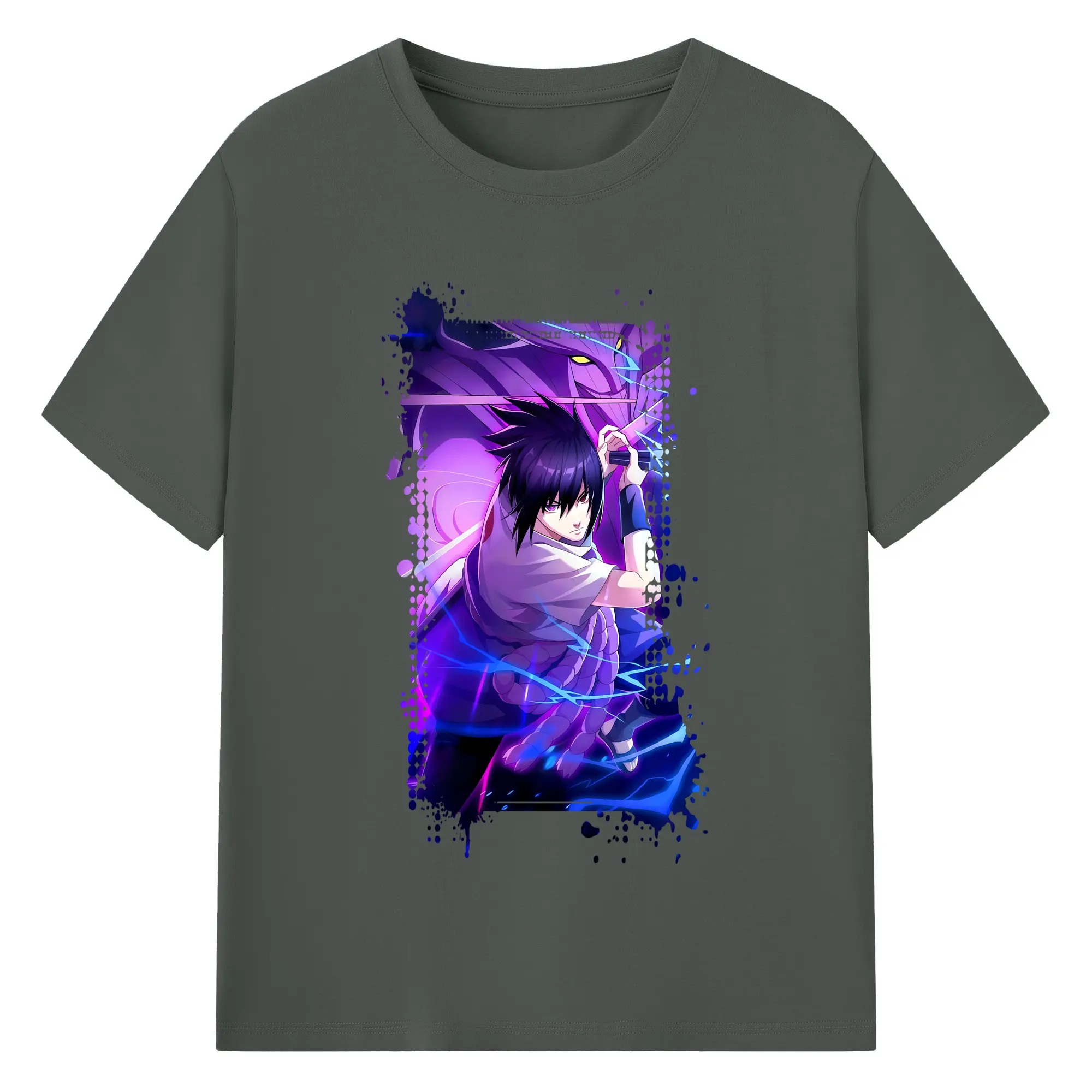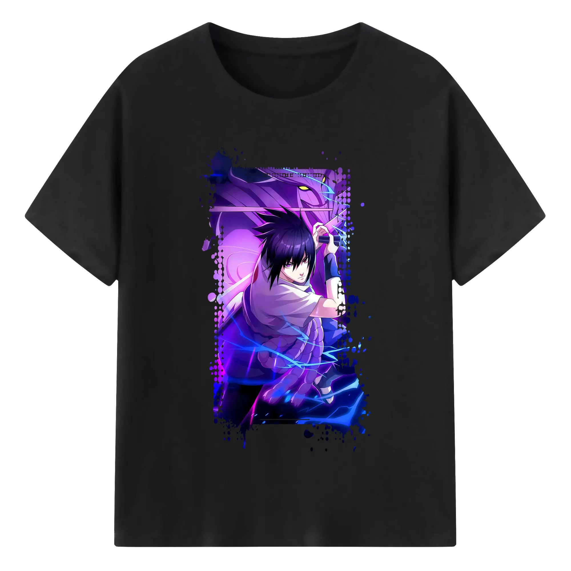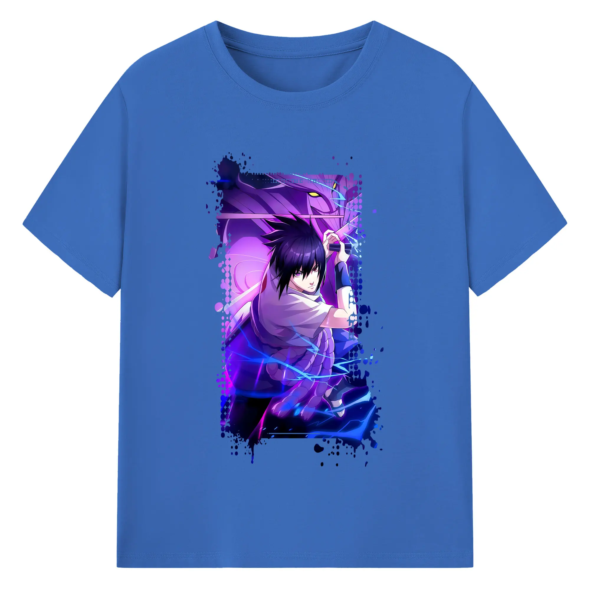 ナルト グッズ うちは サスケ - 綿100% 半袖Tシャツ ・ バックプリント ・ 快適 通気性 ・ 日常使い 散歩 スポーツ用