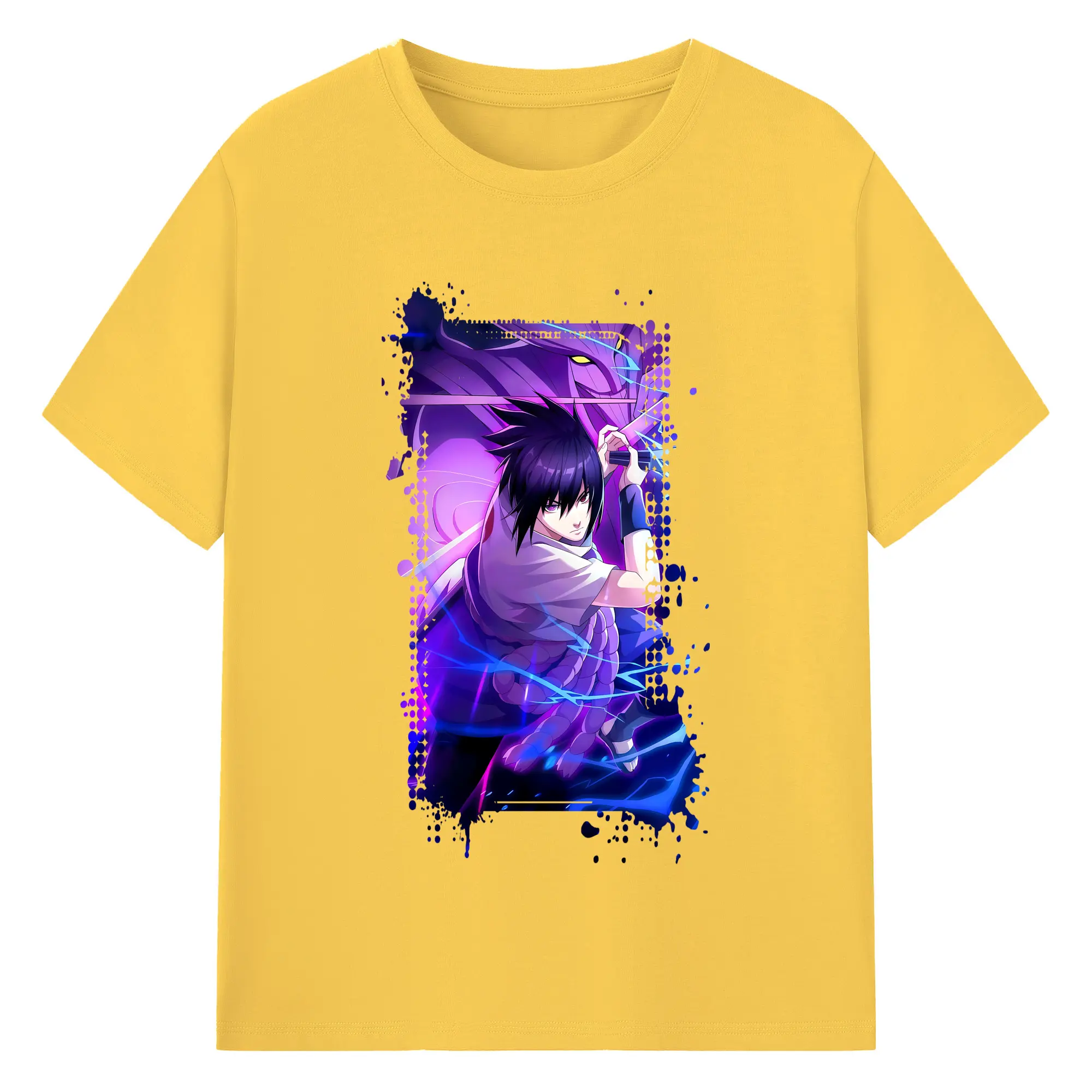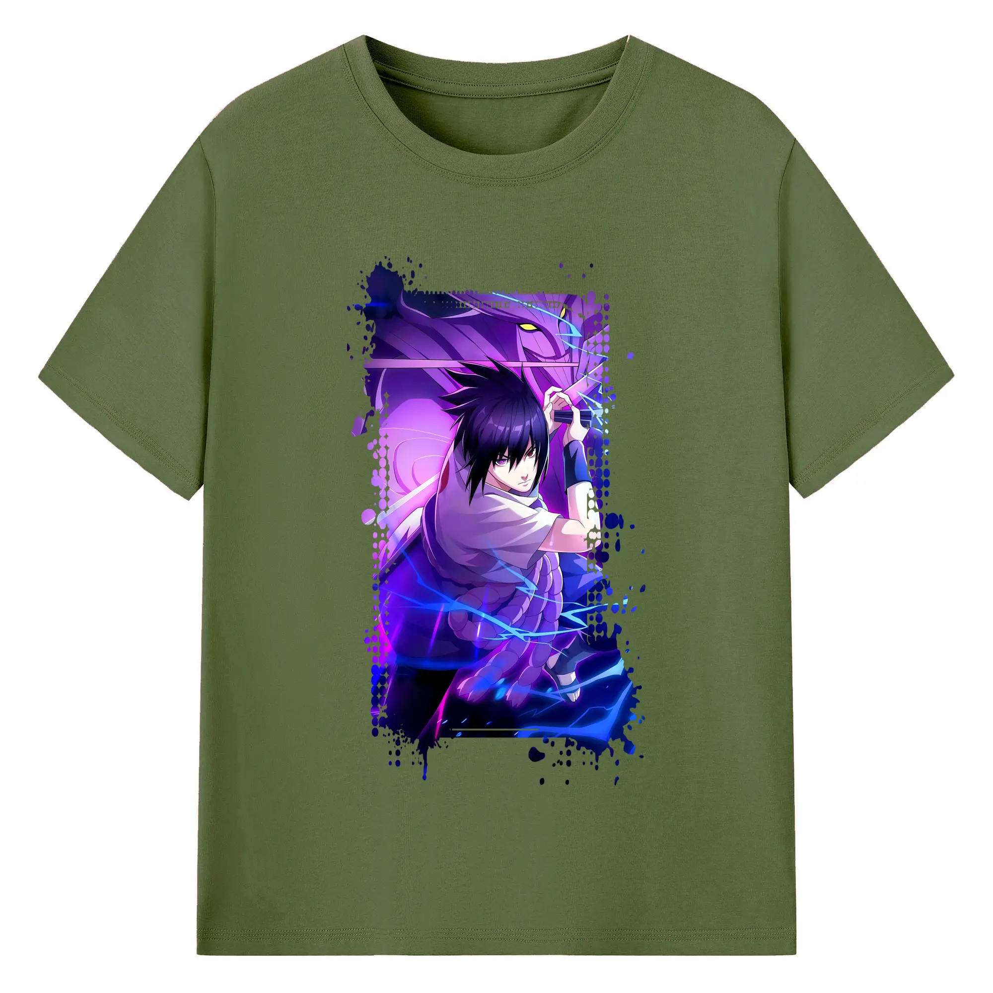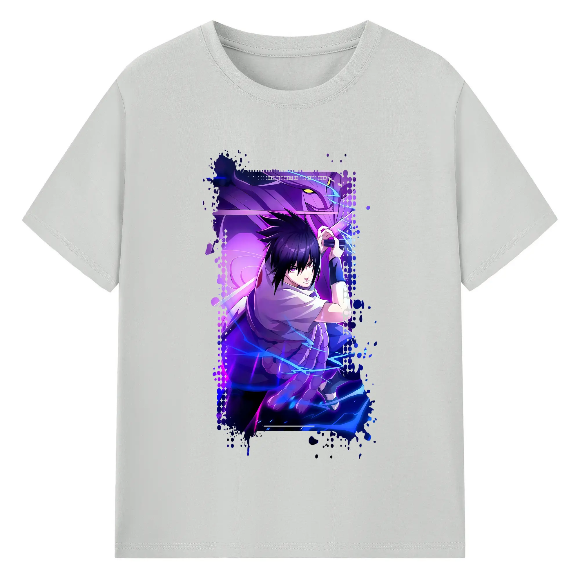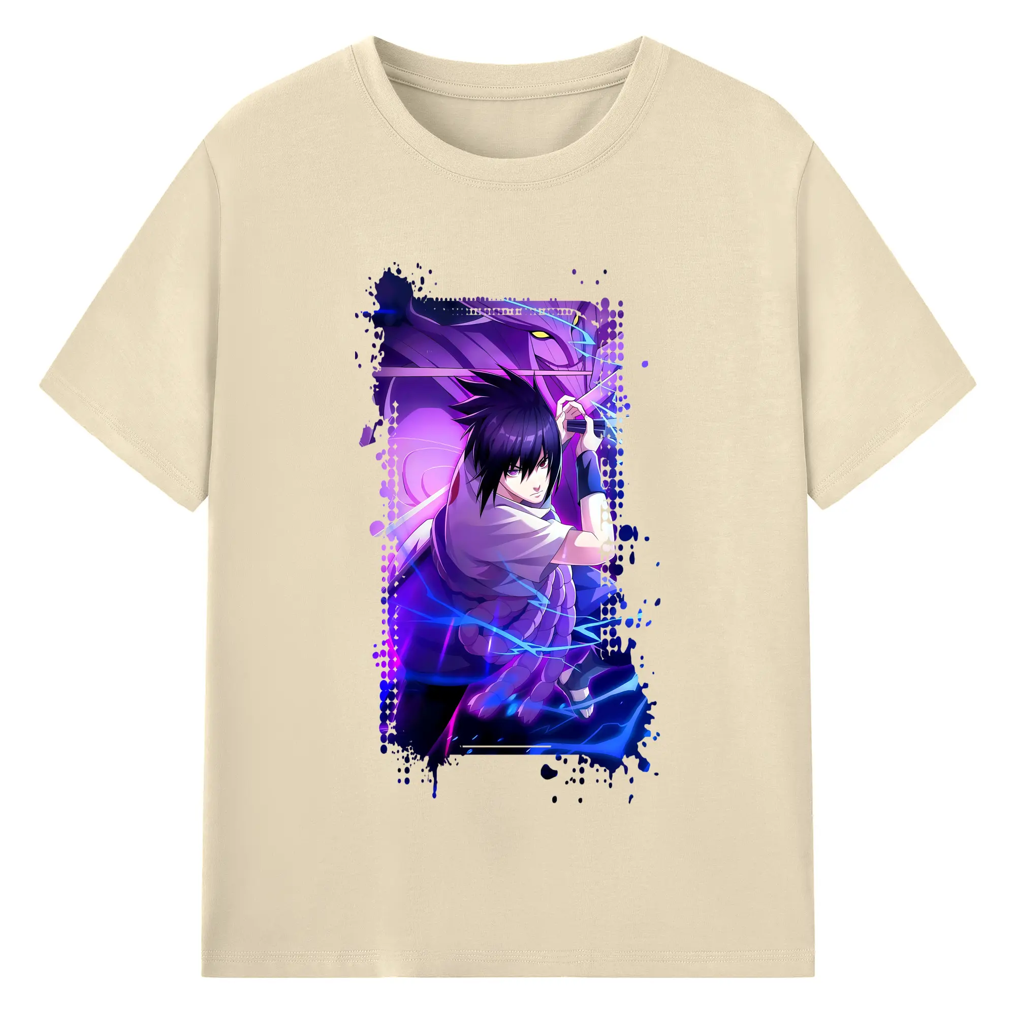 ナルト グッズ うちは サスケ - 綿100% 半袖Tシャツ ・ バックプリント ・ 快適 通気性 ・ 日常使い 散歩 スポーツ用