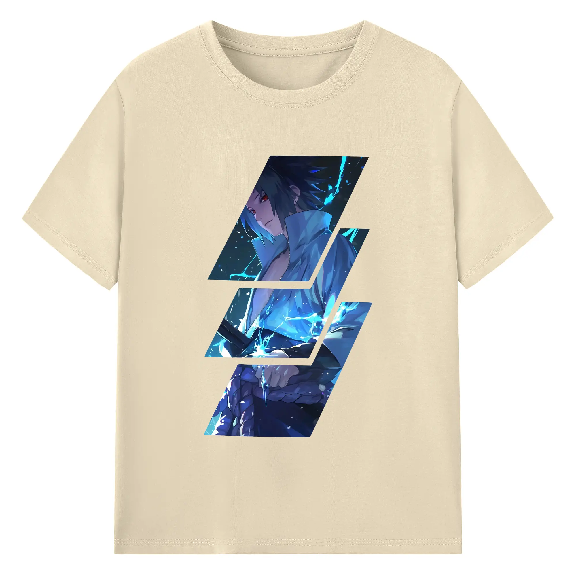 ナルト グッズ うちは サスケ - 綿100% ヴィンテージ風 半袖Tシャツ ・ フロントプリント ・ 柔らか肌触り ・ 通気性 快適 ・ スポーツ カジュアル 外出用