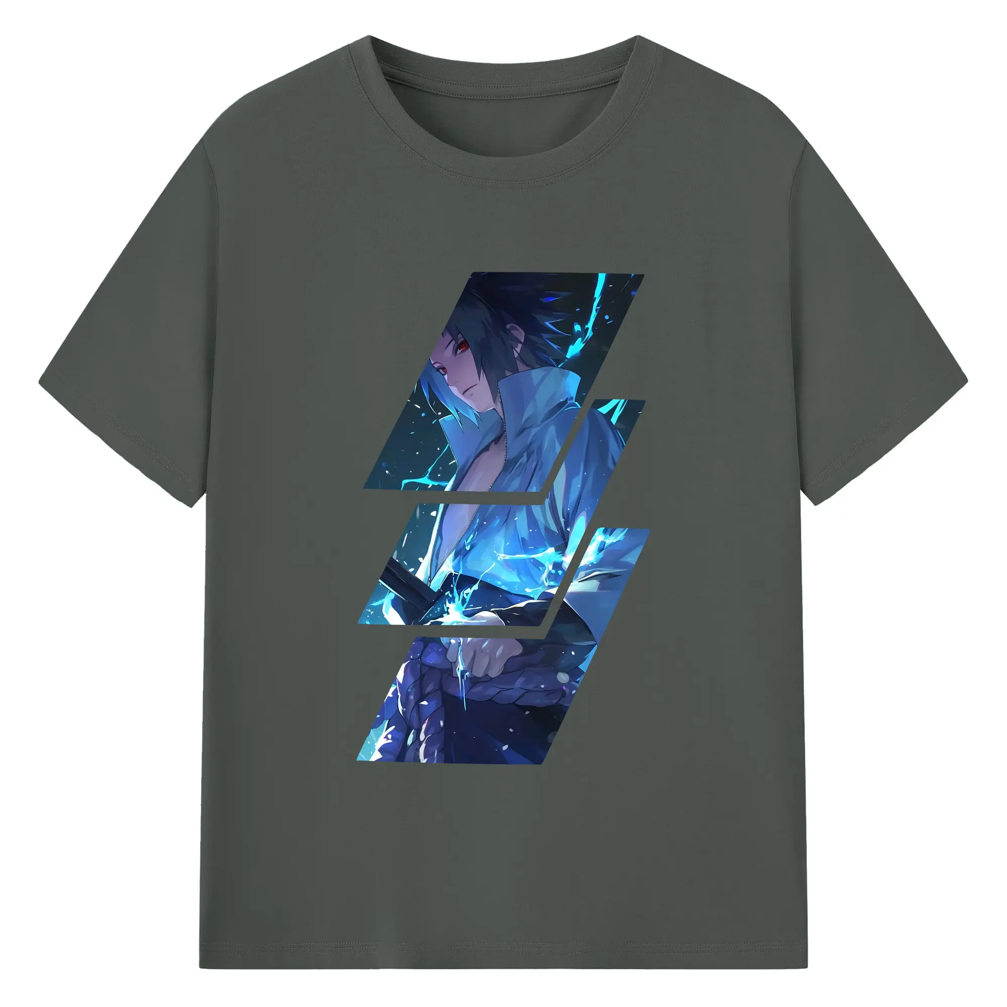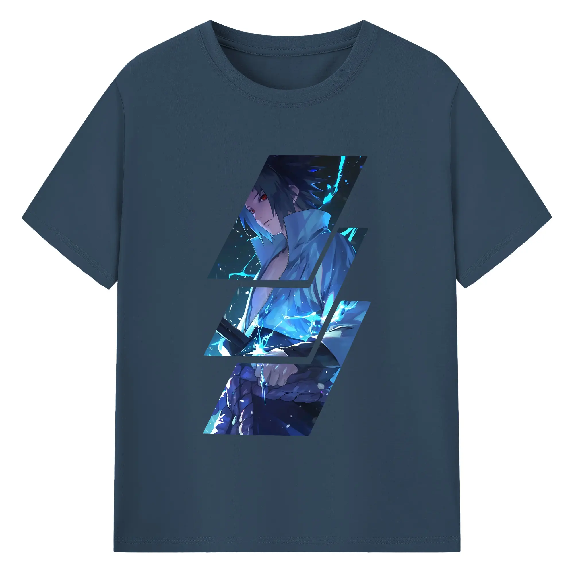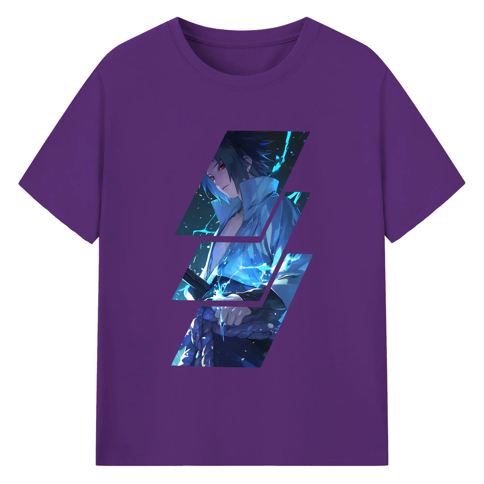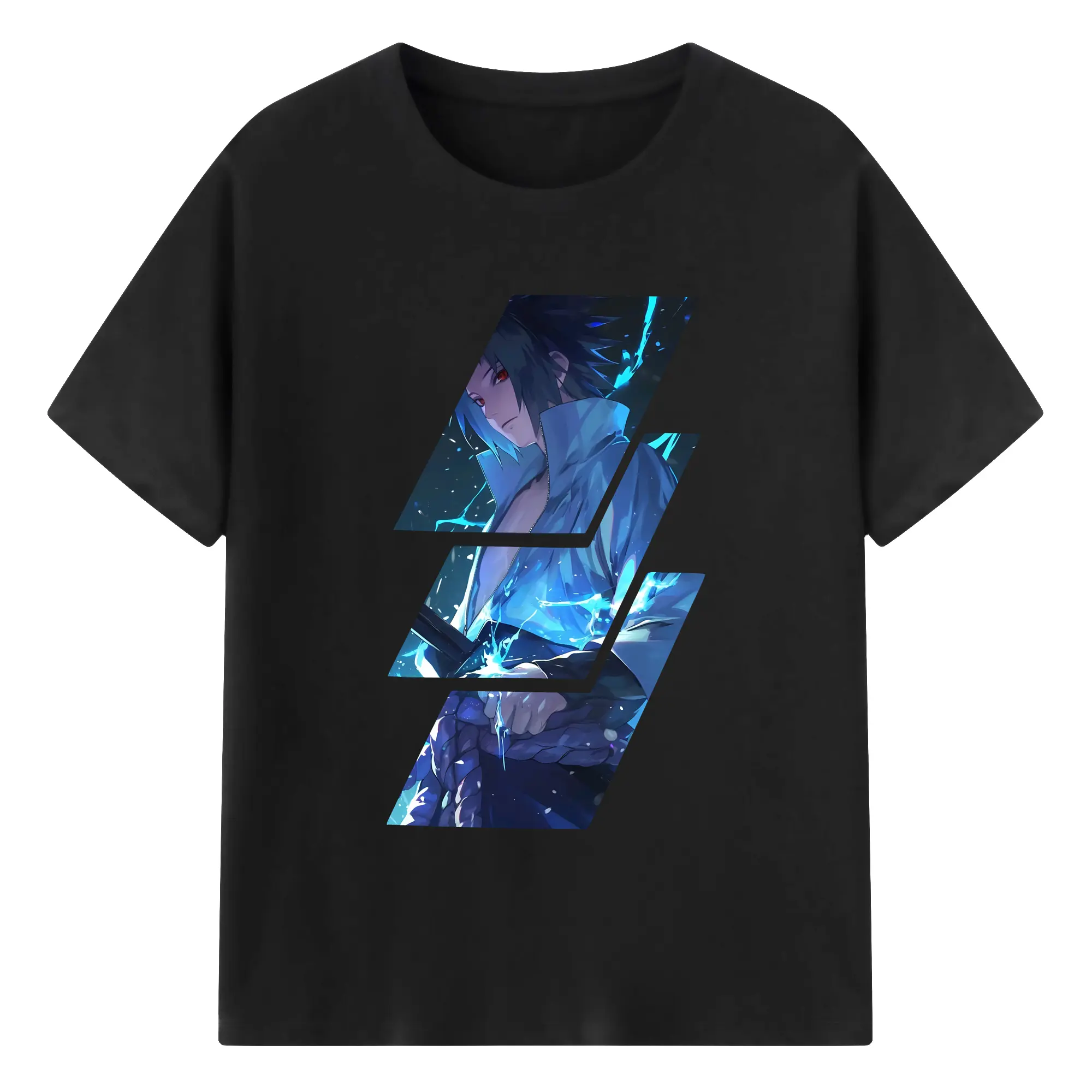 ナルト グッズ うちは サスケ - 綿100% 半袖Tシャツ ・ バックプリント ・ 快適 通気性 ・ 日常使い 散歩 スポーツ用