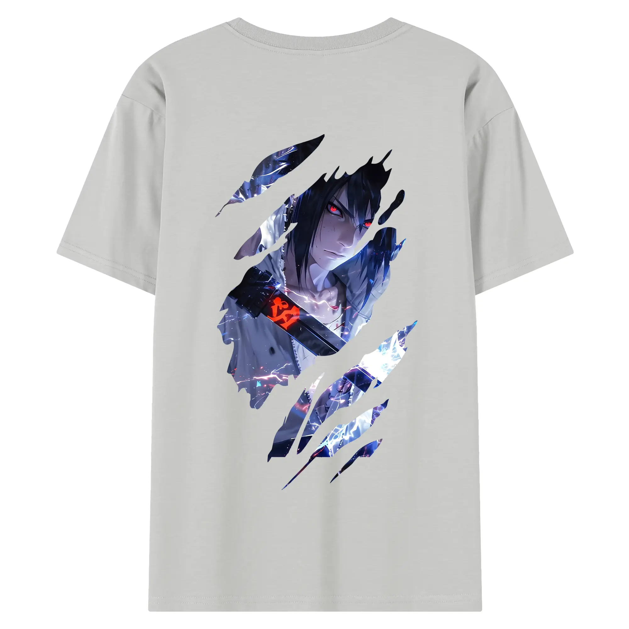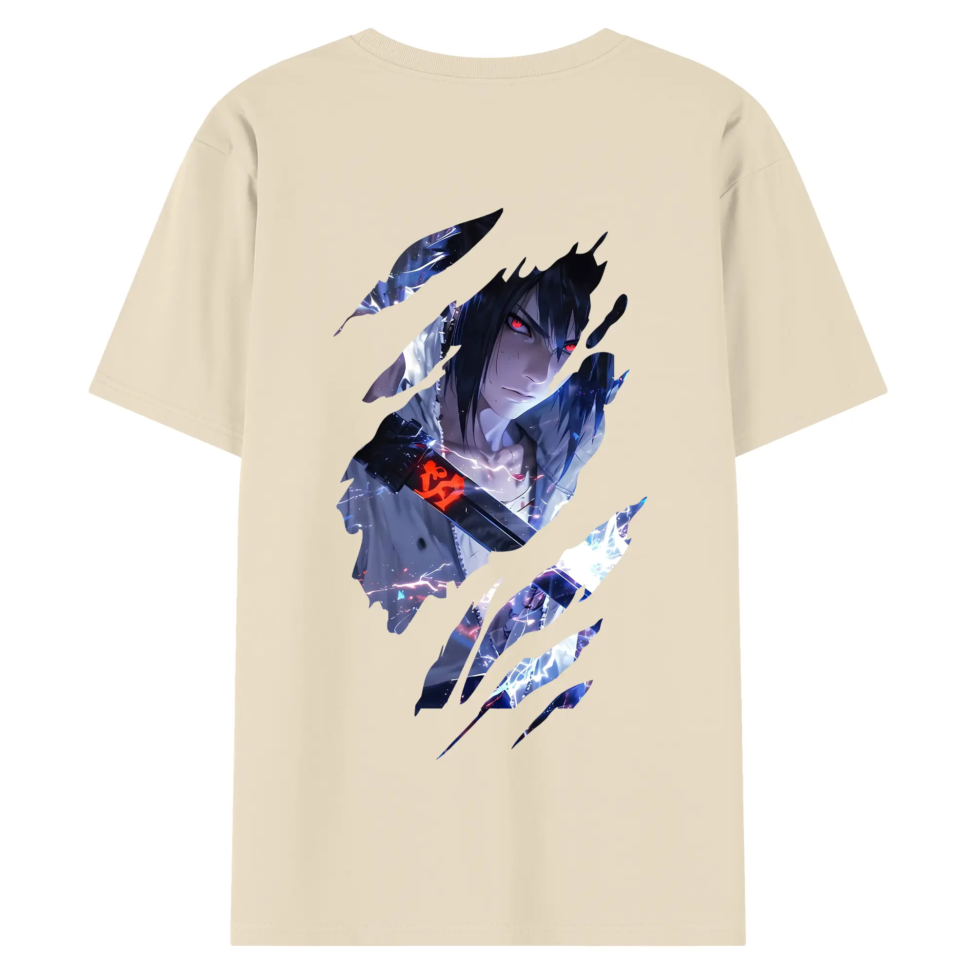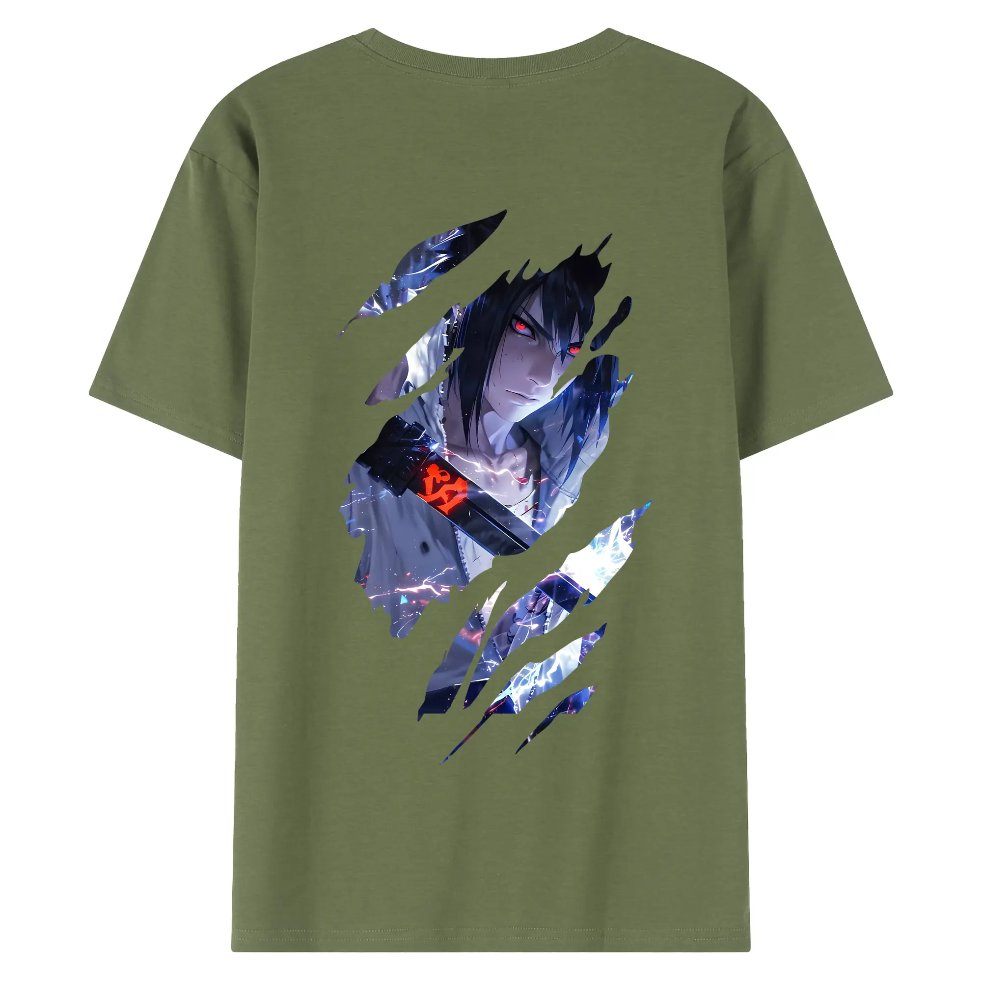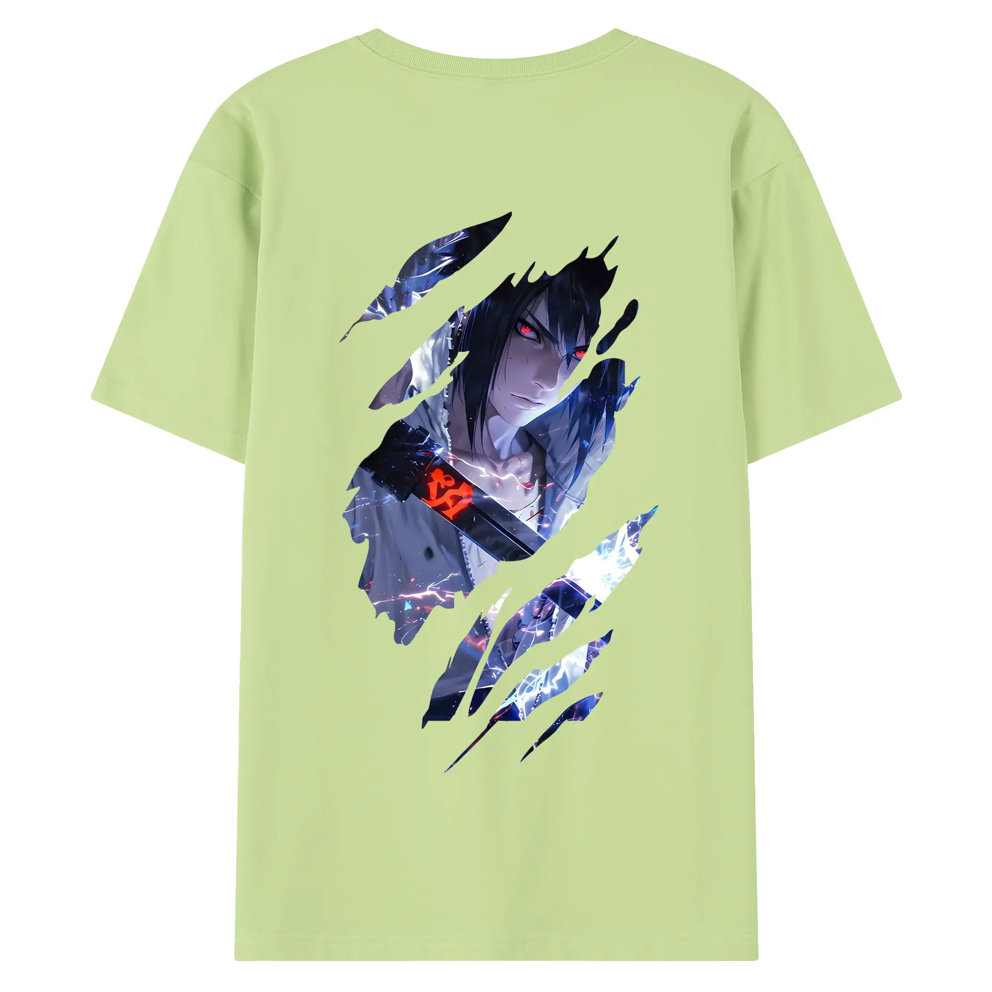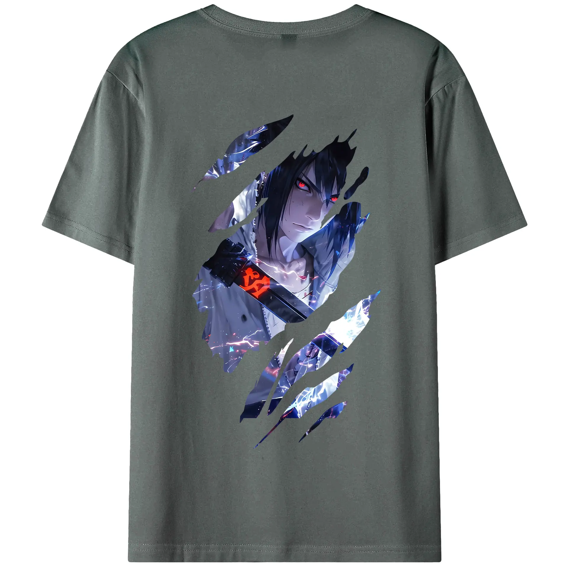 ナルト グッズ うちは サスケ - 綿100% ヴィンテージ風 半袖Tシャツ ・ 背面プリント ・ 柔らか肌触り ・ 通気性 快適 ・ スポーツ カジュアル 外出用