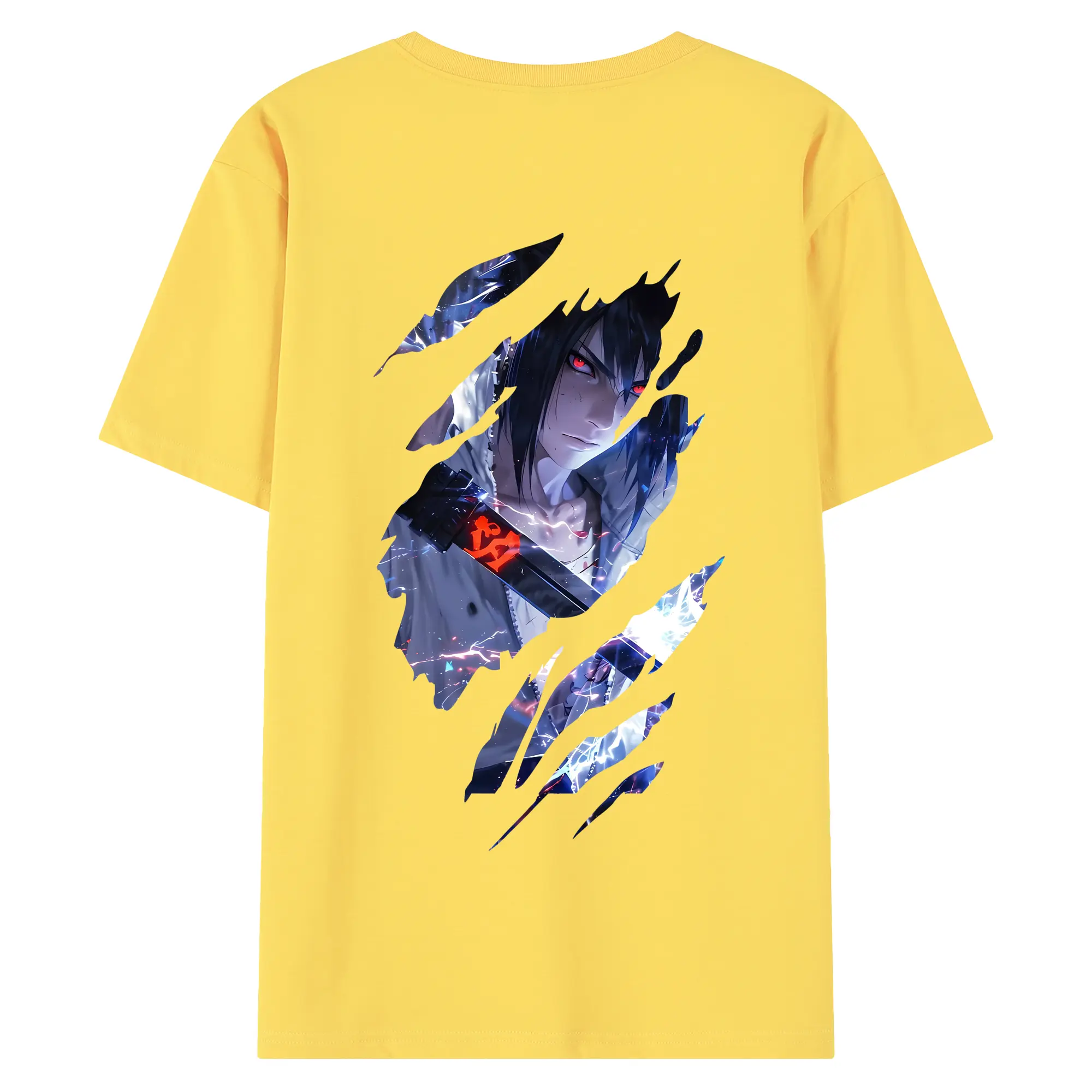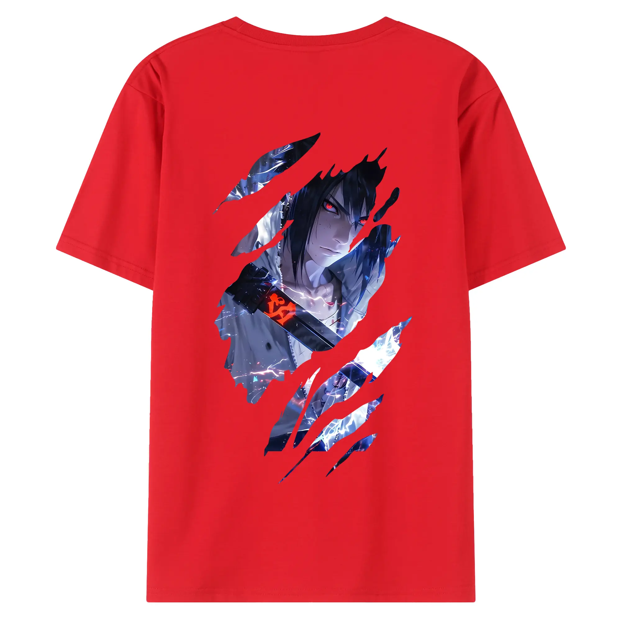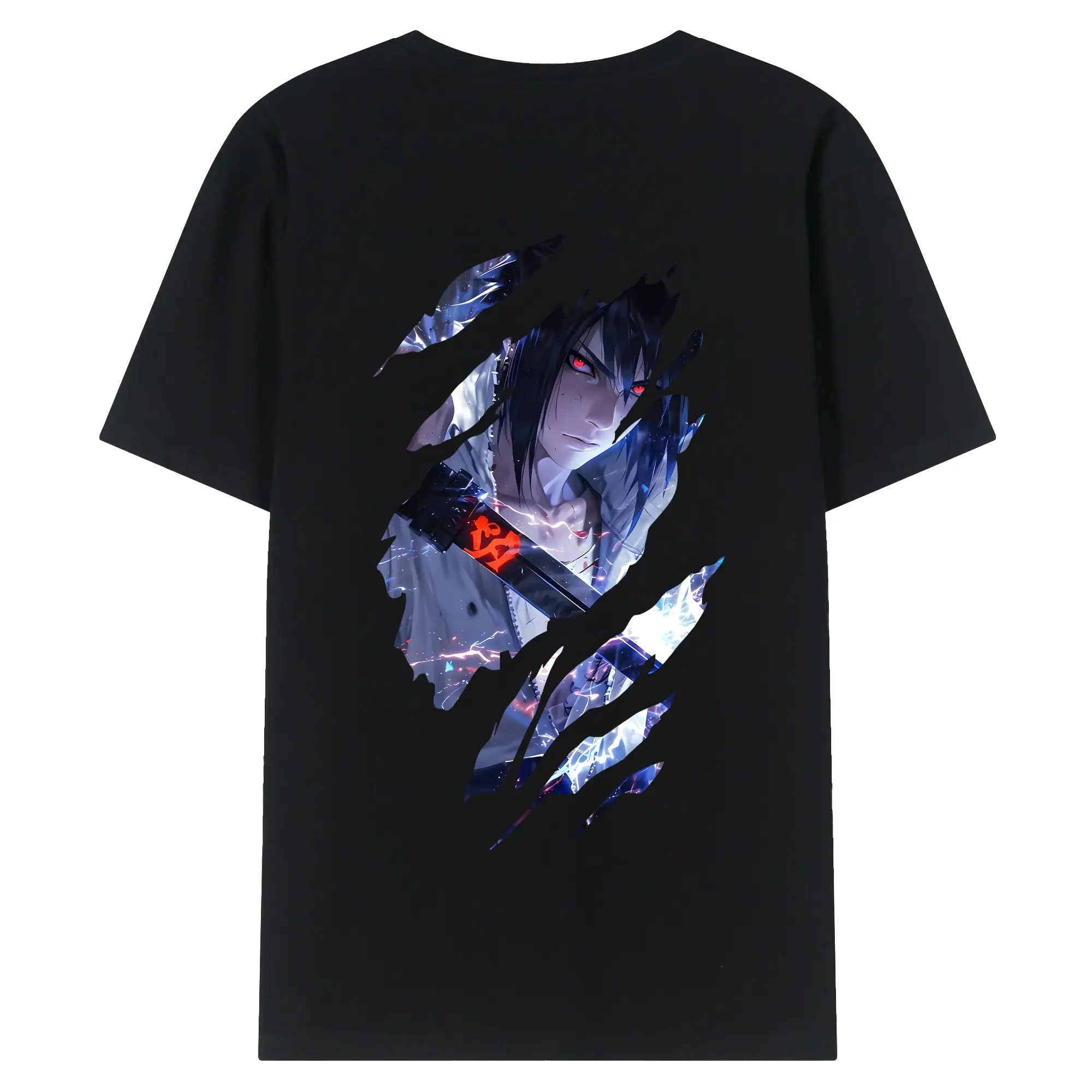 ナルト グッズ うちは サスケ - 綿100% 半袖Tシャツ ・ フロントプリント ・ 快適 通気性 ・ 日常使い 散歩 スポーツ用