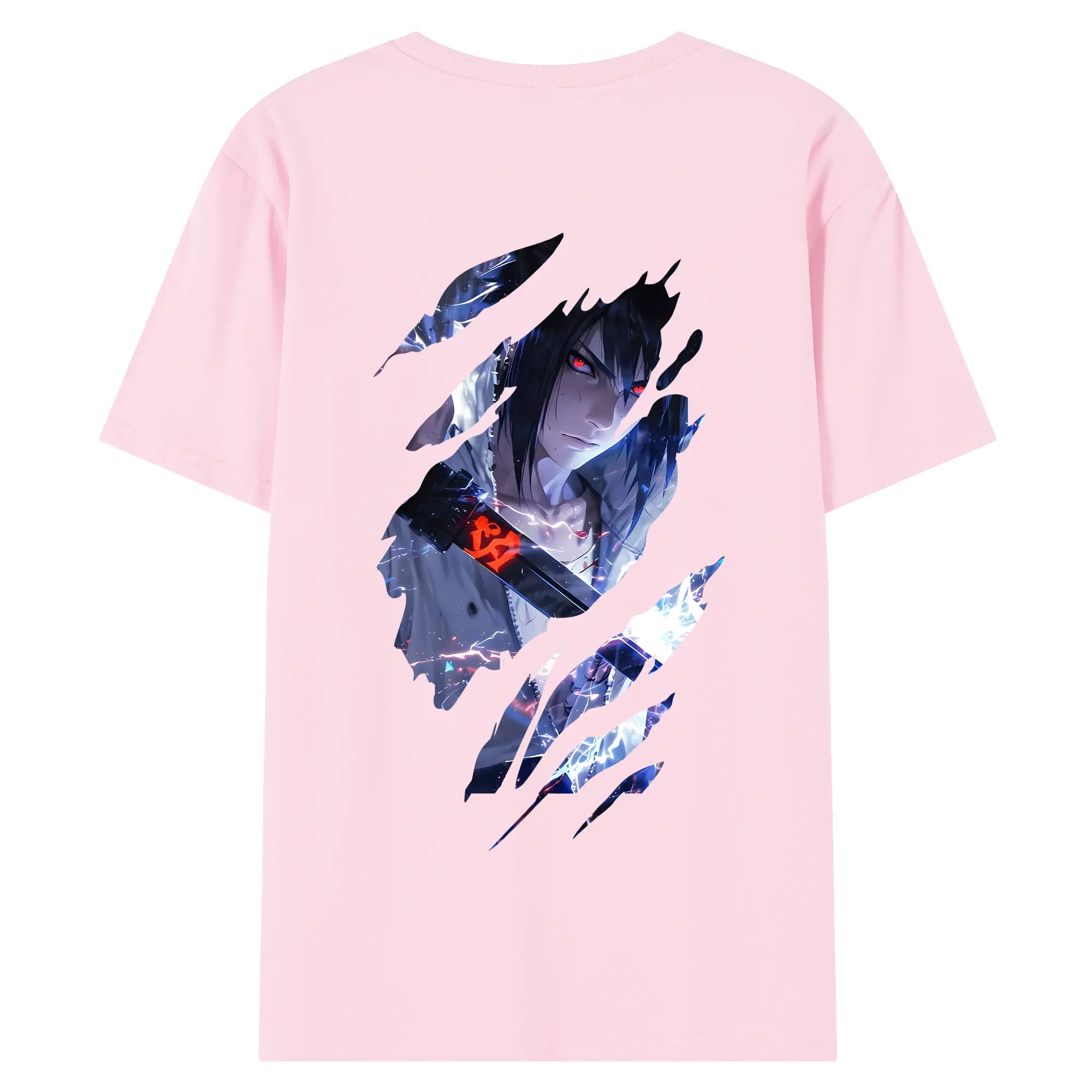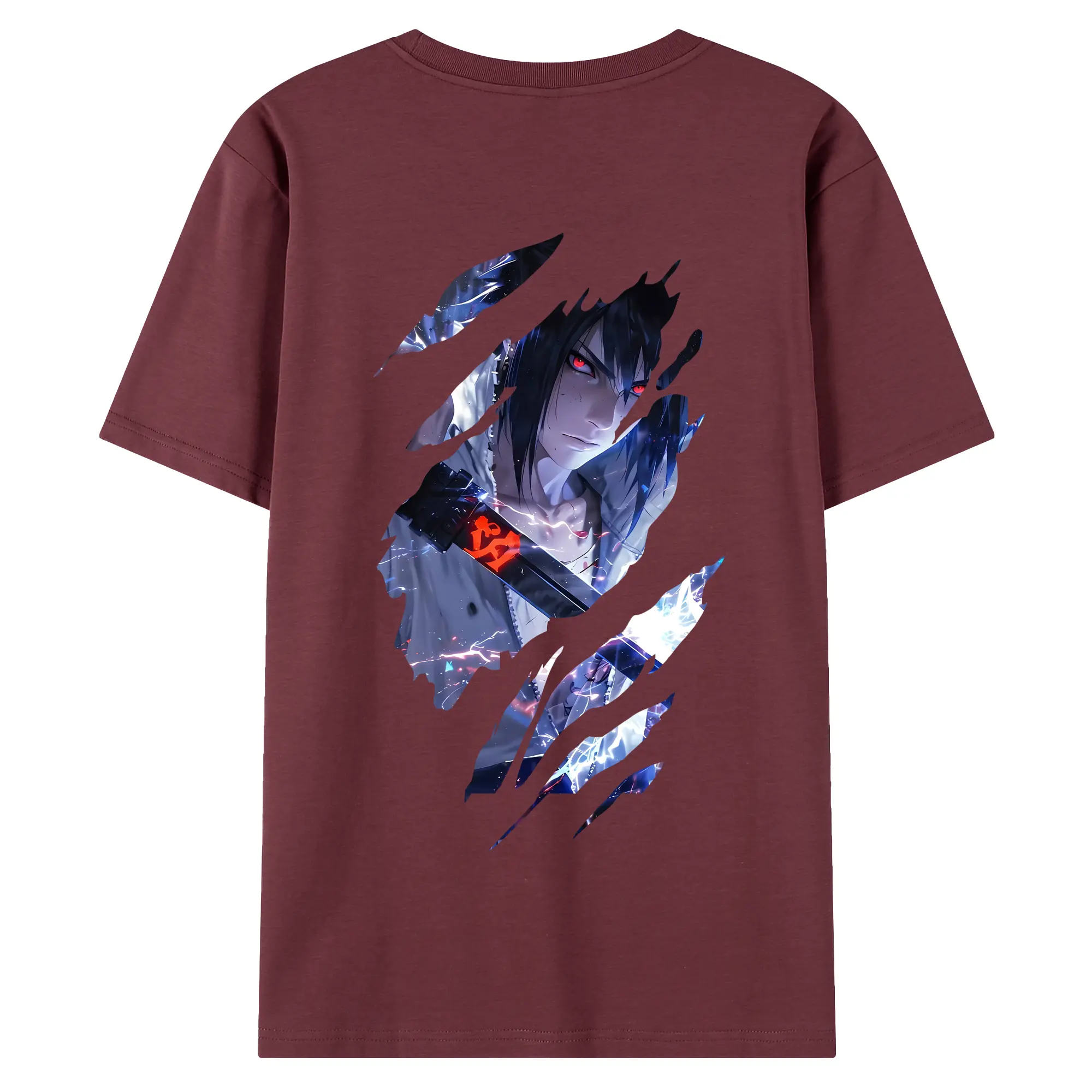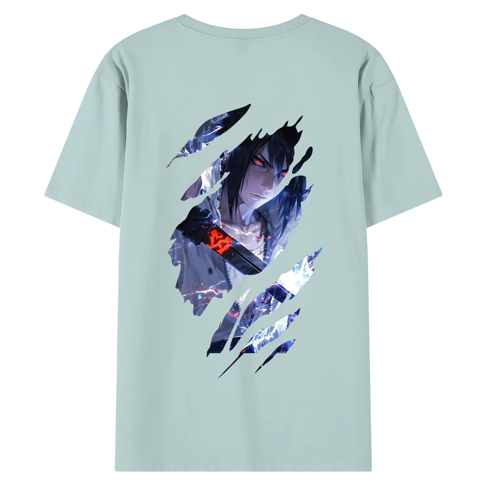ナルト グッズ うちは サスケ - 綿100% 半袖Tシャツ ・ フロントプリント ・ 快適 通気性 ・ 日常使い 散歩 スポーツ用