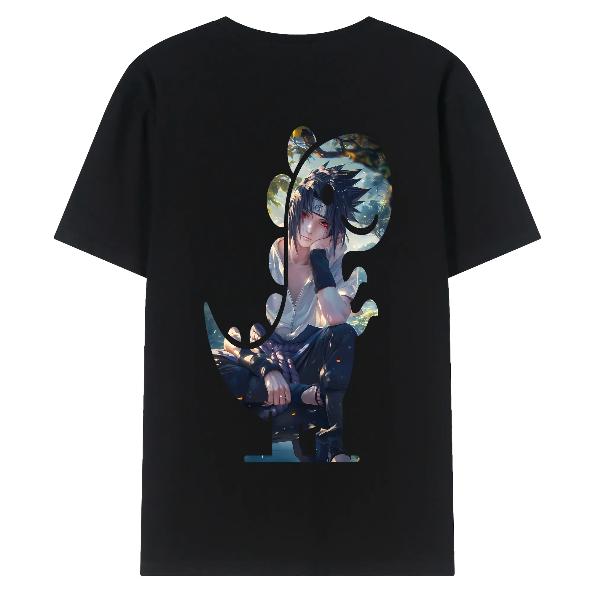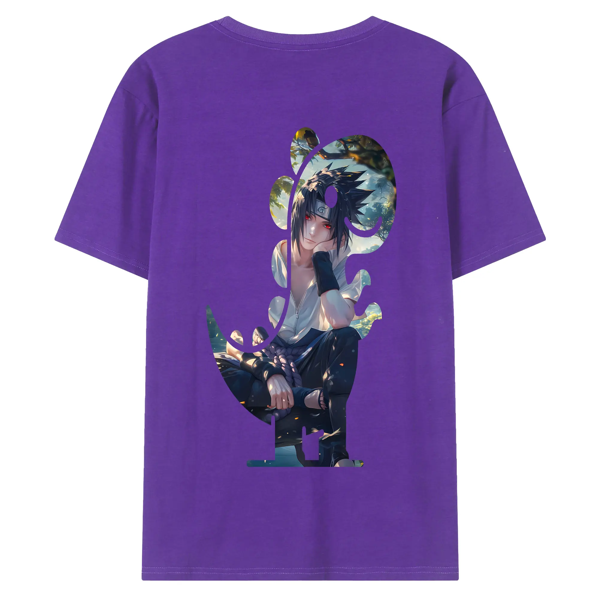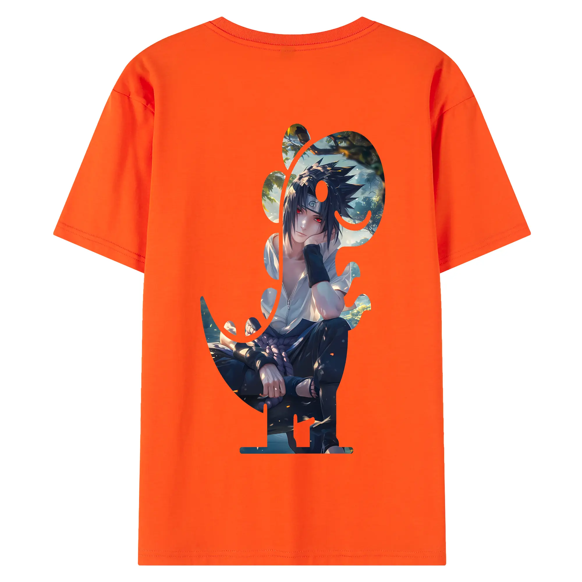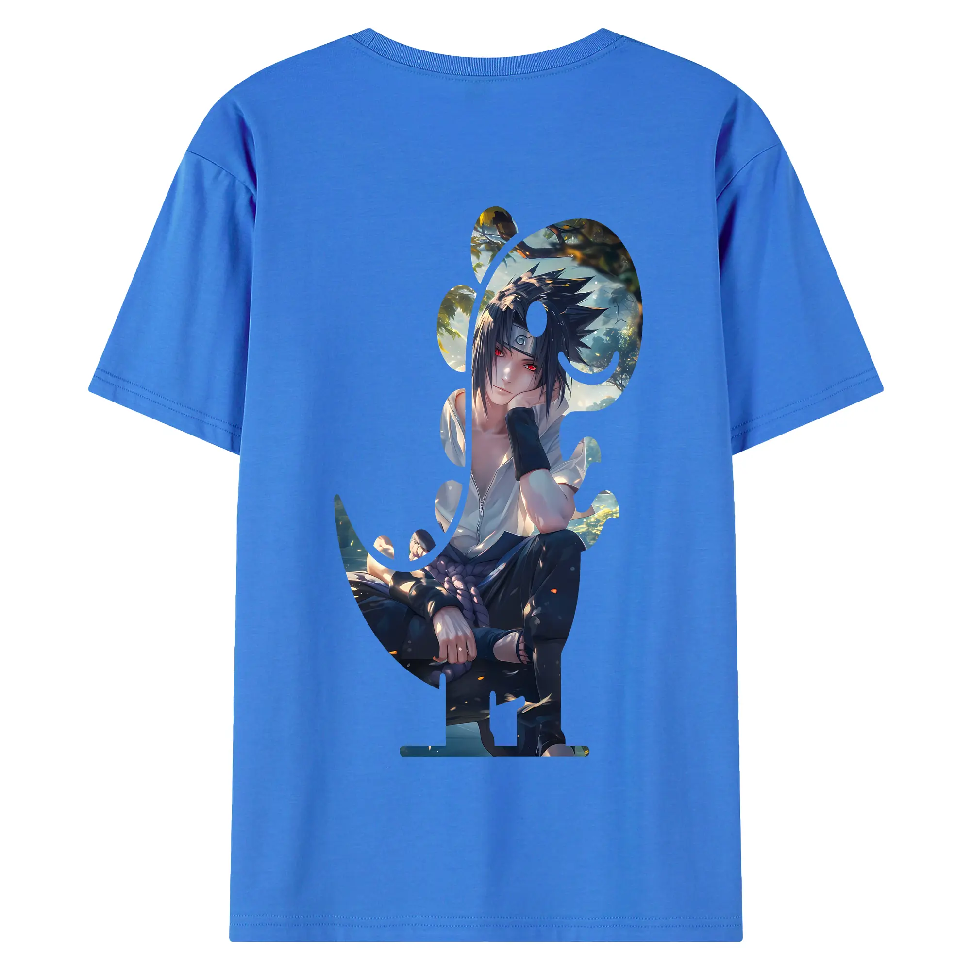 ナルト グッズ うちは サスケ - 綿100% 半袖Tシャツ ・ フロントプリント ・ 快適 通気性 ・ 日常使い 散歩 スポーツ用