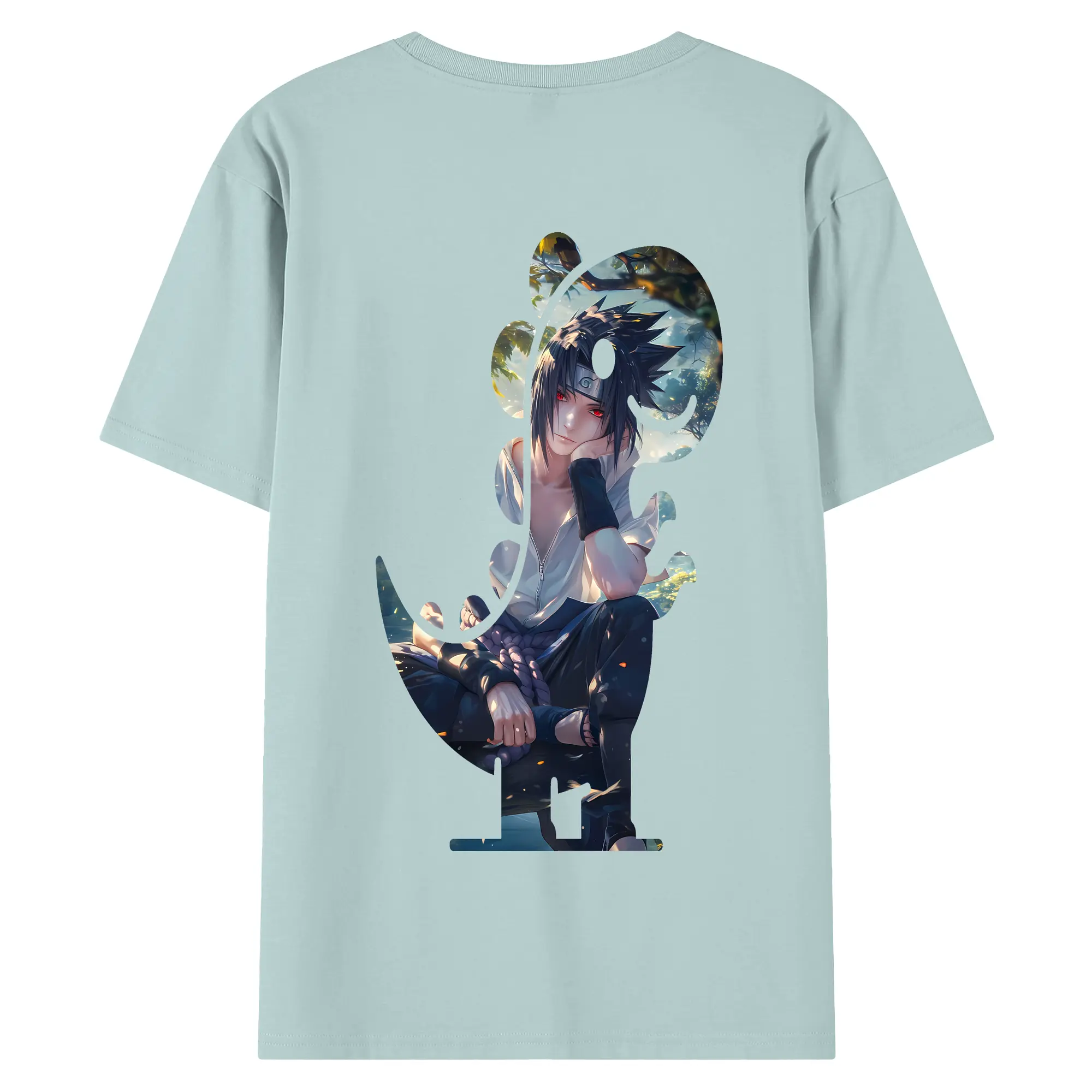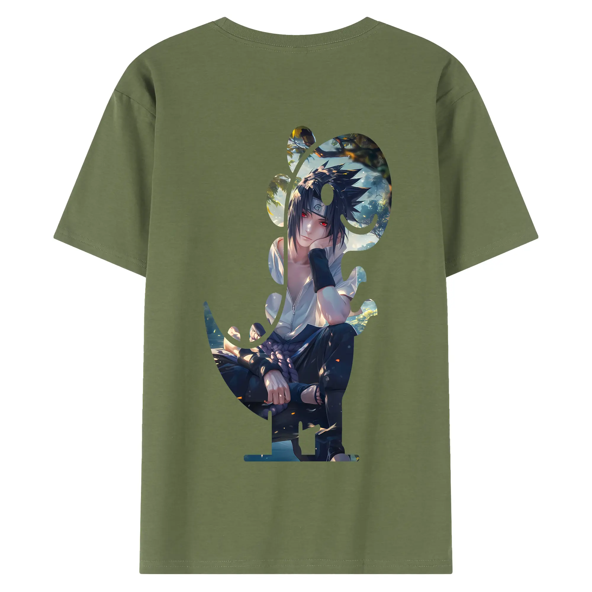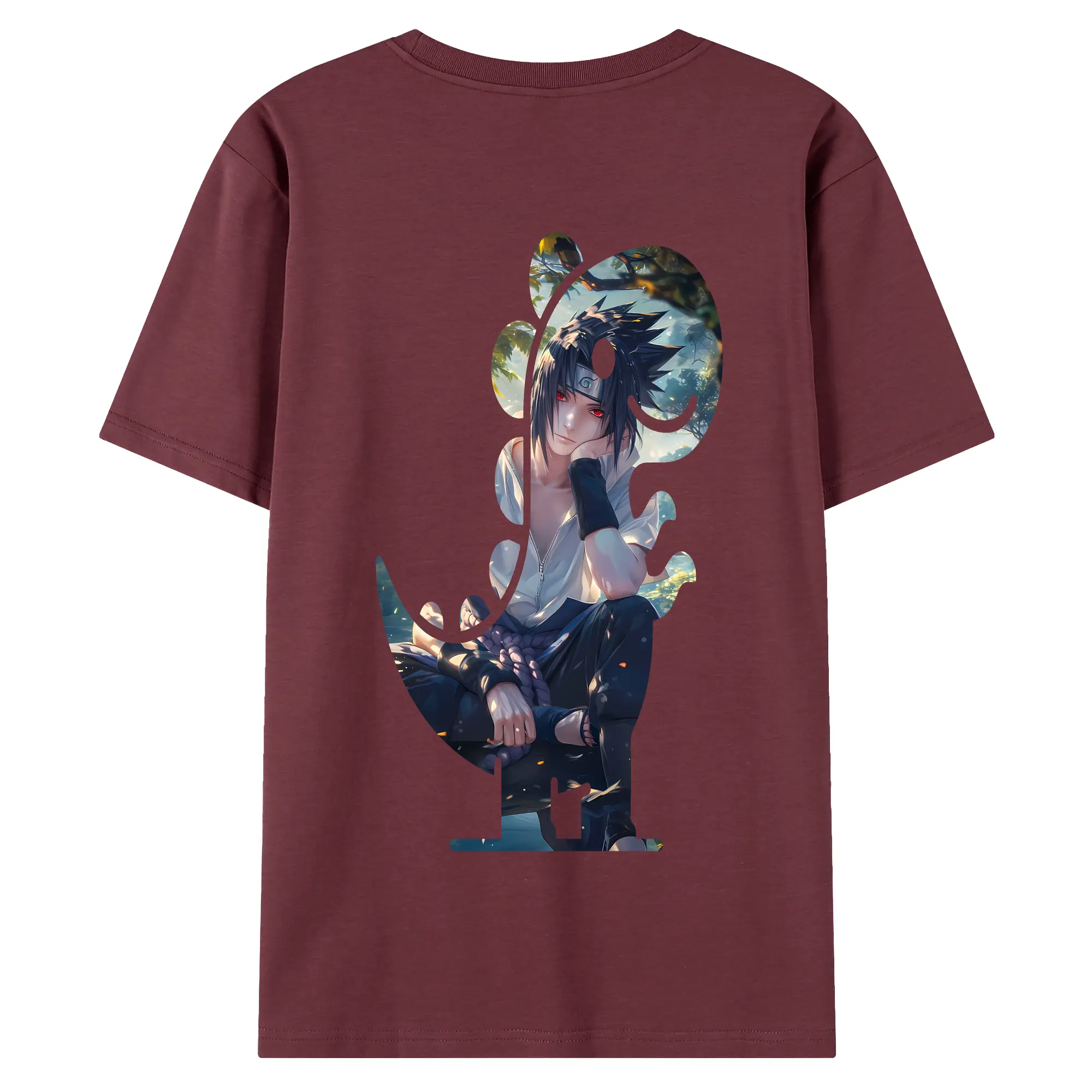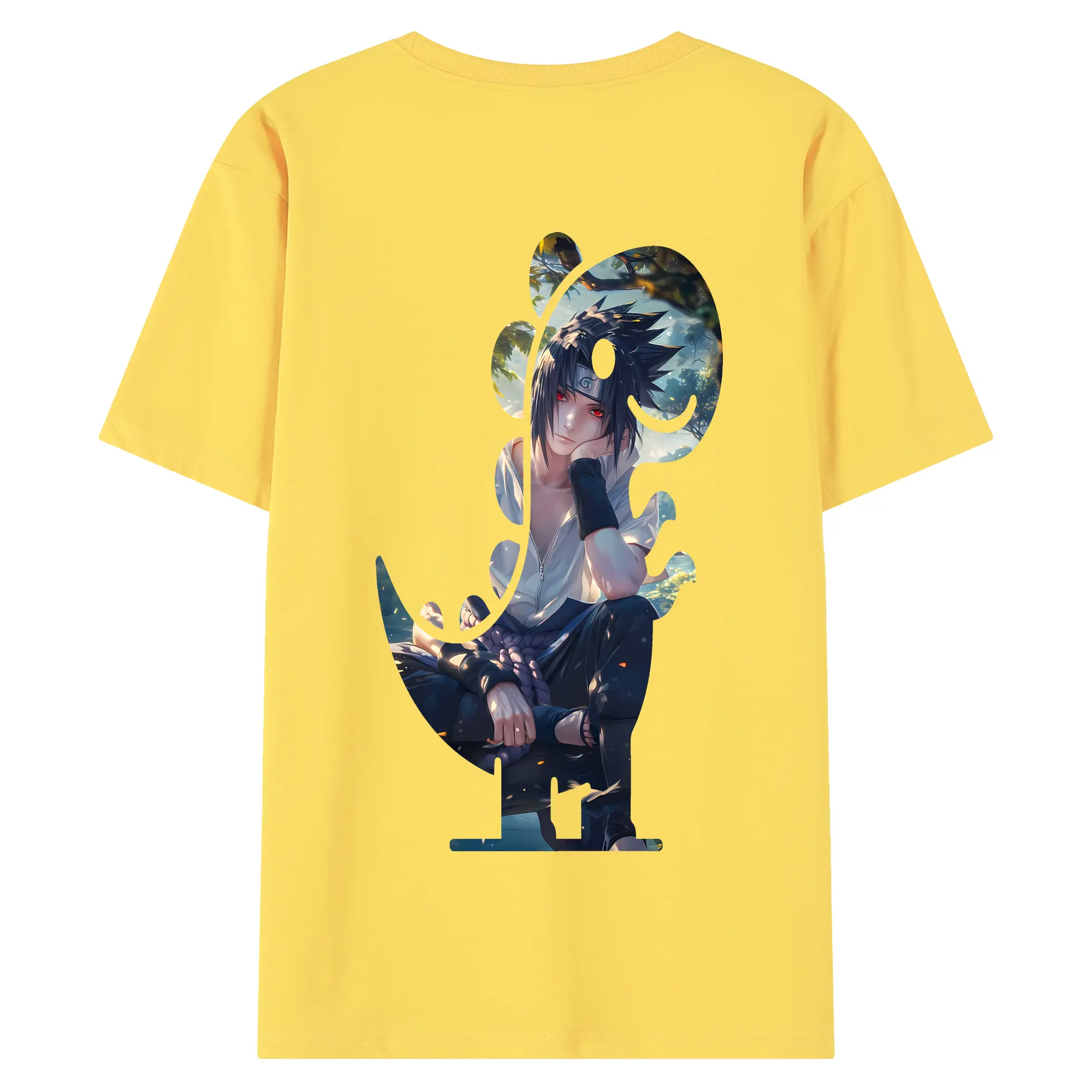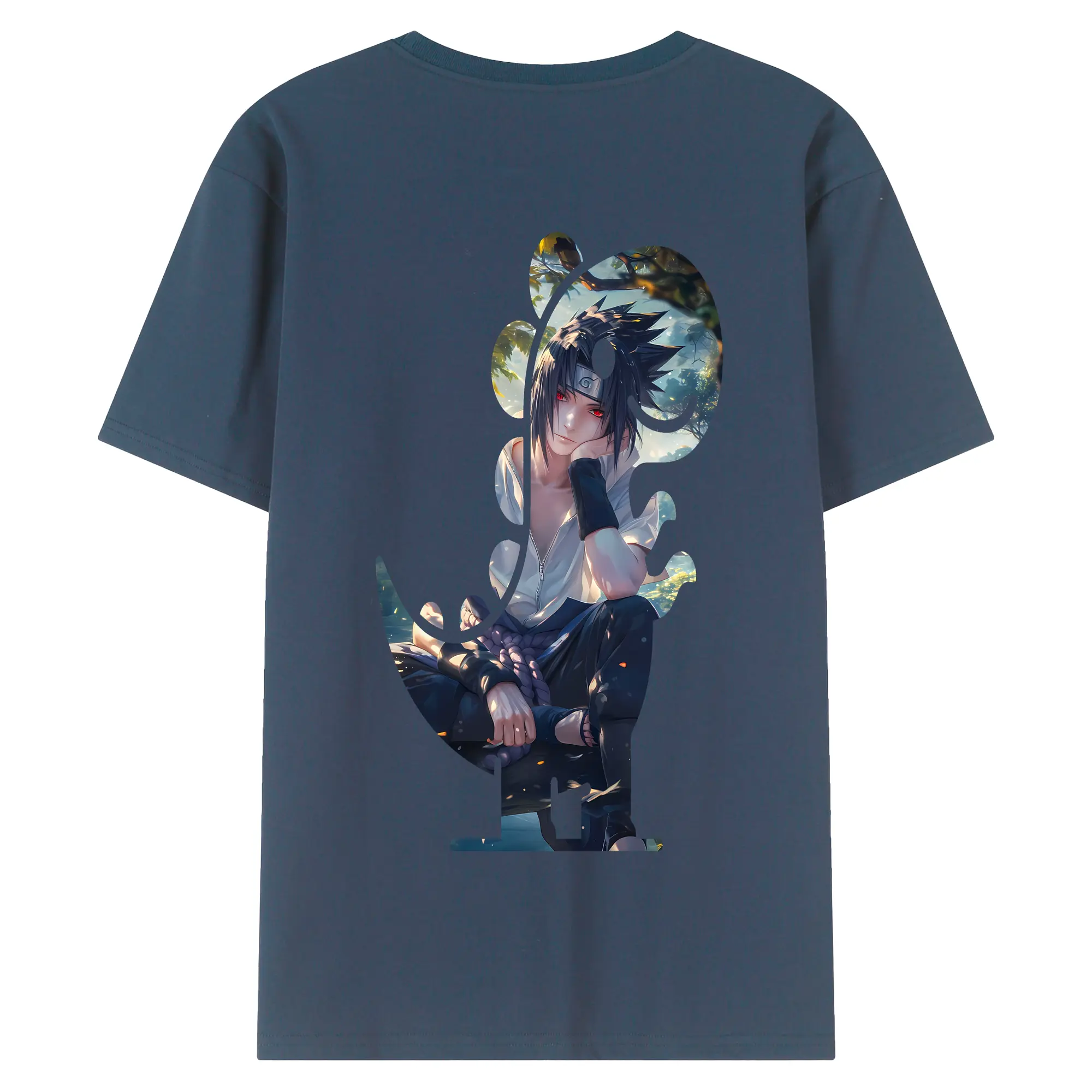 ナルト グッズ うちは サスケ - 綿100% 半袖Tシャツ ・ フロントプリント ・ 快適 通気性 ・ 日常使い 散歩 スポーツ用