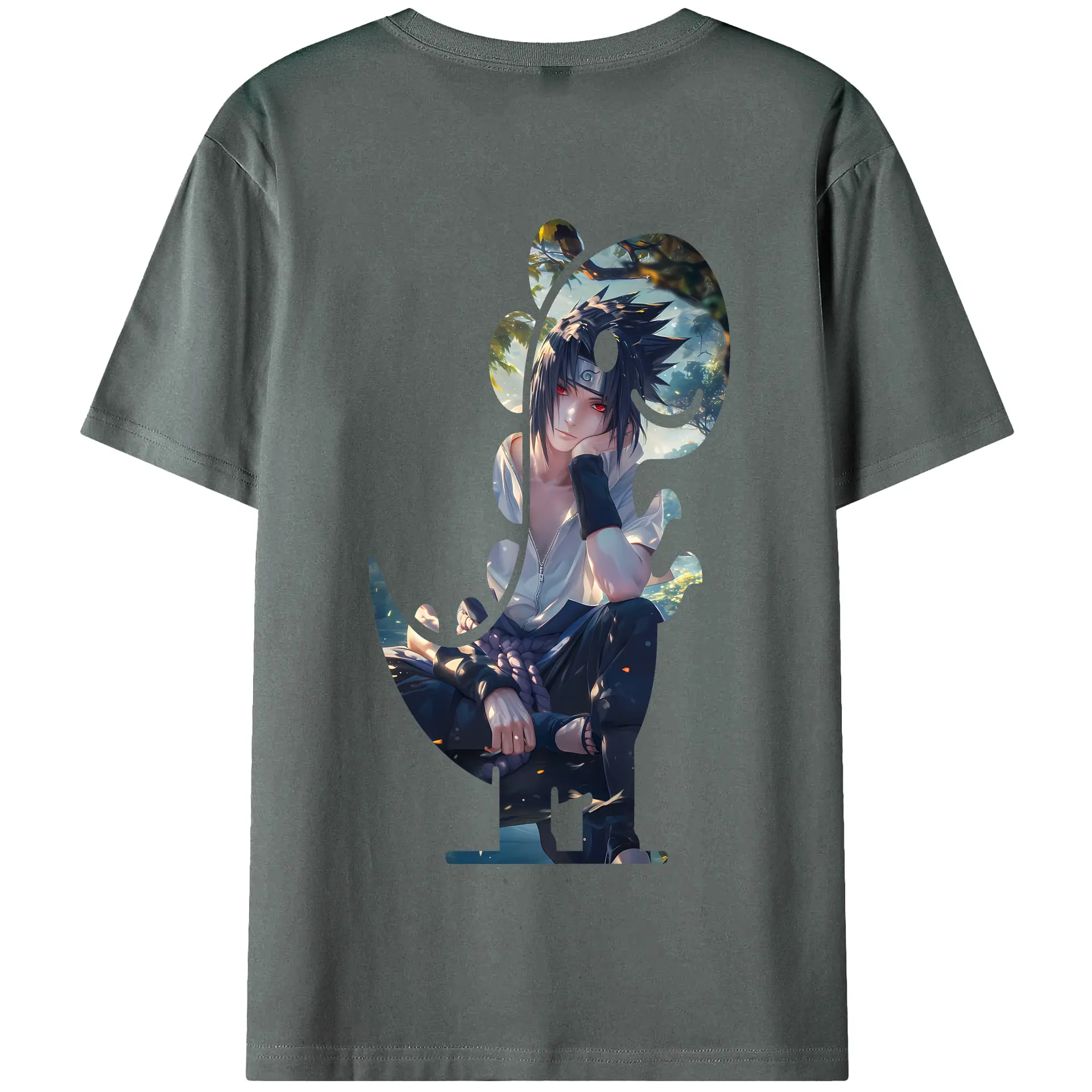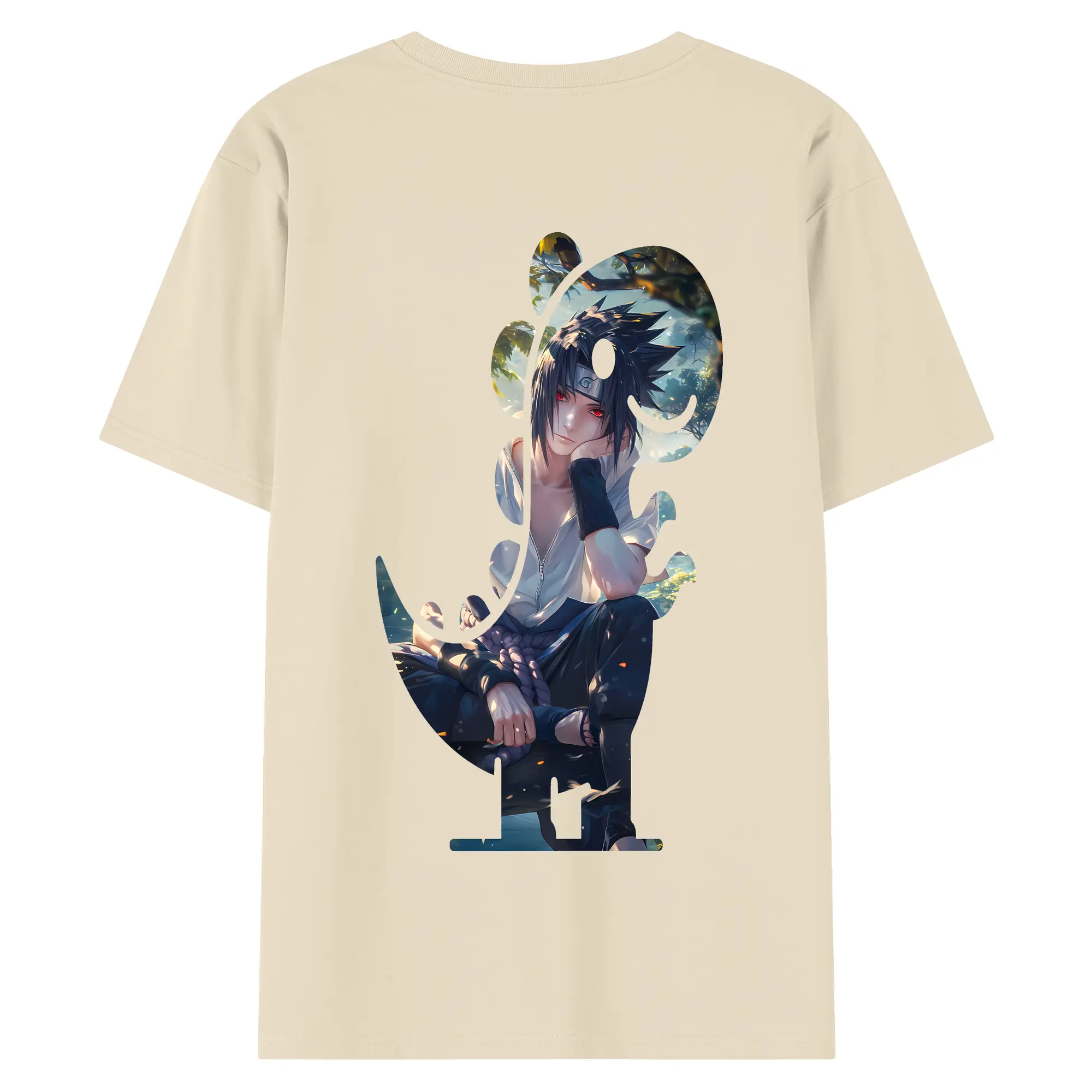 ナルト グッズ うちは サスケ - 綿100% ヴィンテージ風 半袖Tシャツ ・ 背面プリント ・ 柔らか肌触り ・ 通気性 快適 ・ スポーツ カジュアル 外出用