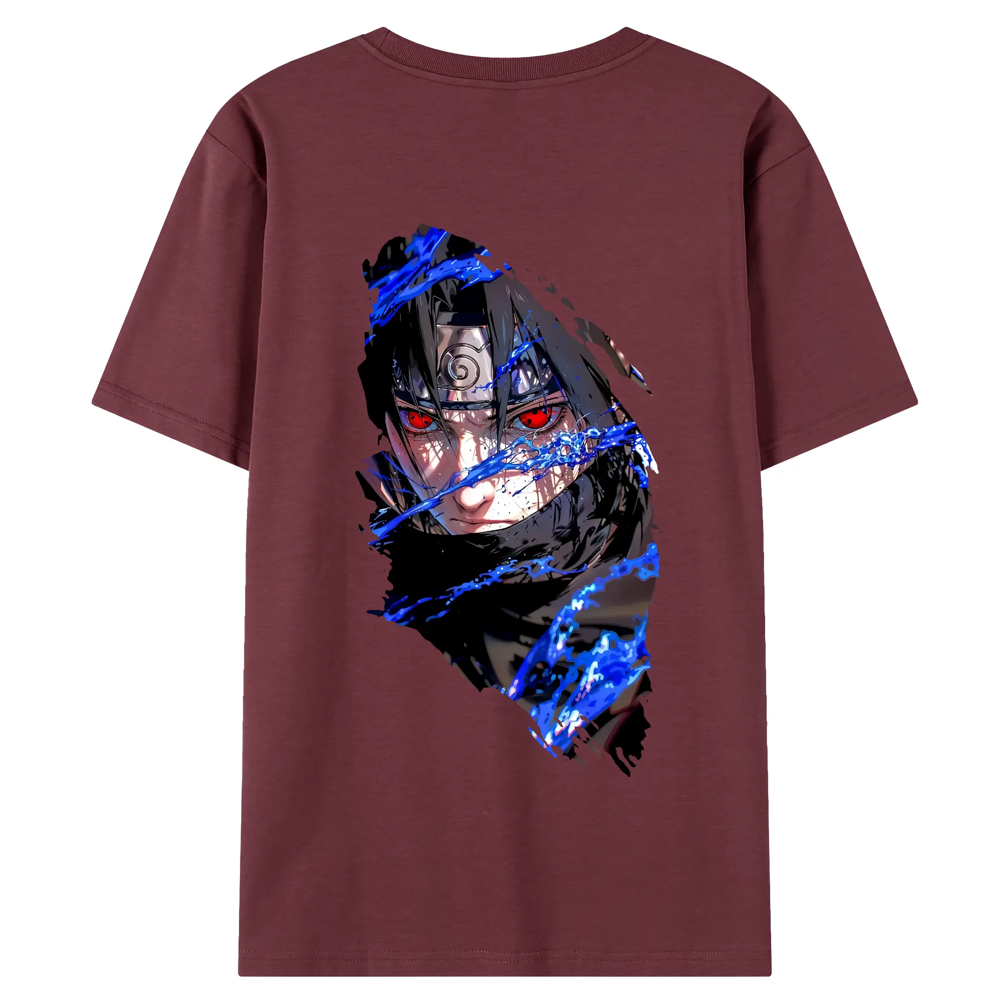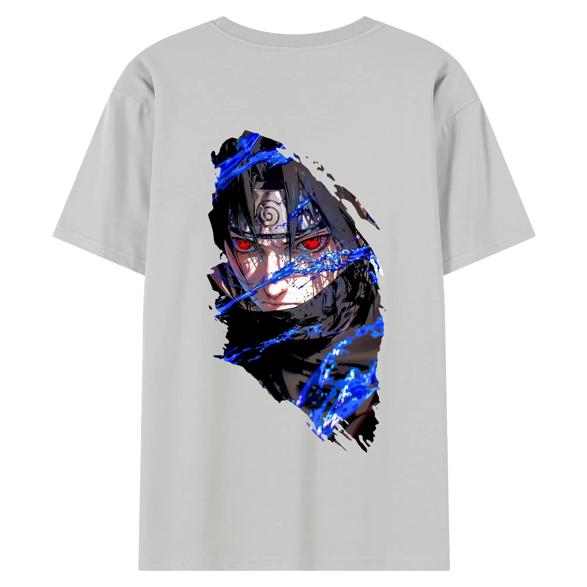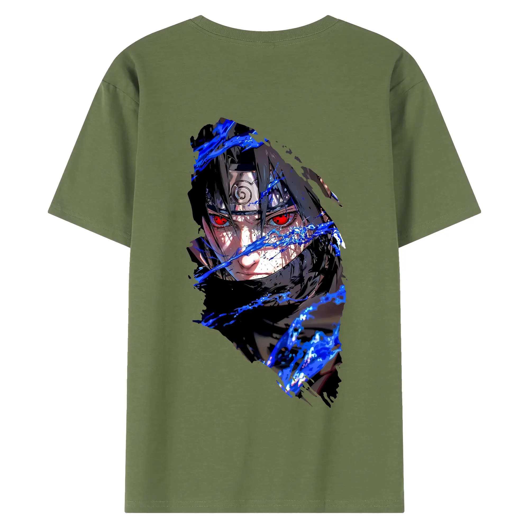 ナルト グッズ うちは サスケ - 綿100% ヴィンテージ風 半袖Tシャツ ・ 背面プリント ・ 柔らか肌触り ・ 通気性 快適 ・ スポーツ カジュアル 外出用