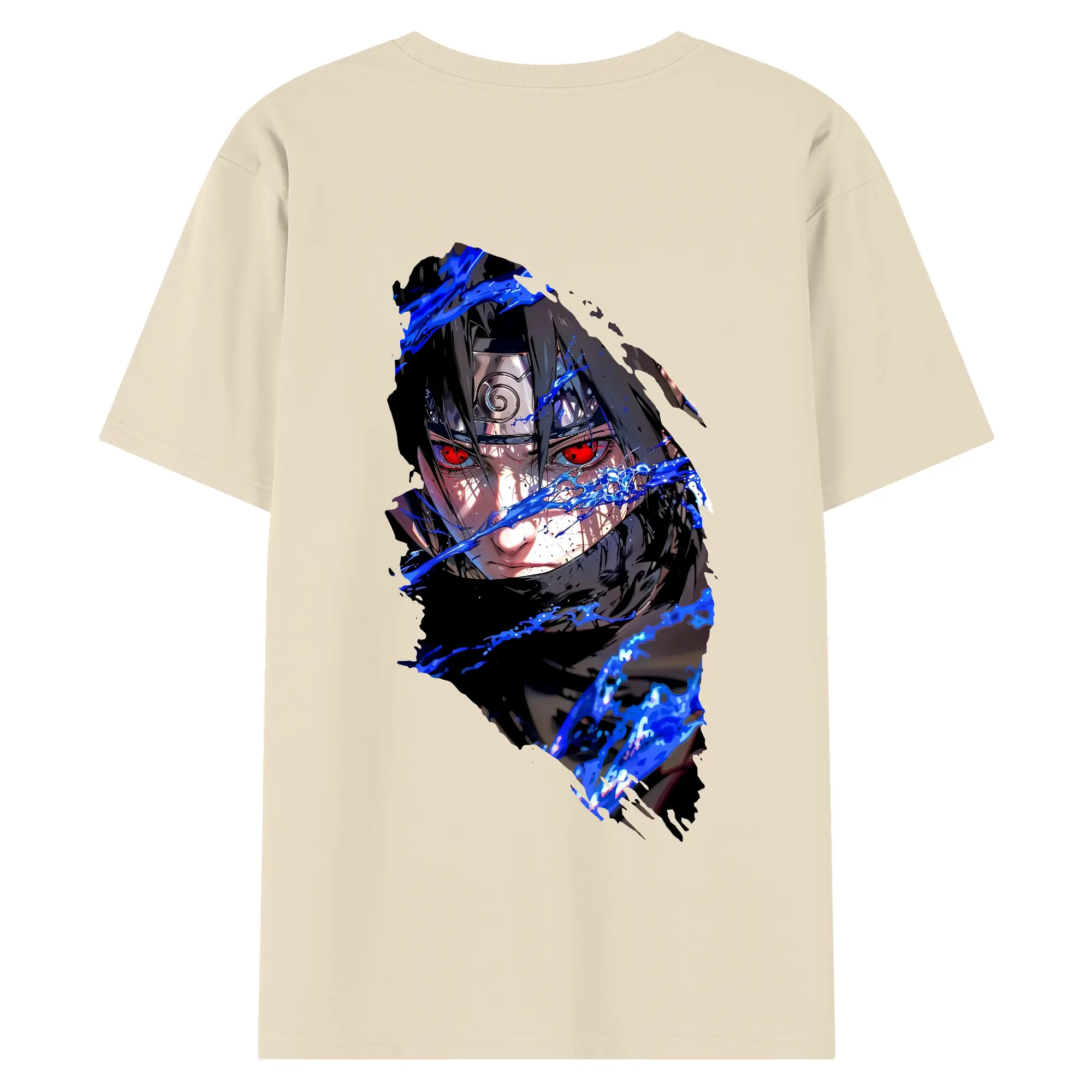 ナルト グッズ うちは サスケ - 綿100% ヴィンテージ風 半袖Tシャツ ・ フロントプリント ・ 柔らか肌触り ・ 通気性 快適 ・ スポーツ カジュアル 外出用