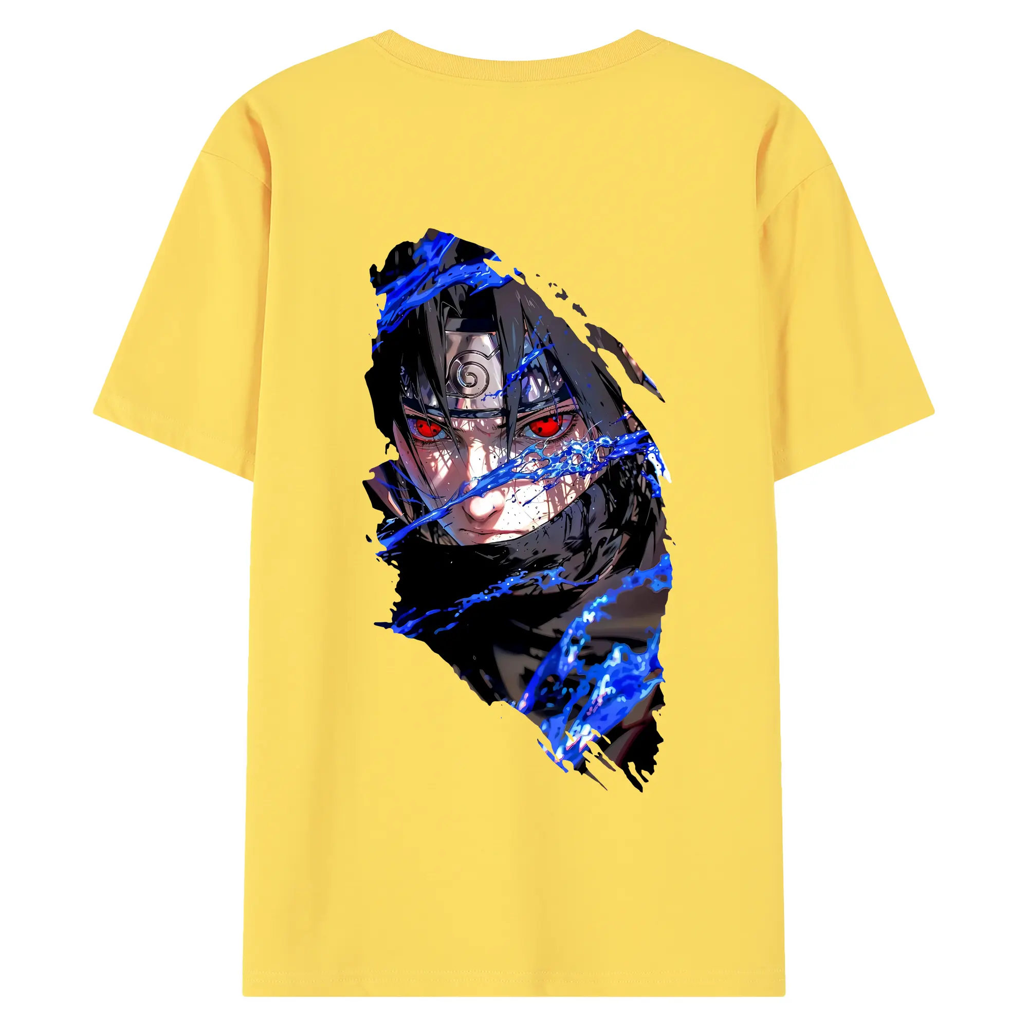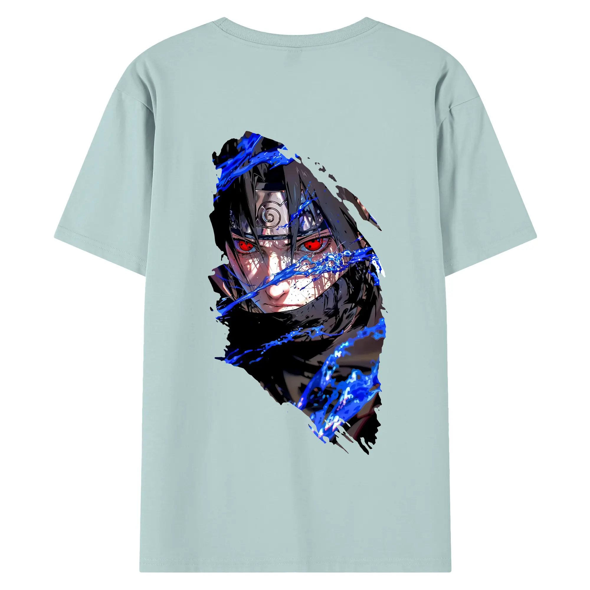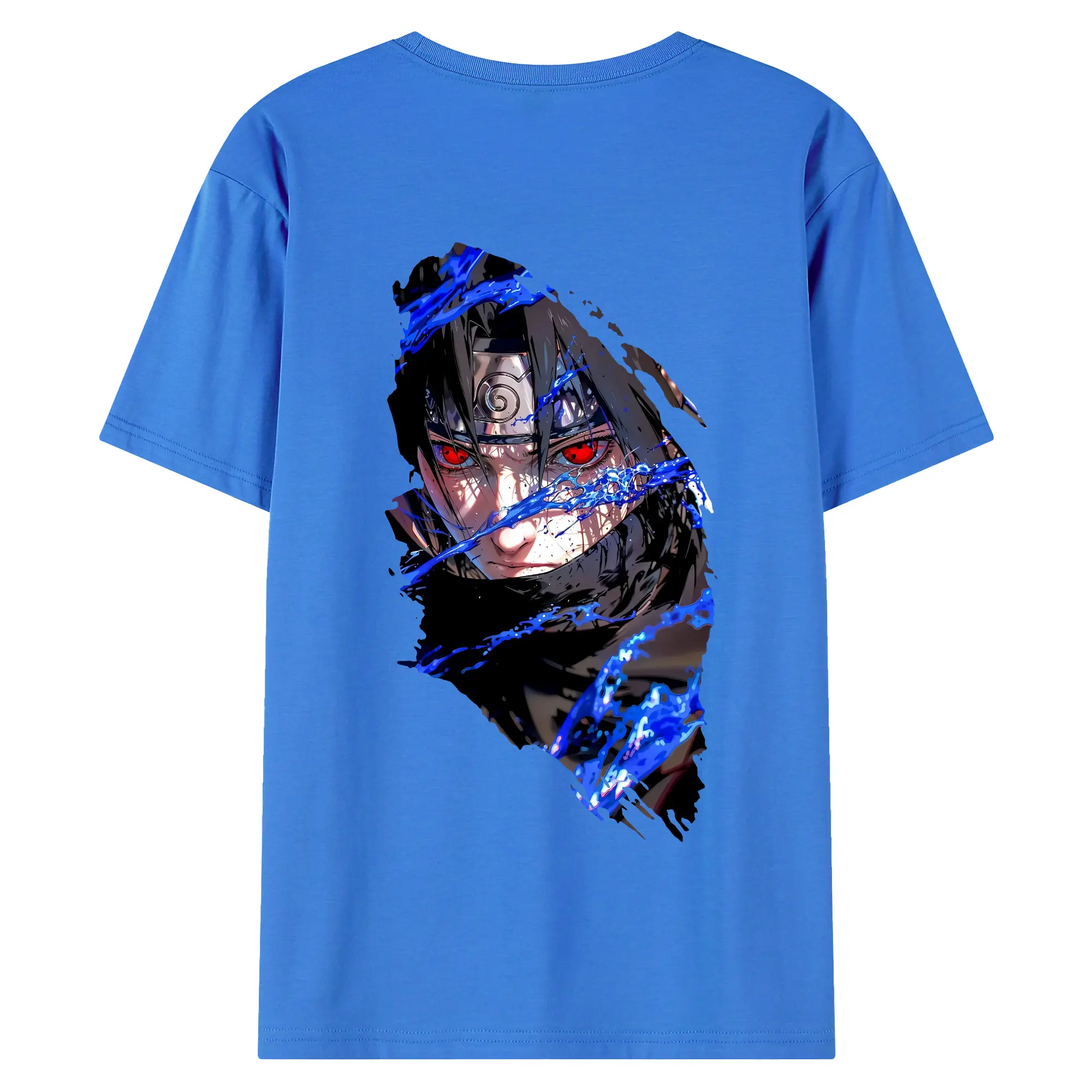 ナルト グッズ うちは サスケ - 綿100% 半袖Tシャツ ・ フロントプリント ・ 快適 通気性 ・ 日常使い 散歩 スポーツ用