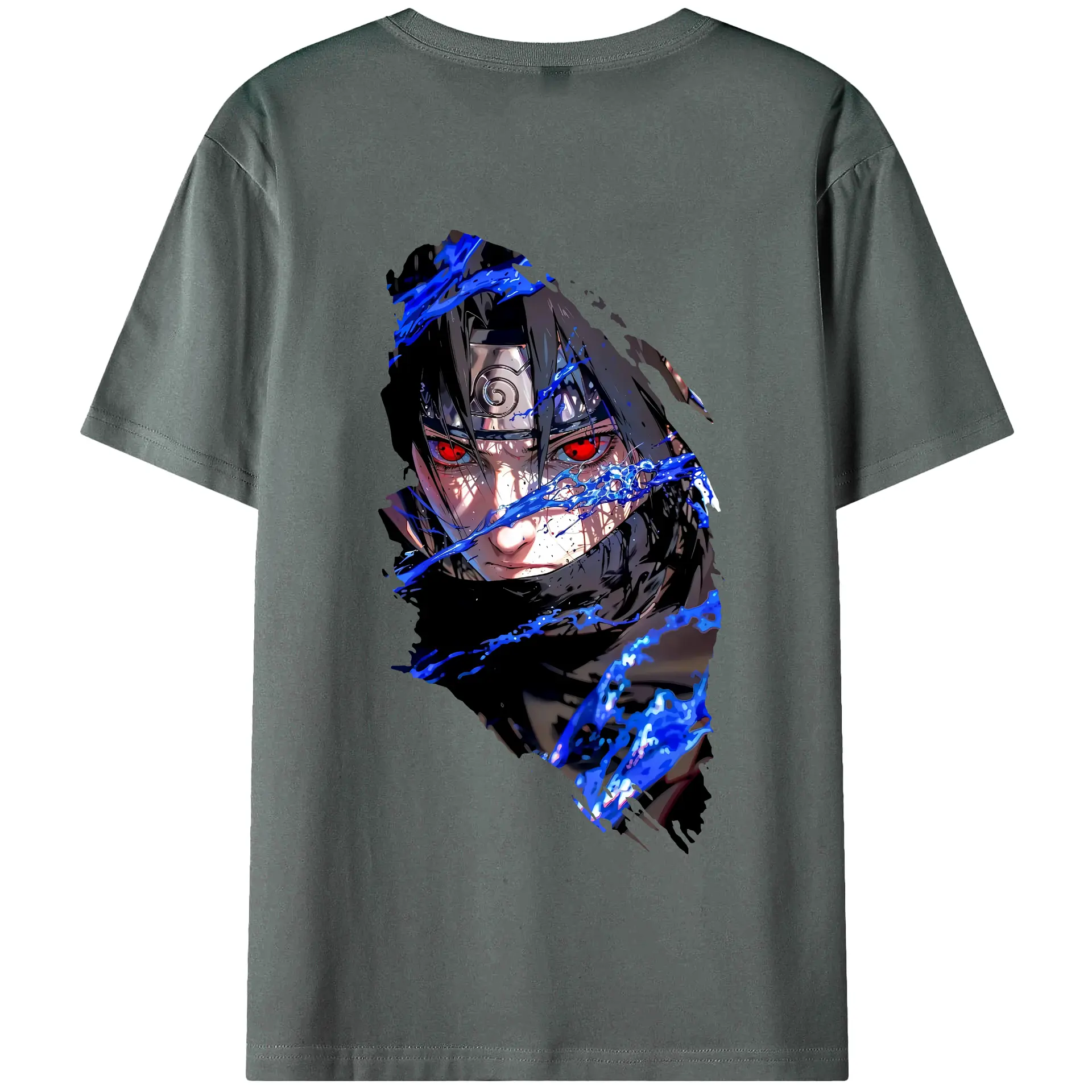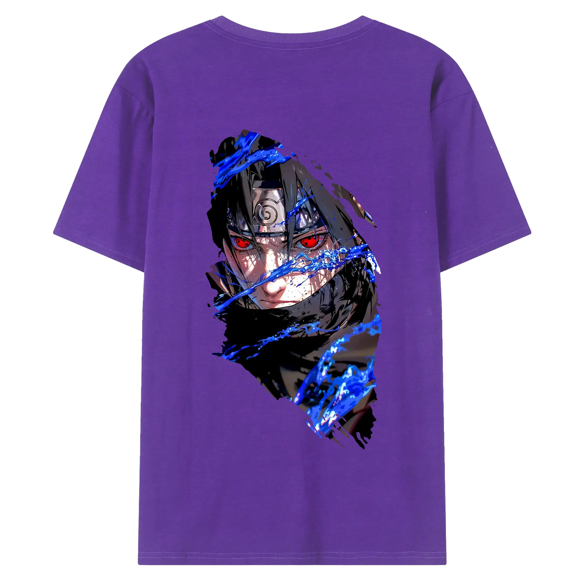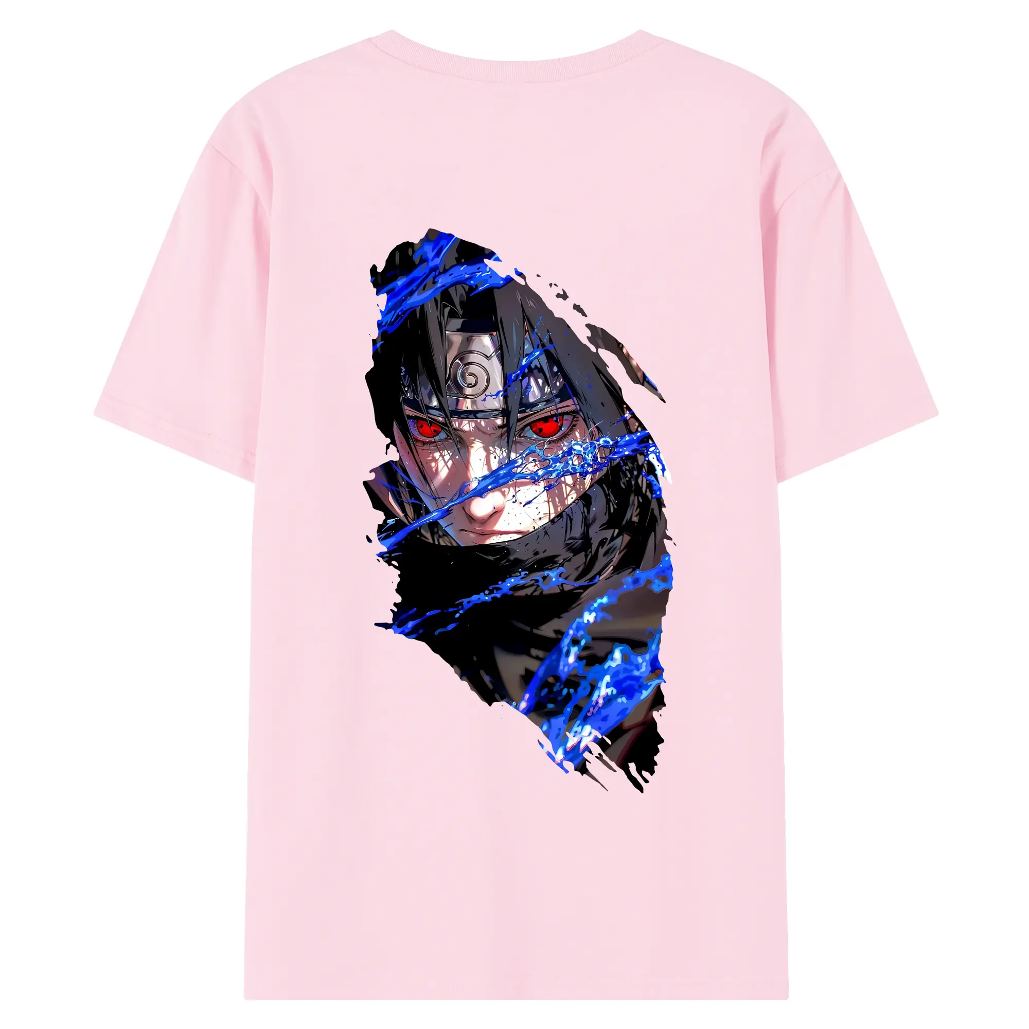 ナルト グッズ うちは サスケ - 綿100% 半袖Tシャツ ・ フロントプリント ・ 快適 通気性 ・ 日常使い 散歩 スポーツ用