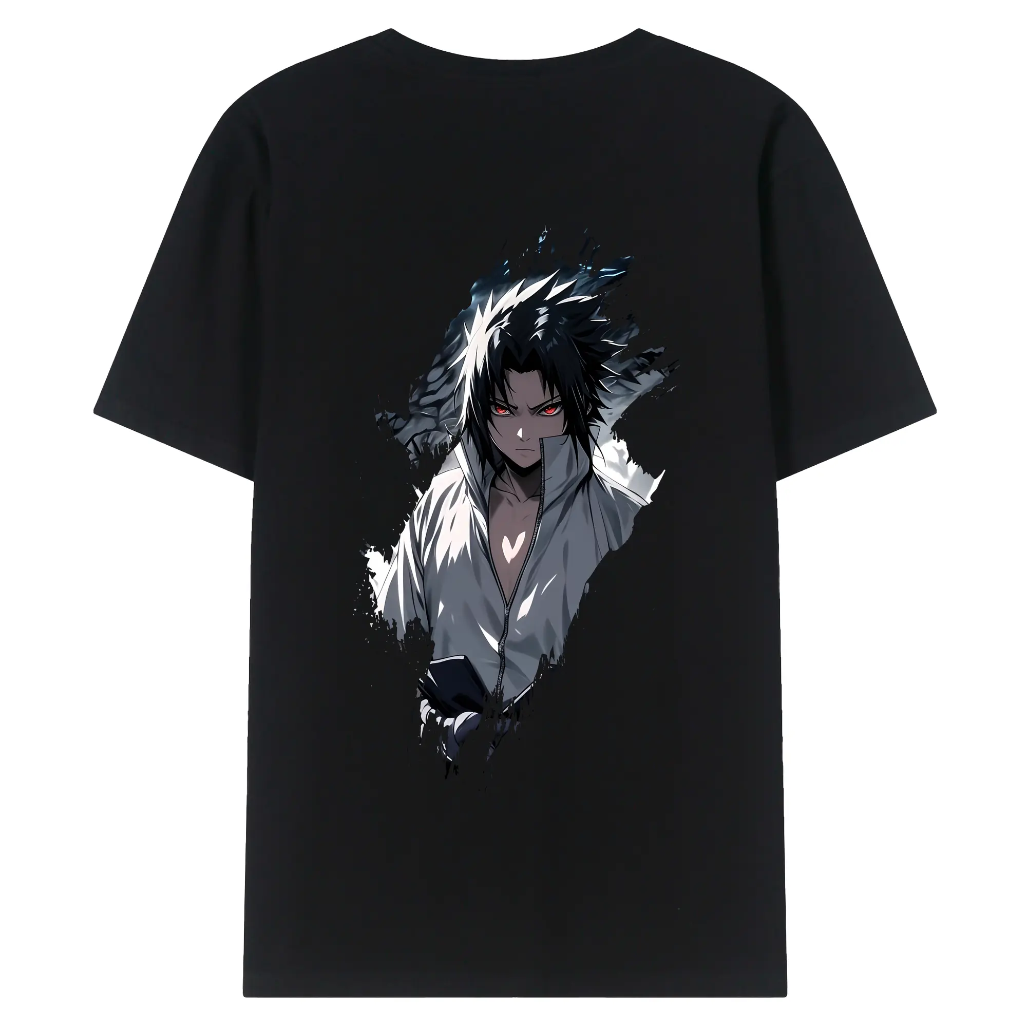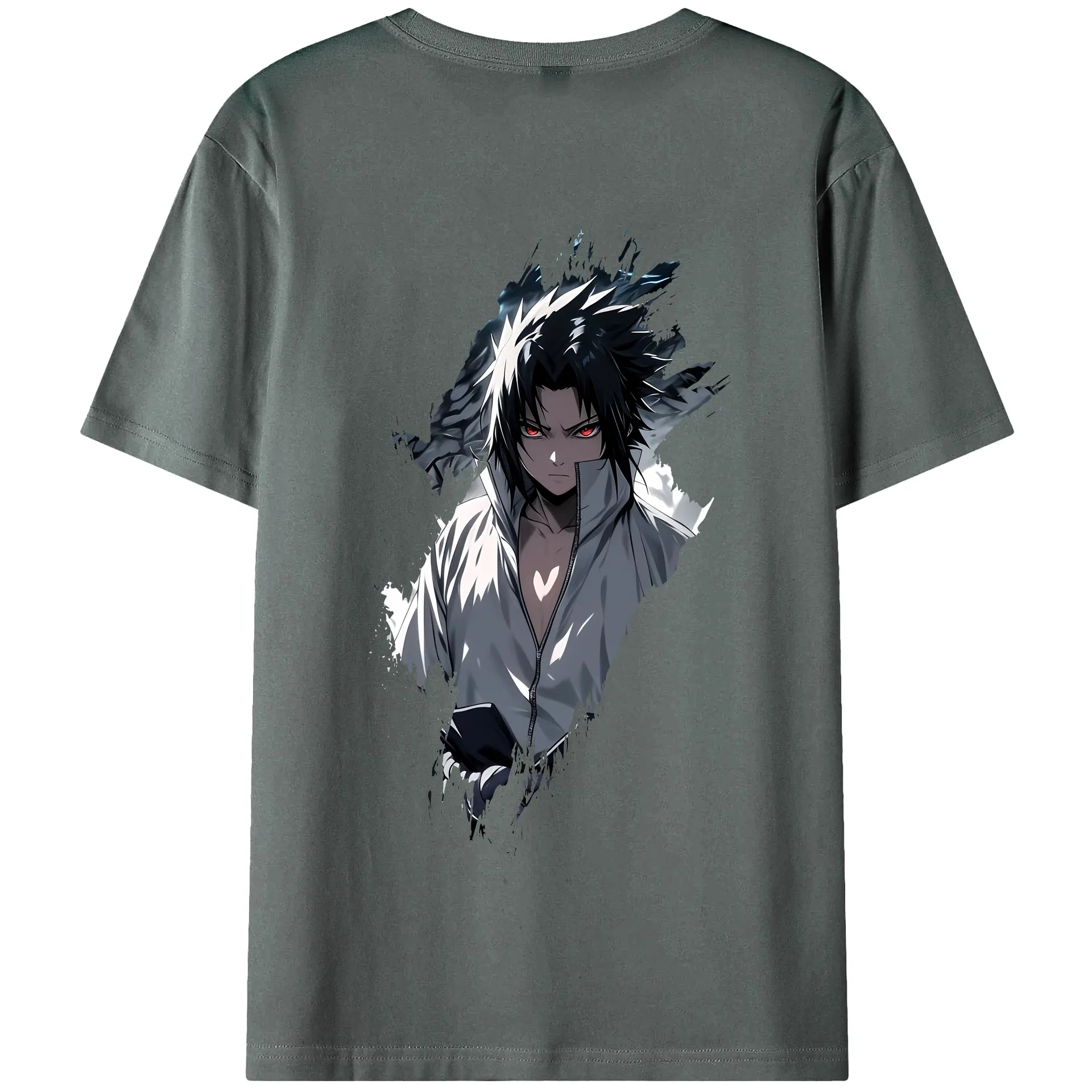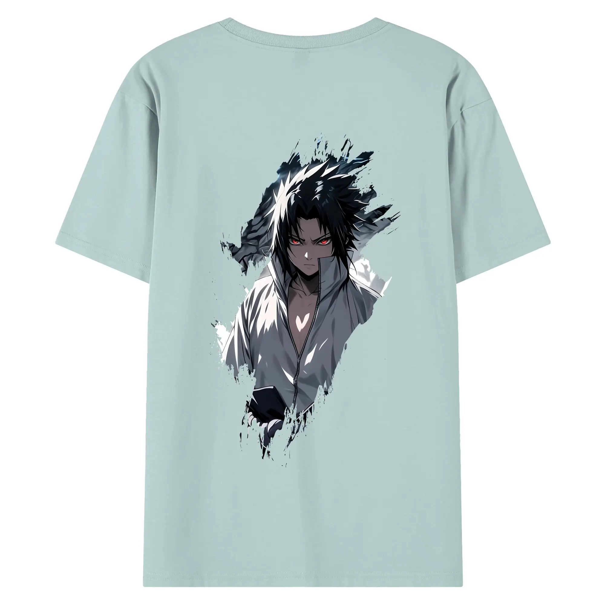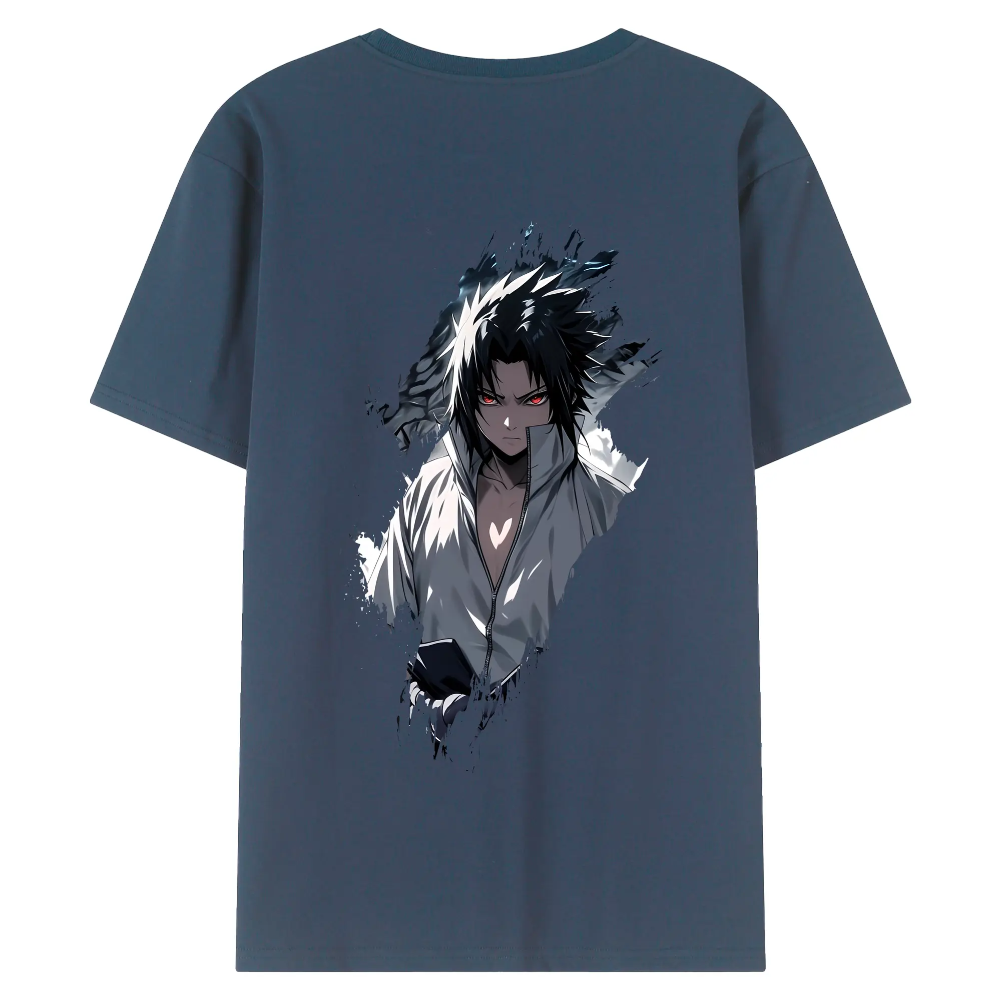 ナルト グッズ うちは サスケ - 綿100% ヴィンテージ風 半袖Tシャツ ・ 背面プリント ・ 柔らか肌触り ・ 通気性 快適 ・ スポーツ カジュアル 外出用